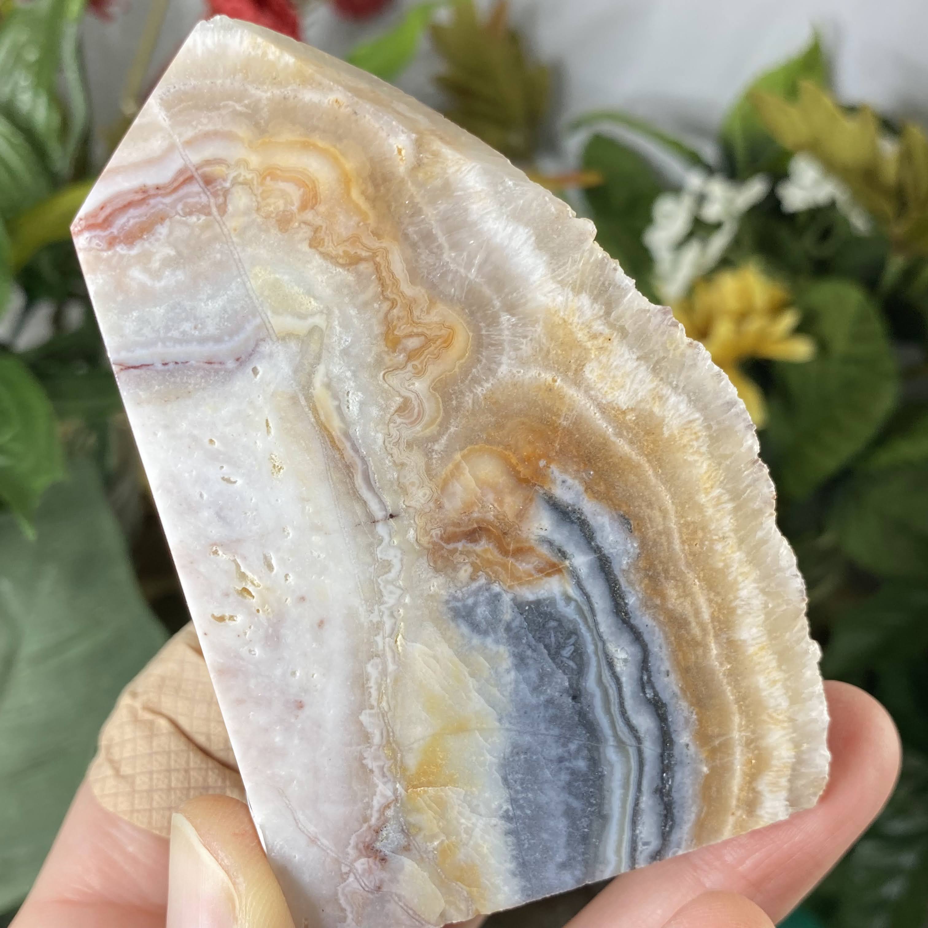 I'd consider these Lace agate!Crazy Lace Agate /Mexican Lace Agate - This type of agate has inclusions of aluminum & iron, & shows off hypnotizing lace and paisley patterns, usually including some of the colors of red, white, grey, brown, black, and yellow. Other colors may be present too! Lace agate is excellent to help bring balance, strength, and steadiness to the physical body, especially when currently in a “lower” physical state. May help us to understand the perfection that we can be, and the steps and paths available to us to reach the heights of awareness. It’s a soother, calmer, grounder, but also & very uplifting and happy stone! It’s especially clearing & uplifting out of the agates, helping one to laugh & find joy in what’s around us. Also excellent for inspiring creativity and getting in the flow of creation states.