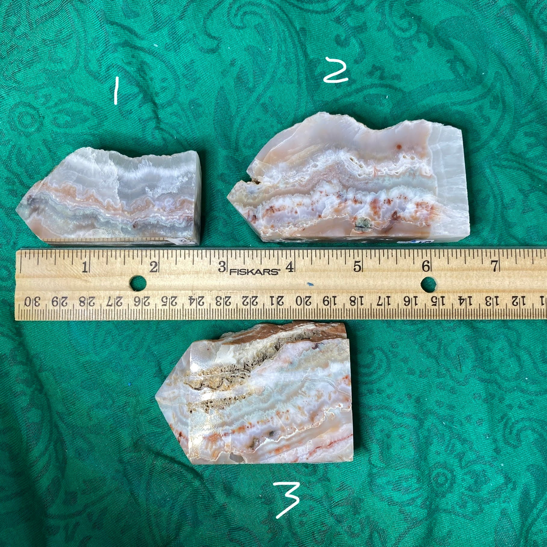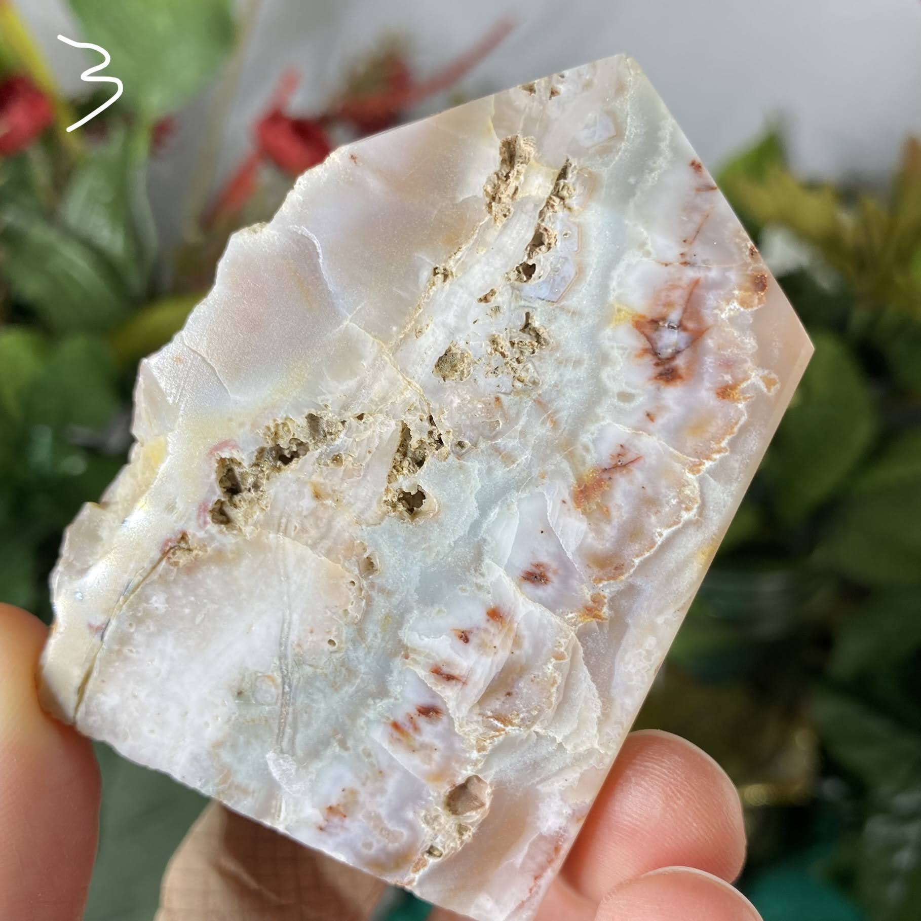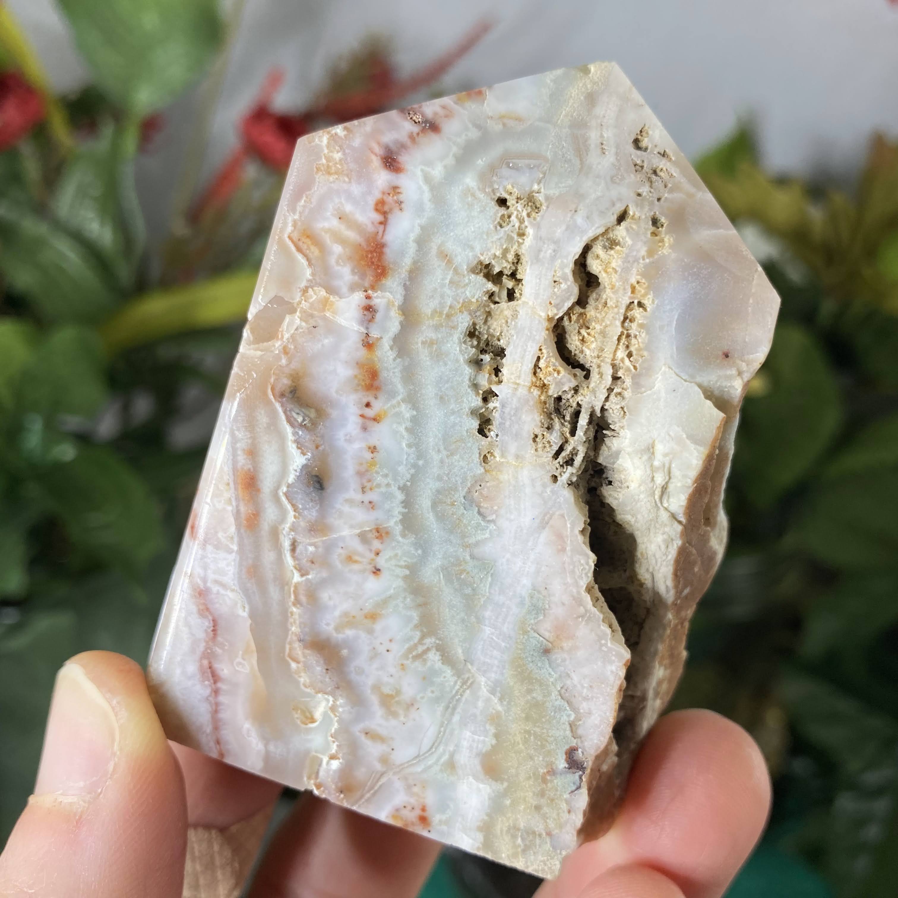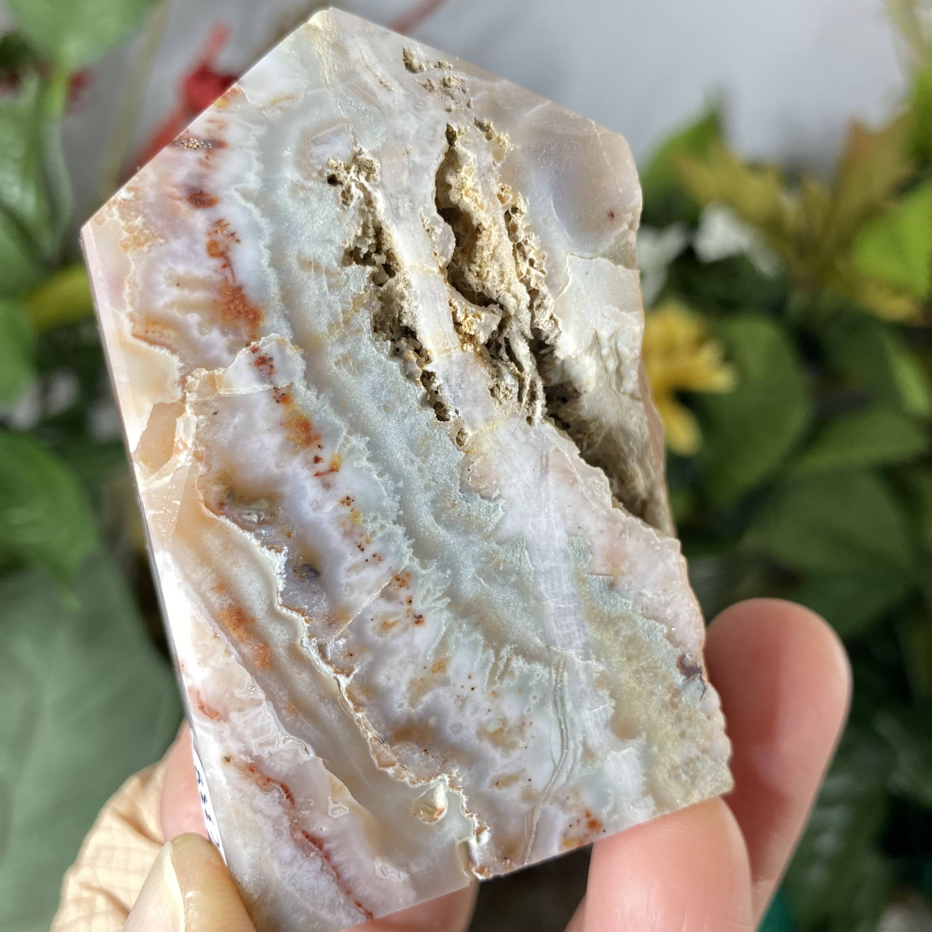 I'd consider these Lace agate!Crazy Lace Agate /Mexican Lace Agate - This type of agate has inclusions of aluminum & iron, & shows off hypnotizing lace and paisley patterns, usually including some of the colors of red, white, grey, brown, black, and yellow. Other colors may be present too! Lace agate is excellent to help bring balance, strength, and steadiness to the physical body, especially when currently in a “lower” physical state. May help us to understand the perfection that we can be, and the steps and paths available to us to reach the heights of awareness. It’s a soother, calmer, grounder, but also & very uplifting and happy stone! It’s especially clearing & uplifting out of the agates, helping one to laugh & find joy in what’s around us. Also excellent for inspiring creativity and getting in the flow of creation states.