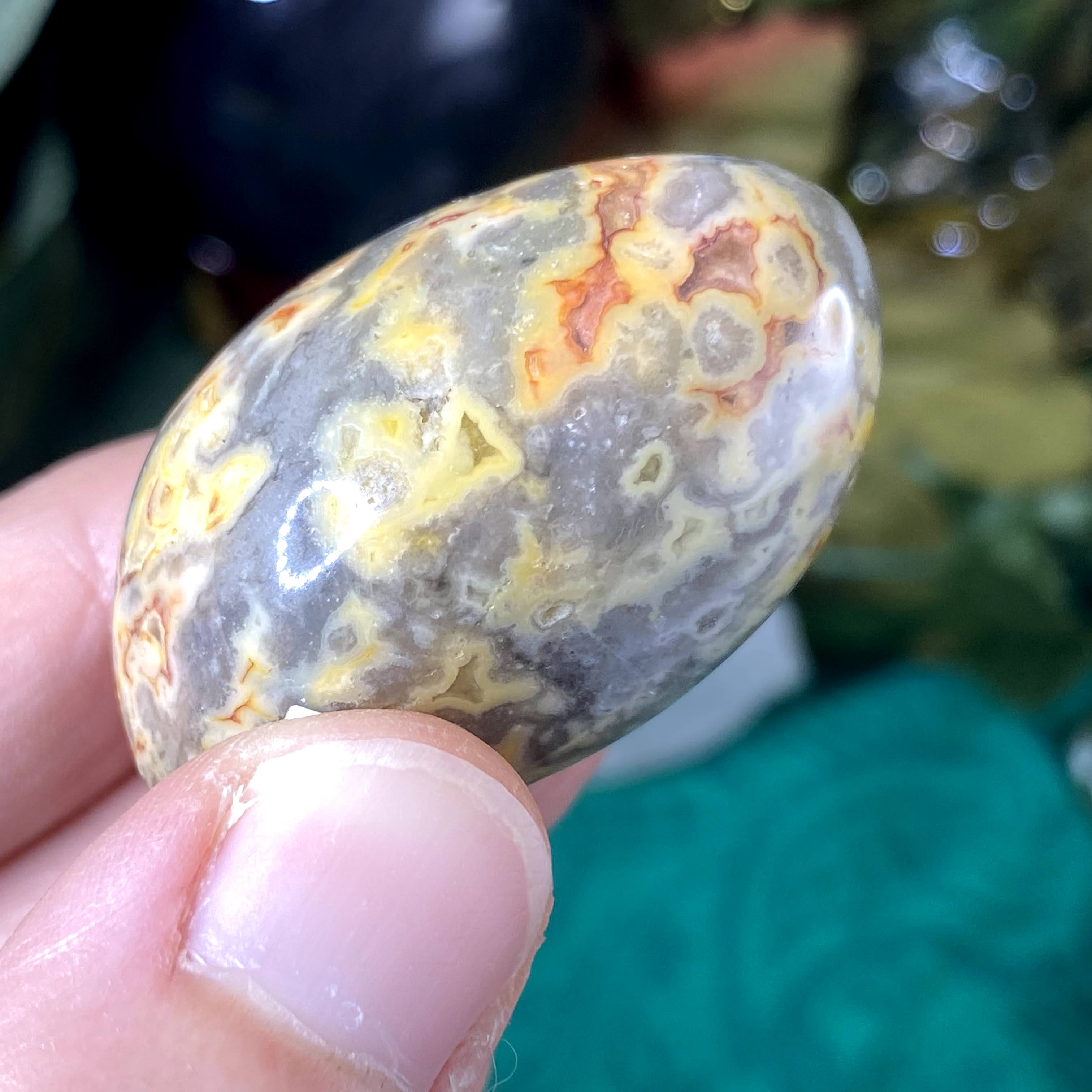 This listing is for ONE wildly beautiful crazy lace agate XL tumble (or XS palm stone you could call it)! Select the one that calls to YOU! What beautiful patterns to get lost in, and fun energy!