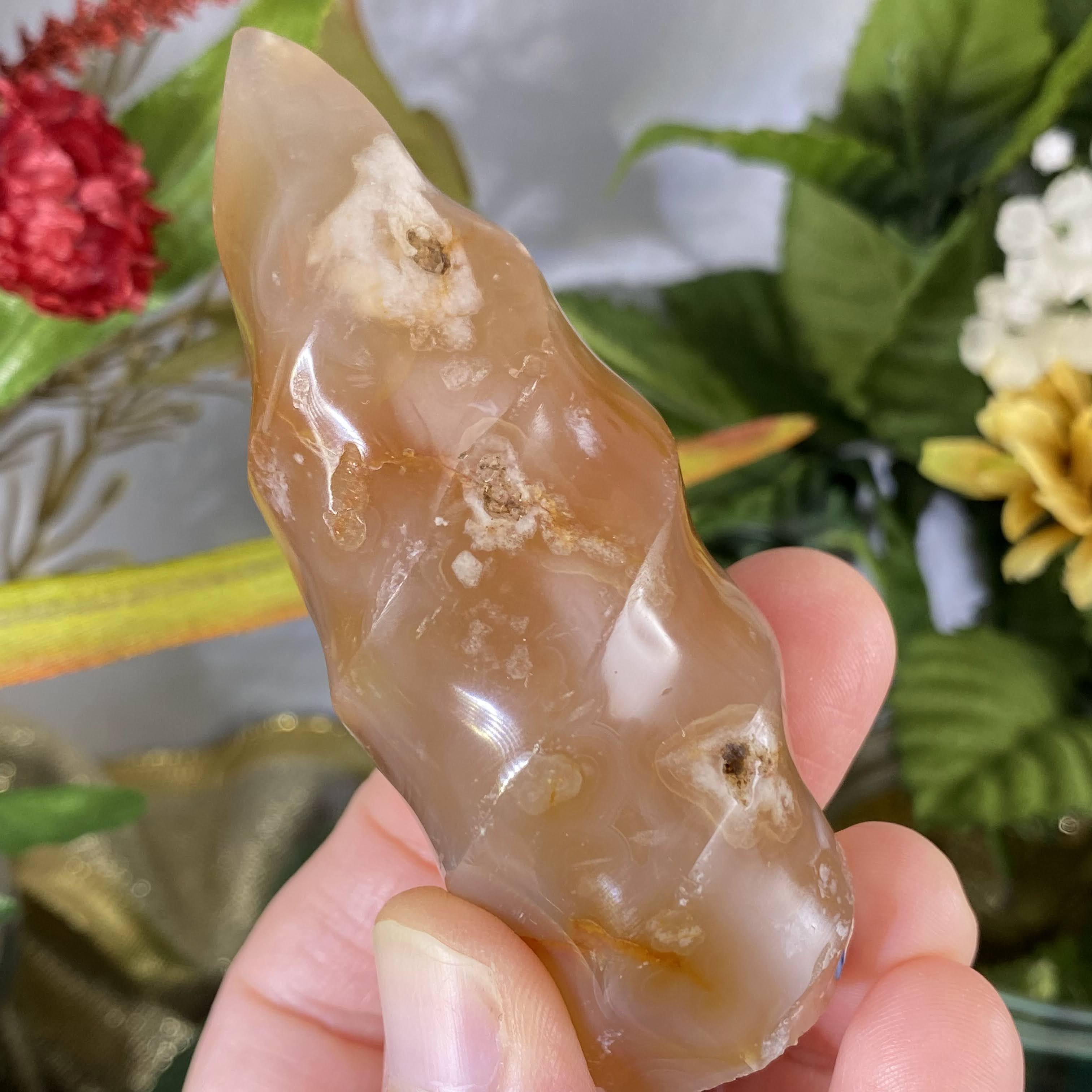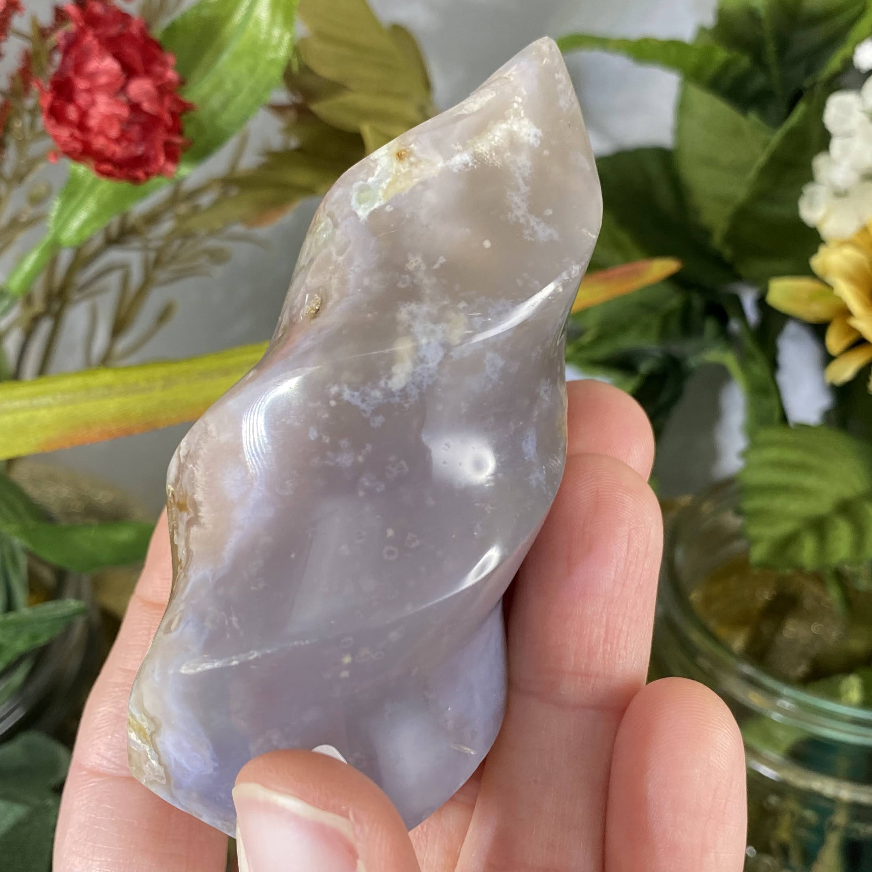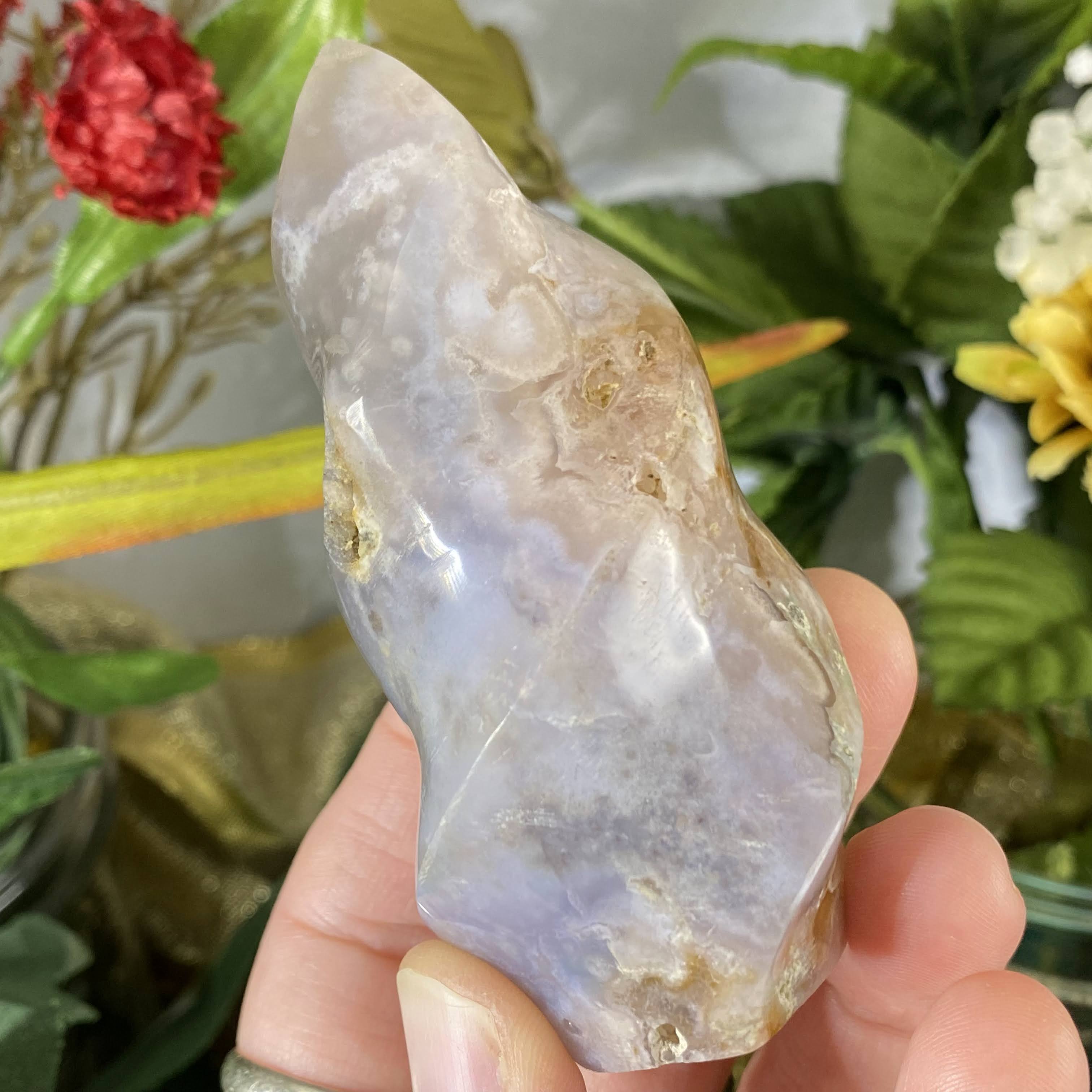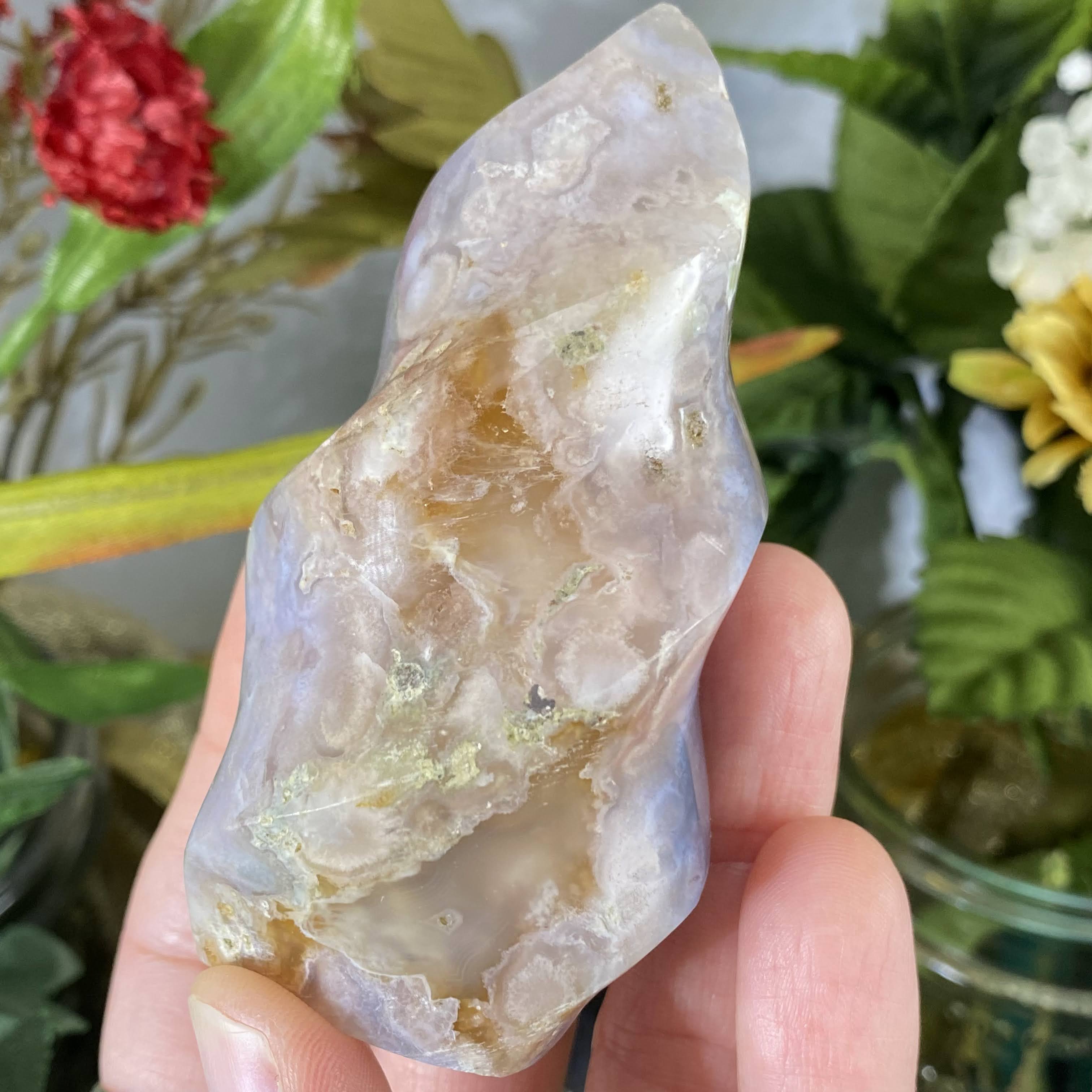Flower (Plume)  Agate - This recent plume agate find is from Madagascar gets it’s name from beautiful 3-D chalcedony “flower” patterns inside of the agate stone. It’s so beautiful that you can almost see little “seeds” and then the “flowers” in the stone. It’s easy to say that this one holds a beautiful energy of encouragement and growth. It’s a sweet friend to support you with positive energy as you let your branches grow, transform, & re-birth into the greatest potential that you are and to go for your dreams. Also helps with a deep state of meditation & uninhibited mind. Flower agate is a wonderful stone to work with when healing the emotional body & past trauma. It works as a nurturer and an energy that aids to help us release past trauma and emotions stuck in the body, by bringing it to your attention. It’s also helpful that, this stone has such supportive energy, that helps us beam away self-doubt, fear, and thought patterns that hold us back, for when these rise to the surface. One can meditate with this stone (maybe on your heart is best, but more so wherever YOUR intuition tells you) and ask to bring attention to where emotion / trauma is and what it needs. Please do make sure you have support in place when doing deep emotional healing! As I write this, on my healing journey this year I have been working with someone to help release past trauma and always have my flower agate with me.