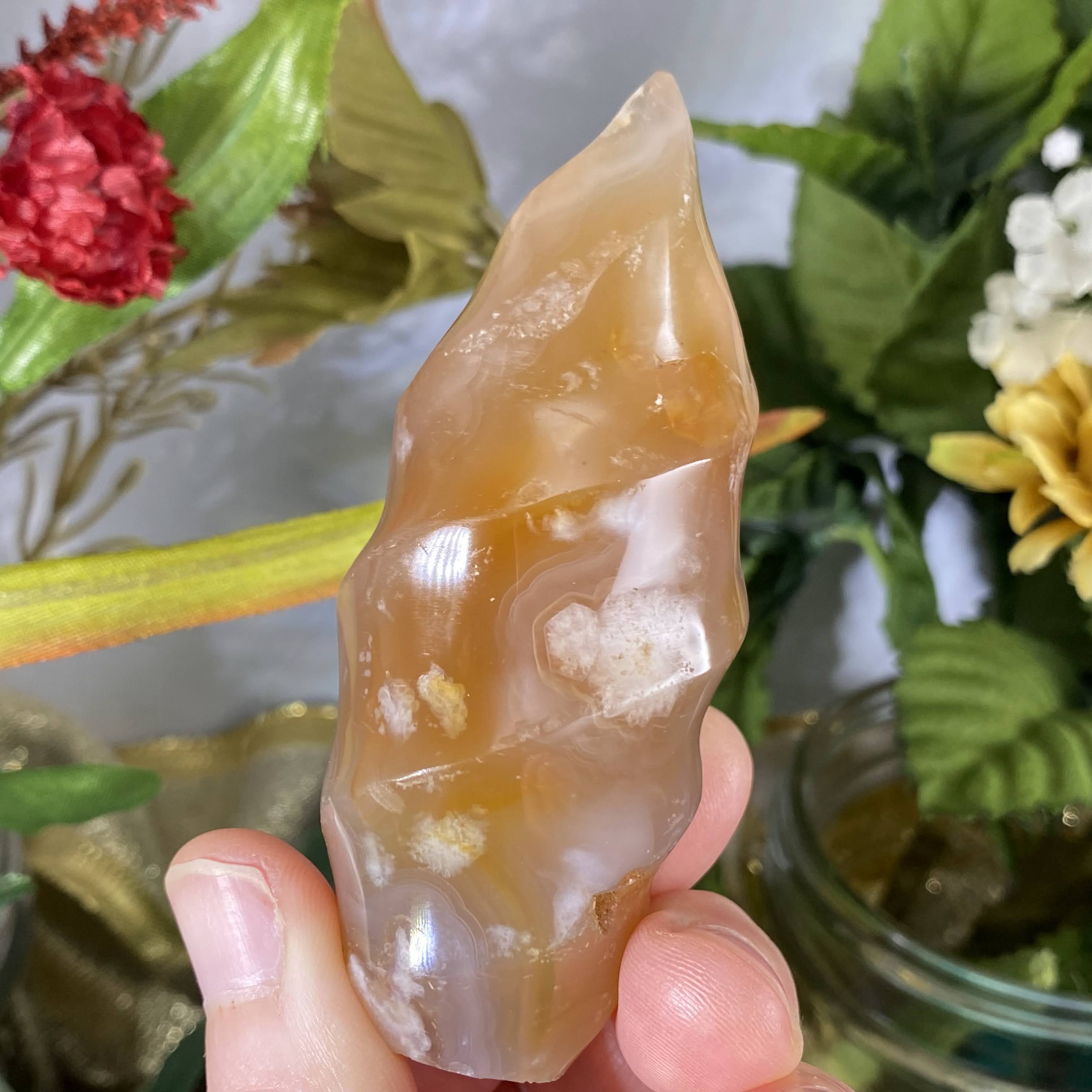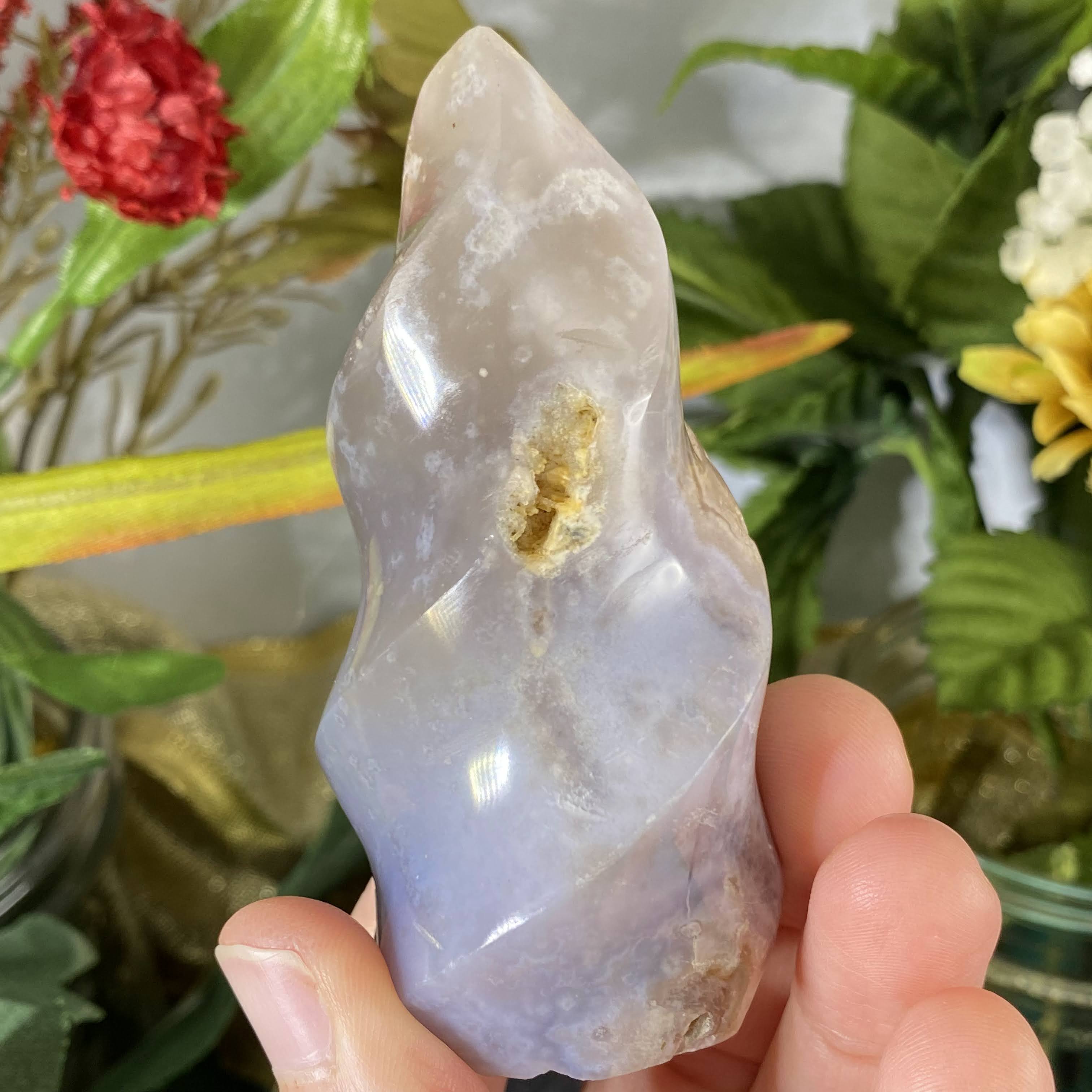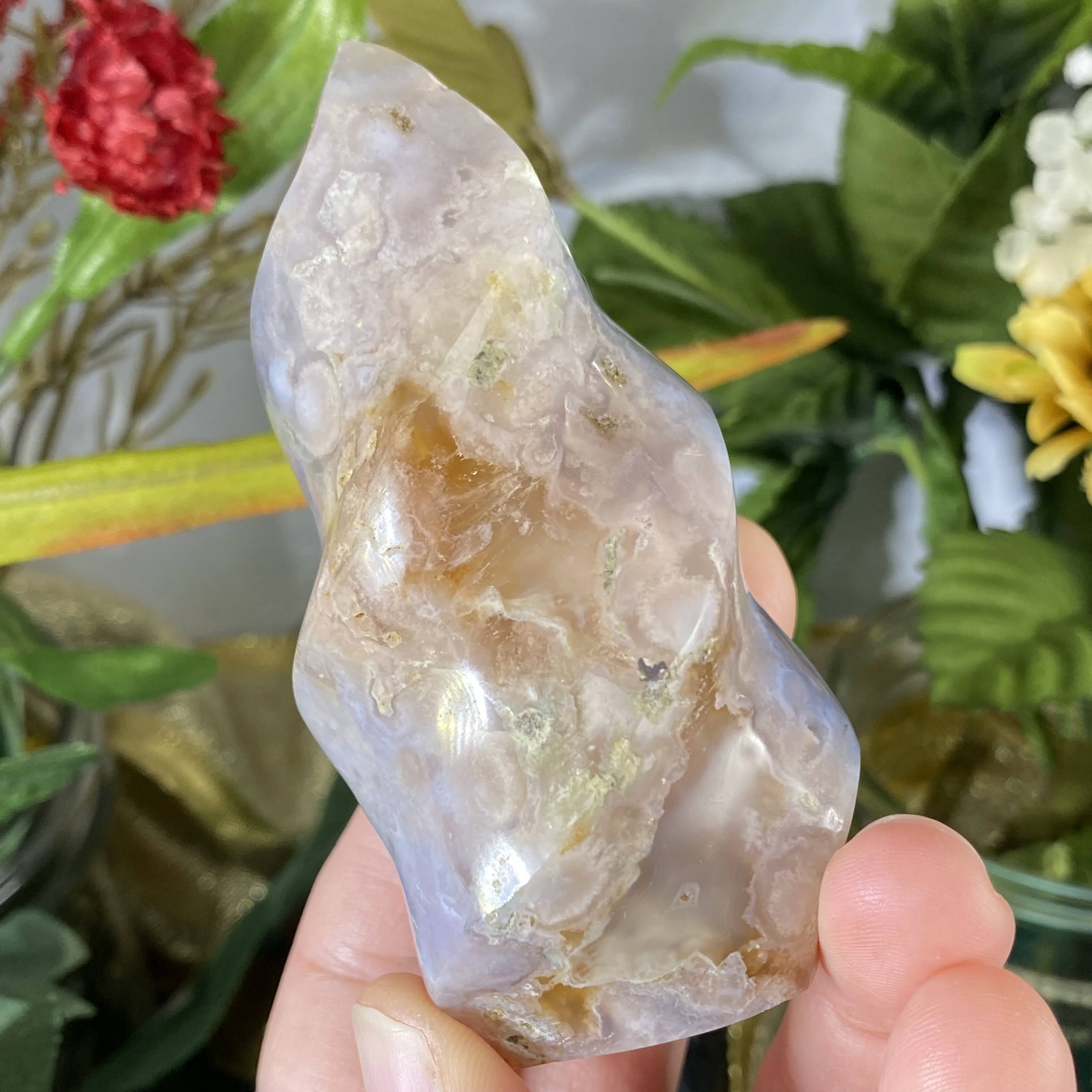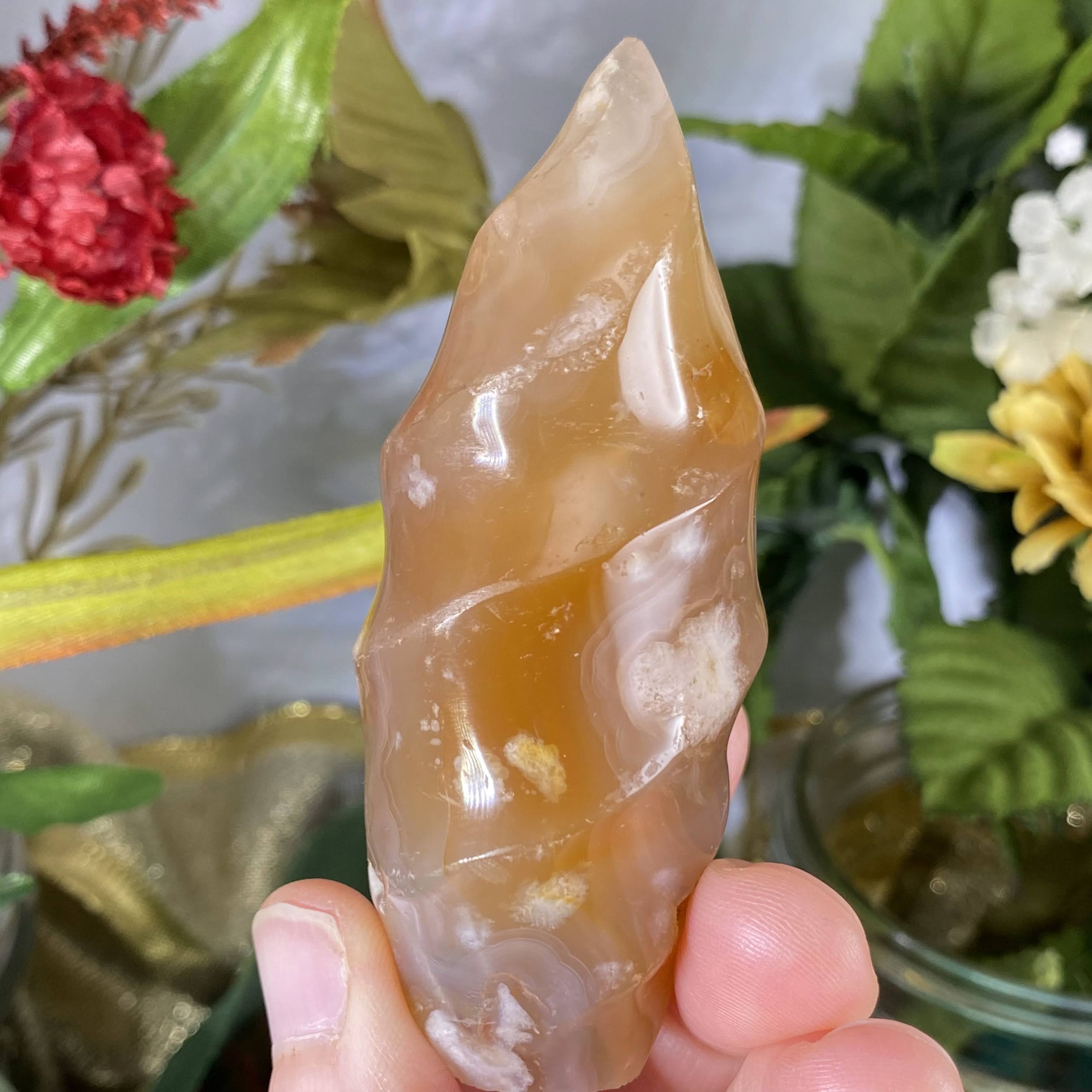 Flower (Plume)  Agate - This recent plume agate find is from Madagascar gets it’s name from beautiful 3-D chalcedony “flower” patterns inside of the agate stone. It’s so beautiful that you can almost see little “seeds” and then the “flowers” in the stone. It’s easy to say that this one holds a beautiful energy of encouragement and growth. It’s a sweet friend to support you with positive energy as you let your branches grow, transform, & re-birth into the greatest potential that you are and to go for your dreams. Also helps with a deep state of meditation & uninhibited mind. Flower agate is a wonderful stone to work with when healing the emotional body & past trauma. It works as a nurturer and an energy that aids to help us release past trauma and emotions stuck in the body, by bringing it to your attention. It’s also helpful that, this stone has such supportive energy, that helps us beam away self-doubt, fear, and thought patterns that hold us back, for when these rise to the surface. One can meditate with this stone (maybe on your heart is best, but more so wherever YOUR intuition tells you) and ask to bring attention to where emotion / trauma is and what it needs. Please do make sure you have support in place when doing deep emotional healing! As I write this, on my healing journey this year I have been working with someone to help release past trauma and always have my flower agate with me.