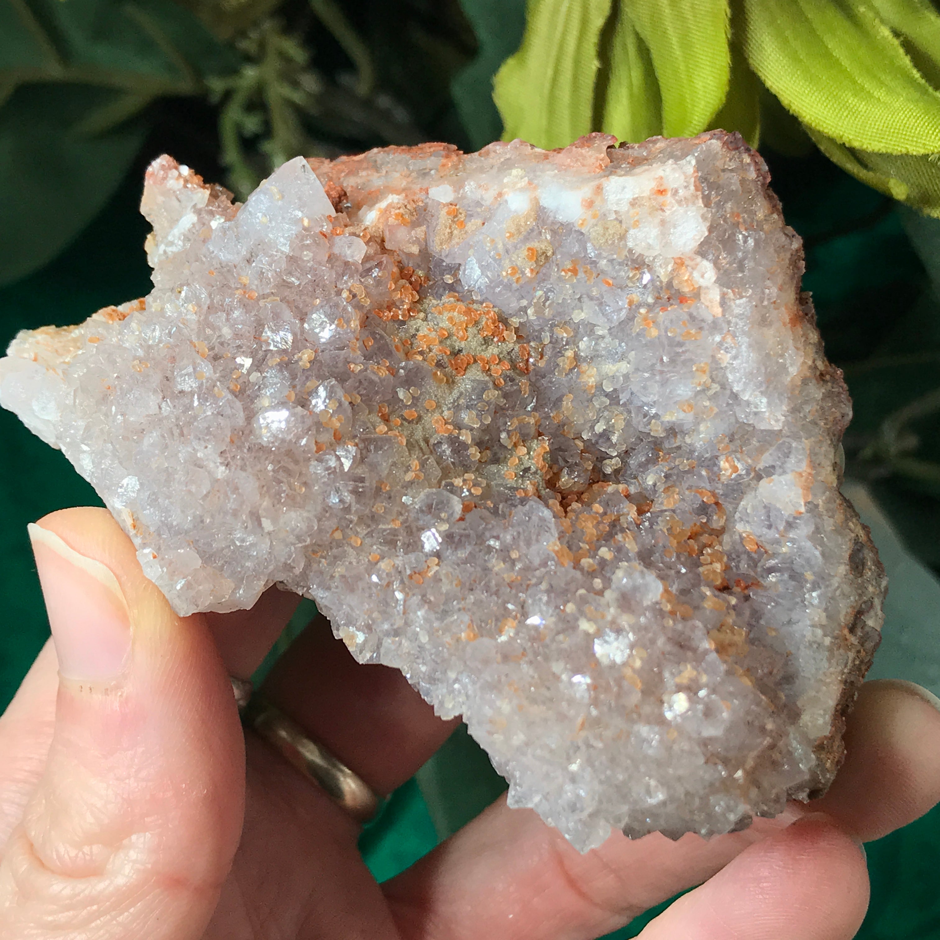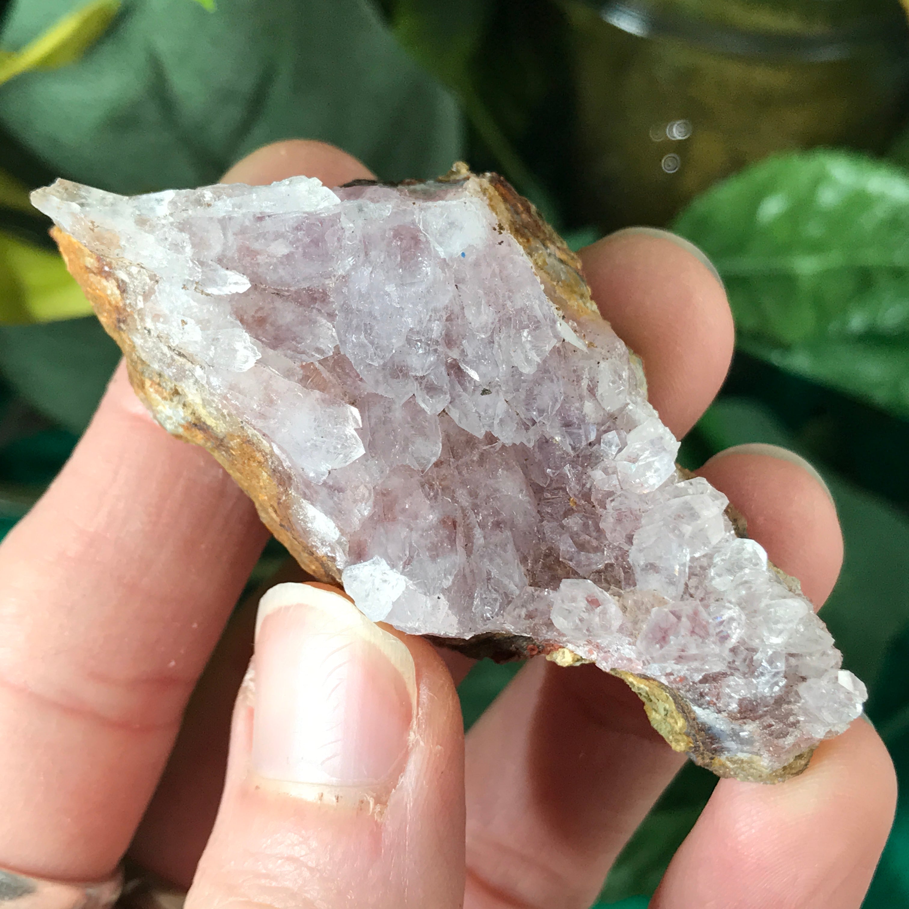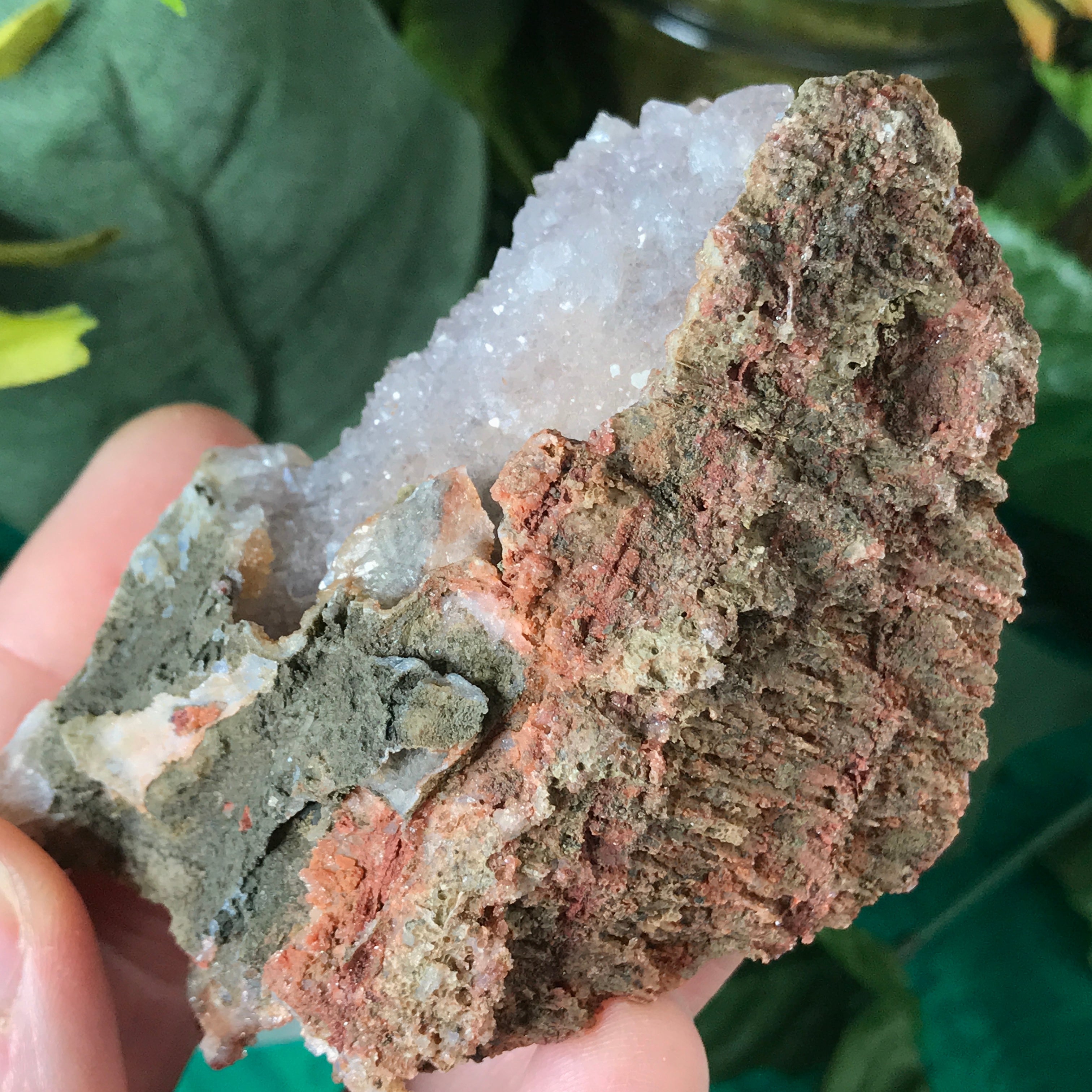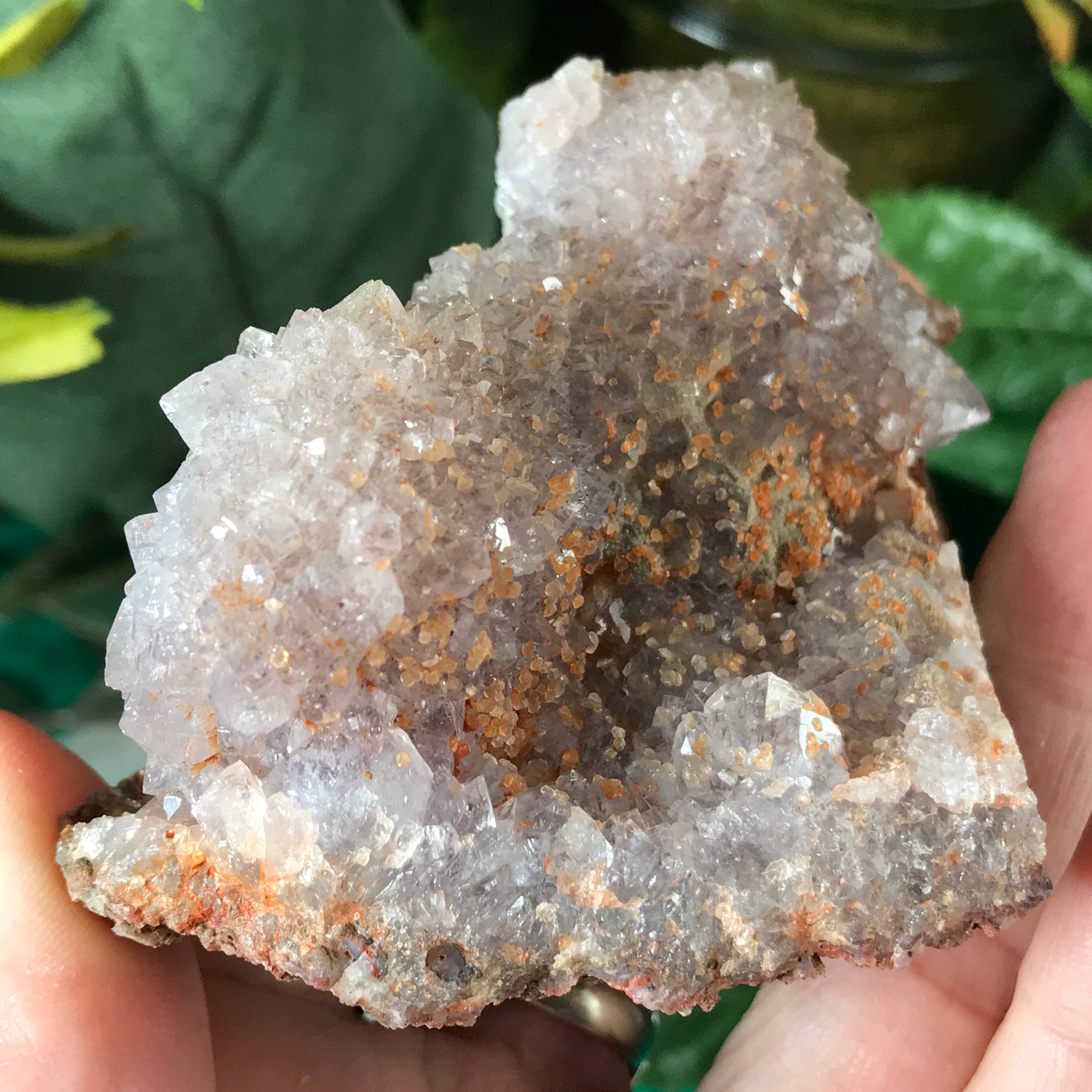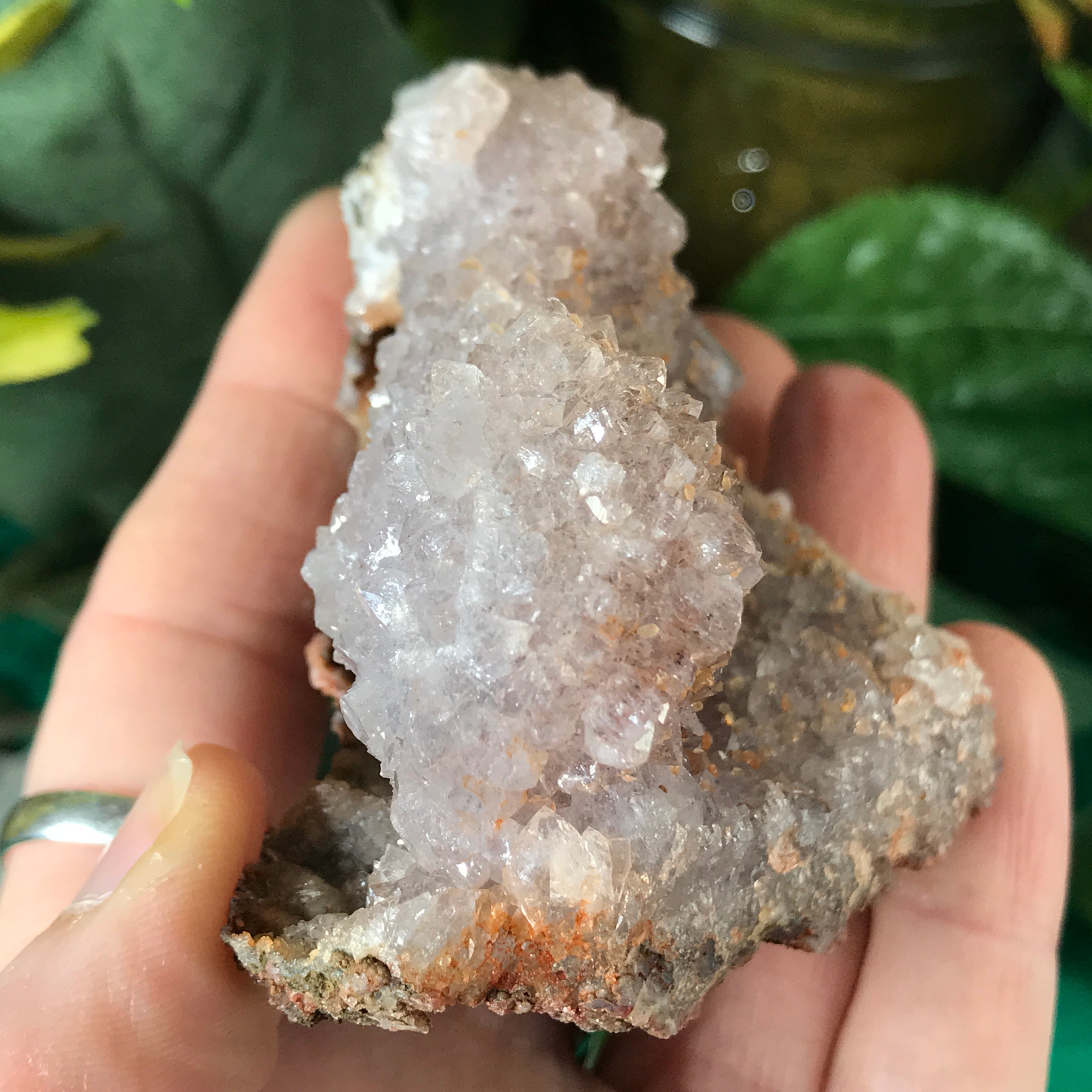 The pink appearance come from hematite in the amethyst, it's so pretty! So many crystal faces that sparkle and shine...I can't get over these colors, they look even better in person. Lovely specimens for the collection or to hold in mediation.