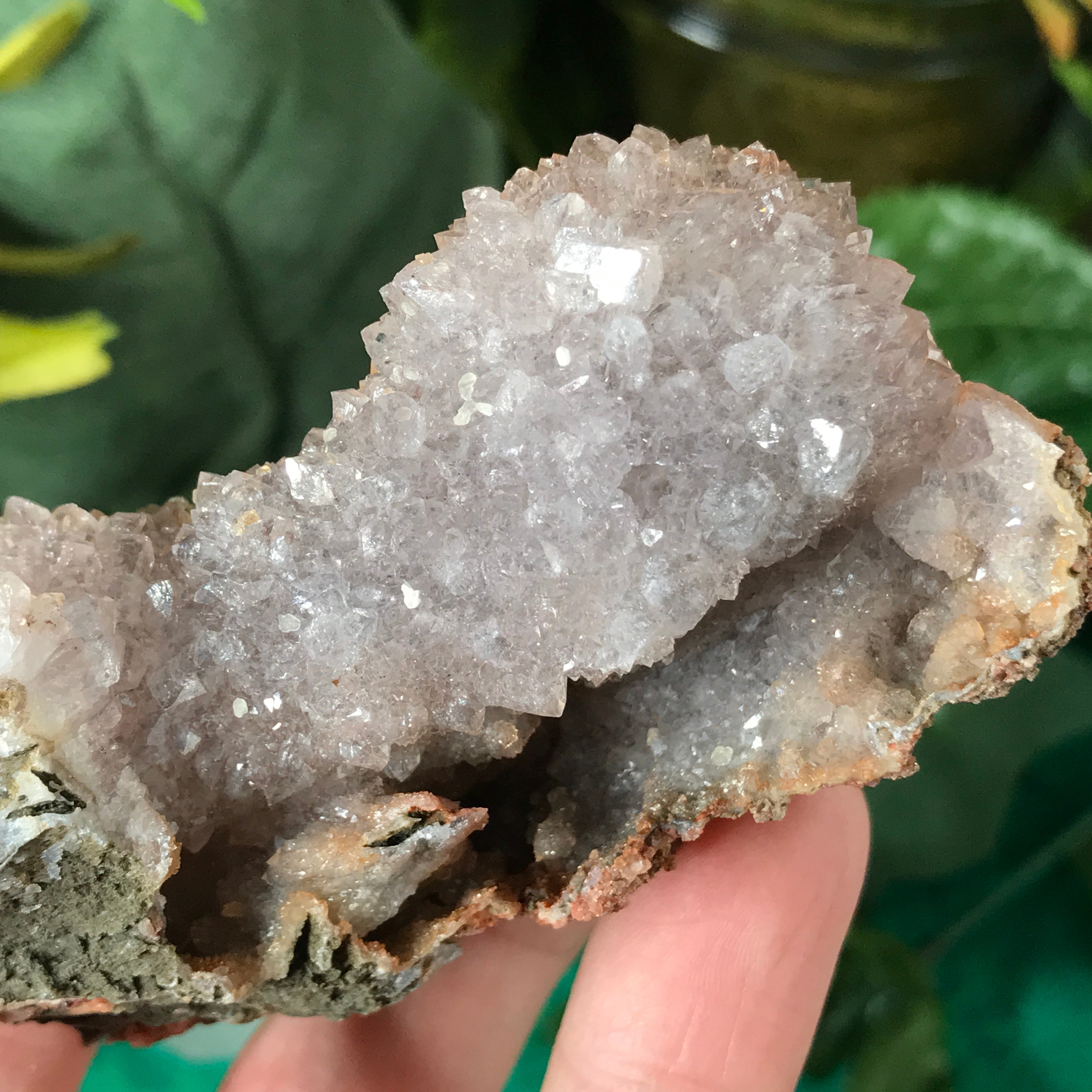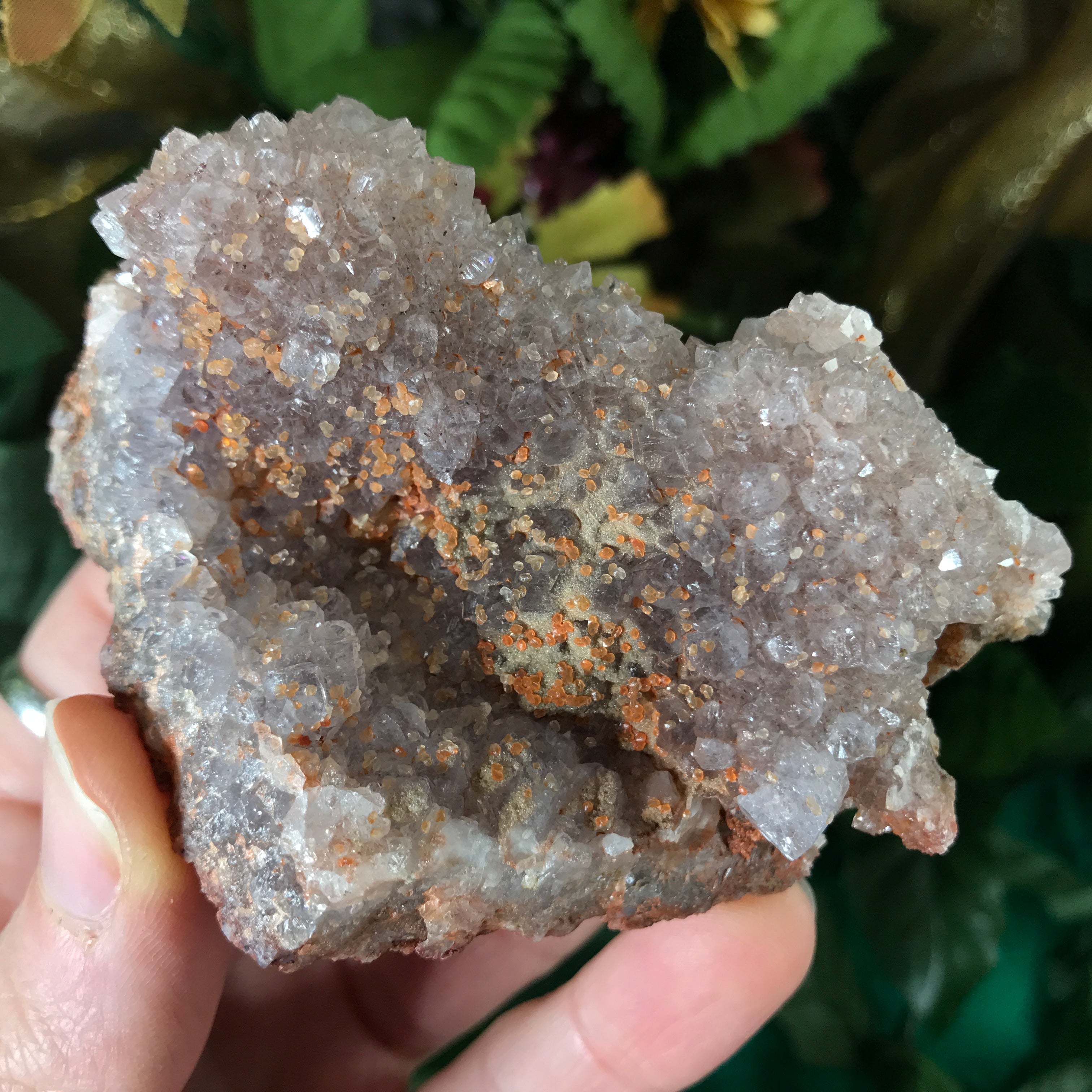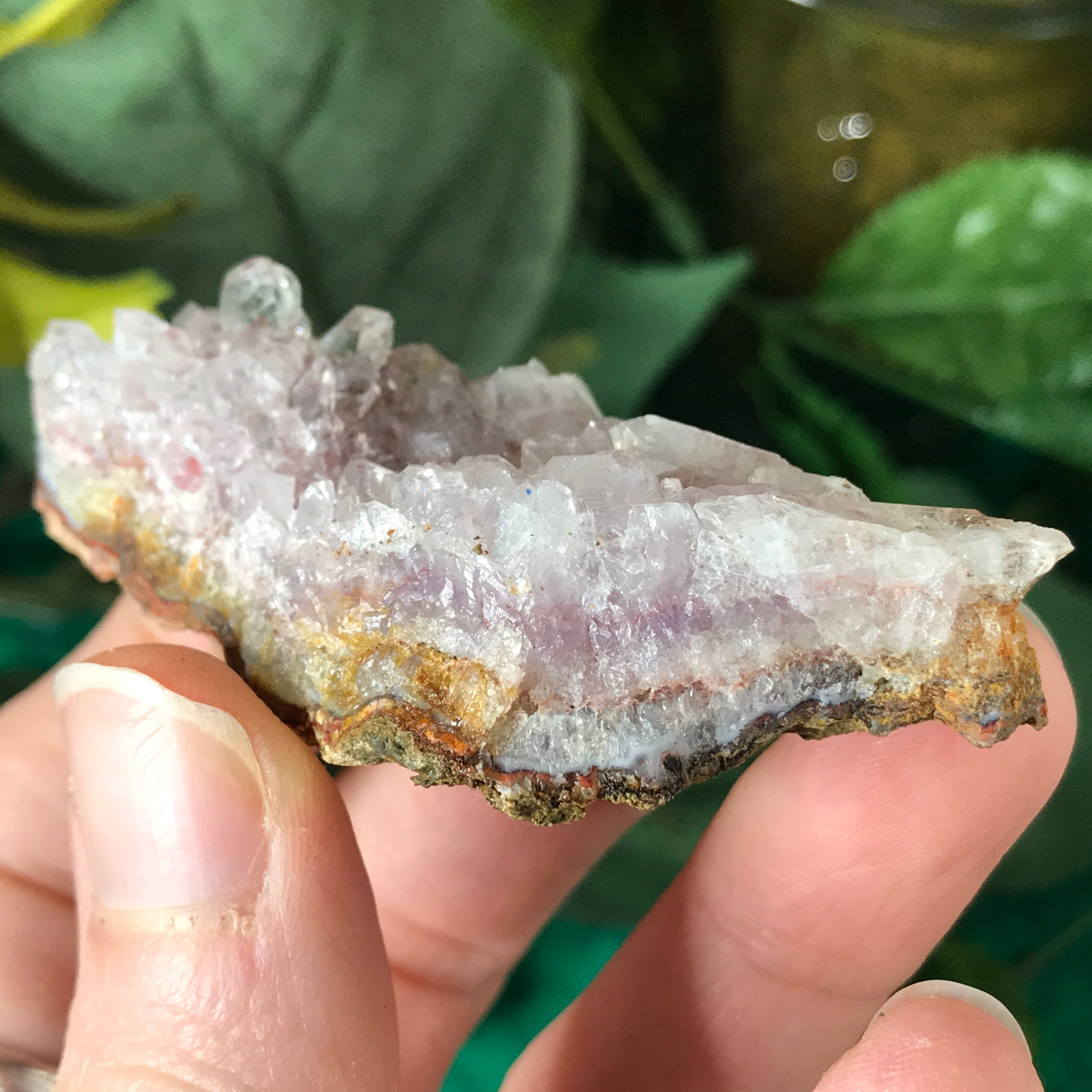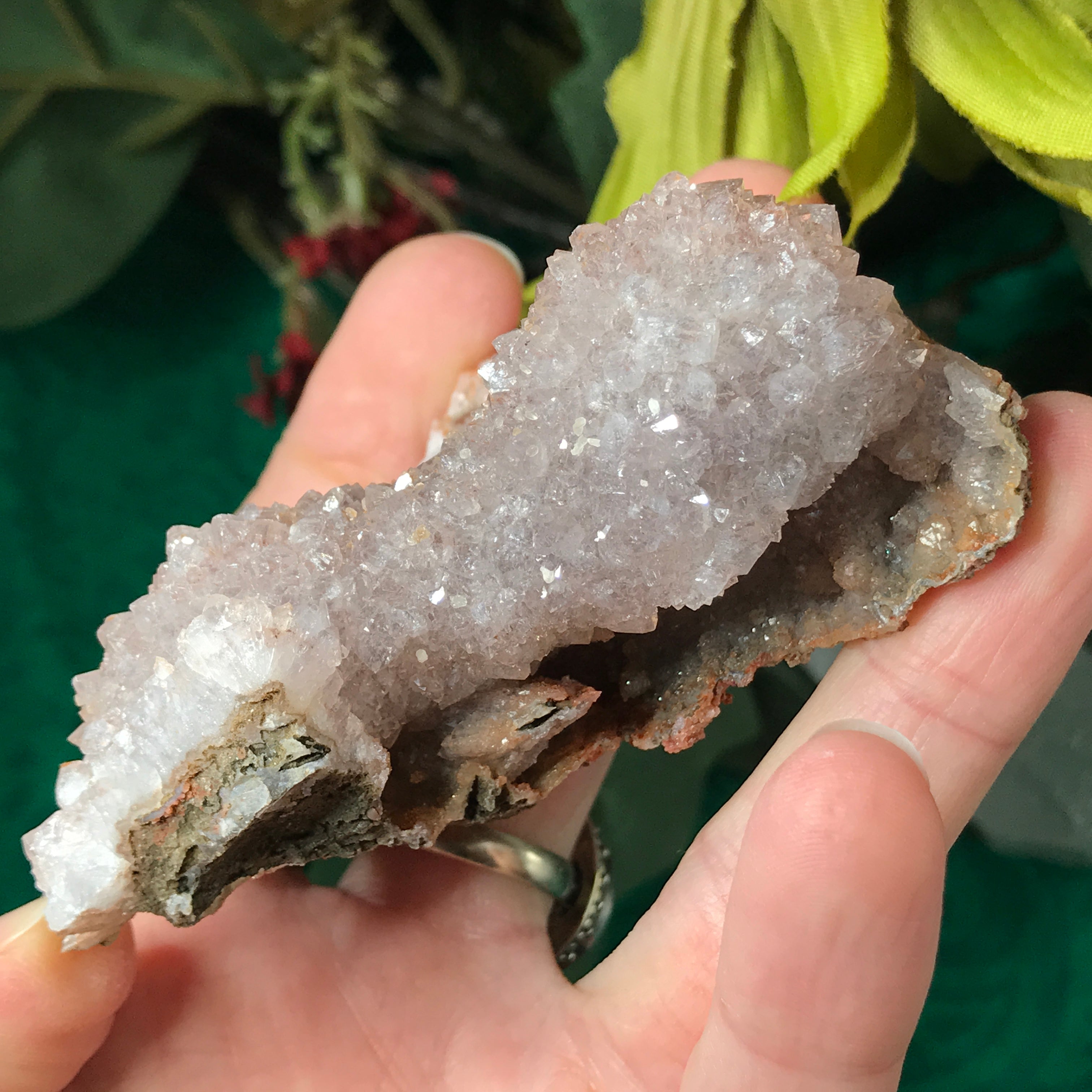 The pink appearance come from hematite in the amethyst, it's so pretty! So many crystal faces that sparkle and shine...I can't get over these colors, they look even better in person. Lovely specimens for the collection or to hold in mediation.