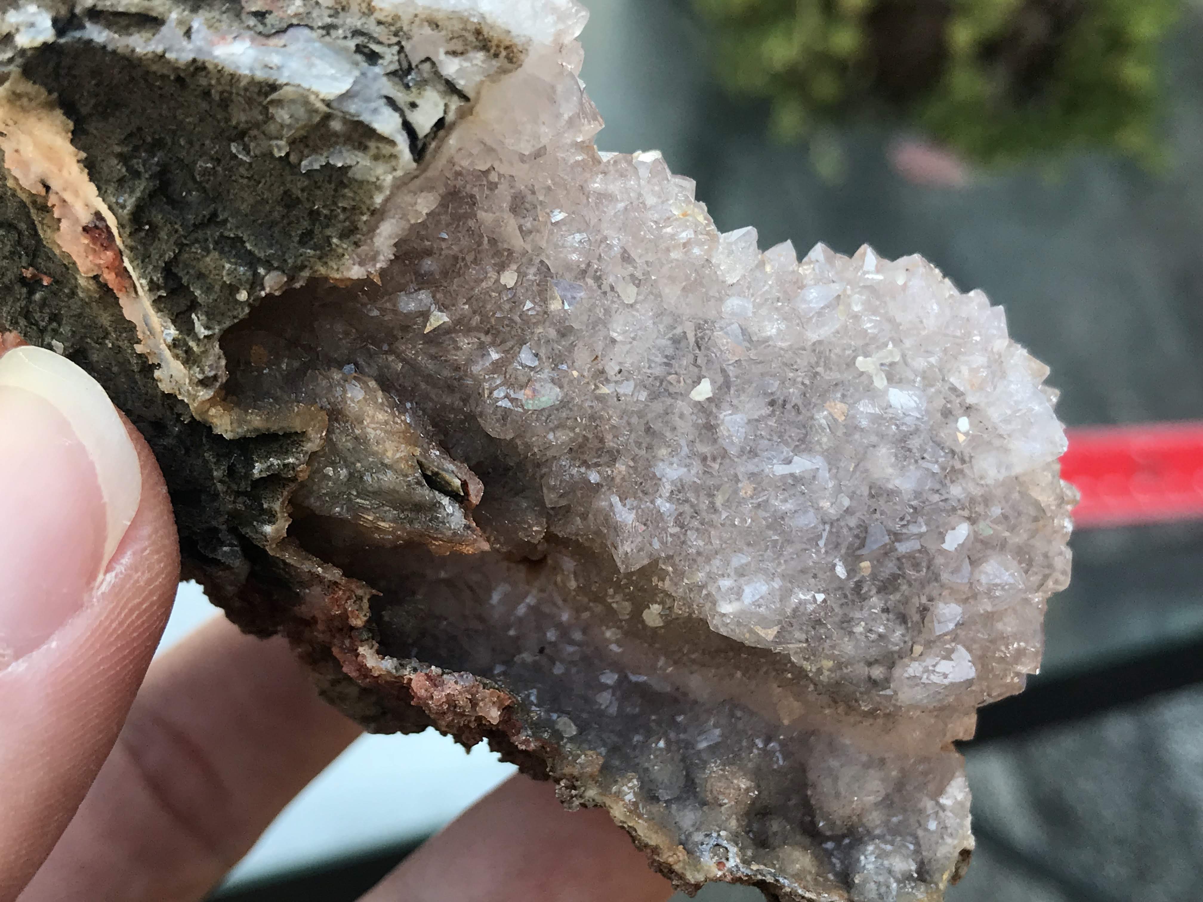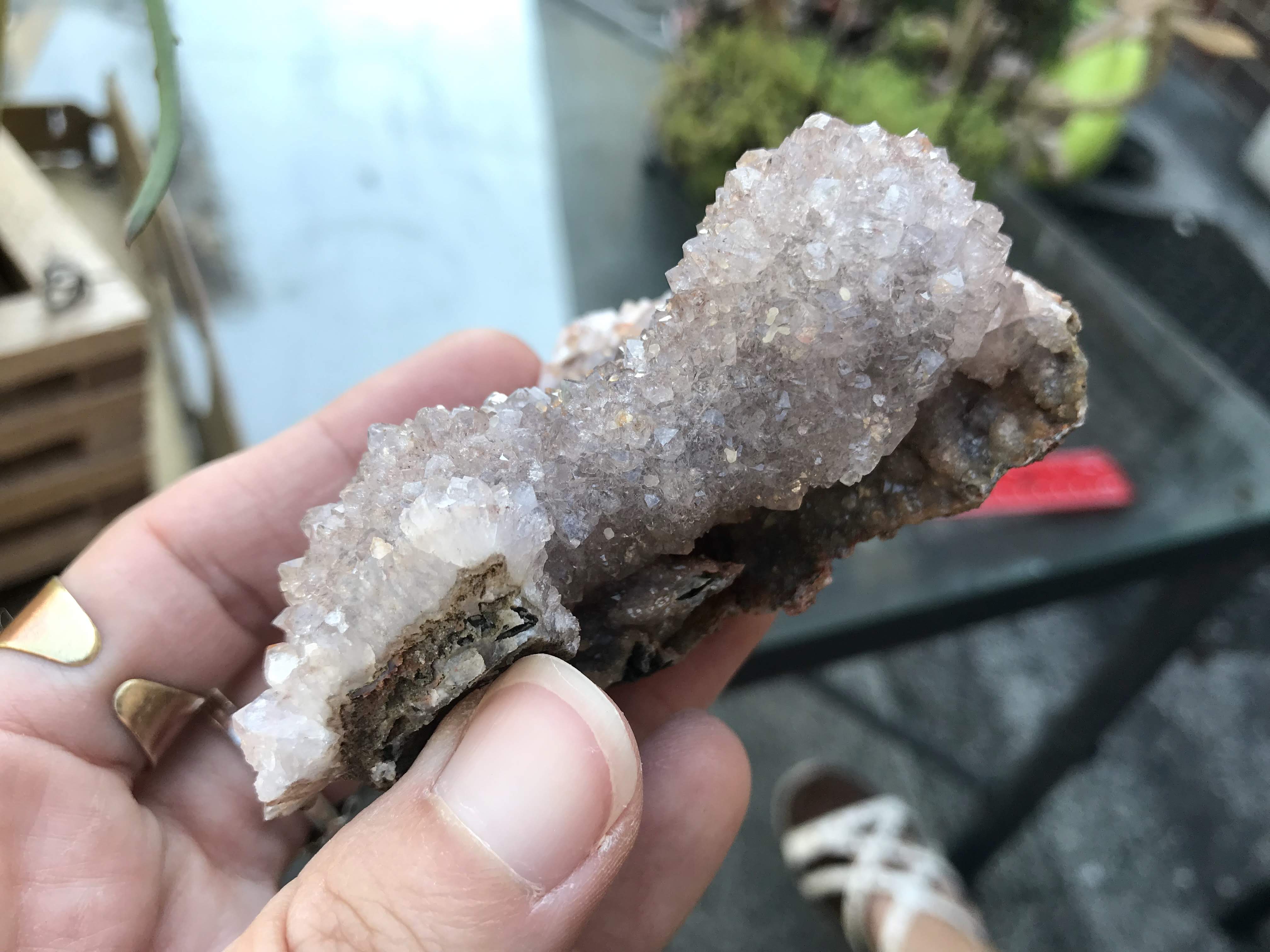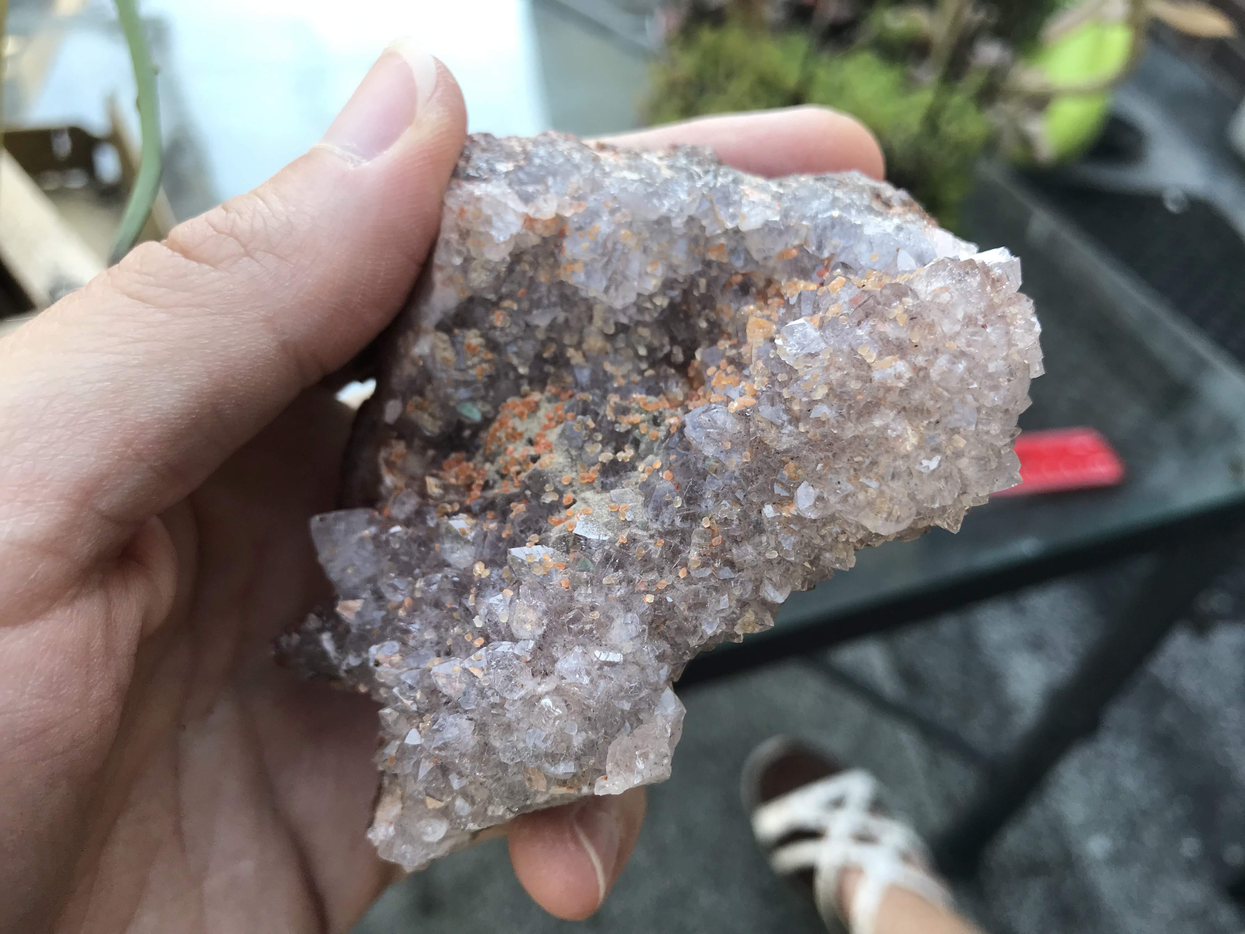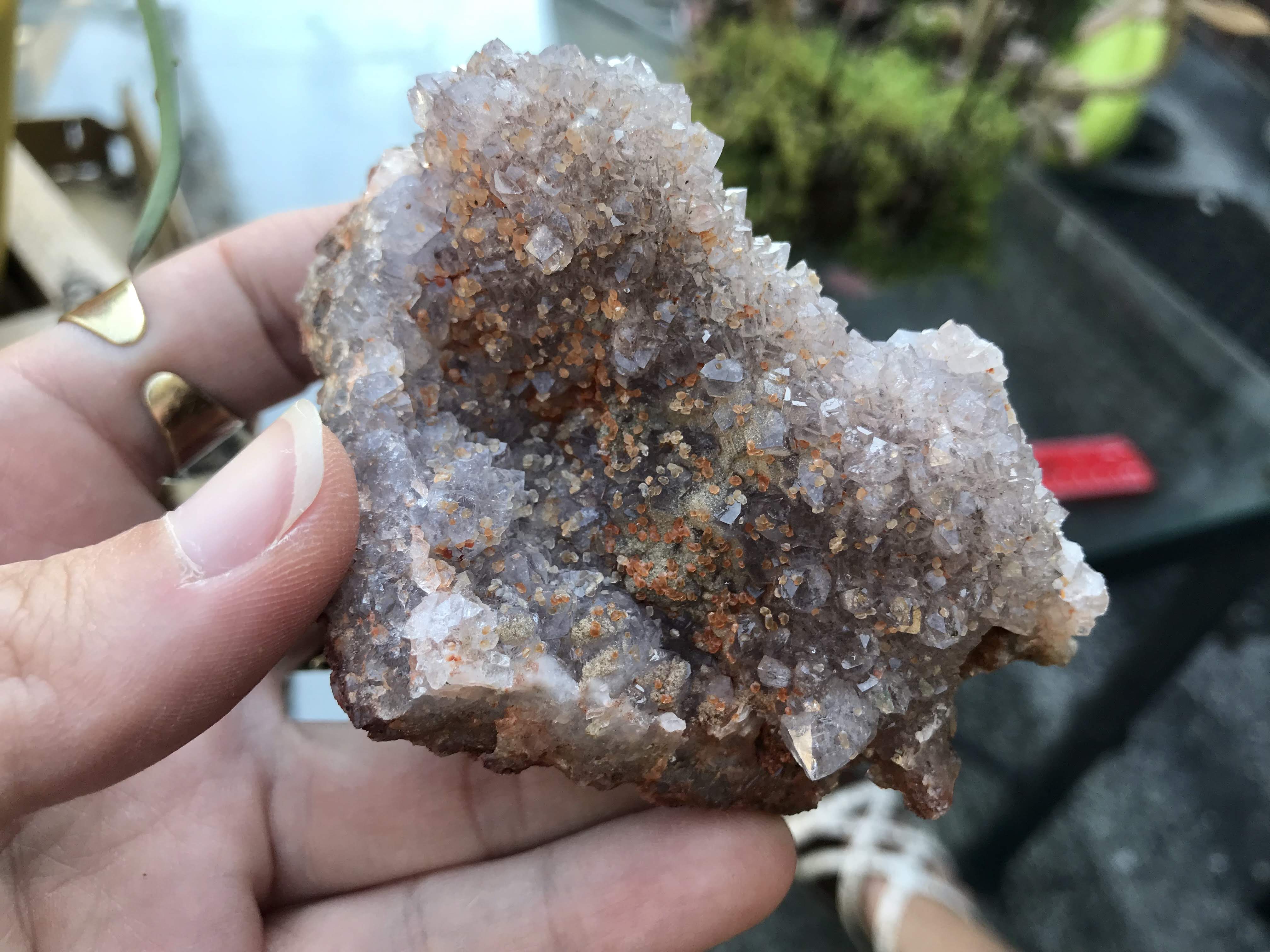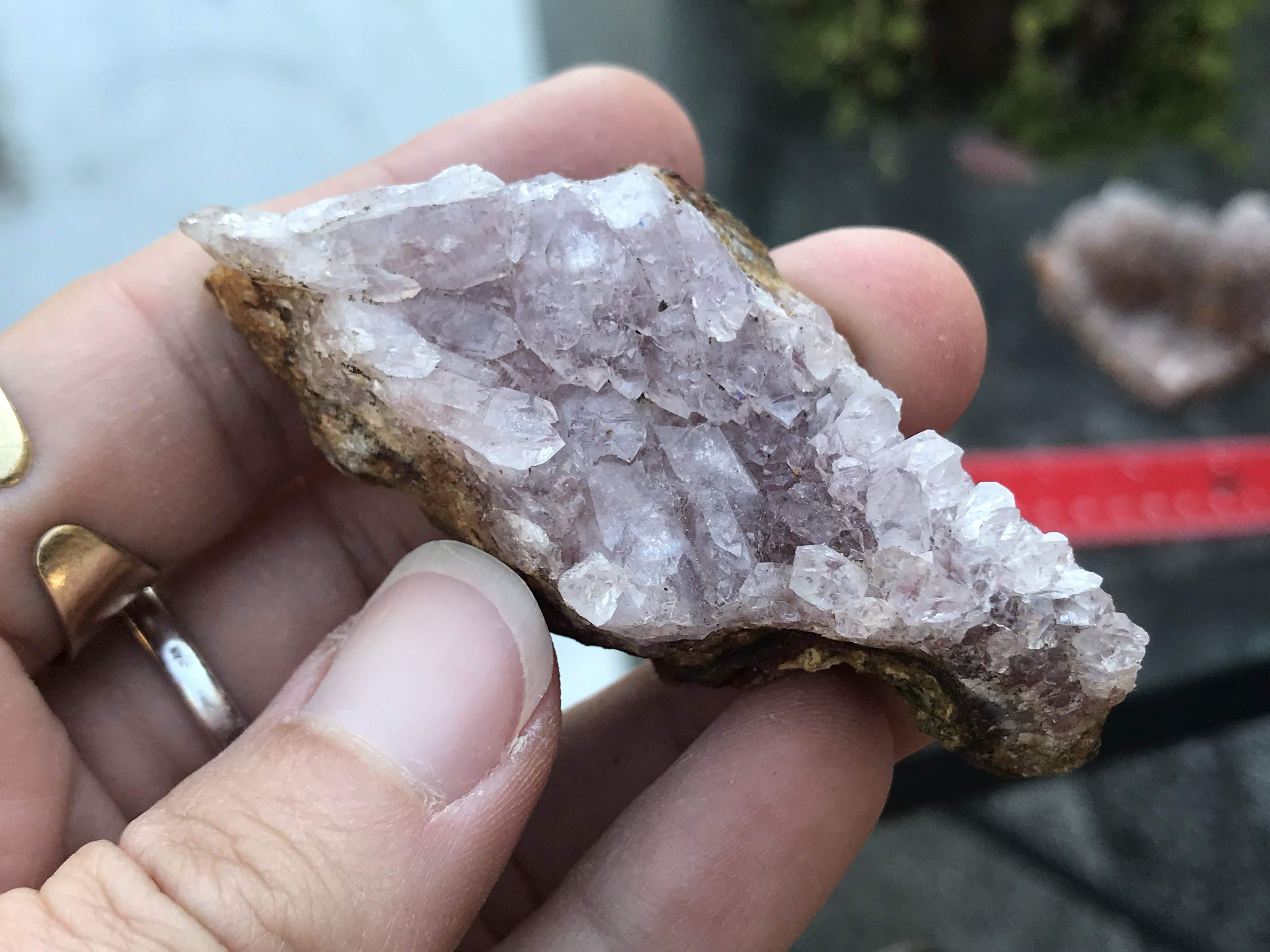 The pink appearance come from hematite in the amethyst, it's so pretty! So many crystal faces that sparkle and shine...I can't get over these colors, they look even better in person. Lovely specimens for the collection or to hold in mediation.