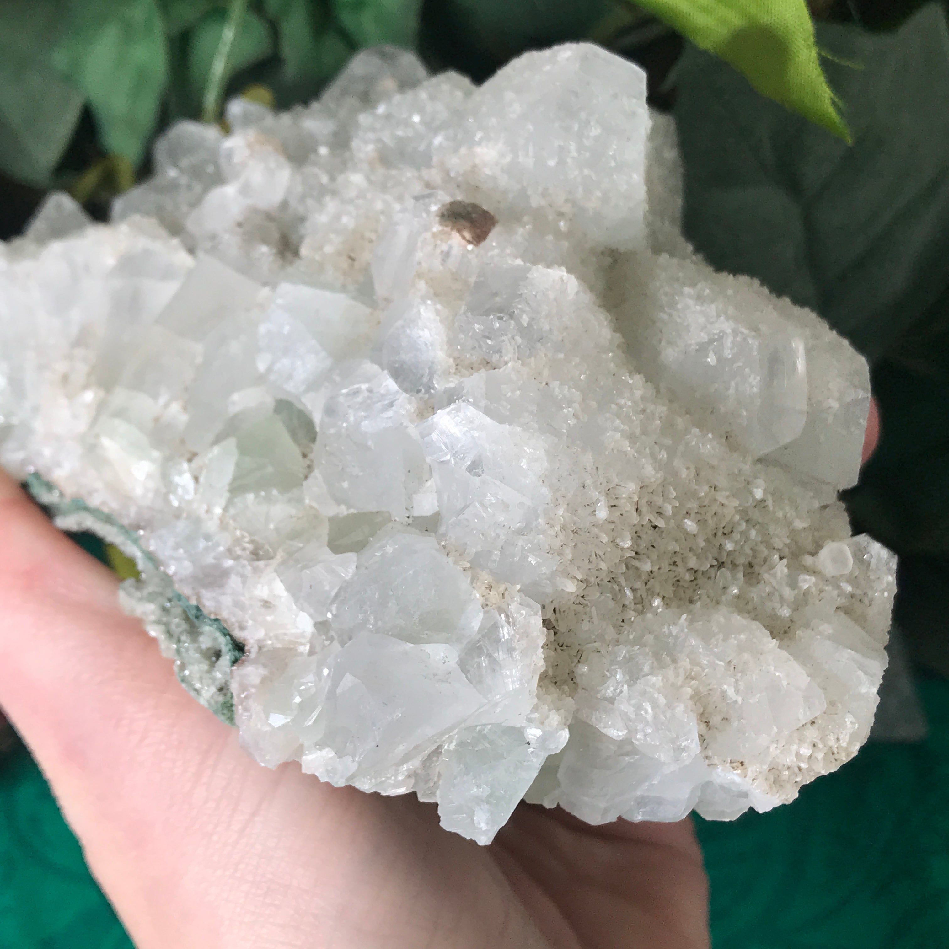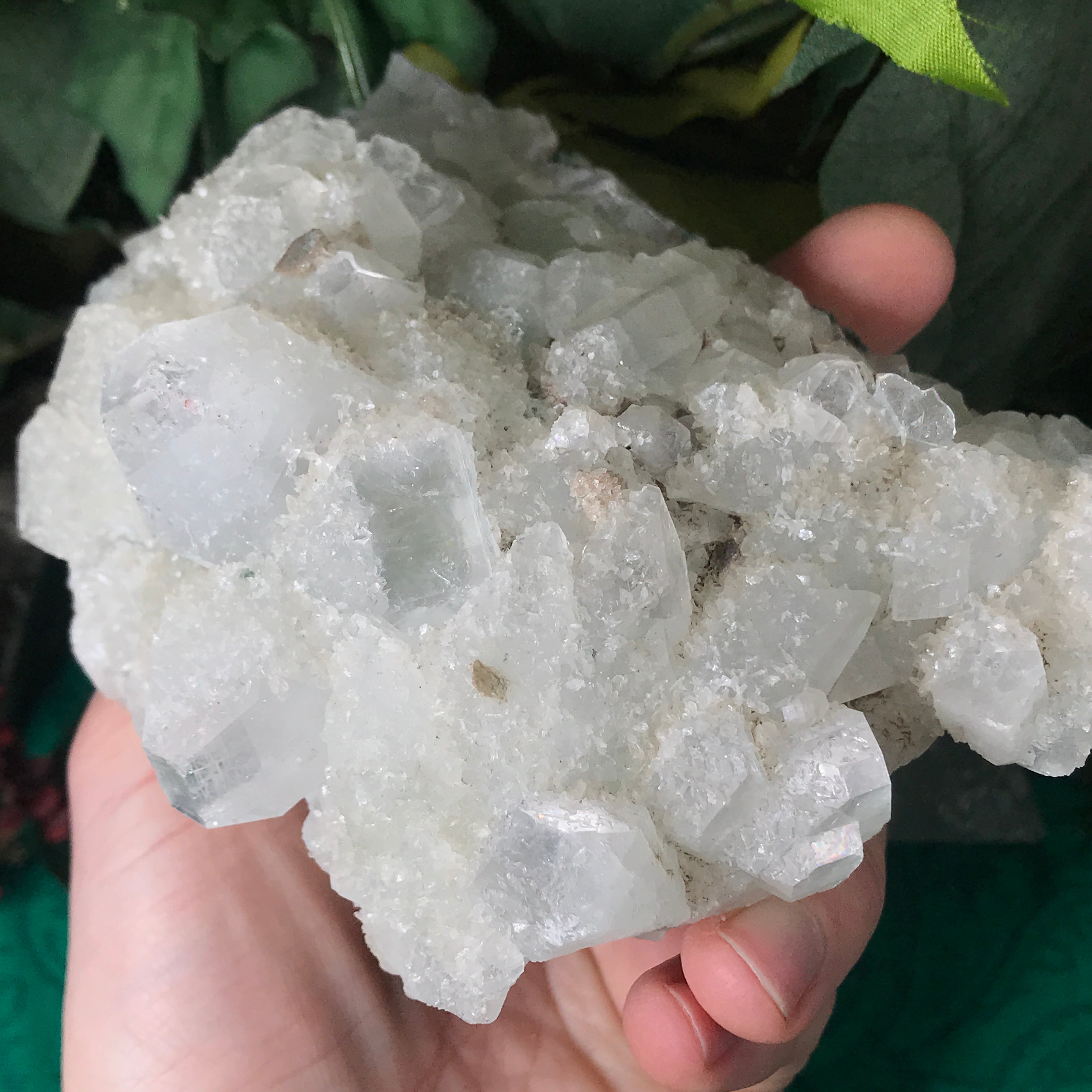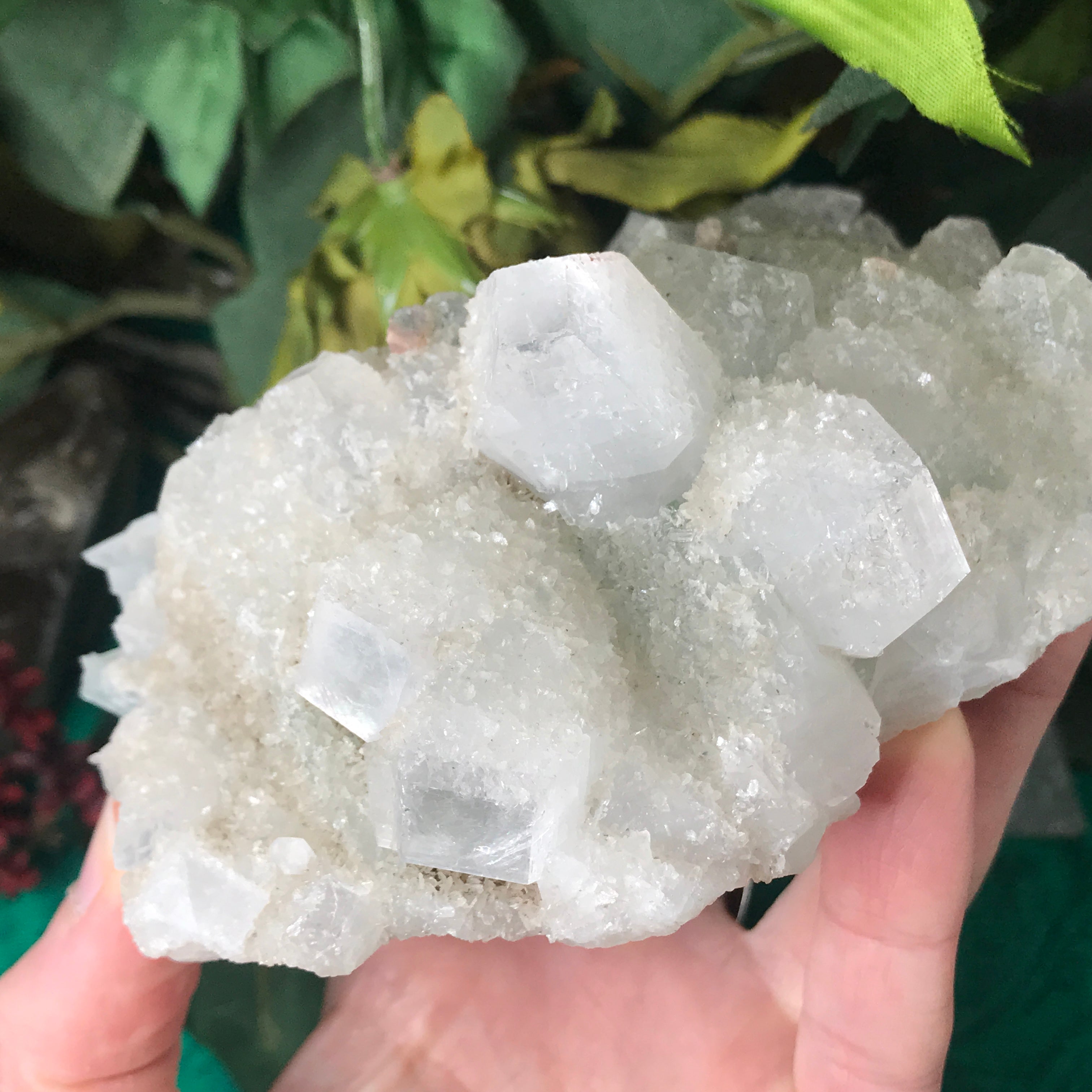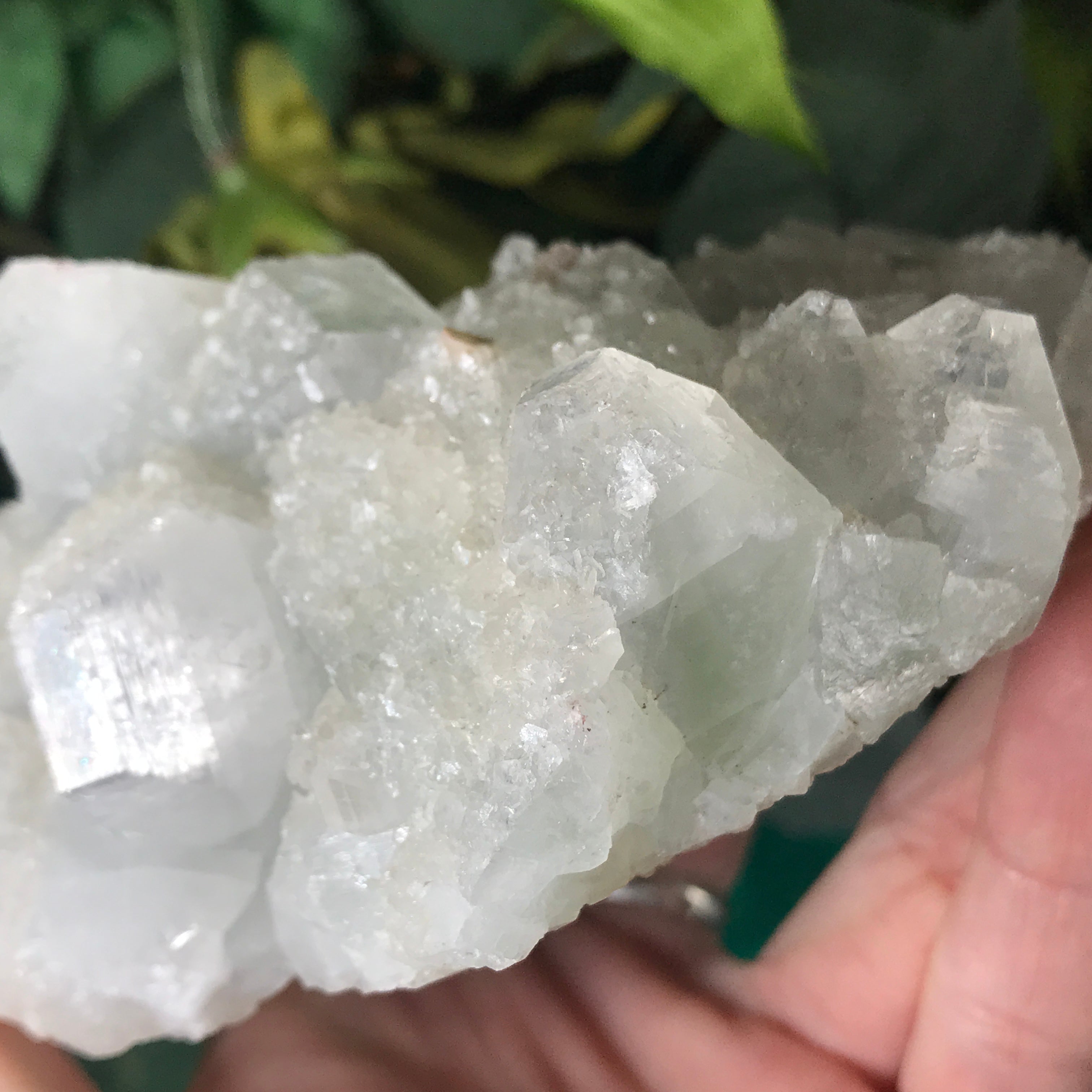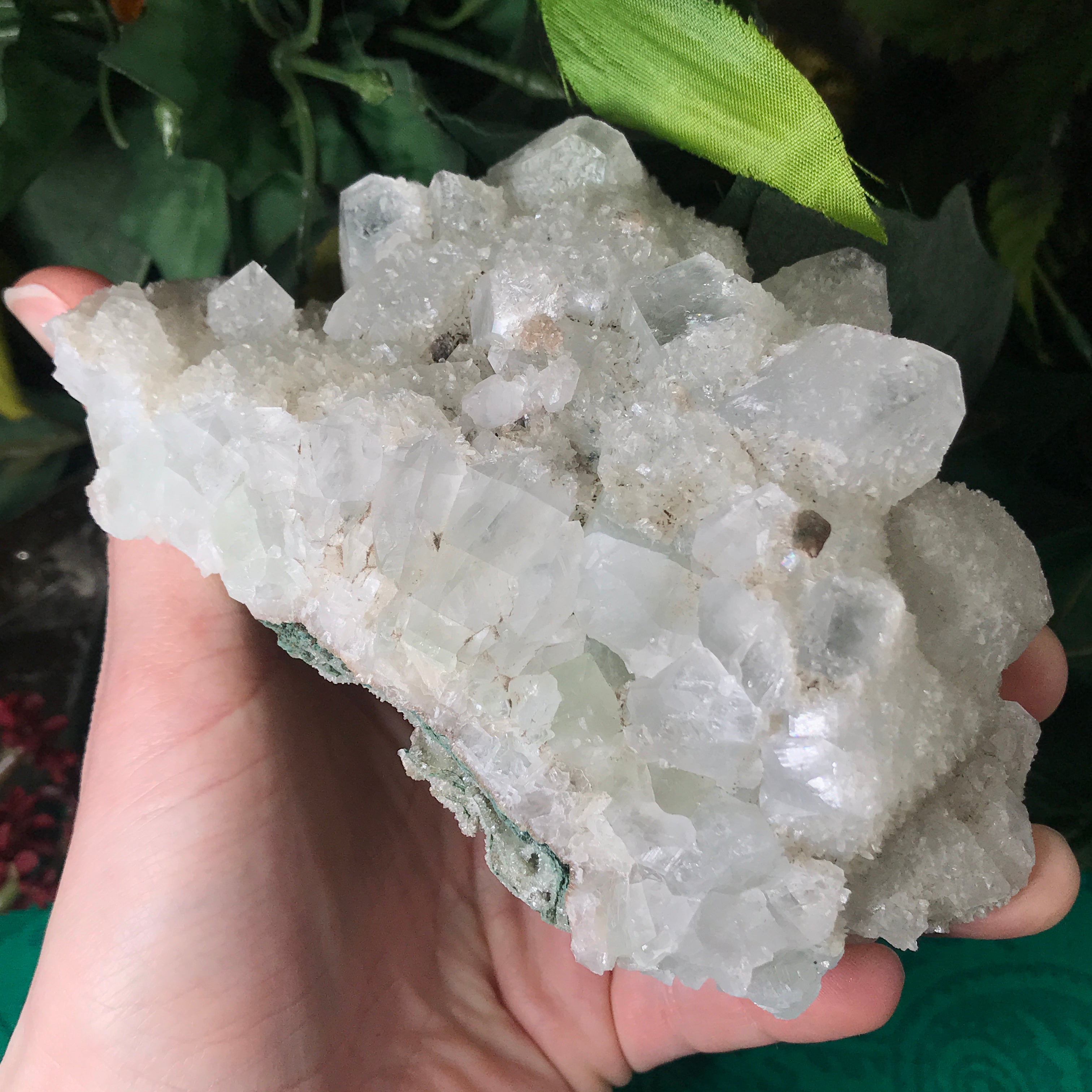 Apophyllite is a lovely high vibrational crystal that works well with clearing and activating the 3rd eye, crown & soul star chakras. This allows an easier flow of light energy/higher vibrational energy into the body & connection to the higher realms. Higher vibrational energy like apophyllite can easier open up the channel for communication with angels, guardians, guides, and spiritual awakening & gifts. It’s a very, light channeling crystal, be open to receive goodness! Strengthening your intuitive/psychic/spiritual gifts and abilities. An excellent crystal to gaze in, which may especially help one to see the future. Also a good friend to help with astral travel, helping one to hold the information they receive in a comprehensible way so that it is still understood when they return to the physical body.