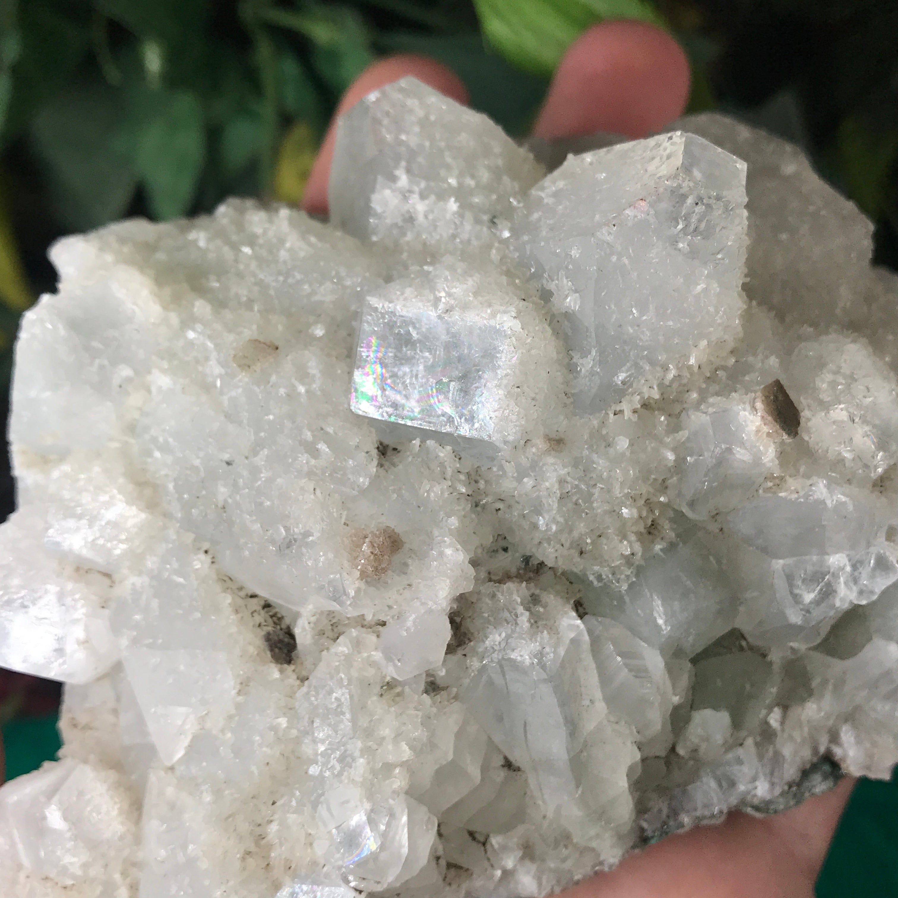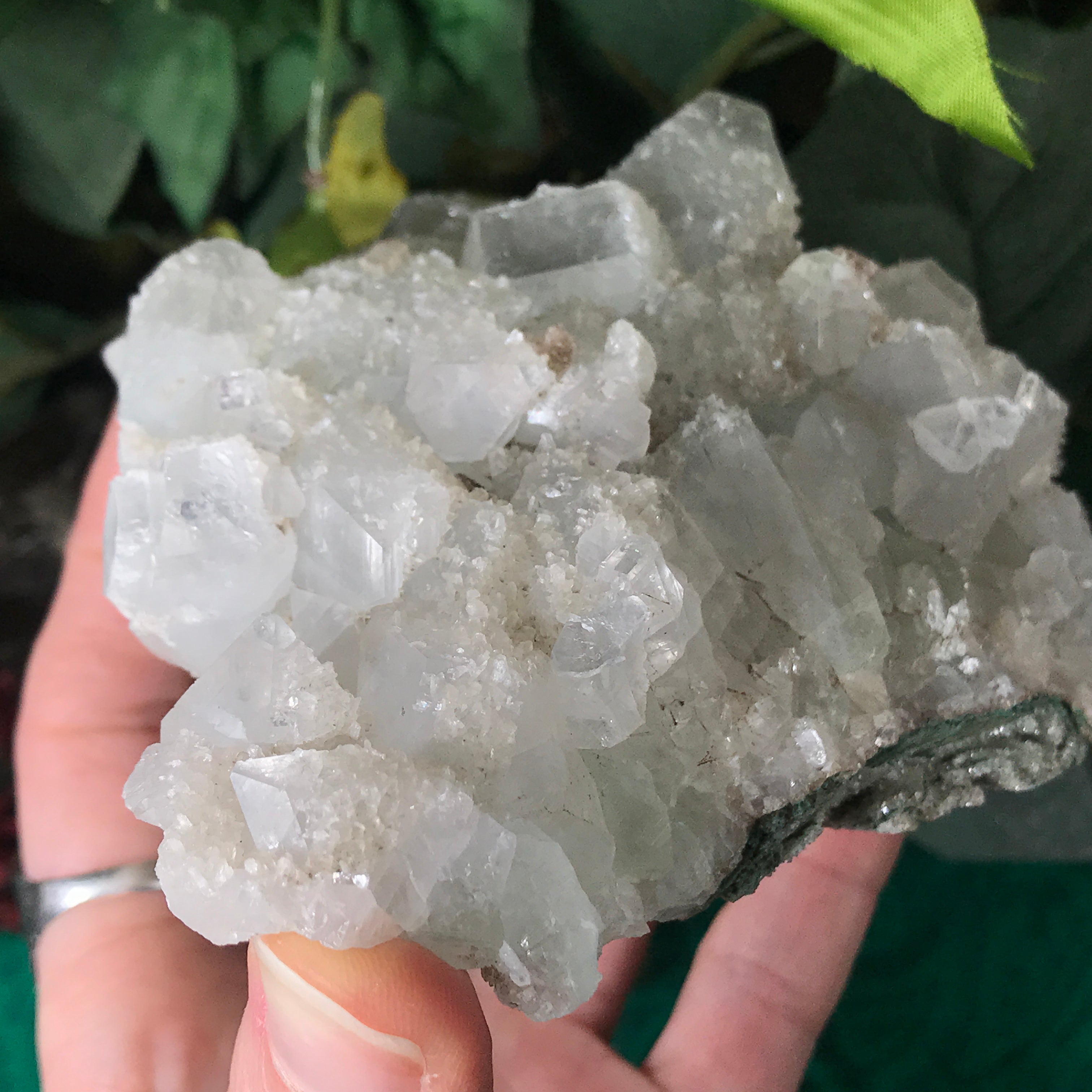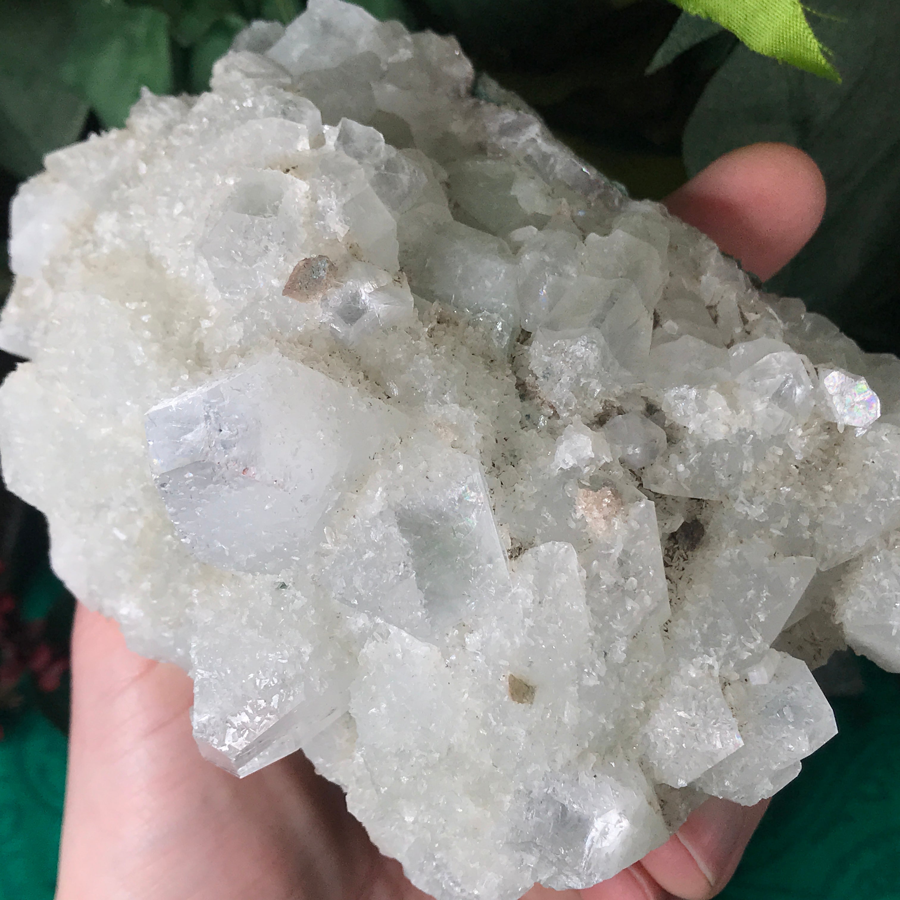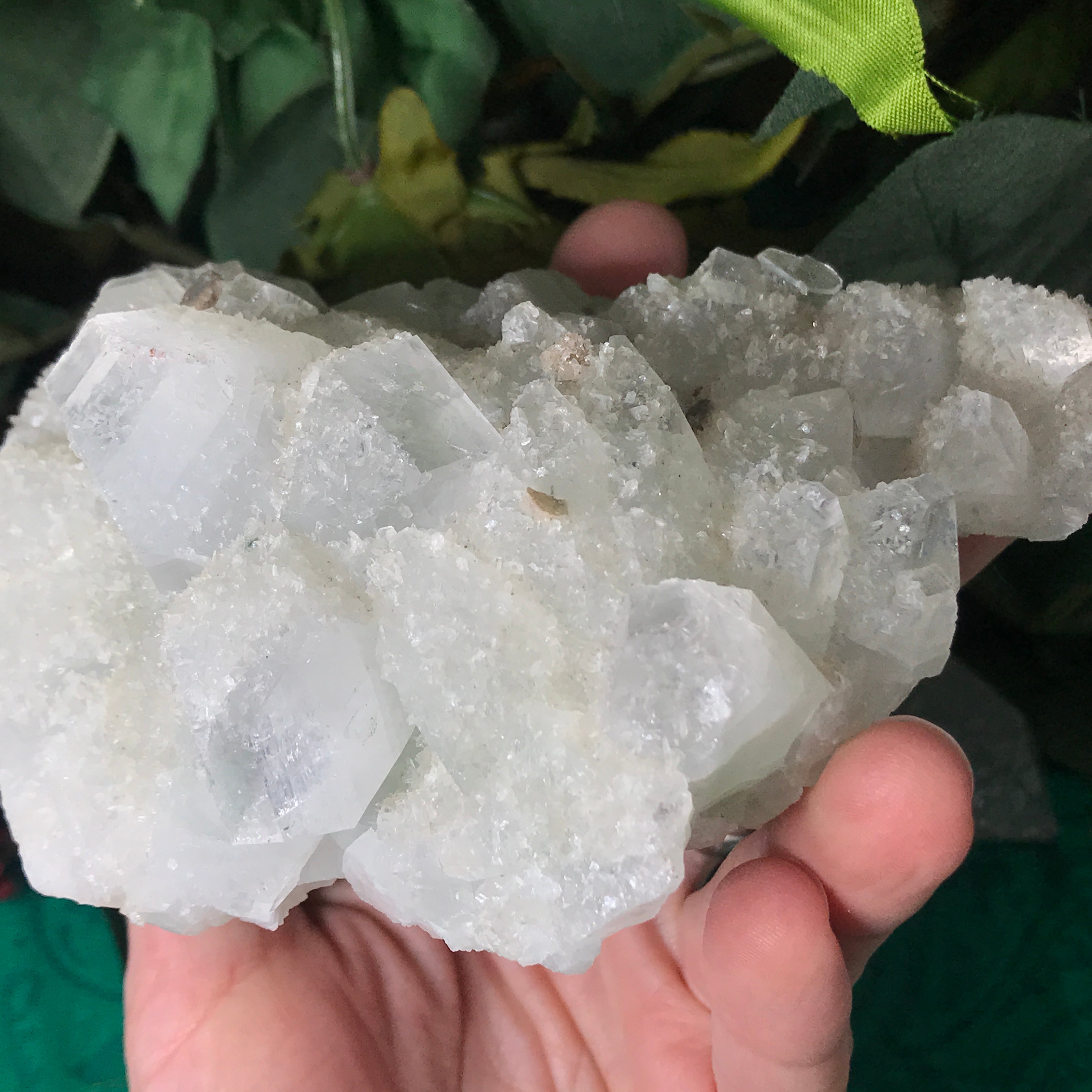 Apophyllite is a lovely high vibrational crystal that works well with clearing and activating the 3rd eye, crown & soul star chakras. This allows an easier flow of light energy/higher vibrational energy into the body & connection to the higher realms. Higher vibrational energy like apophyllite can easier open up the channel for communication with angels, guardians, guides, and spiritual awakening & gifts. It’s a very, light channeling crystal, be open to receive goodness! Strengthening your intuitive/psychic/spiritual gifts and abilities. An excellent crystal to gaze in, which may especially help one to see the future. Also a good friend to help with astral travel, helping one to hold the information they receive in a comprehensible way so that it is still understood when they return to the physical body.