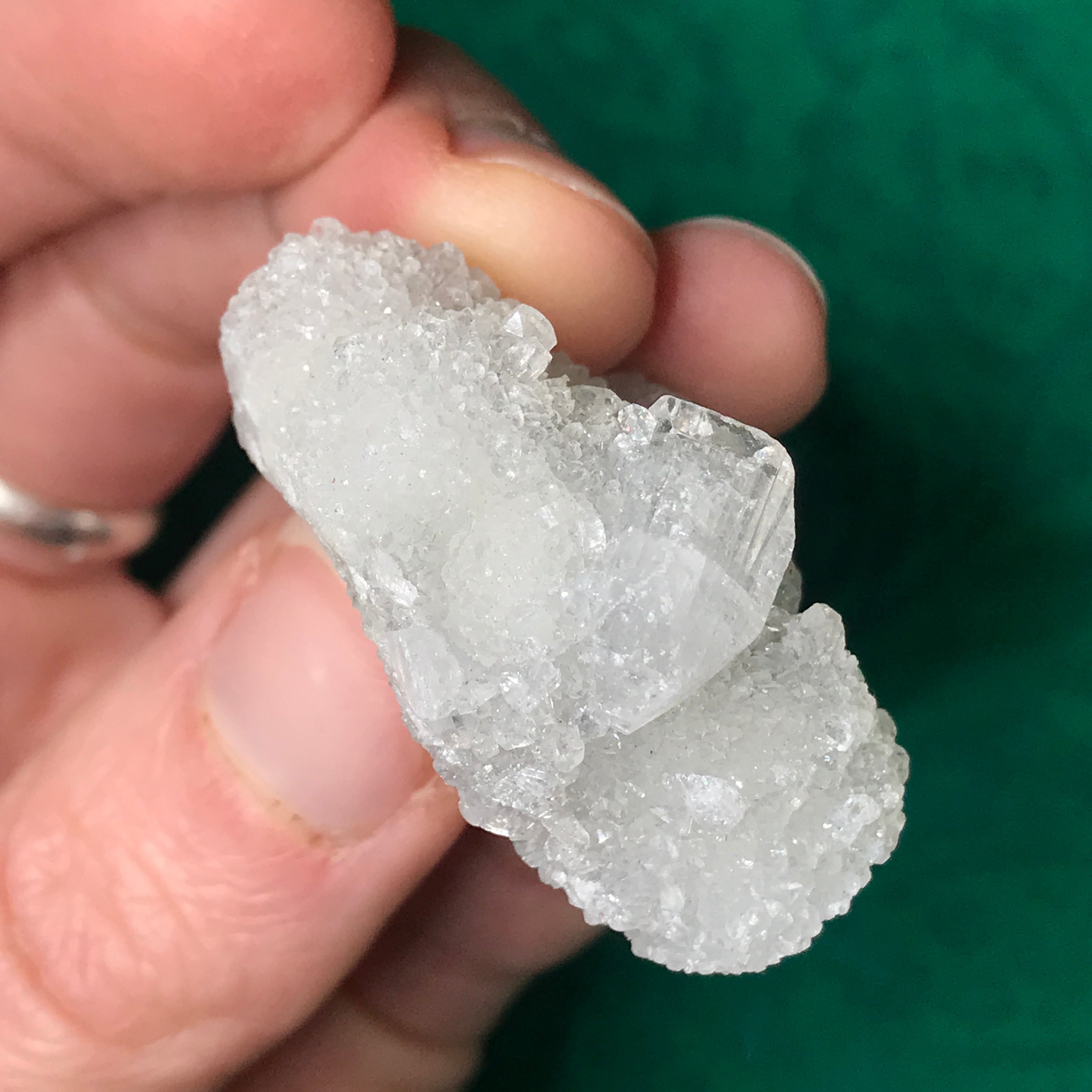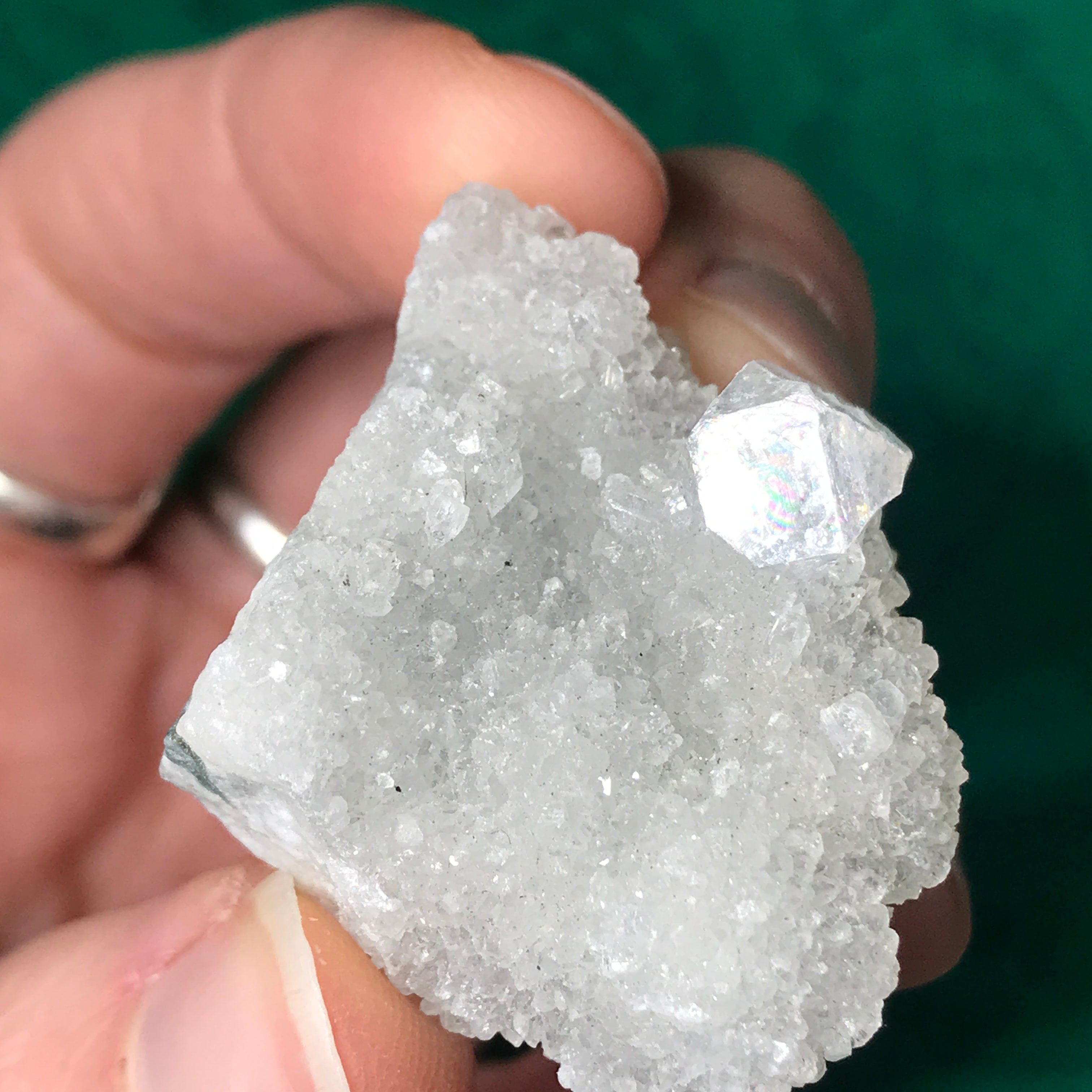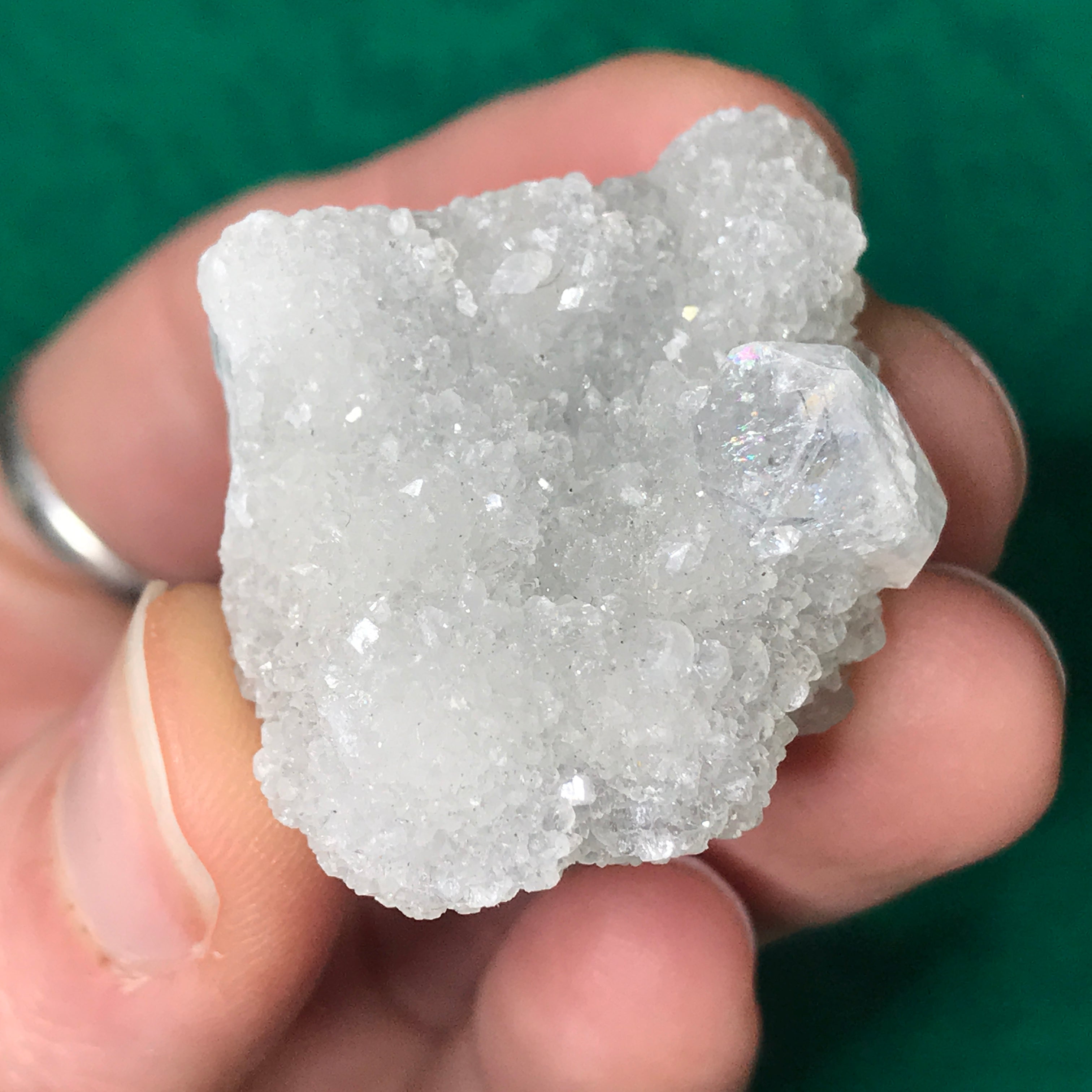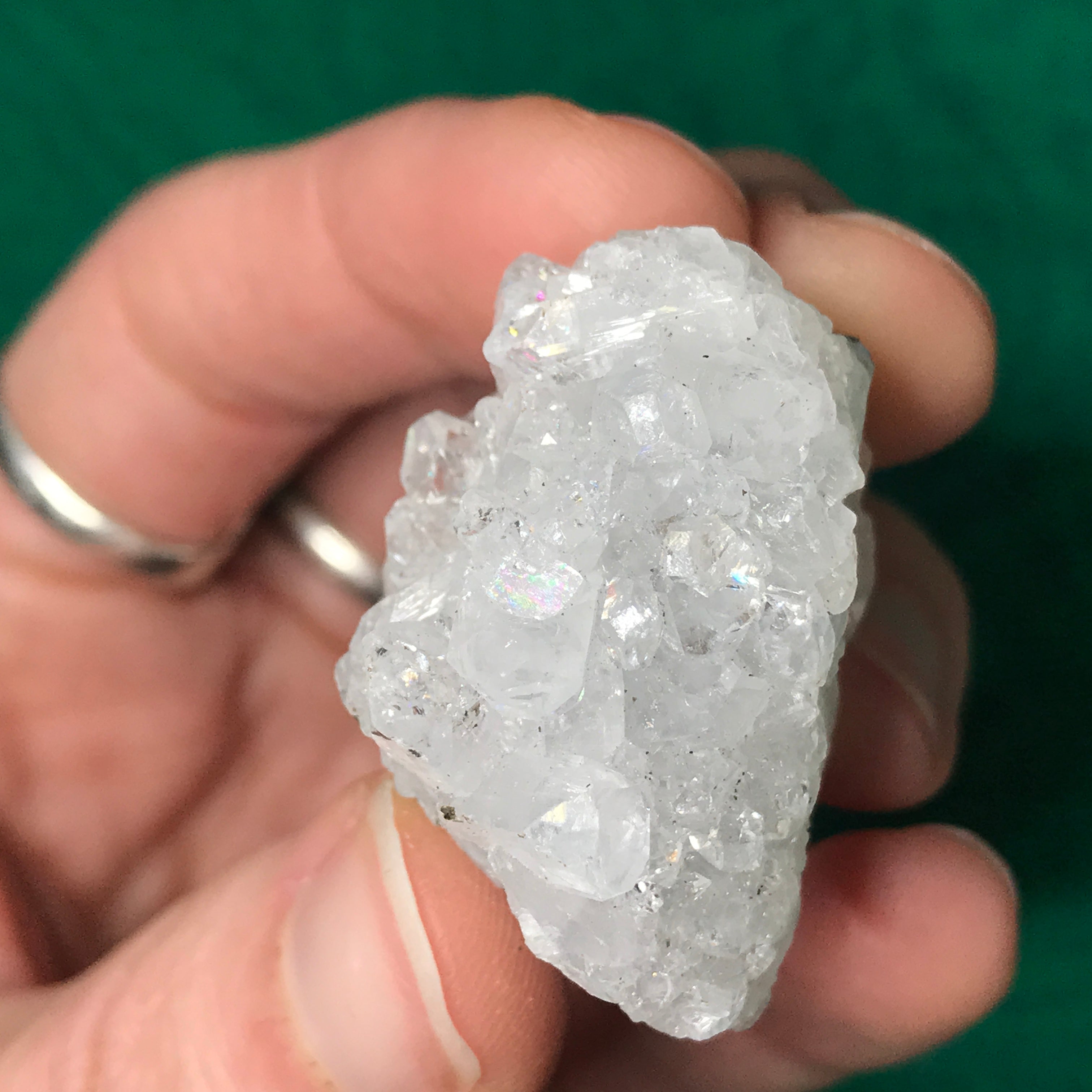 Small-medium sized apophyllite clusters here! Some with super water clear crystals, some with chalcedony (adds the blue color) and one big-ole lone crystal. The video is a MUST see as photos just do not do these heavenly beauties justice!