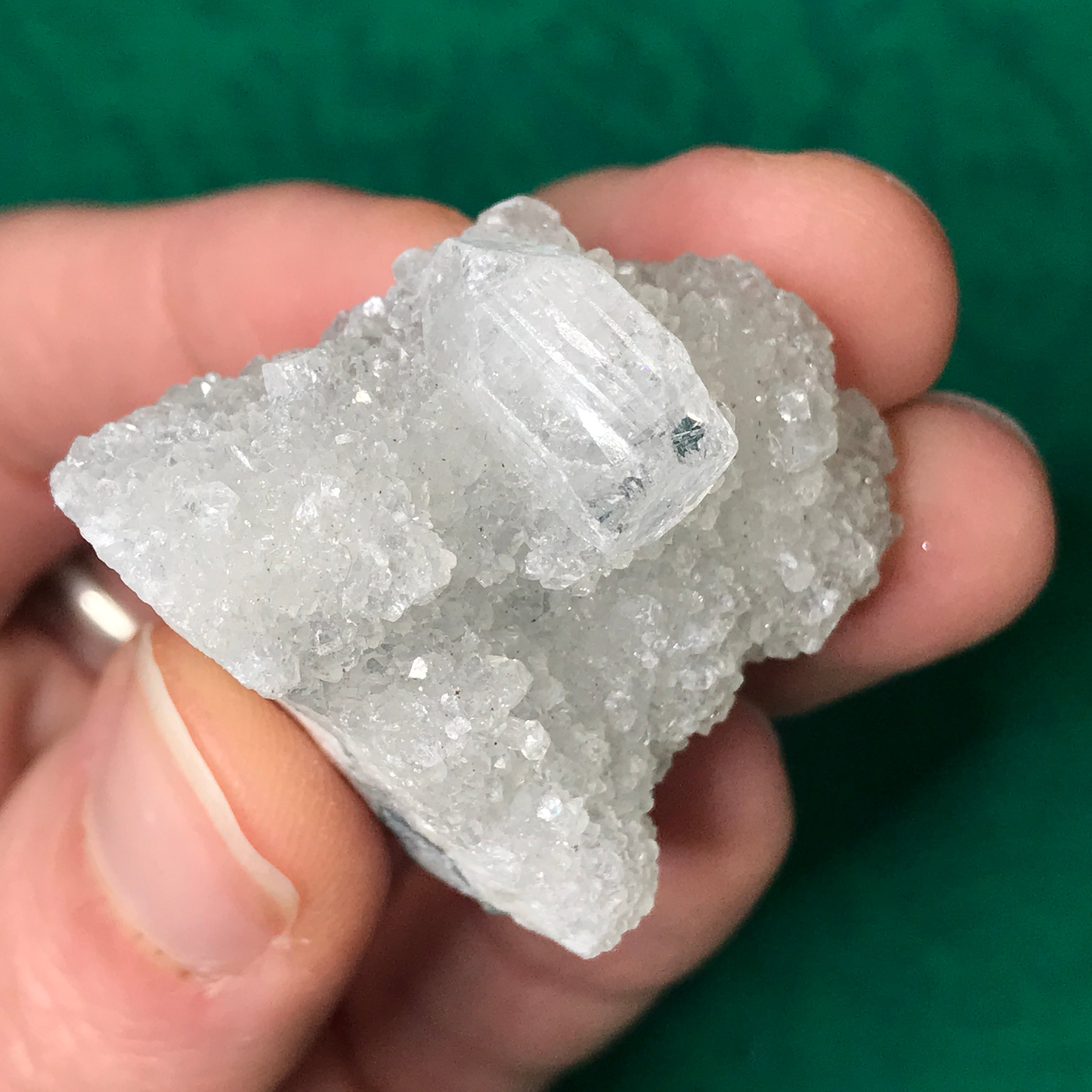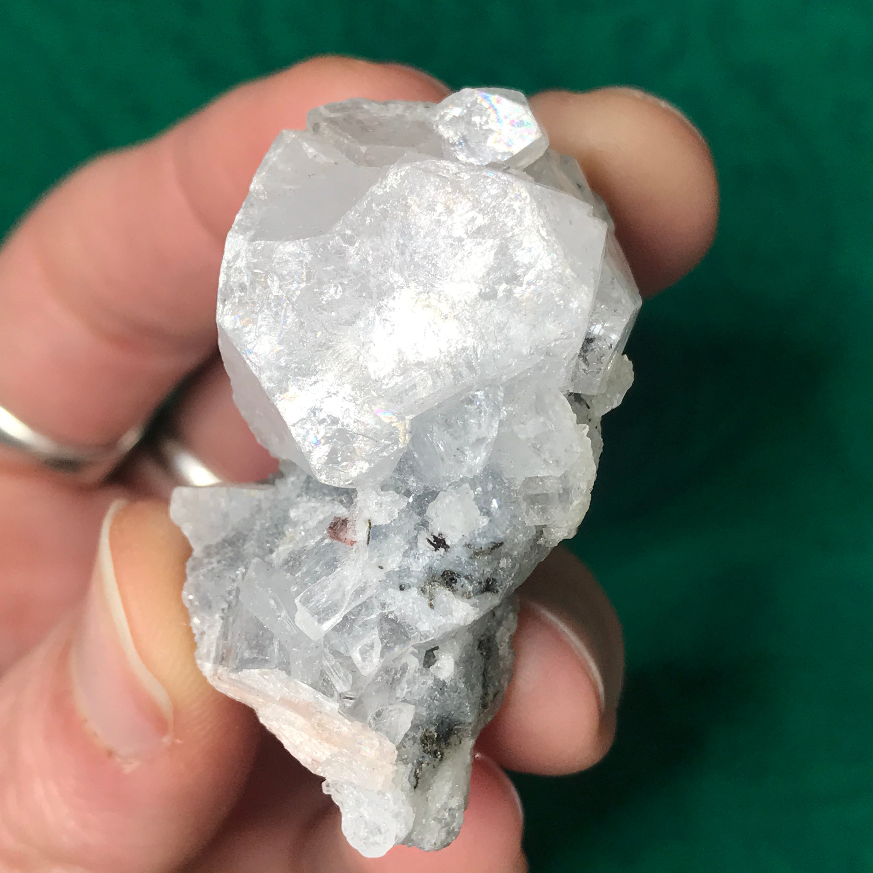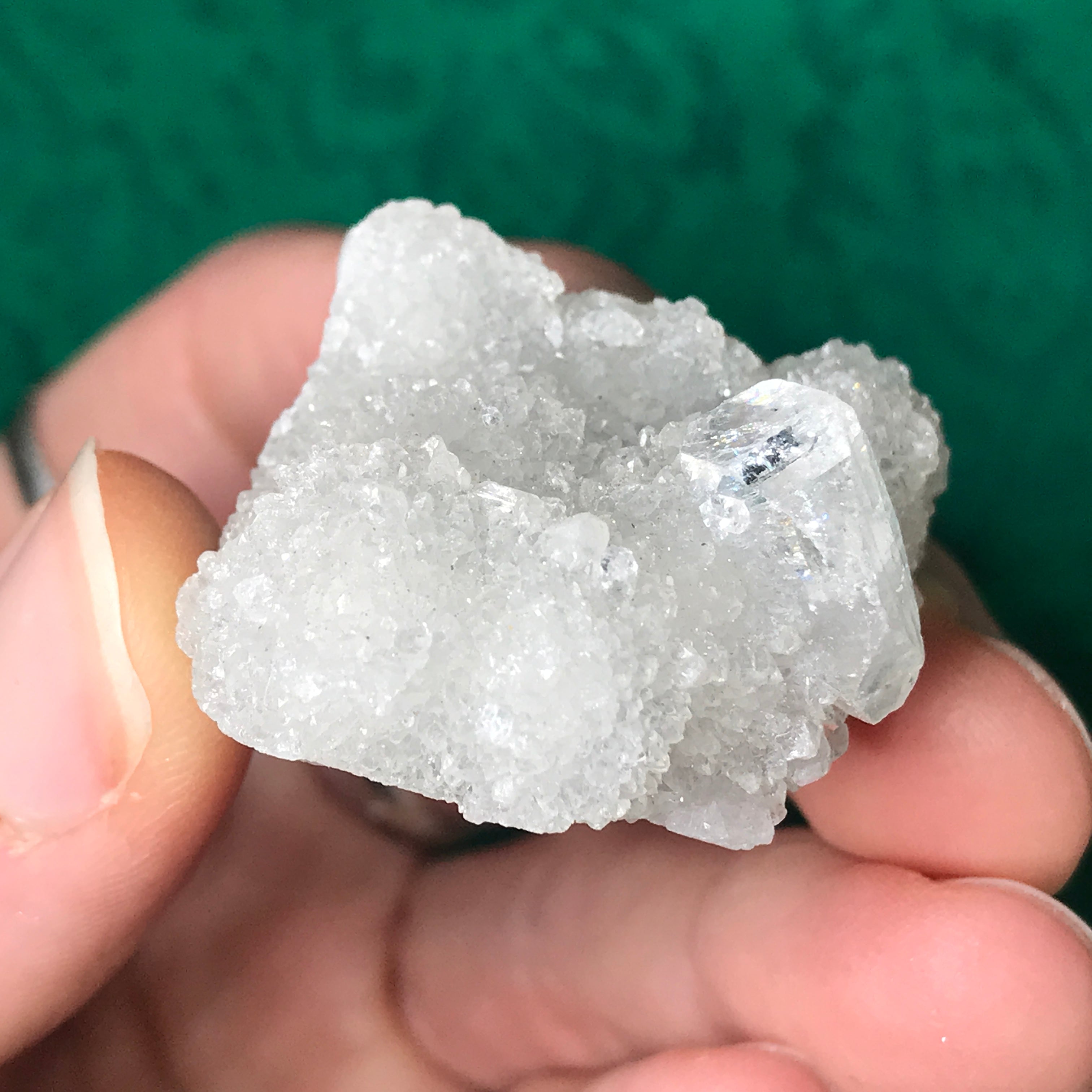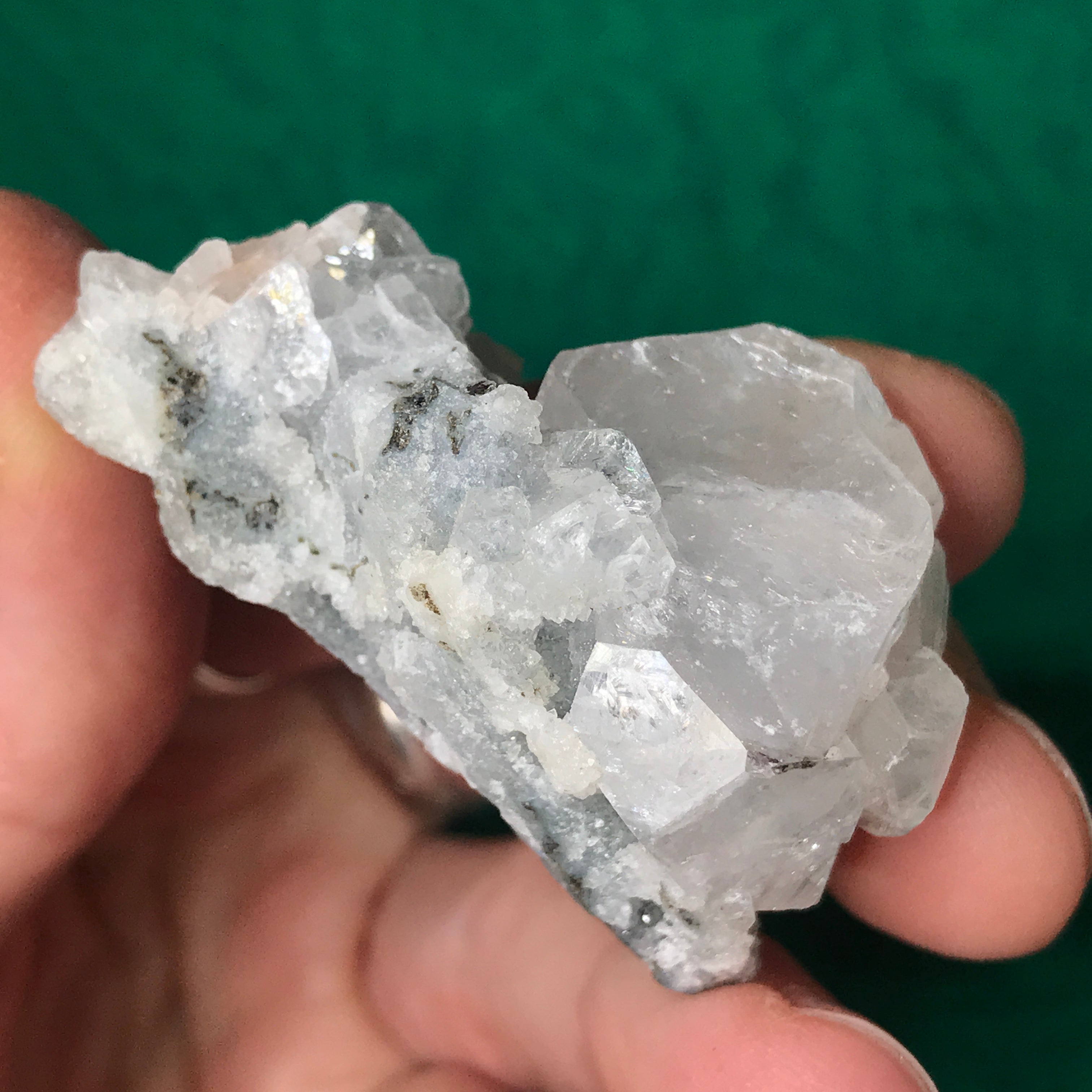 Small-medium sized apophyllite clusters here! Some with super water clear crystals, some with chalcedony (adds the blue color) and one big-ole lone crystal. The video is a MUST see as photos just do not do these heavenly beauties justice!