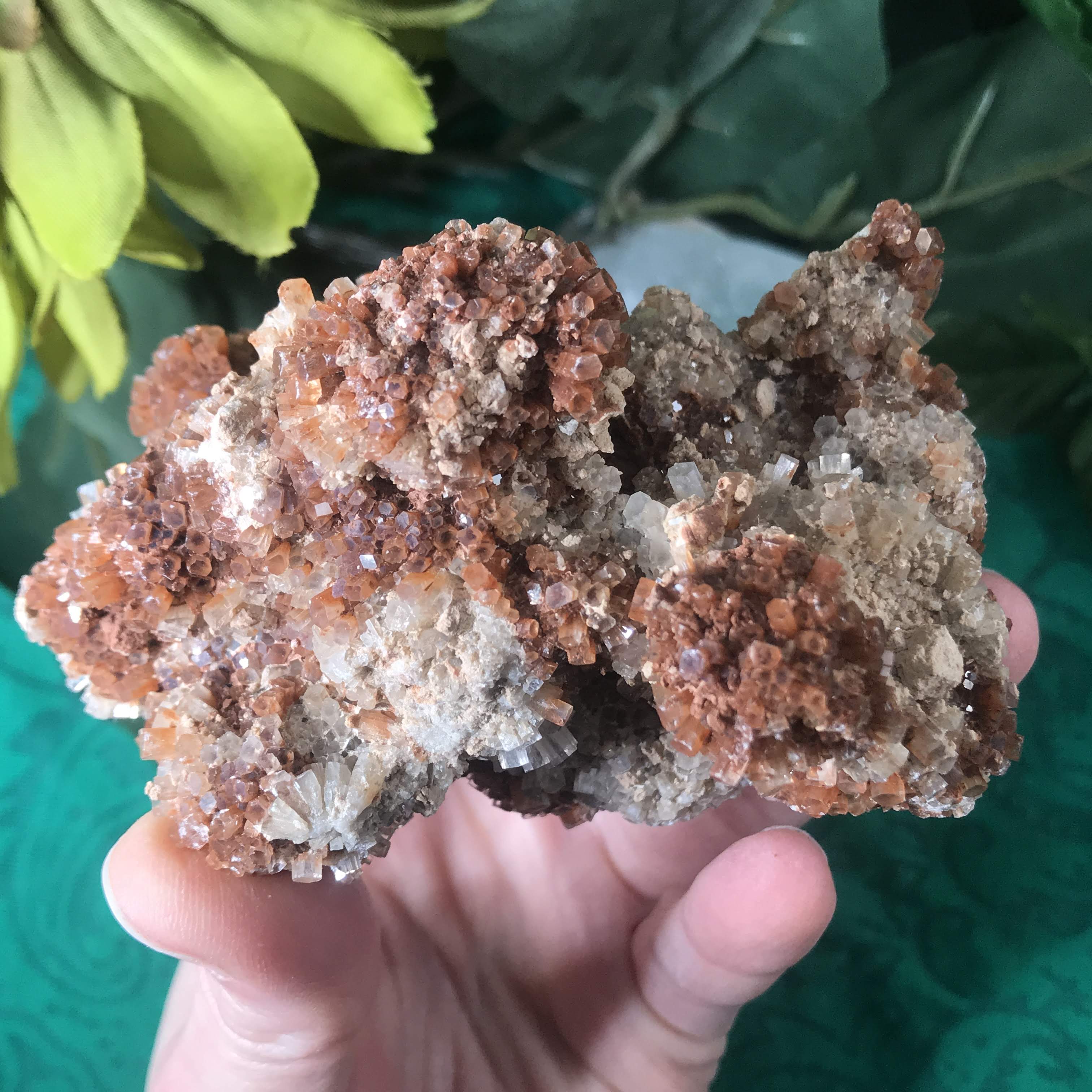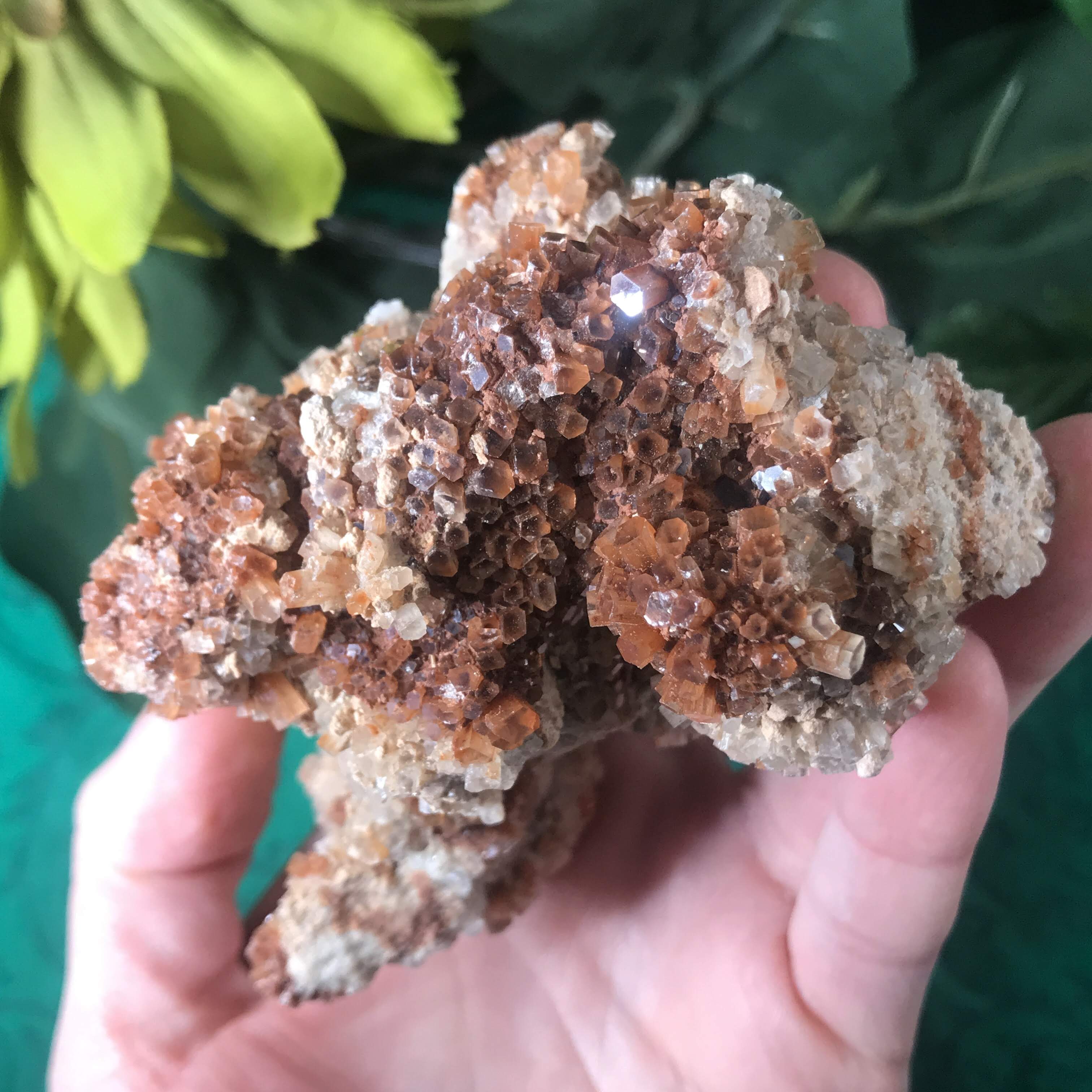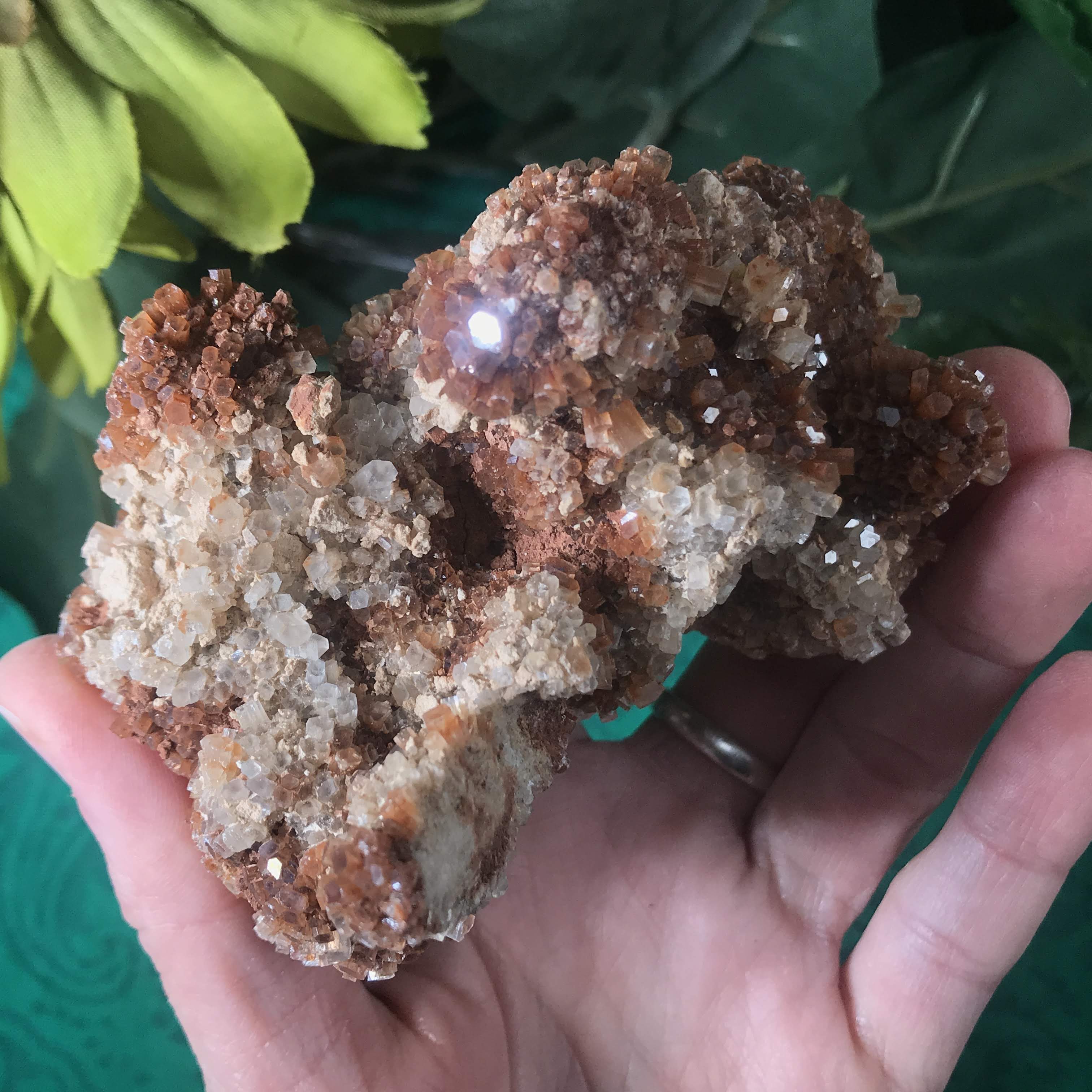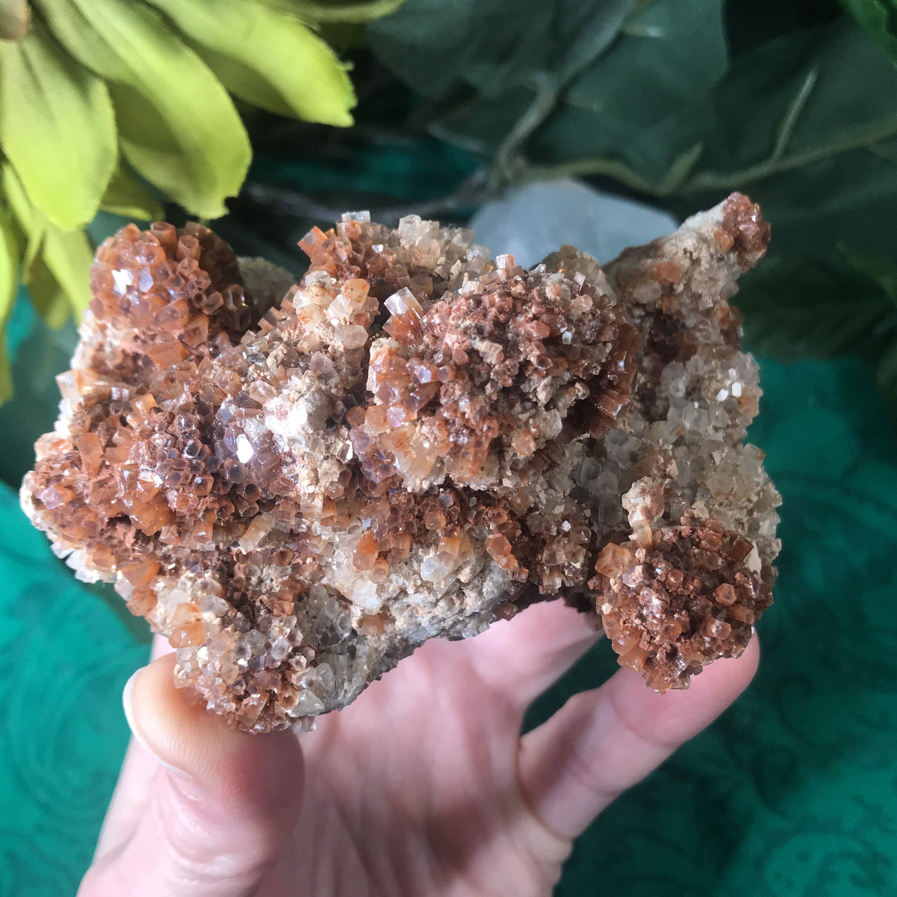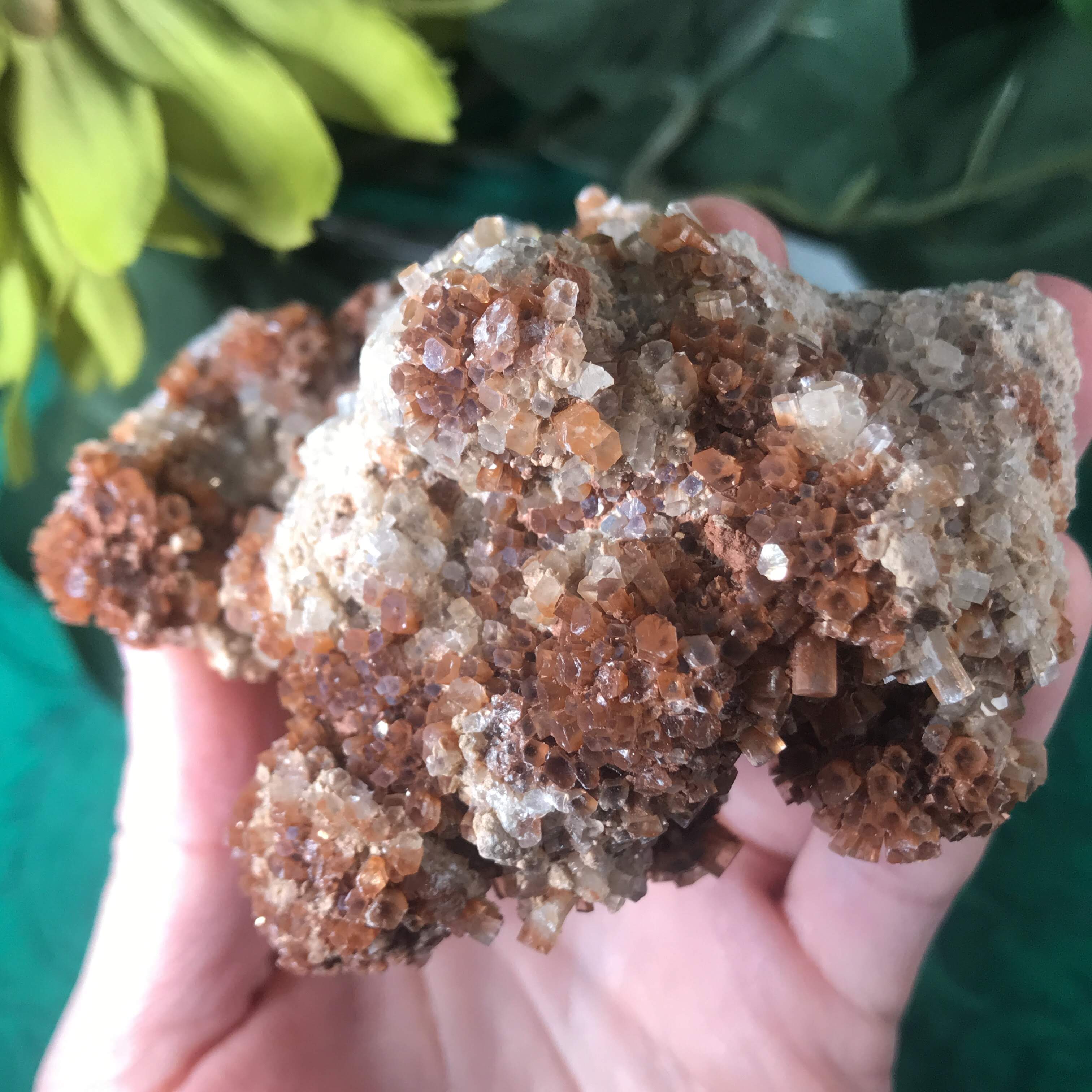 Aragonite! Aragonite is usually found to be white, yellow/gold, green, brown, and blue. When the crystals have the more red-brown color it is from iron or hematite with the crystal. It’s really neat to see these bi-colored crystals in the bunch here! These gorgeous earthy crystals will be a super choice for grounding. They are deeply connected to earth and also an earth healer that may help one be more present with respecting the forces and strong energy of nature. As I’m writing this, and chillin with some aragonite, I keep being brought back to seeing and feeling strong thick white roots growing and spreading down, connecting with and flowing through & caressing fresh healthy soil many layers below the surface. Excellent for root and earth star chakra work. As this crystal can help ground your energy & what you need to release (whether surface or deep rooted energies) into the depths of earth for her to transmute and stabilize. Although very grounding it also does aid a nice uplift and a lil refresh to your energy as well. Allow all those attachments & energies that are no longer serving your greater good flow into the beautiful arms of Gaia, and feel lifted. Let that stress go, breathe, let your nerves settle and release that static, and allow your vibration to rise.