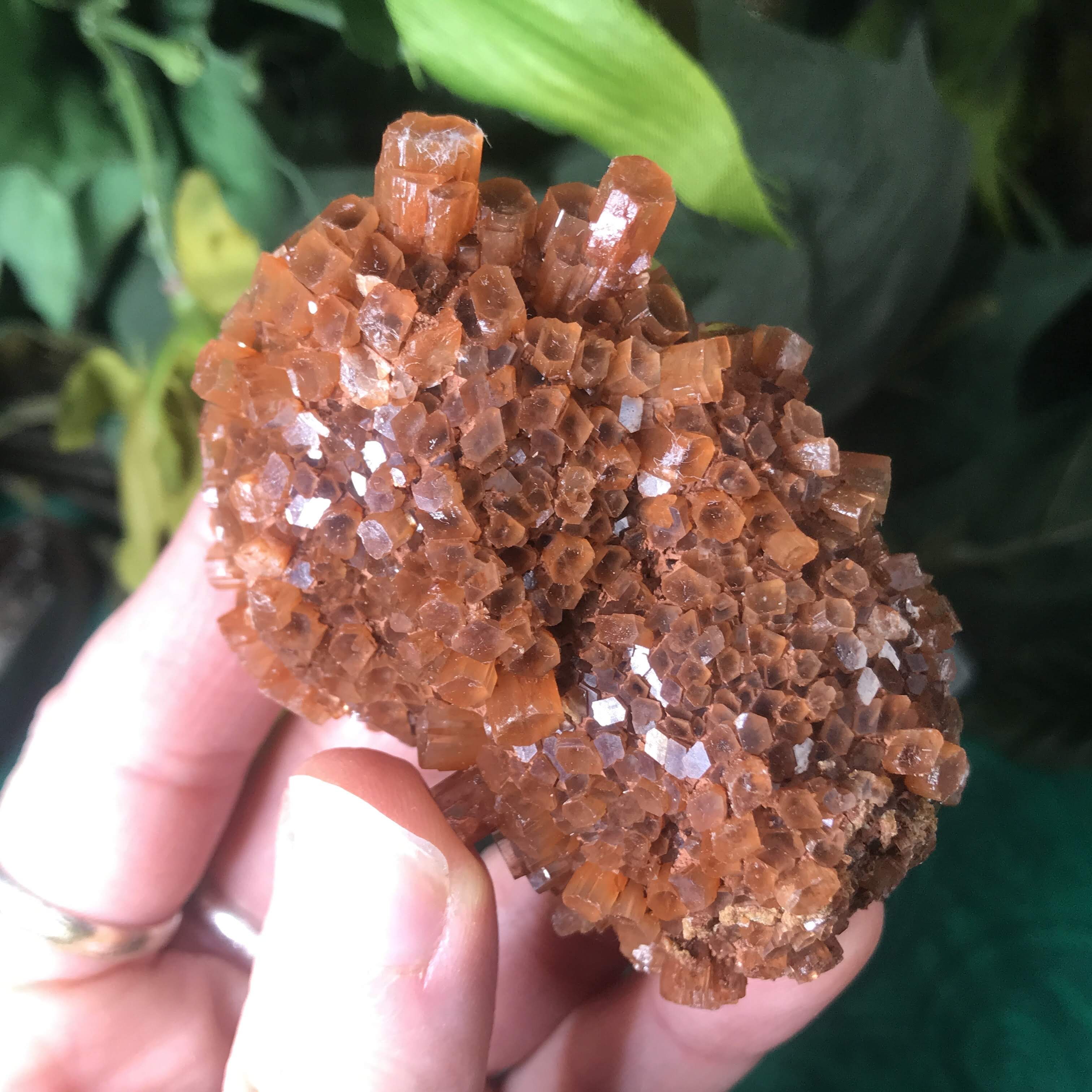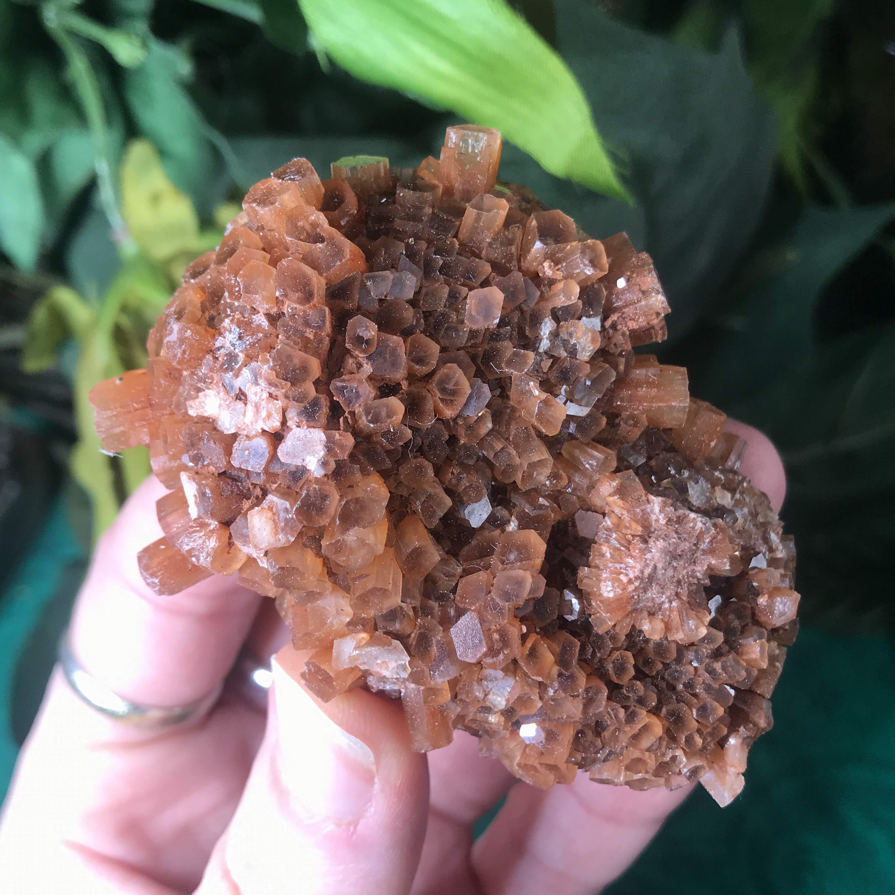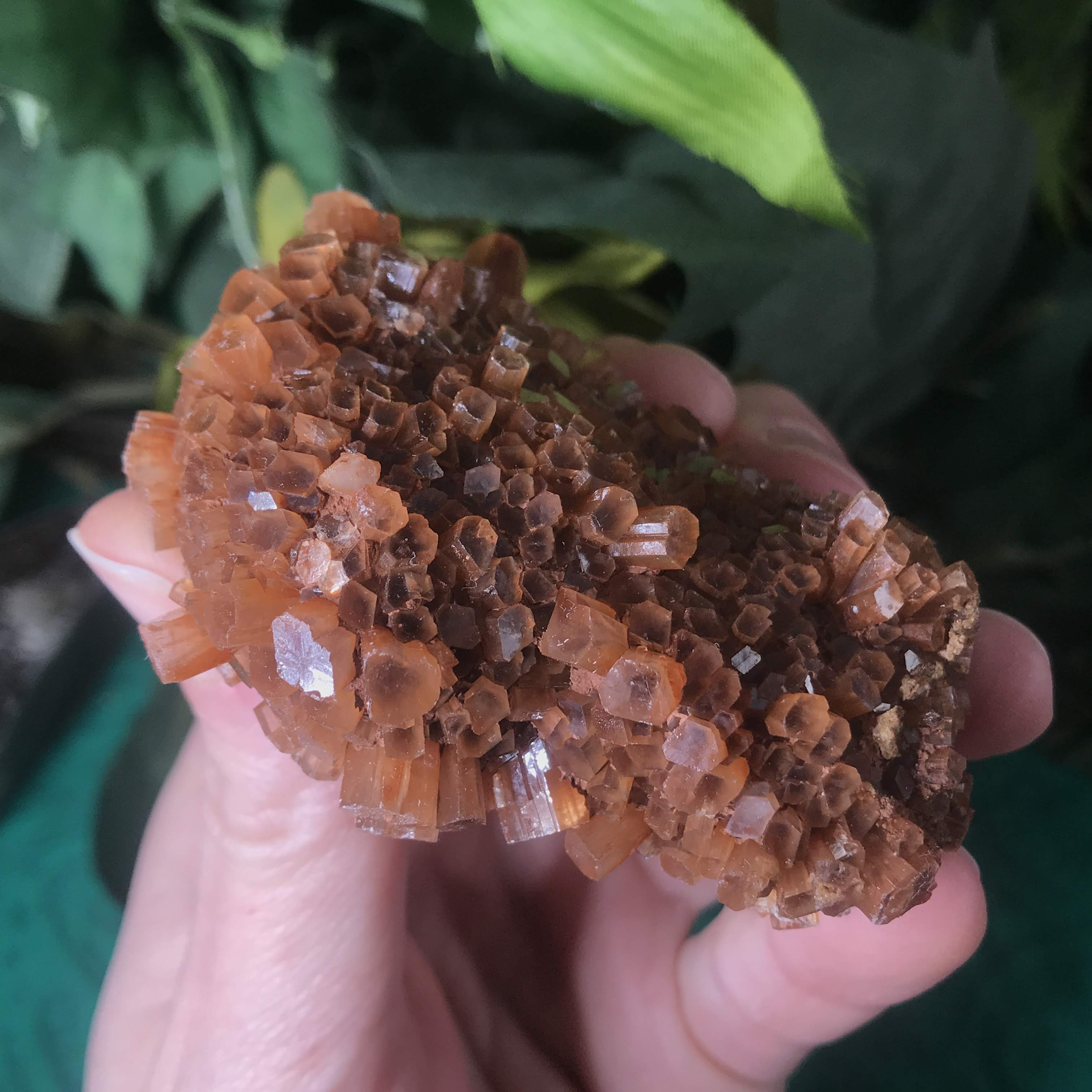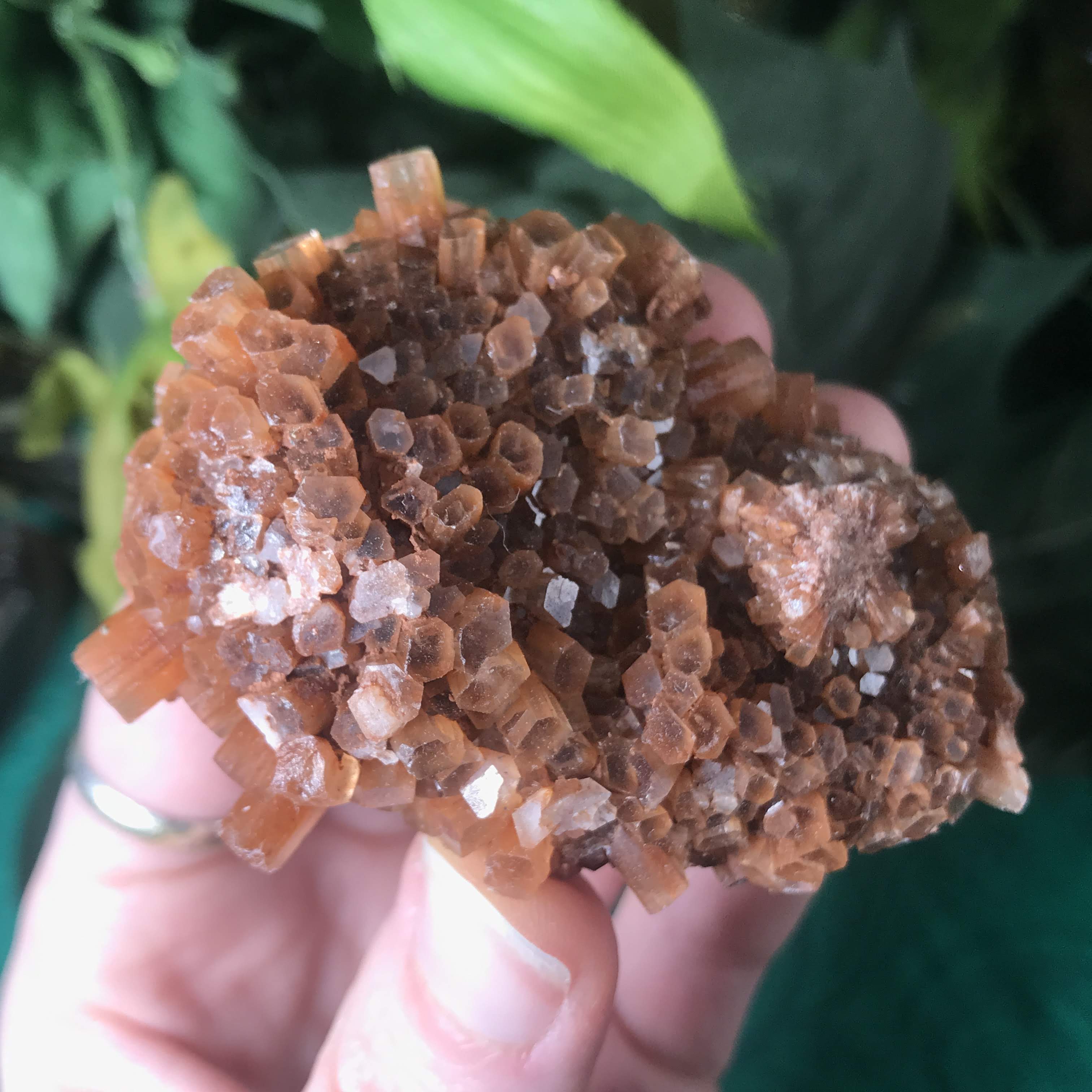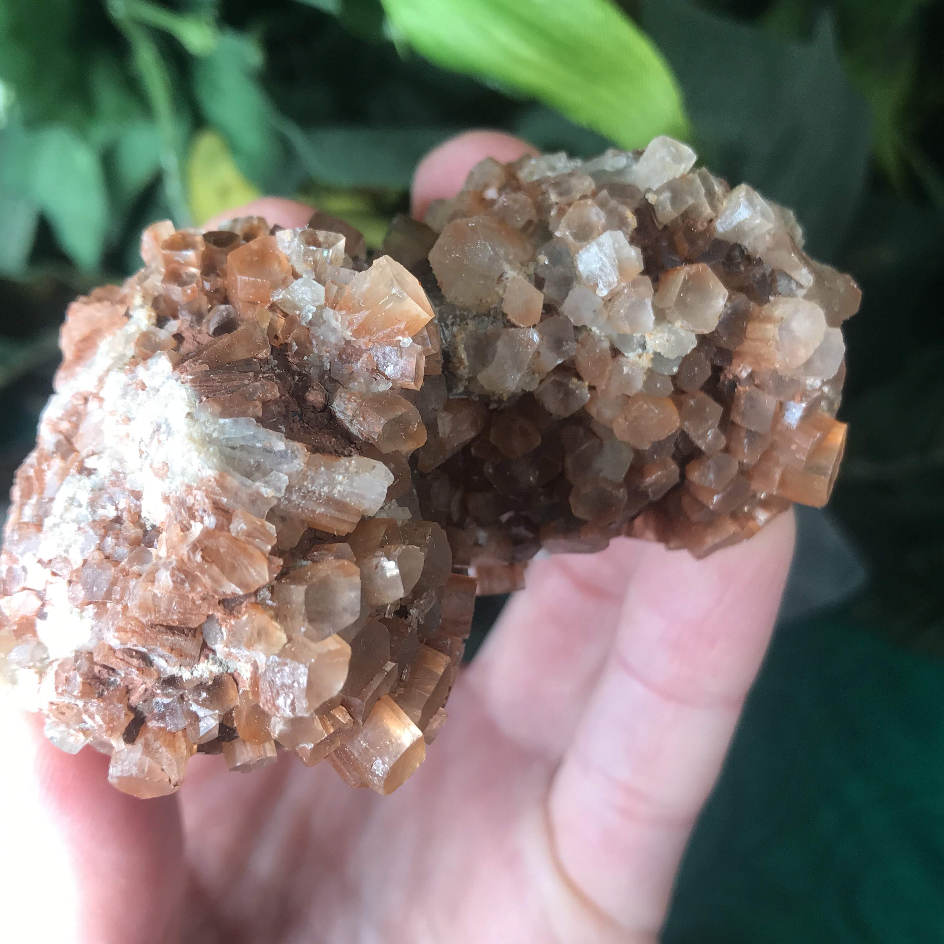 Aragonite! Aragonite is usually found to be white, yellow/gold, green, brown, and blue. When the crystals have the more red-brown color it is from iron or hematite with the crystal. It’s really neat to see these bi-colored crystals in the bunch here! These gorgeous earthy crystals will be a super choice for grounding. They are deeply connected to earth and also an earth healer that may help one be more present with respecting the forces and strong energy of nature. As I’m writing this, and chillin with some aragonite, I keep being brought back to seeing and feeling strong thick white roots growing and spreading down, connecting with and flowing through & caressing fresh healthy soil many layers below the surface. Excellent for root and earth star chakra work. As this crystal can help ground your energy & what you need to release (whether surface or deep rooted energies) into the depths of earth for her to transmute and stabilize. Although very grounding it also does aid a nice uplift and a lil refresh to your energy as well. Allow all those attachments & energies that are no longer serving your greater good flow into the beautiful arms of Gaia, and feel lifted. Let that stress go, breathe, let your nerves settle and release that static, and allow your vibration to rise.