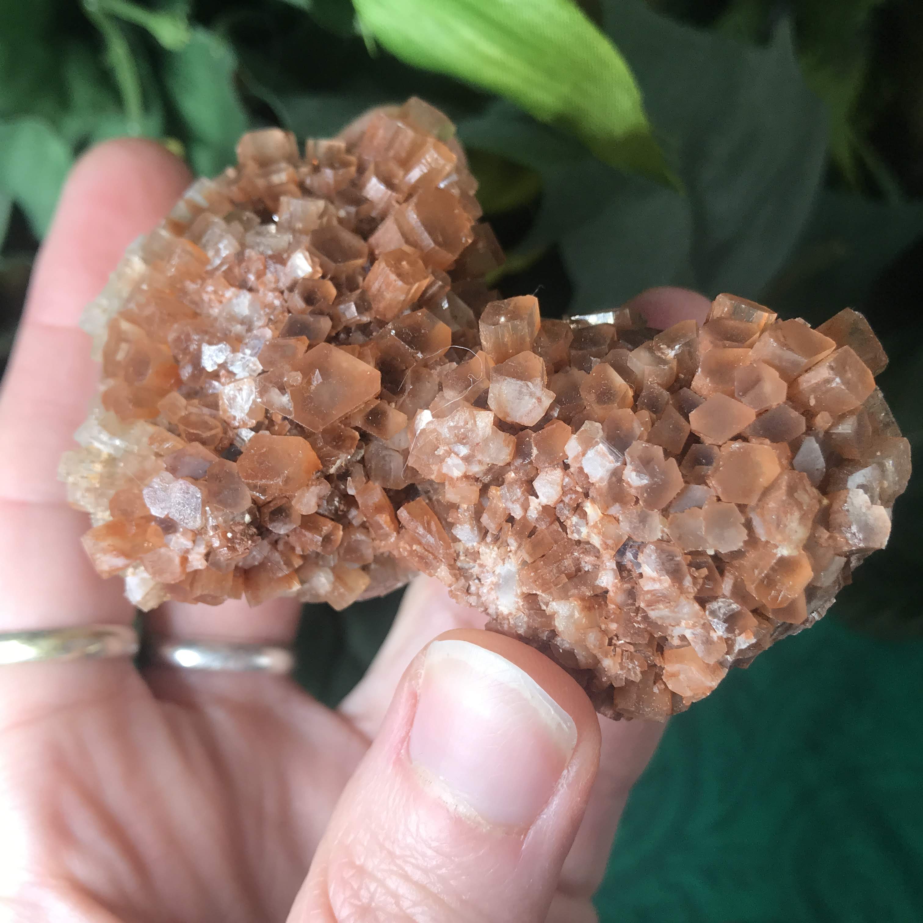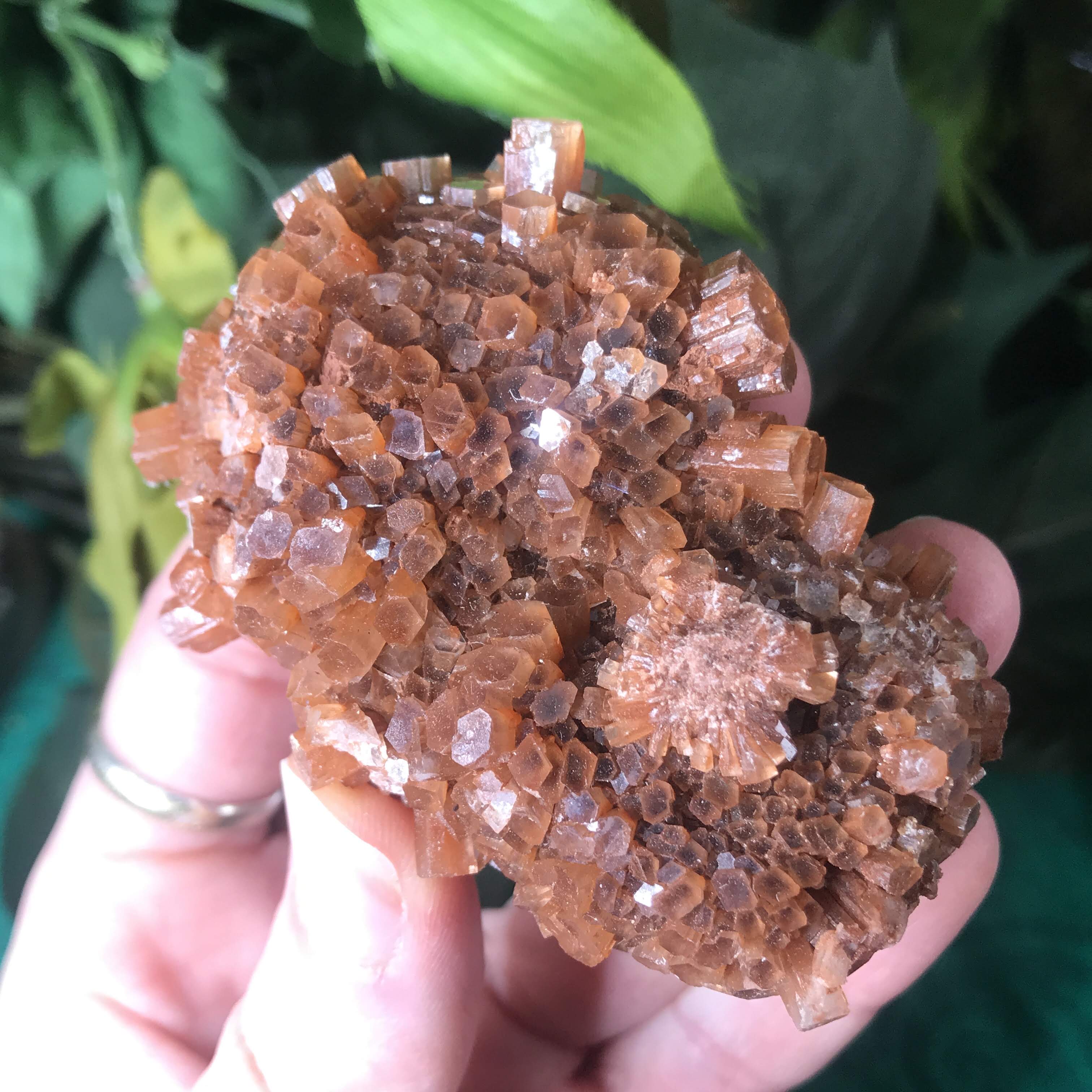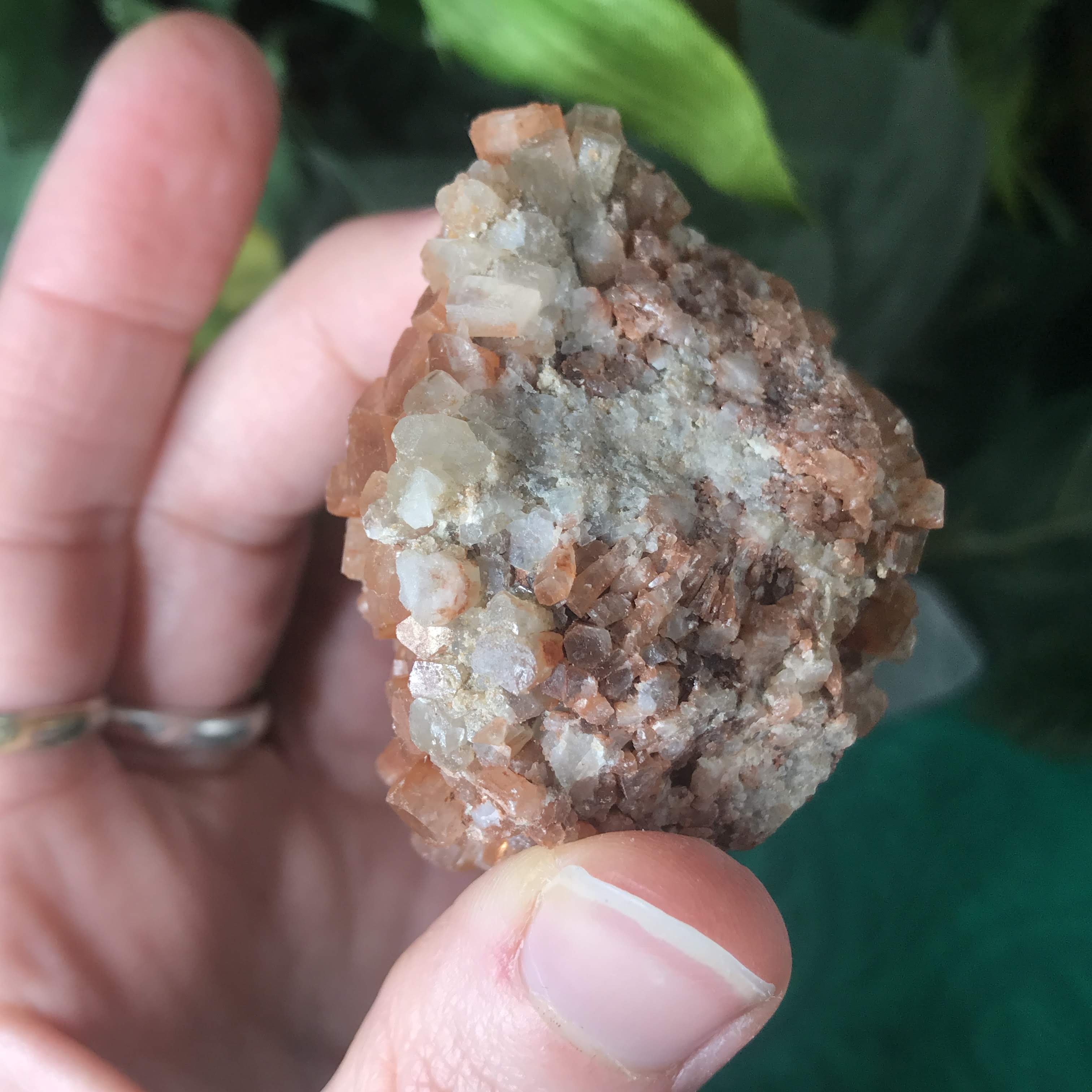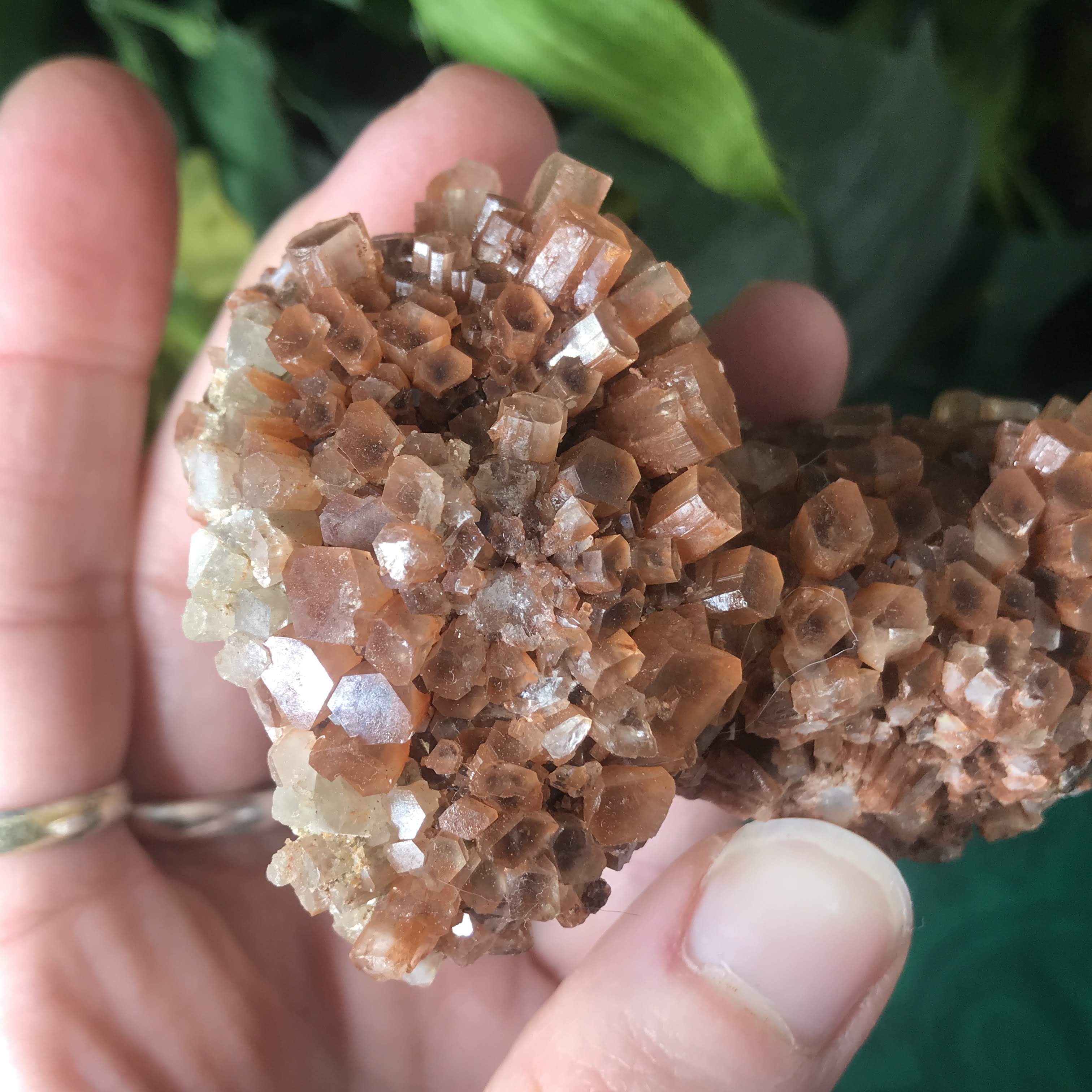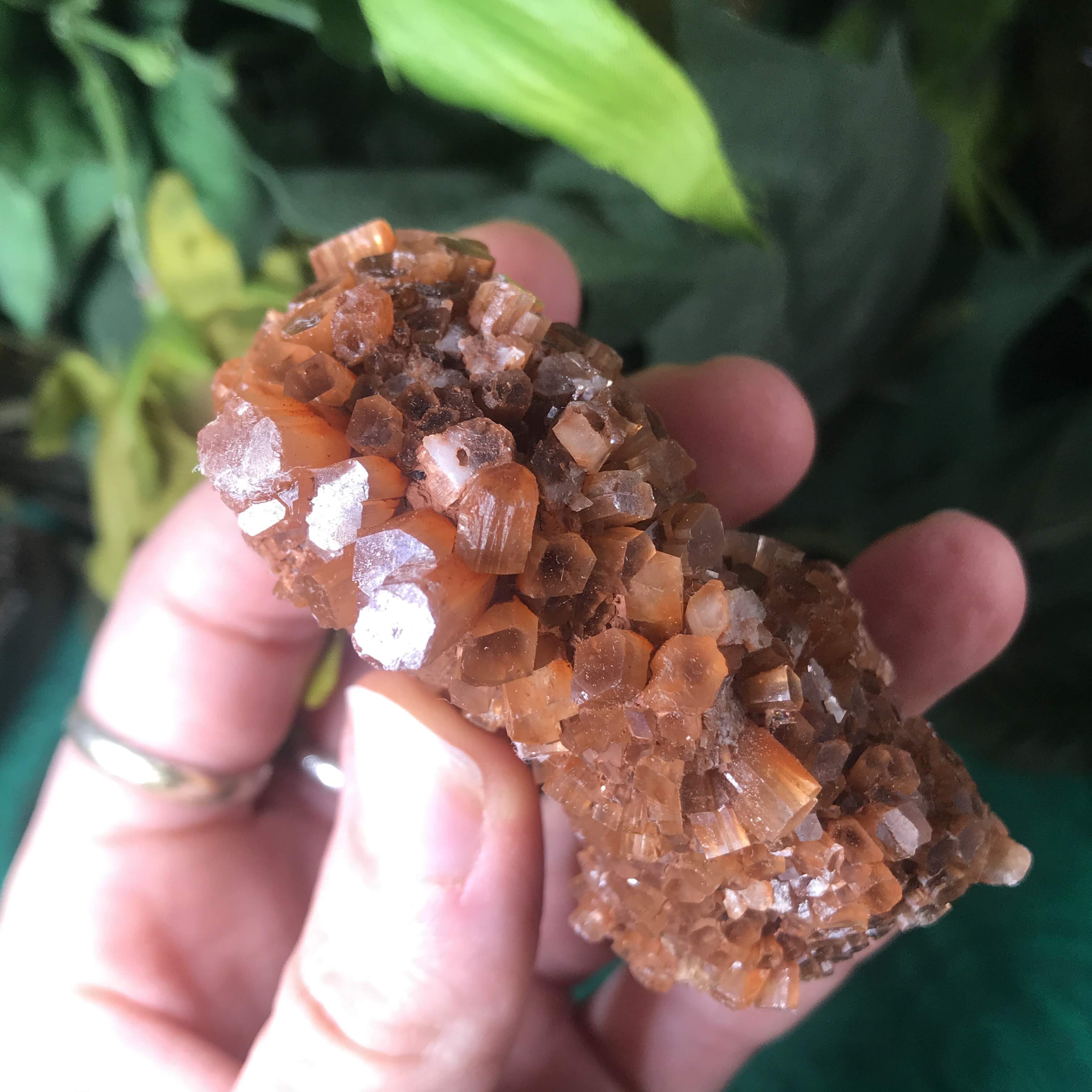 Aragonite! Aragonite is usually found to be white, yellow/gold, green, brown, and blue. When the crystals have the more red-brown color it is from iron or hematite with the crystal. It’s really neat to see these bi-colored crystals in the bunch here! These gorgeous earthy crystals will be a super choice for grounding. They are deeply connected to earth and also an earth healer that may help one be more present with respecting the forces and strong energy of nature. As I’m writing this, and chillin with some aragonite, I keep being brought back to seeing and feeling strong thick white roots growing and spreading down, connecting with and flowing through & caressing fresh healthy soil many layers below the surface. Excellent for root and earth star chakra work. As this crystal can help ground your energy & what you need to release (whether surface or deep rooted energies) into the depths of earth for her to transmute and stabilize. Although very grounding it also does aid a nice uplift and a lil refresh to your energy as well. Allow all those attachments & energies that are no longer serving your greater good flow into the beautiful arms of Gaia, and feel lifted. Let that stress go, breathe, let your nerves settle and release that static, and allow your vibration to rise.