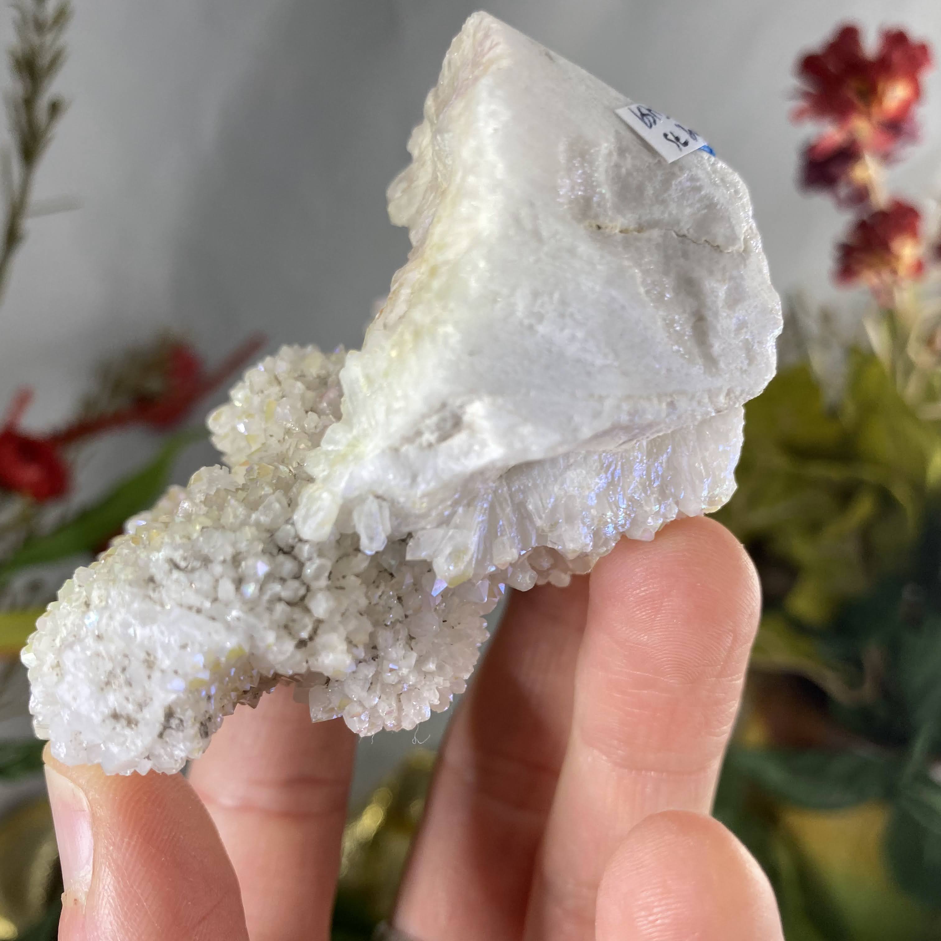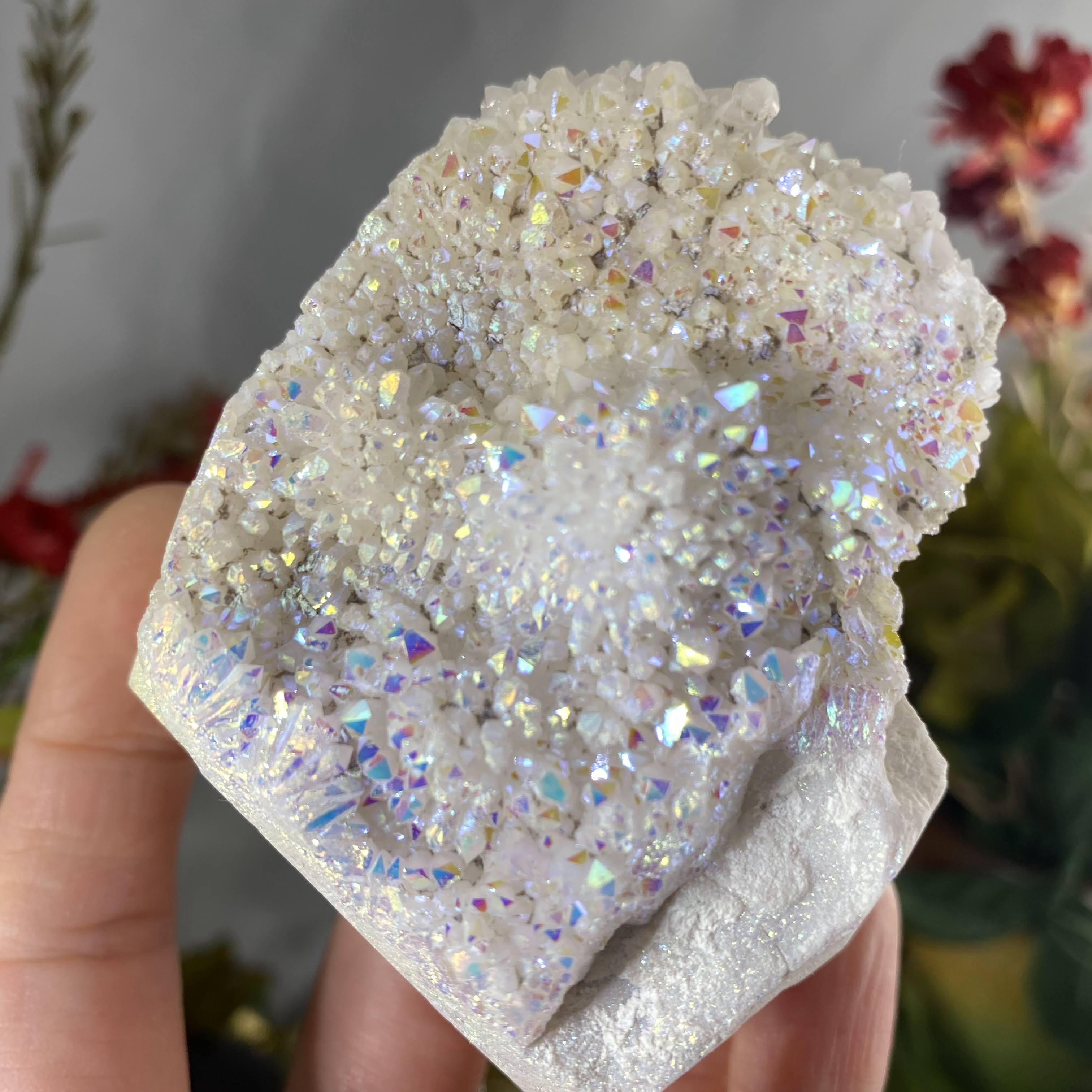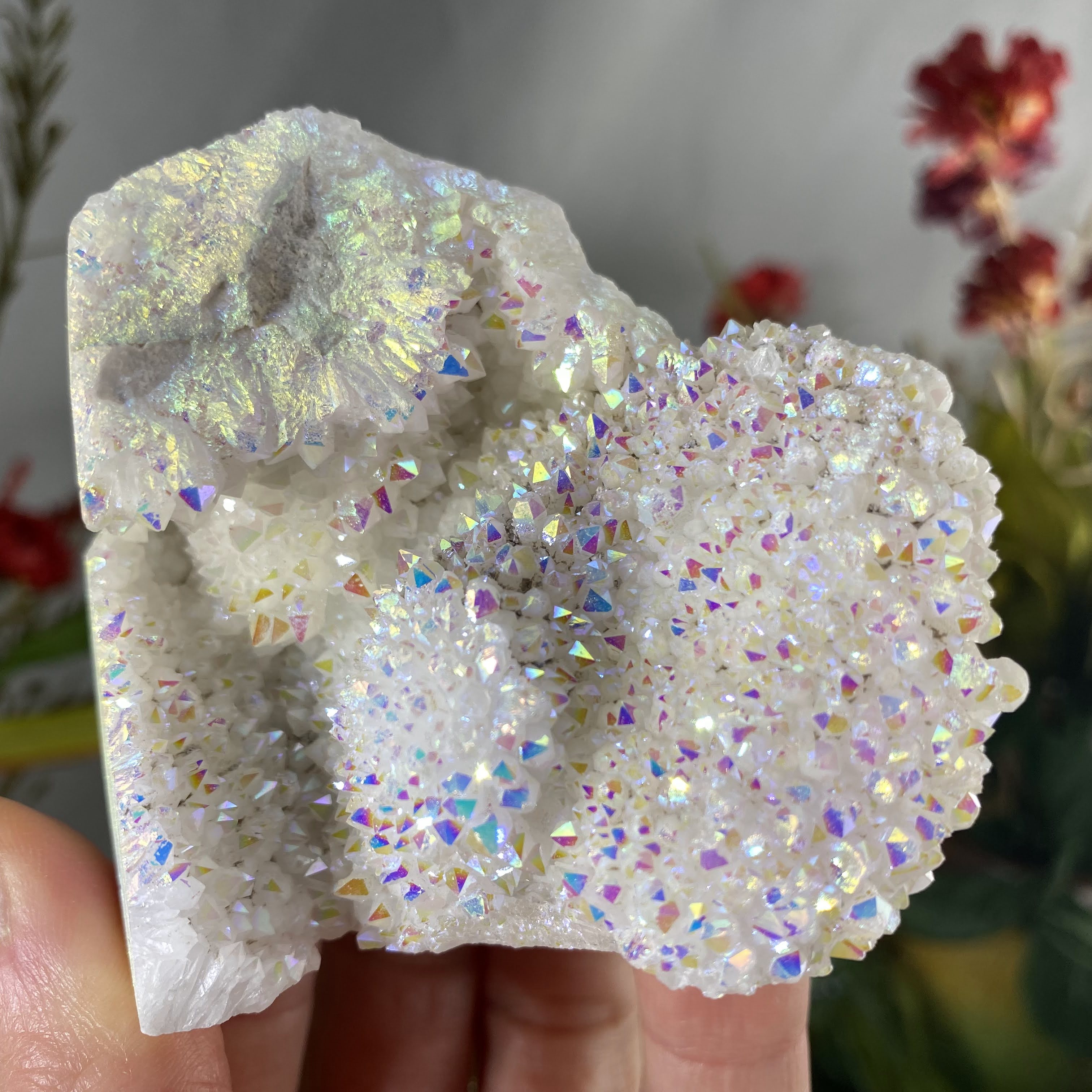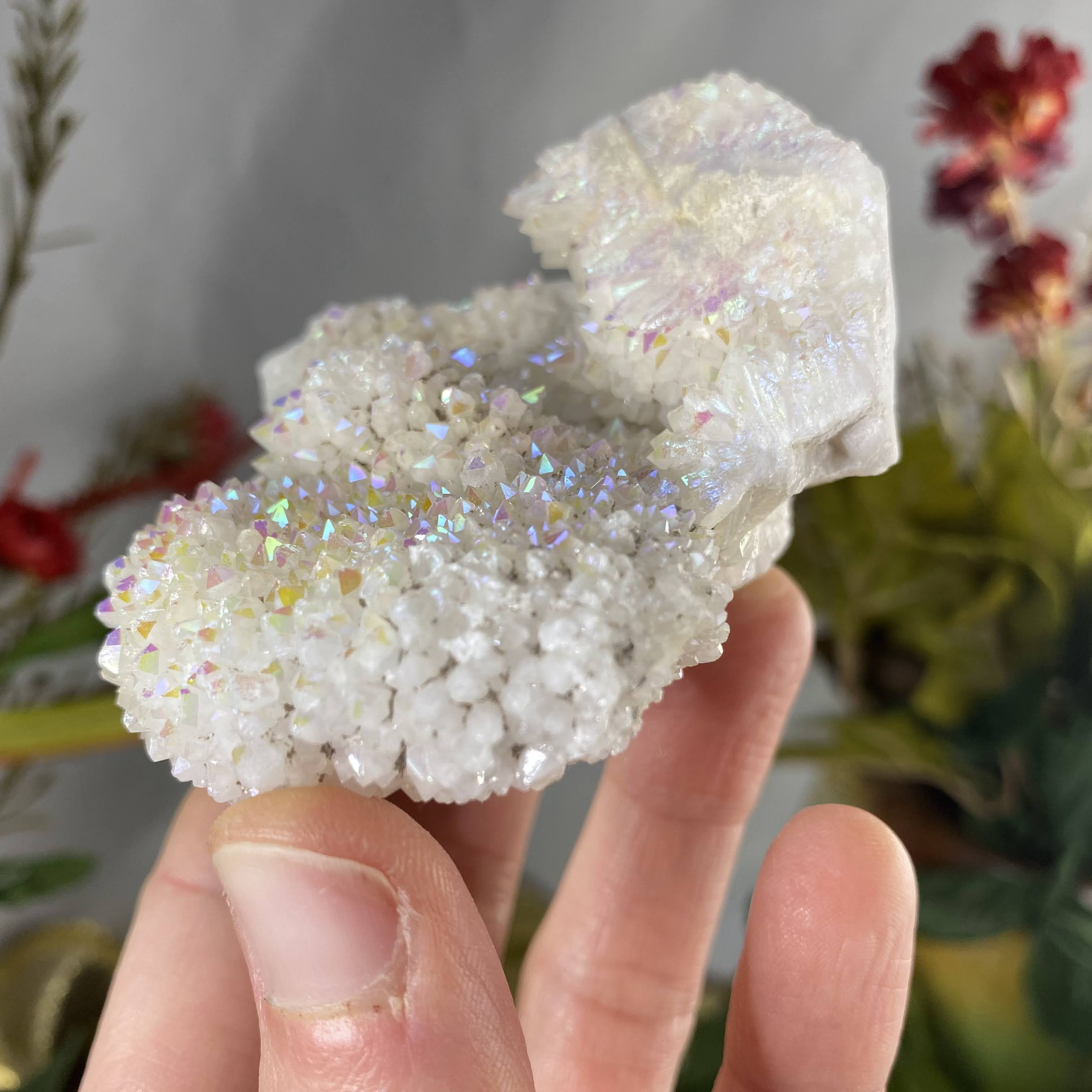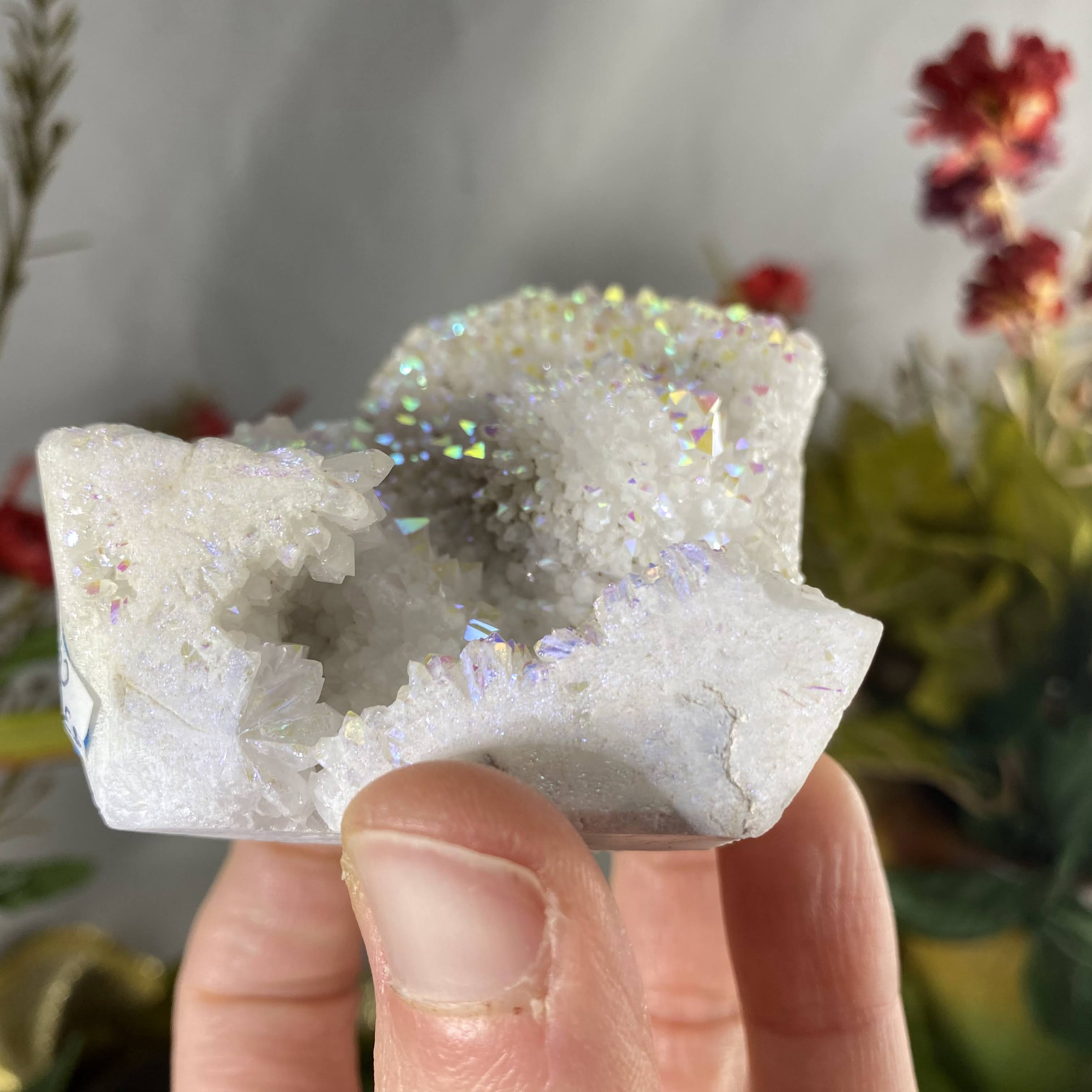 Angel aura feels connected to the heavens and other spiritual dimensions. It’s a very high vibrational crystal, which is excellent for meditation and energy/spiritual work within higher dimensions and with higher dimensional beings, such as the angelic realm and guides. A great aid to connecting to the frequencies of the divine, and communicating with your higher self as well.