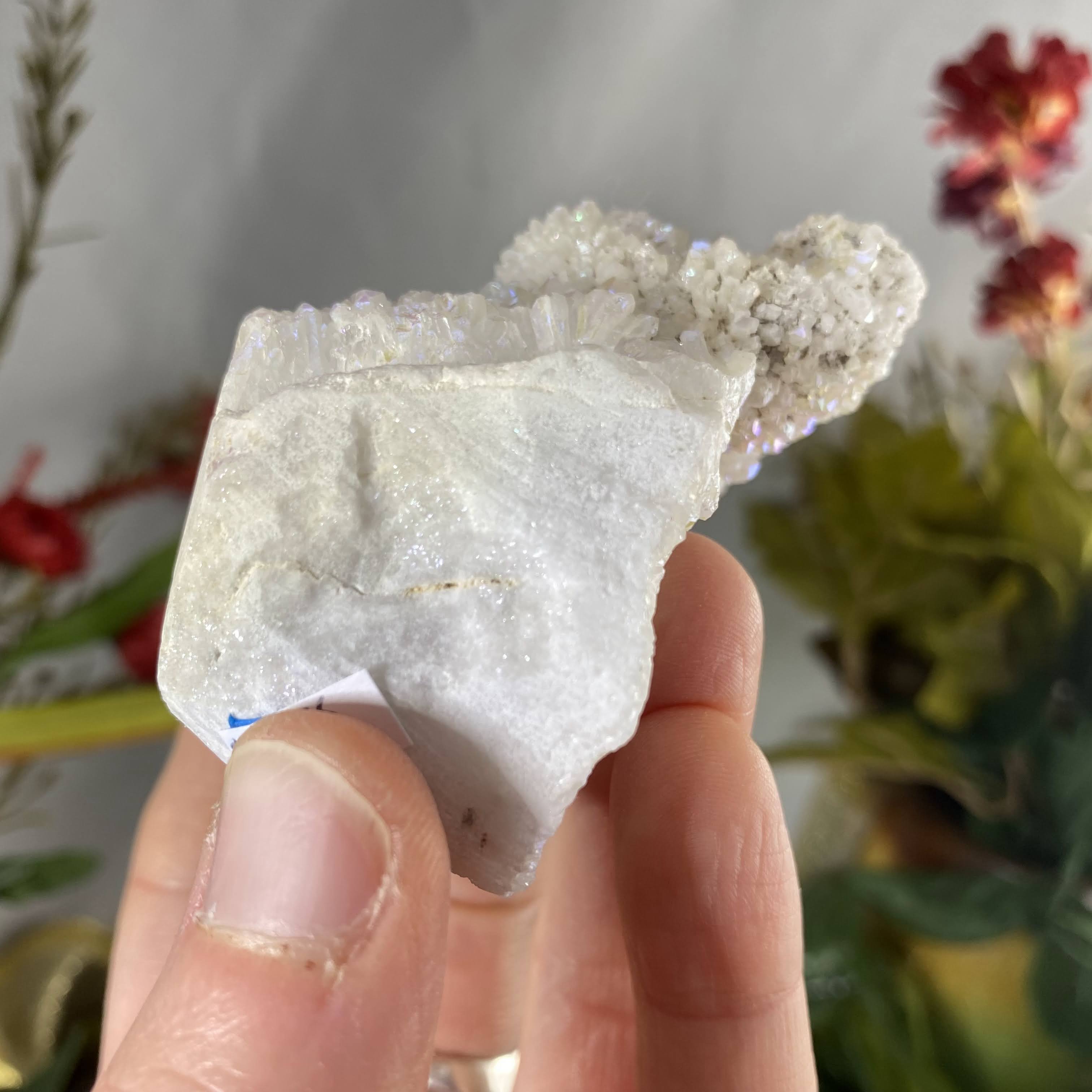 Aura quartz are natural quartz crystals that are treated by man to combine additional elements, a dreamy mesmerizing appearance and vibe. The natural crystals are treated with heat and pressure to bond precious metals to the crystal. Angel or Opal Aura Quartz is usually bonded with platinum, sometimes silver, other trace minerals or gold.