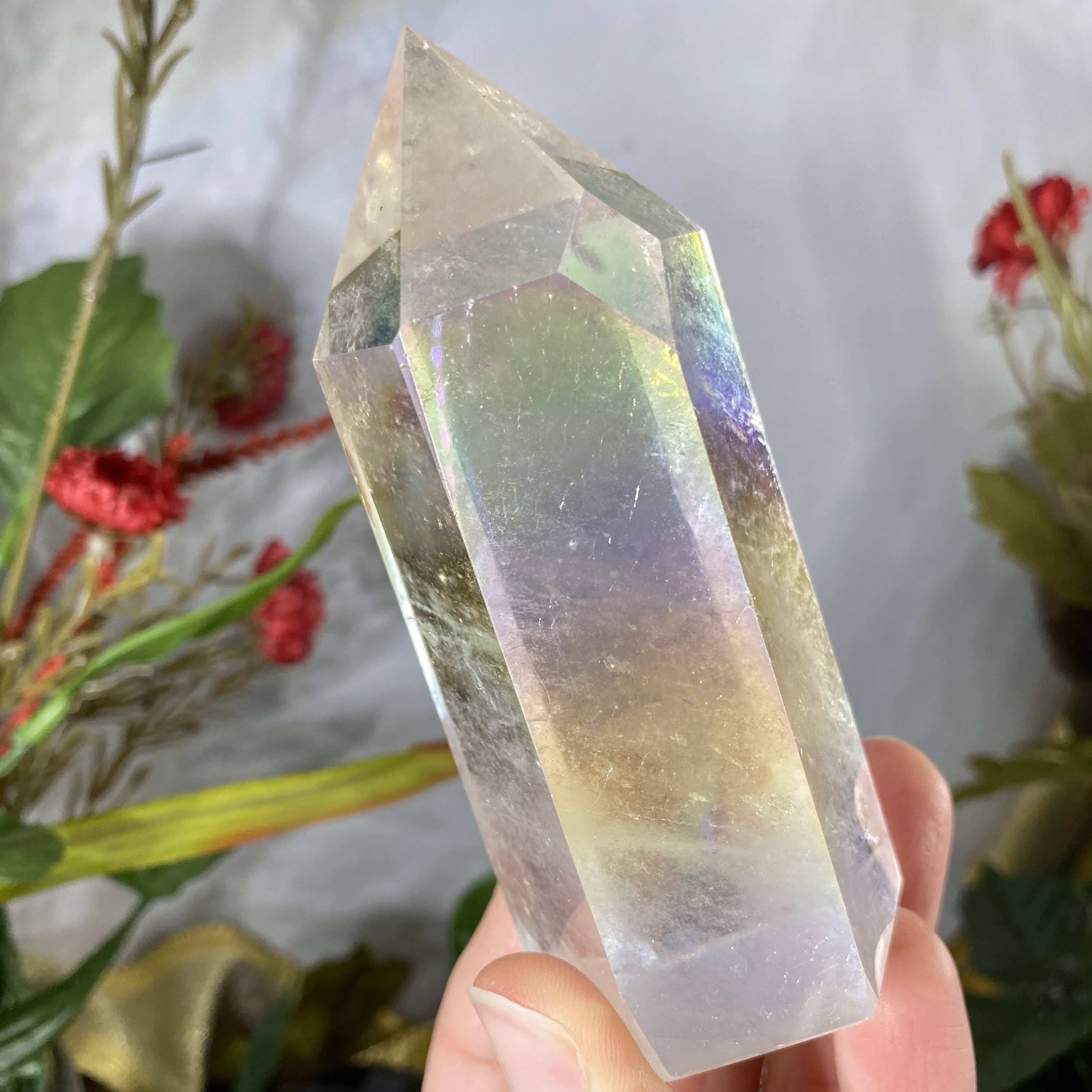 Angel / Opal Aura Quartz- Heavenly Happy Aura Quartz Tower / Point / Obelisk! C93