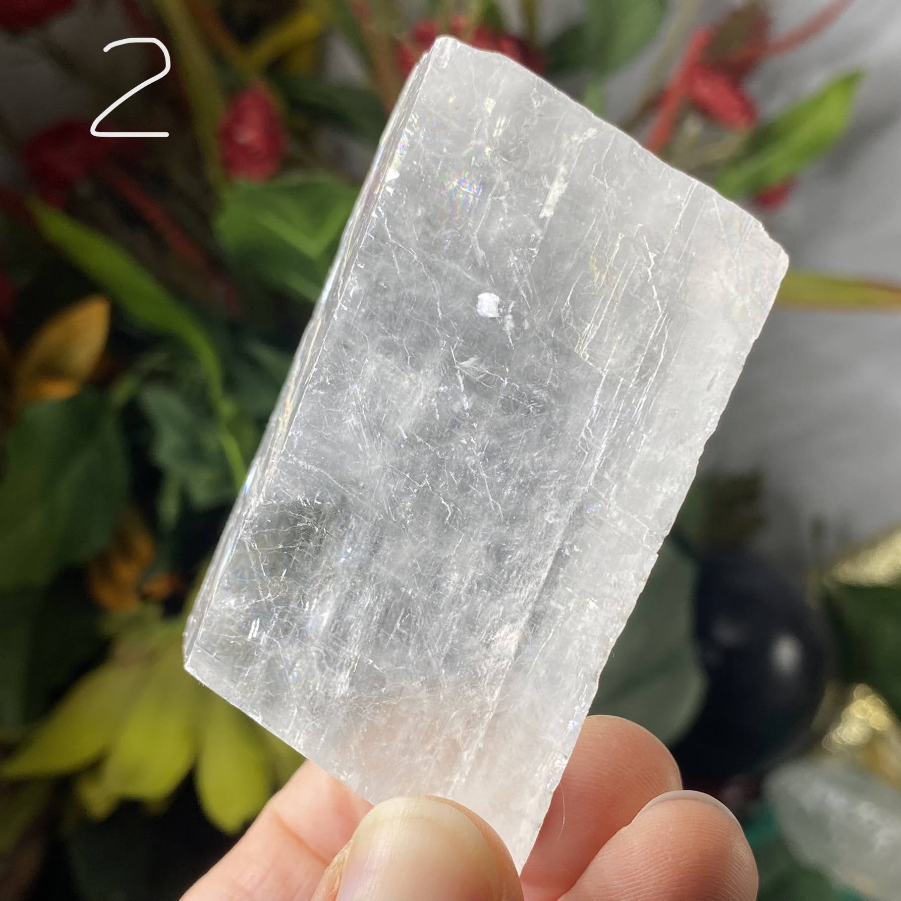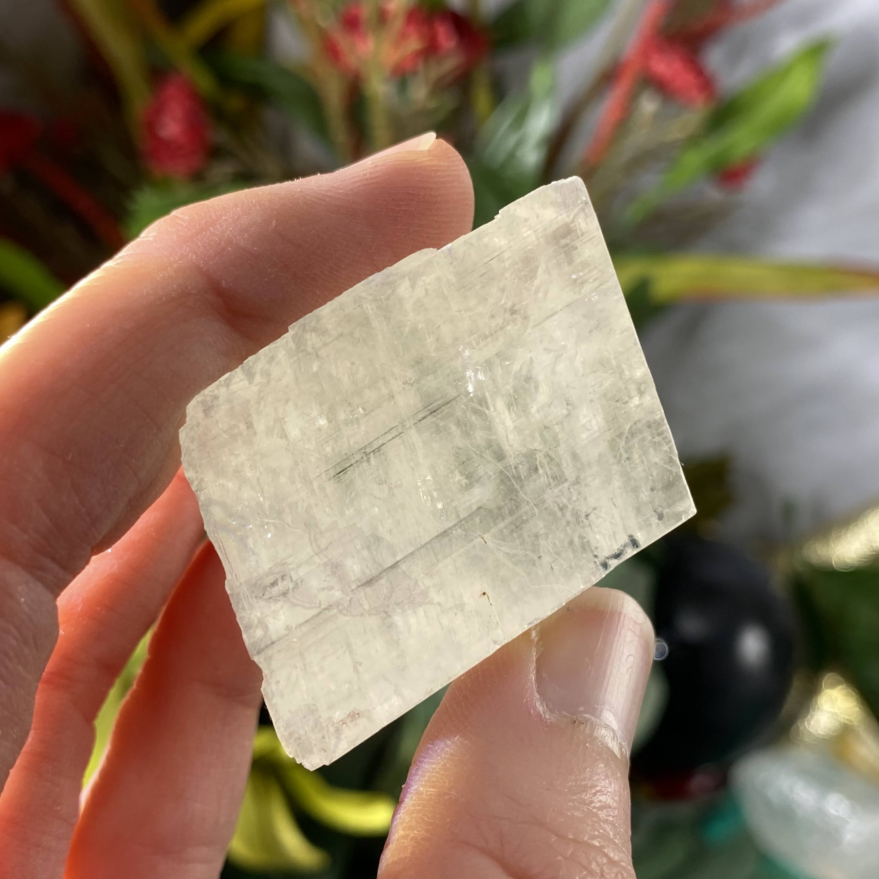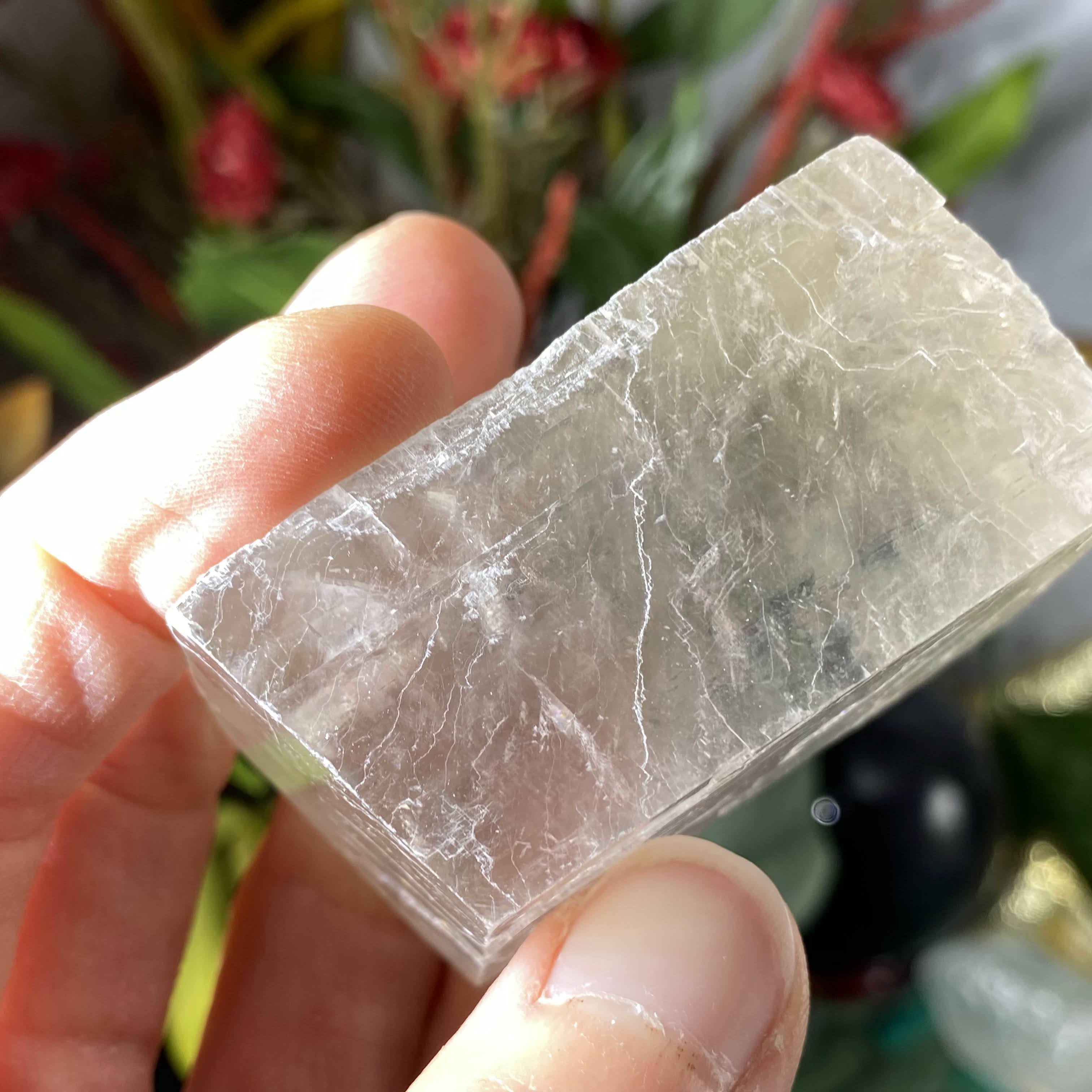 Clear Calcite- Like quartz, clear calcite is an energy transmuter, amplifier, and cleanser. It works great for clearing and activating all chakras. Also excellent for manifestation and energy work, as well bringing clarity for clearer intentions, and is easily programmable. A good friend to bring clarity in many ways, to the mind, to truth, and seeing the root of disruption/disorder/what is NOT working.