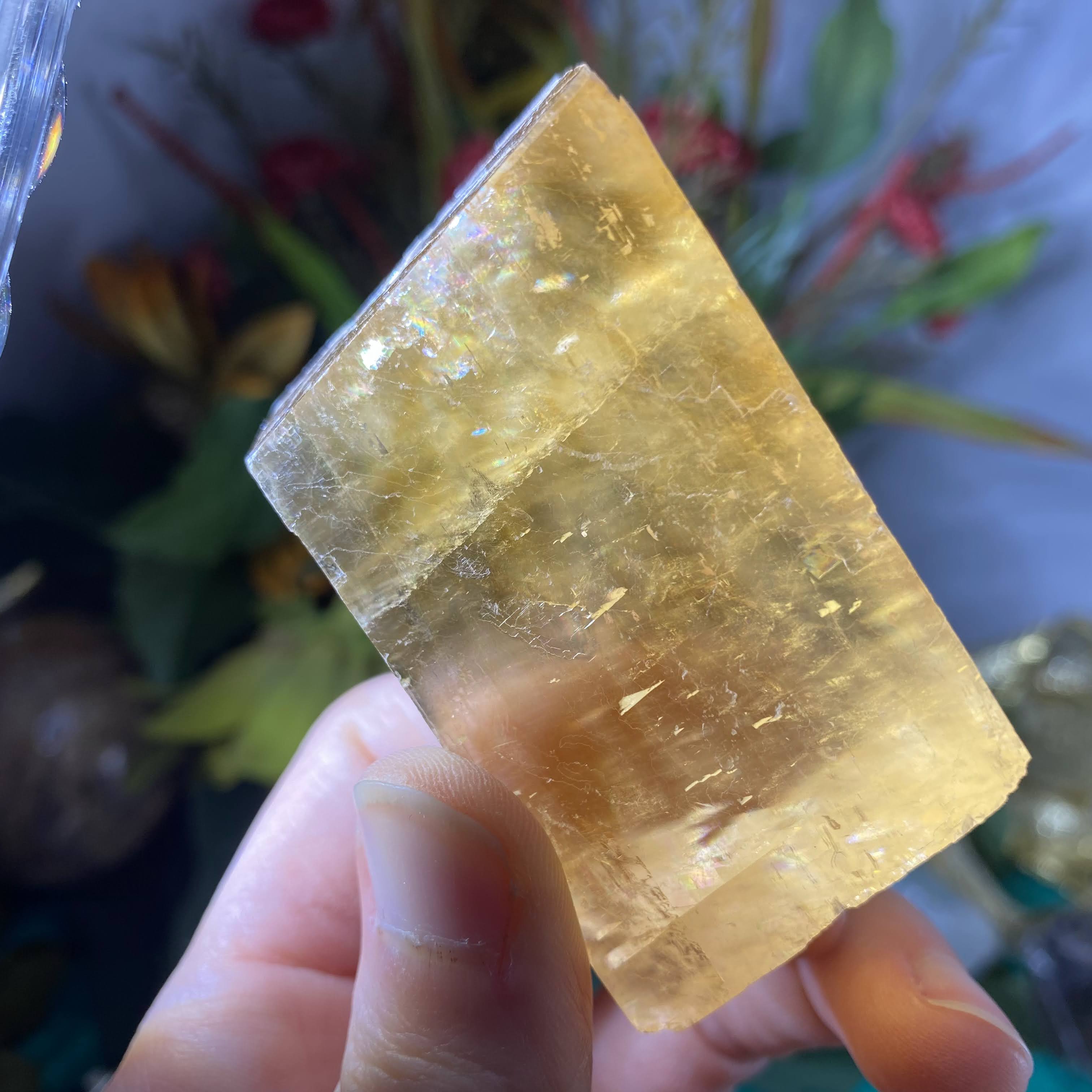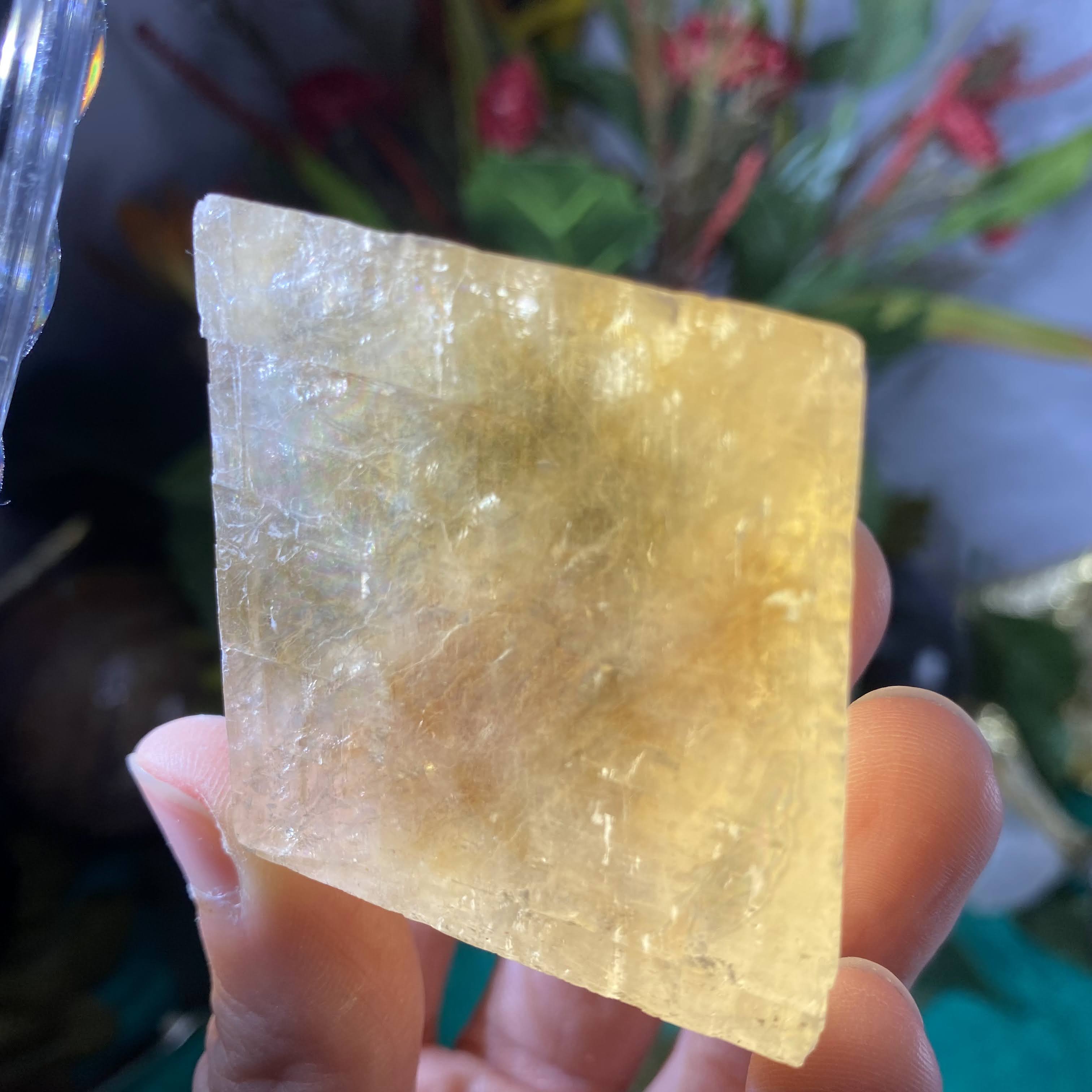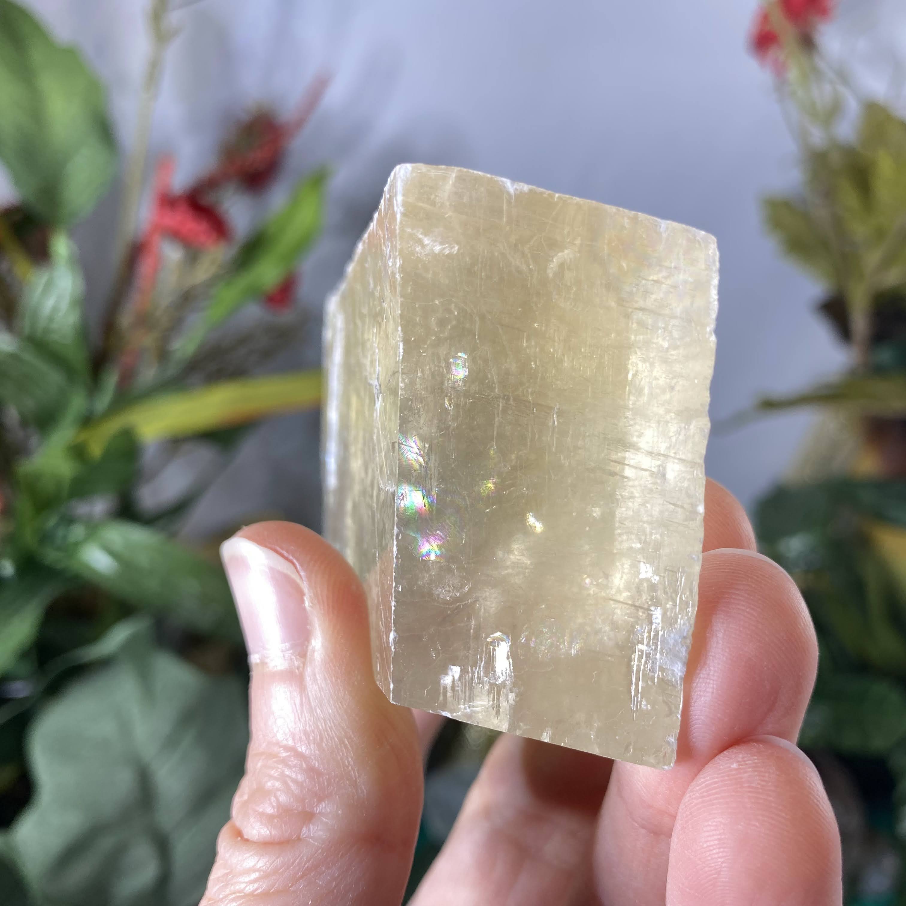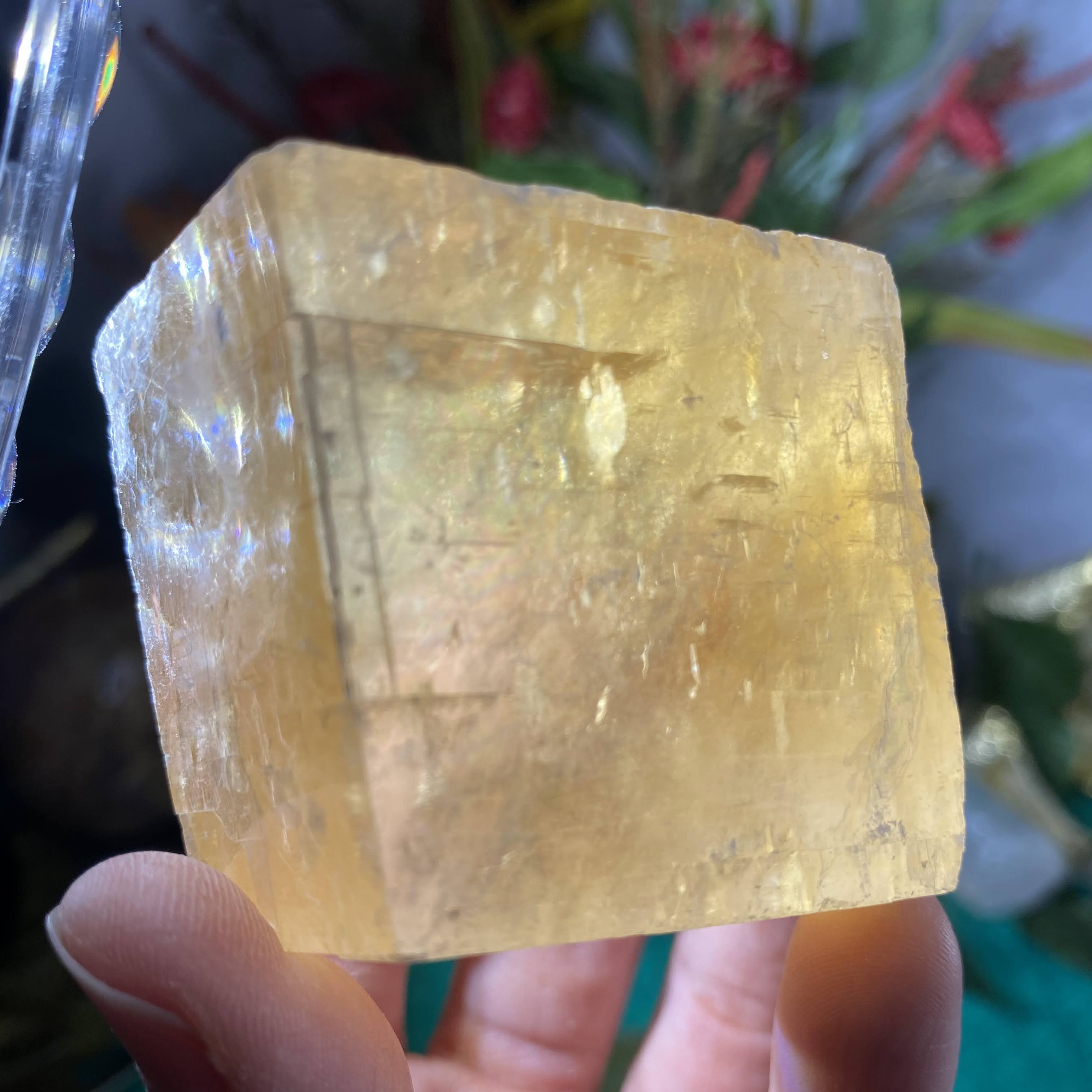 Calcite - Honey Golden Calcite Rhombohedron Shape with Rainbows! (B680/ B682 / B683)