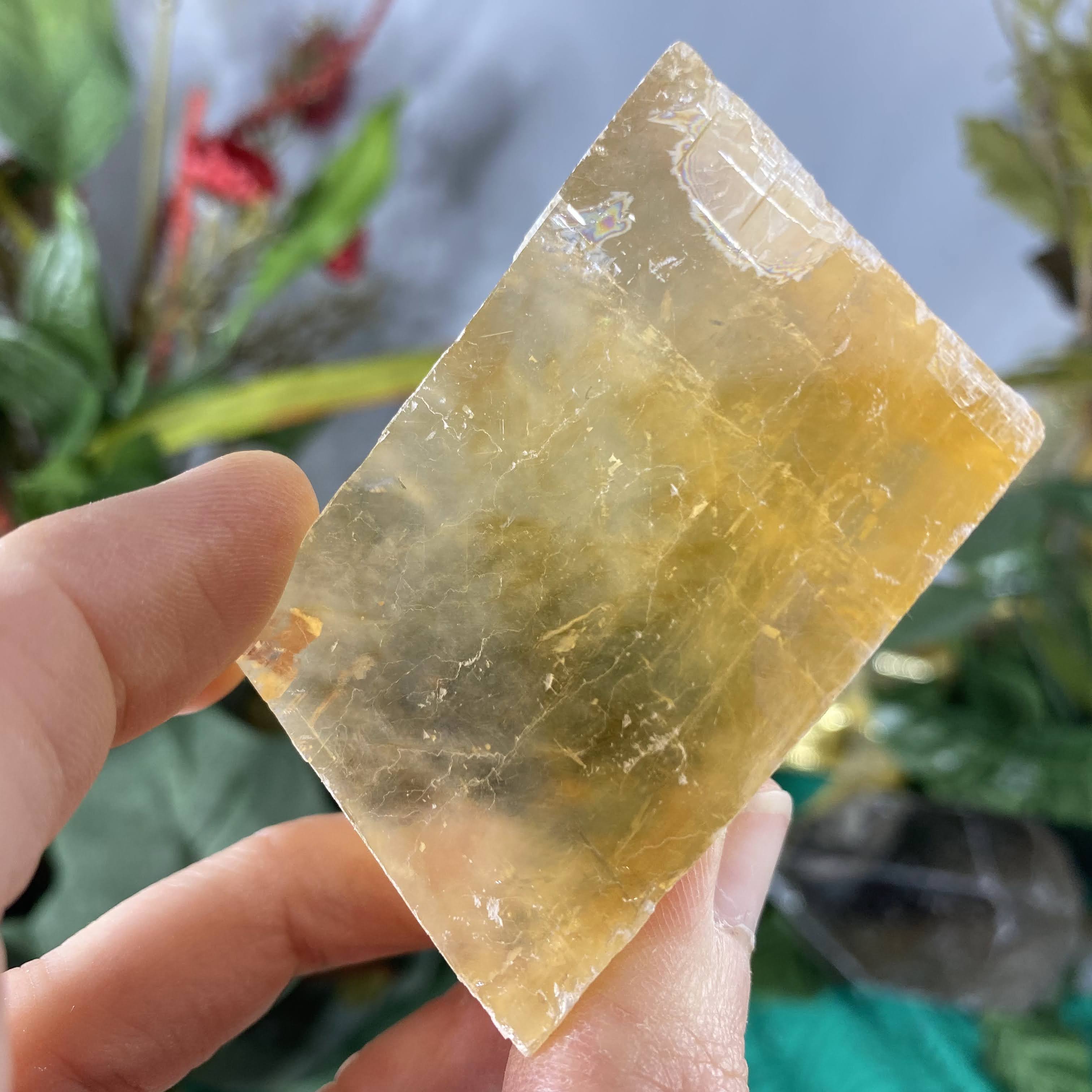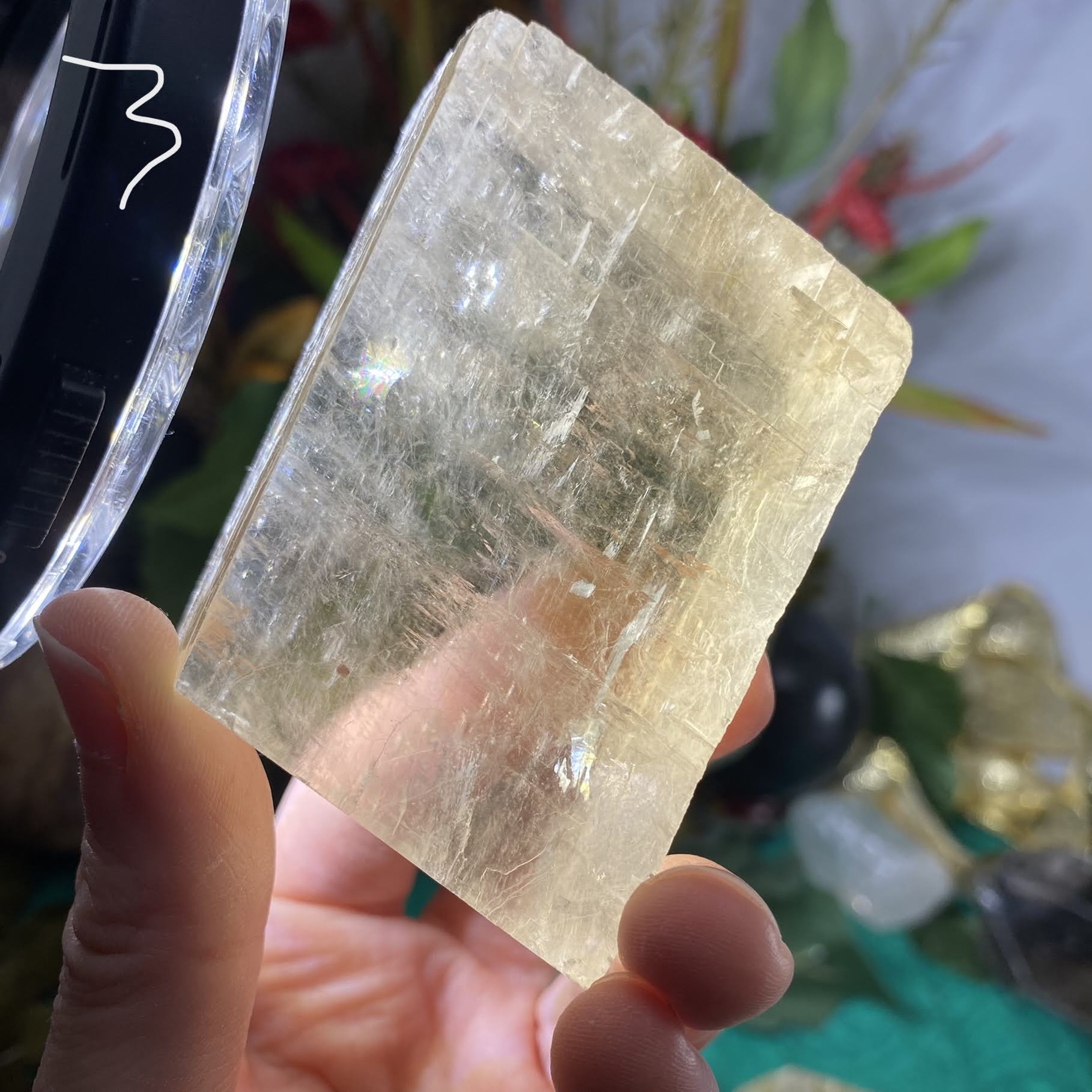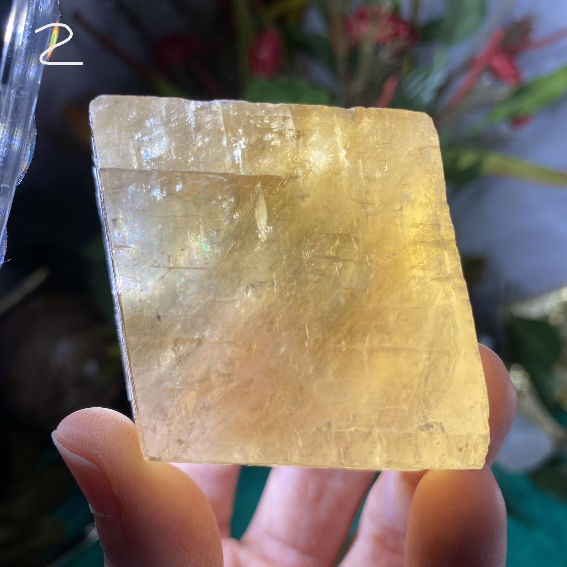 Calcite - Honey Golden Calcite Rhombohedron Shape with Rainbows! (B680/ B682 / B683)