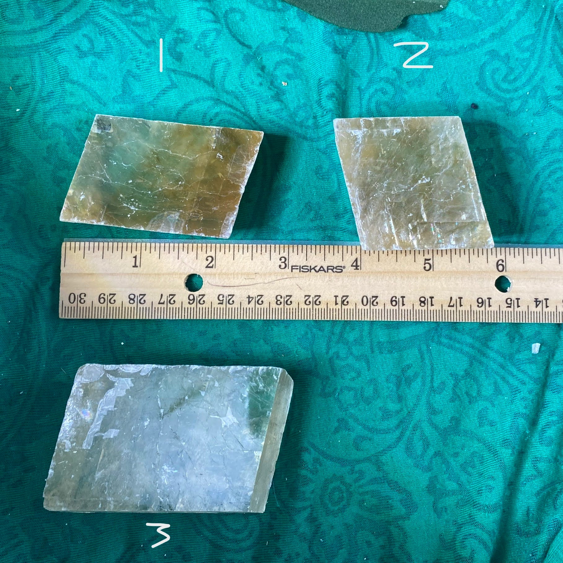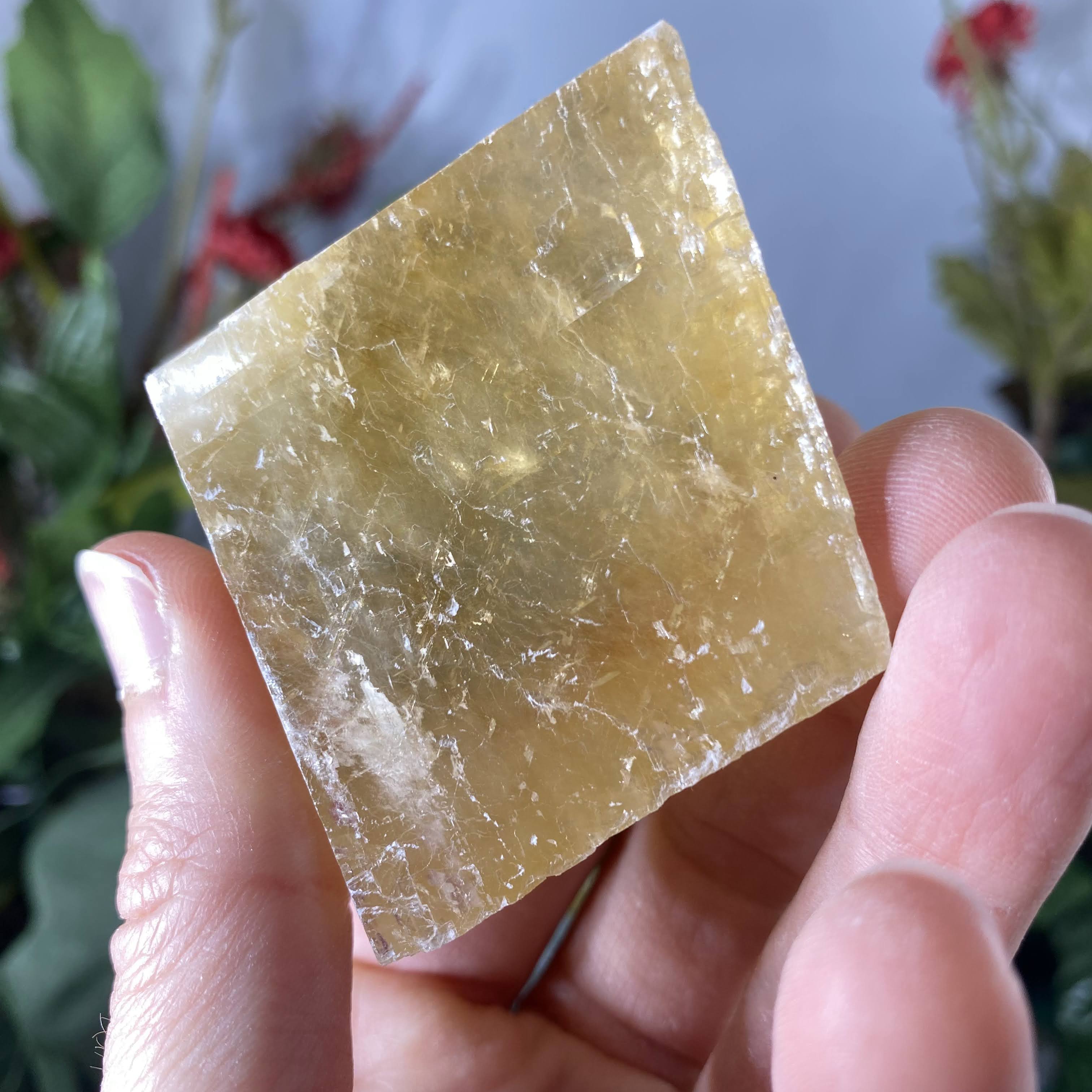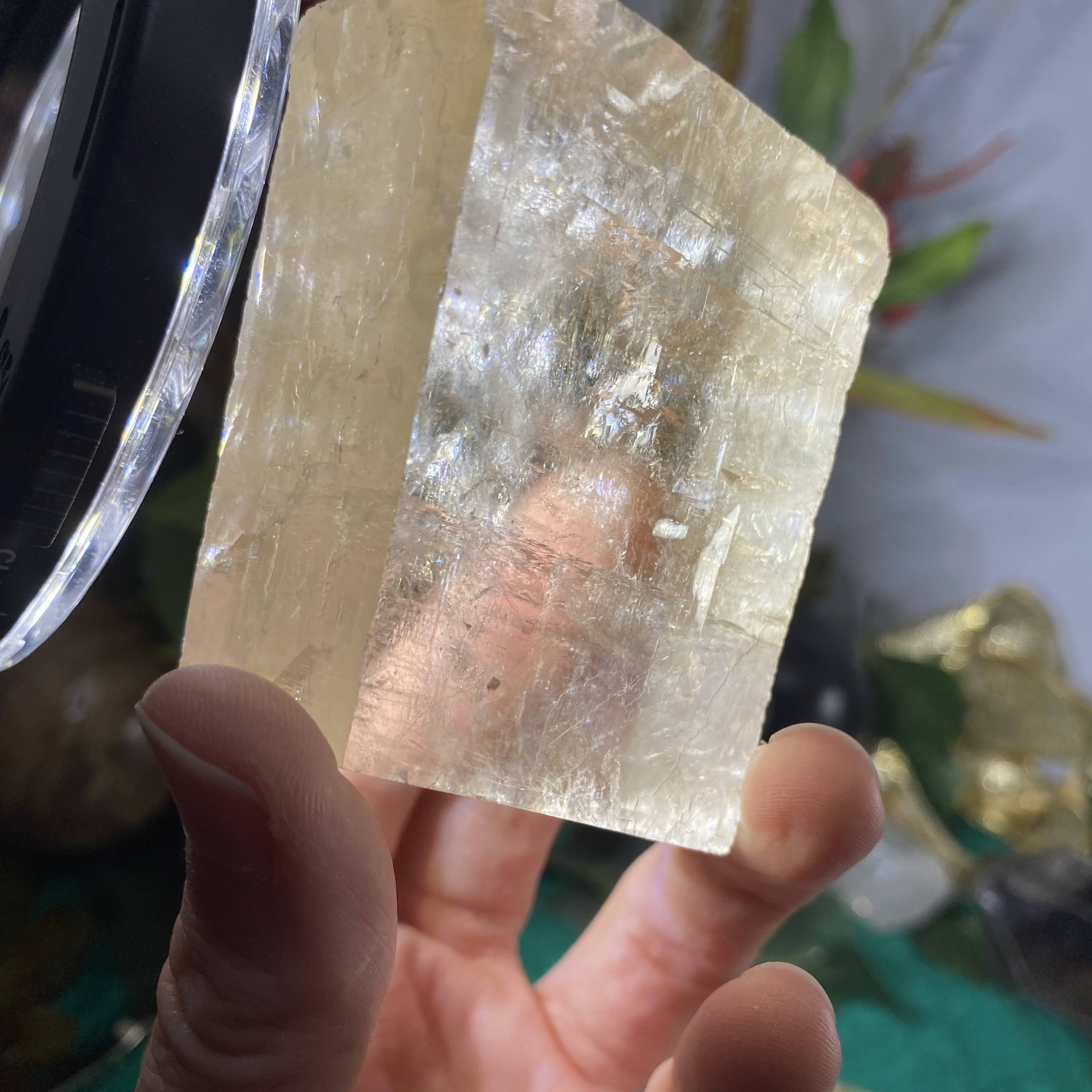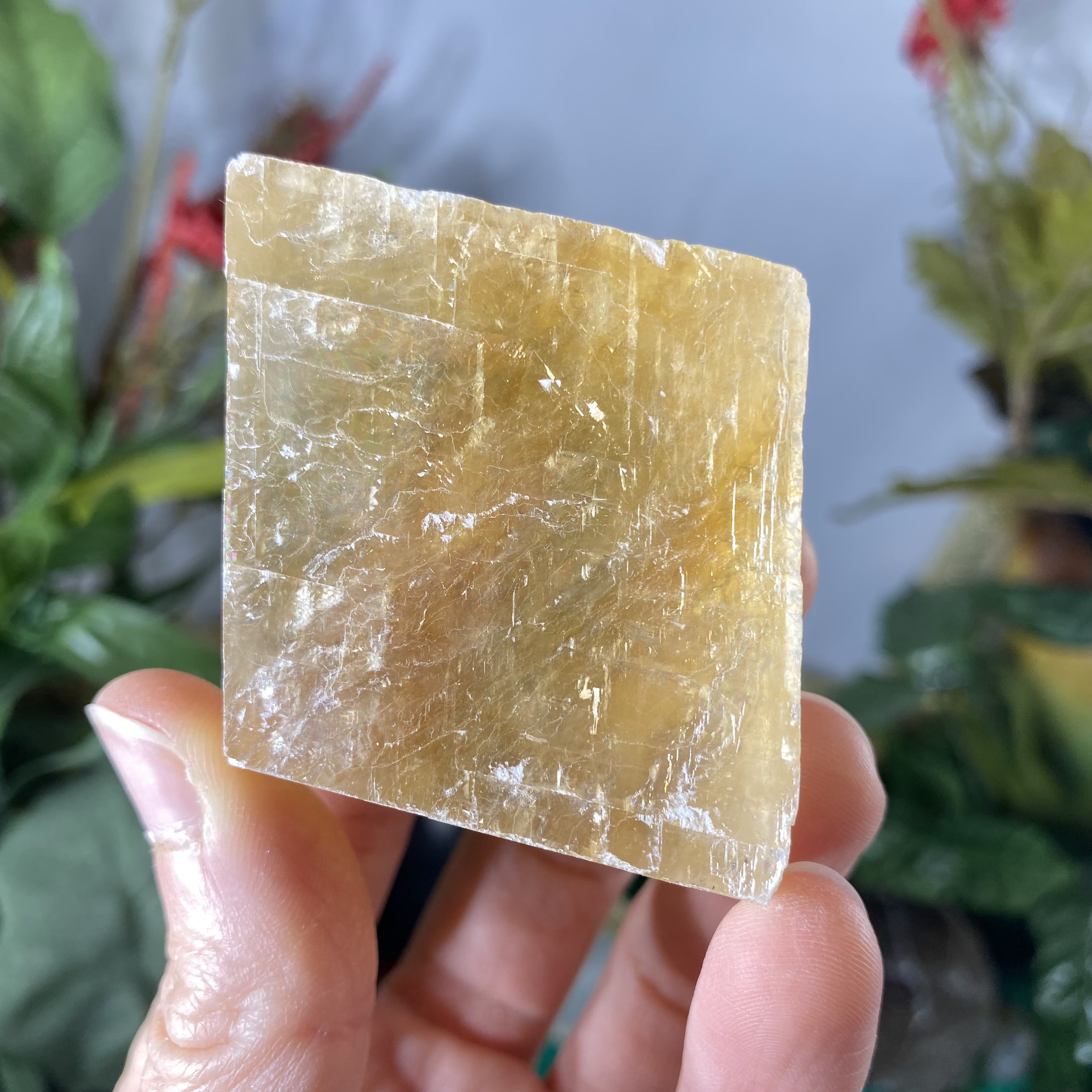 Calcite - Honey Golden Calcite Rhombohedron Shape with Rainbows! (B680/ B682 / B683)