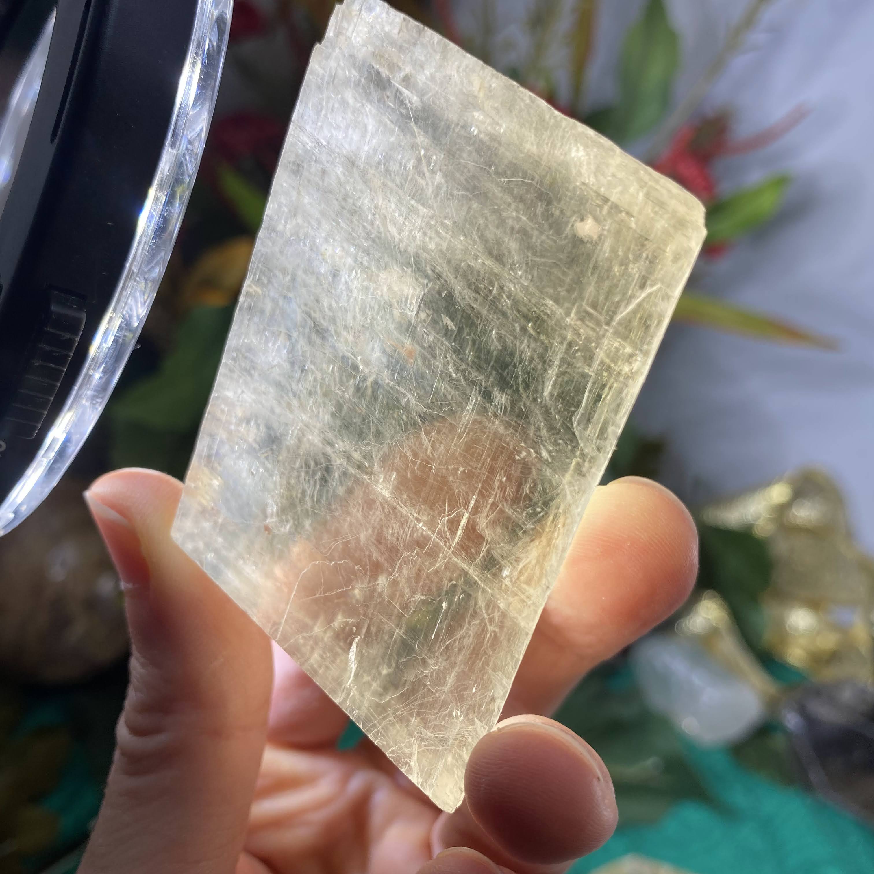 Clear Calcite- Like quartz, clear calcite is an energy transmuter, amplifier, and cleanser. It works great for clearing and activating all chakras. Also excellent for manifestation and energy work, as well bringing clarity for clearer intentions, and is easily programmable. A good friend to bring clarity in many ways, to the mind, to truth, and seeing the root of disruption/disorder/what is NOT working.