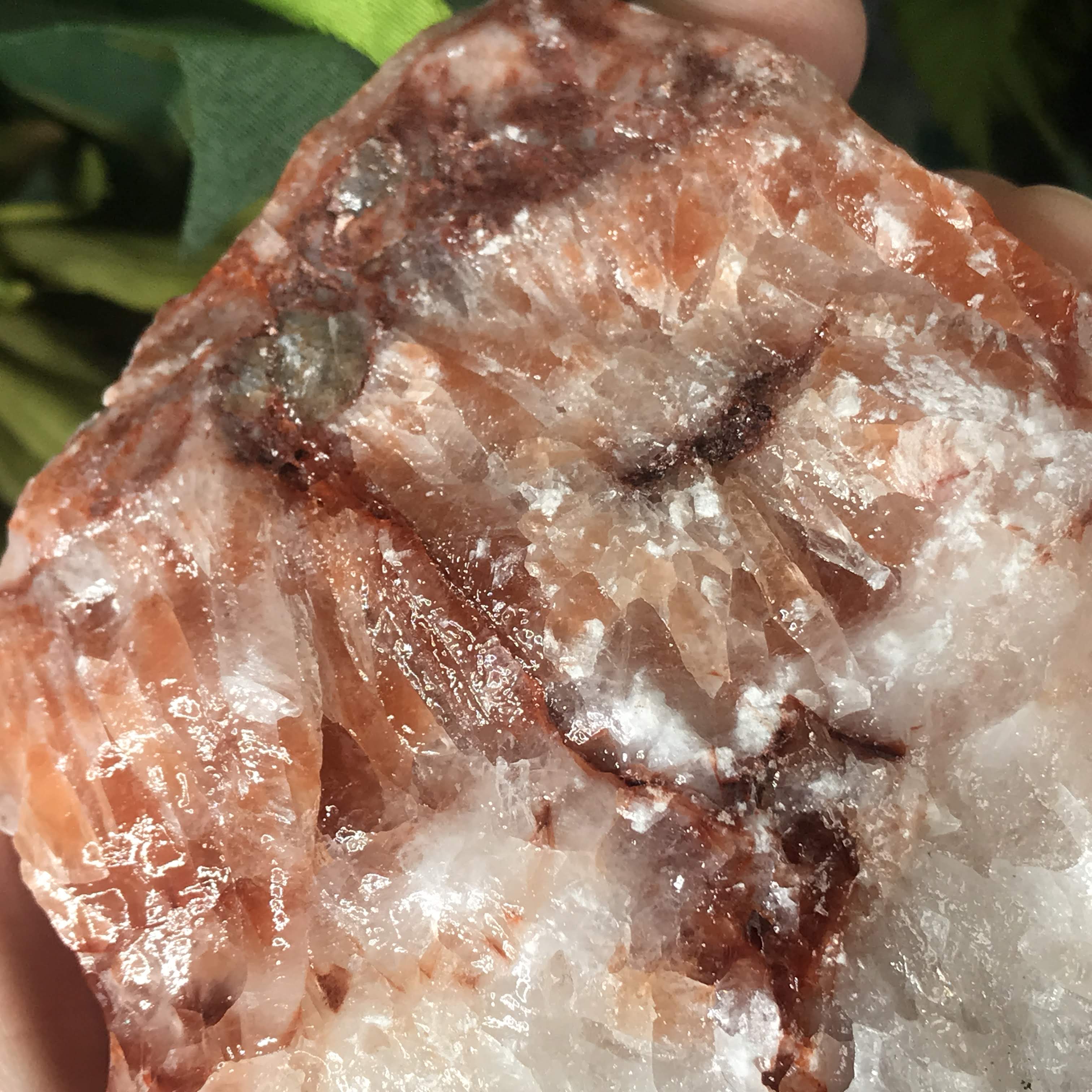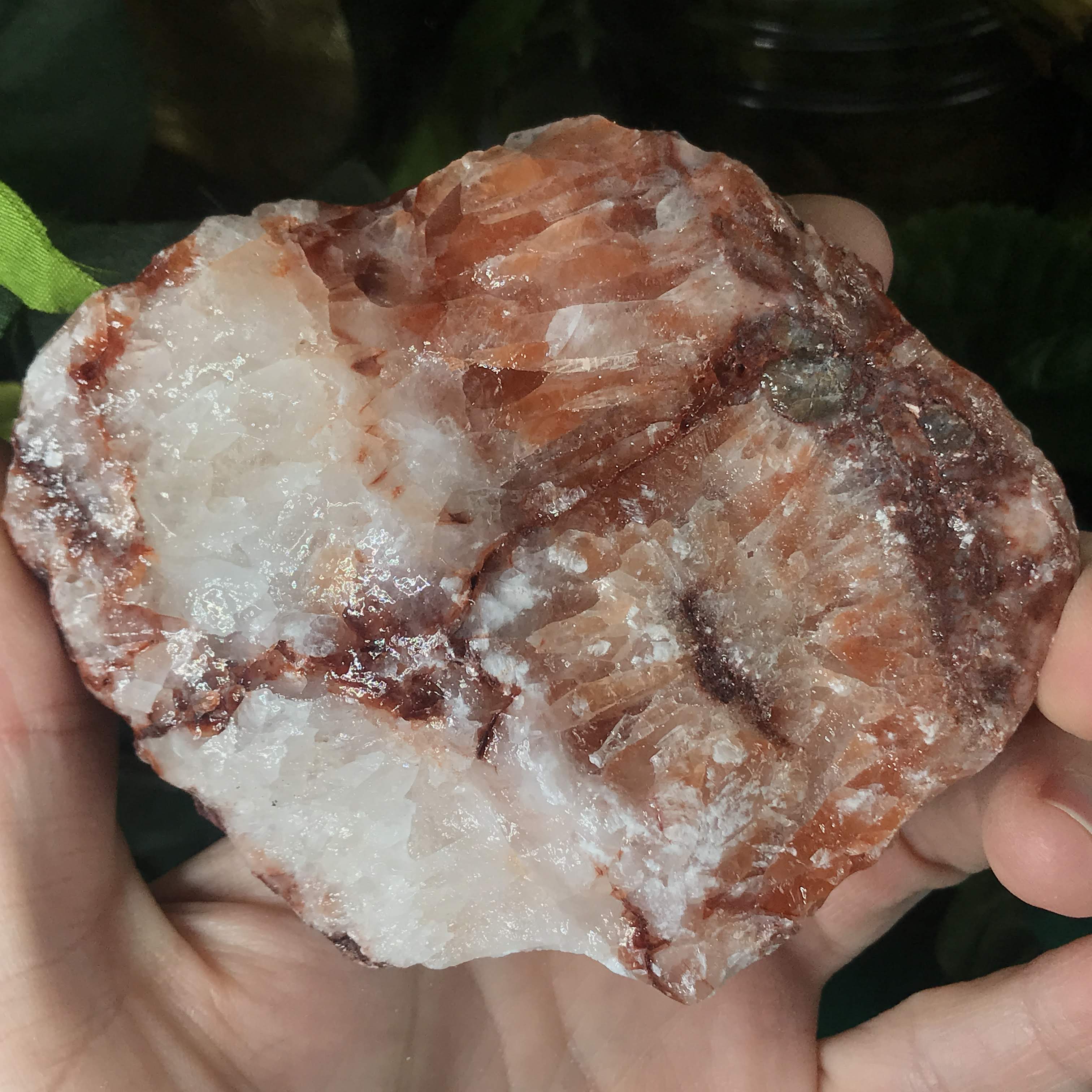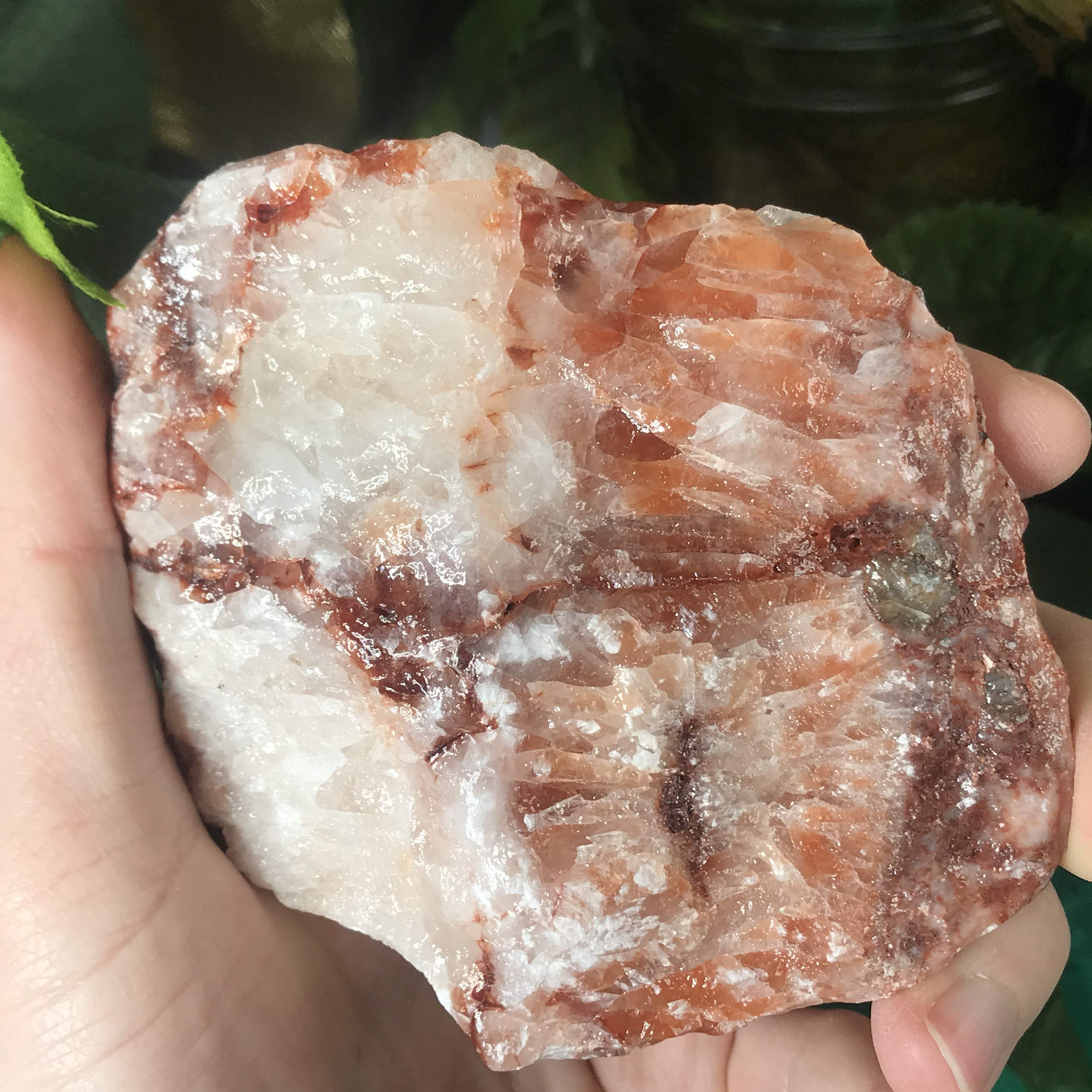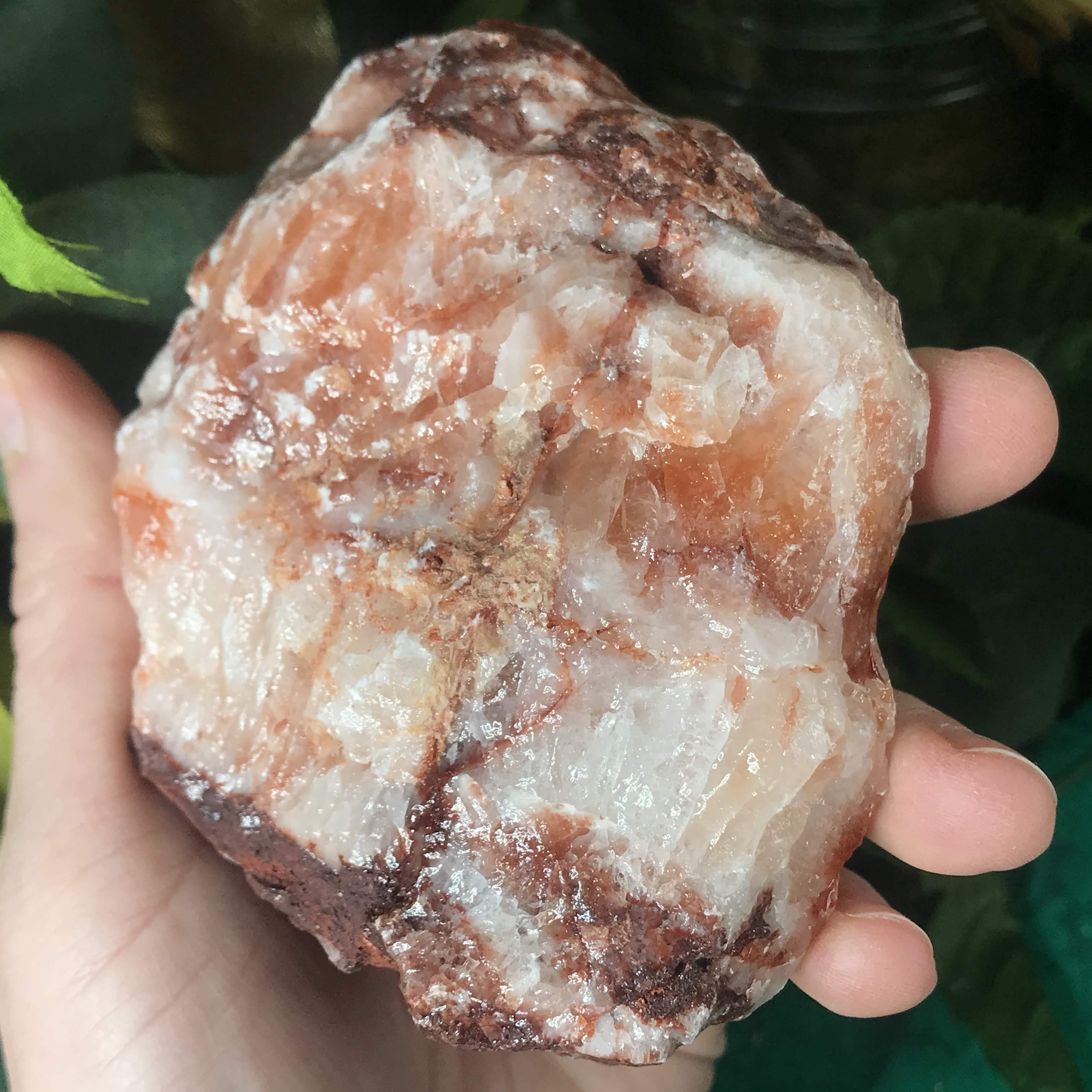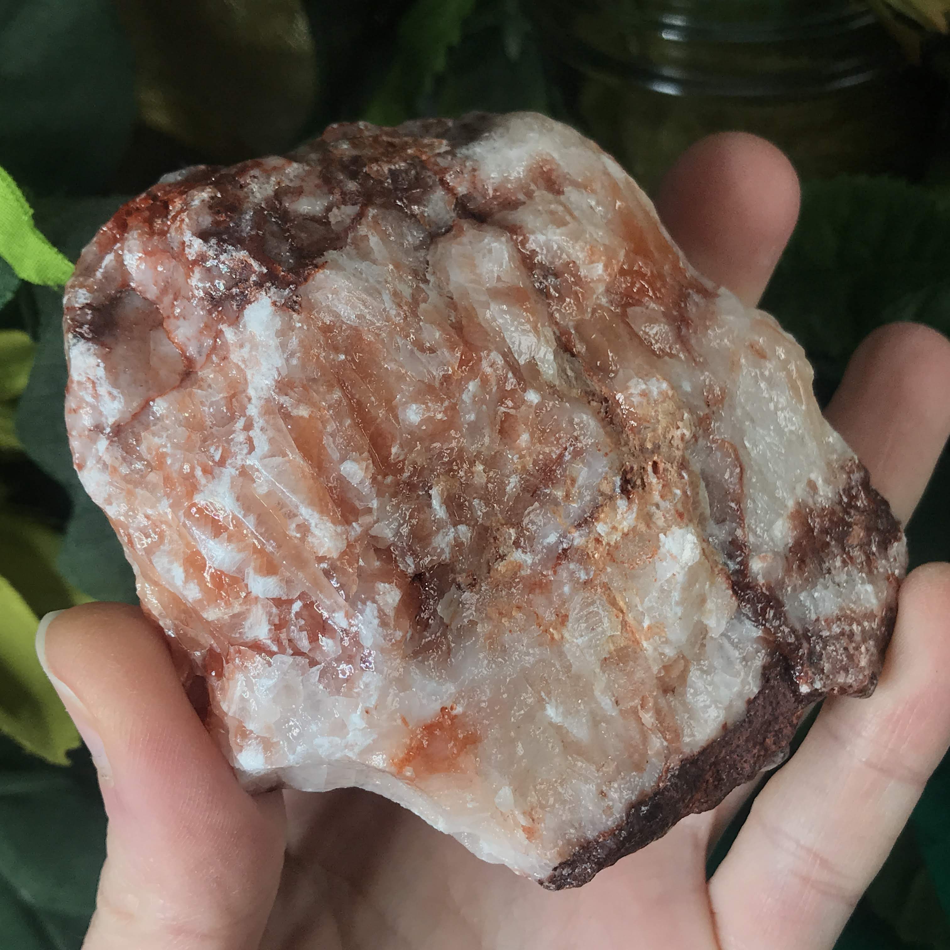 Red/strawberry calcite is a grounder, protector, encourager, and helps you take care of you by knowing when to set boundaries and not over-do it. Works well with the root chakra, grounding us in and giving us a boost of life. Helps by lifting that brain fog and restlessness. Instilling us with a sense of confidence and courage. Helps us to kick away all that energy, patterns, and things that no longer serve us (anxiety, fear, negative self talk). Instead of feeding those things we can open up pathways for the new and grow towards more positive things. Can help attract love (remember it starts with loving YOU!) & bring in those feel good, looking fly, sensual and sexual energies.