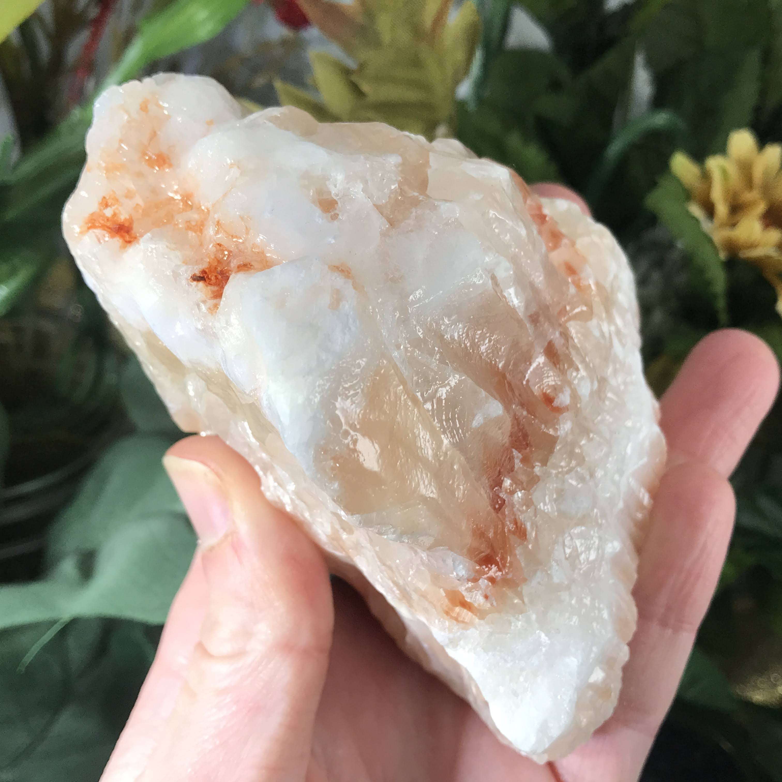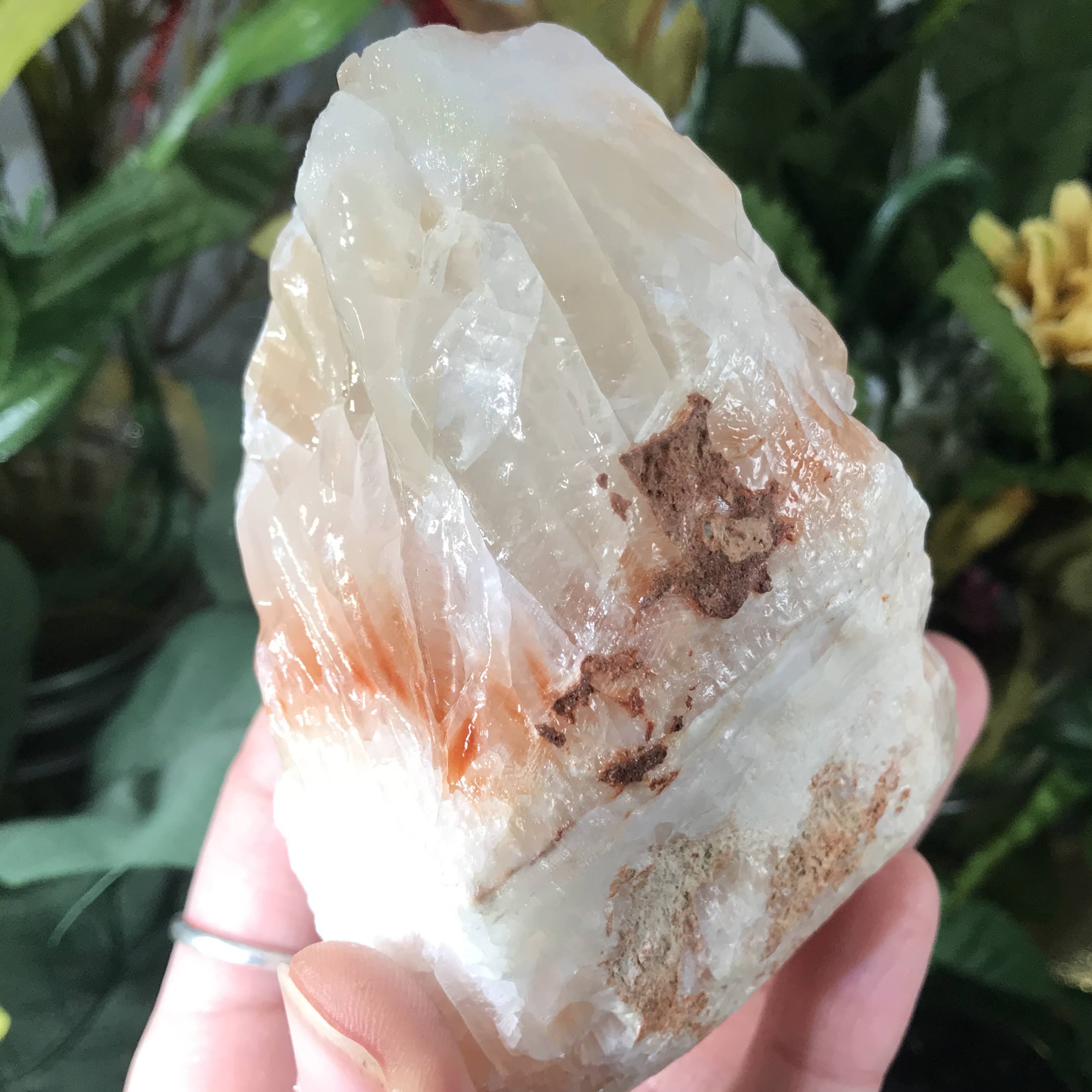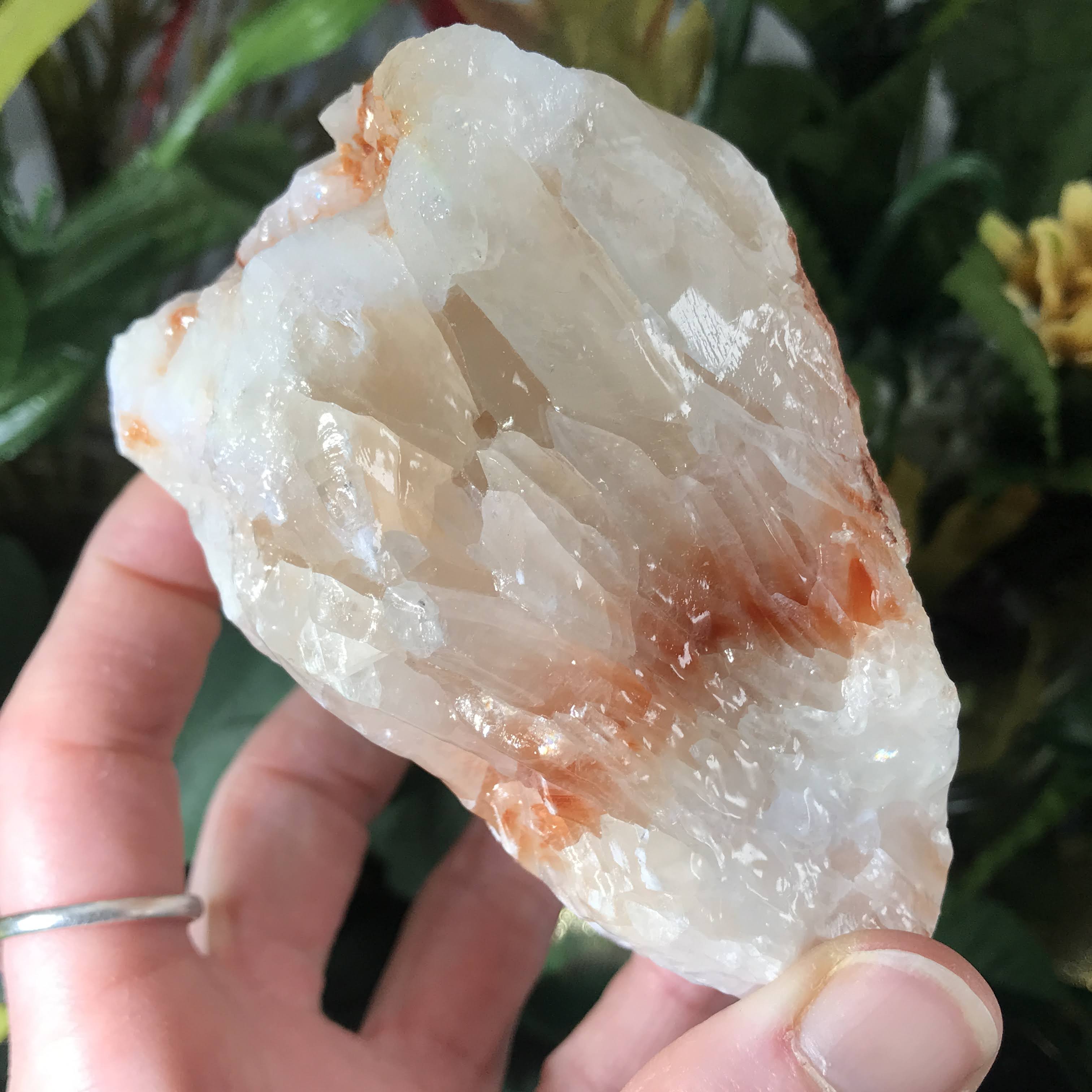 Red/strawberry calcite is a grounder, protector, encourager, and helps you take care of you by knowing when to set boundaries and not over-do it. Works well with the root chakra, grounding us in and giving us a boost of life. Helps by lifting that brain fog and restlessness. Instilling us with a sense of confidence and courage. Helps us to kick away all that energy, patterns, and things that no longer serve us (anxiety, fear, negative self talk). Instead of feeding those things we can open up pathways for the new and grow towards more positive things. Can help attract love (remember it starts with loving YOU!) & bring in those feel good, looking fly, sensual and sexual energies.