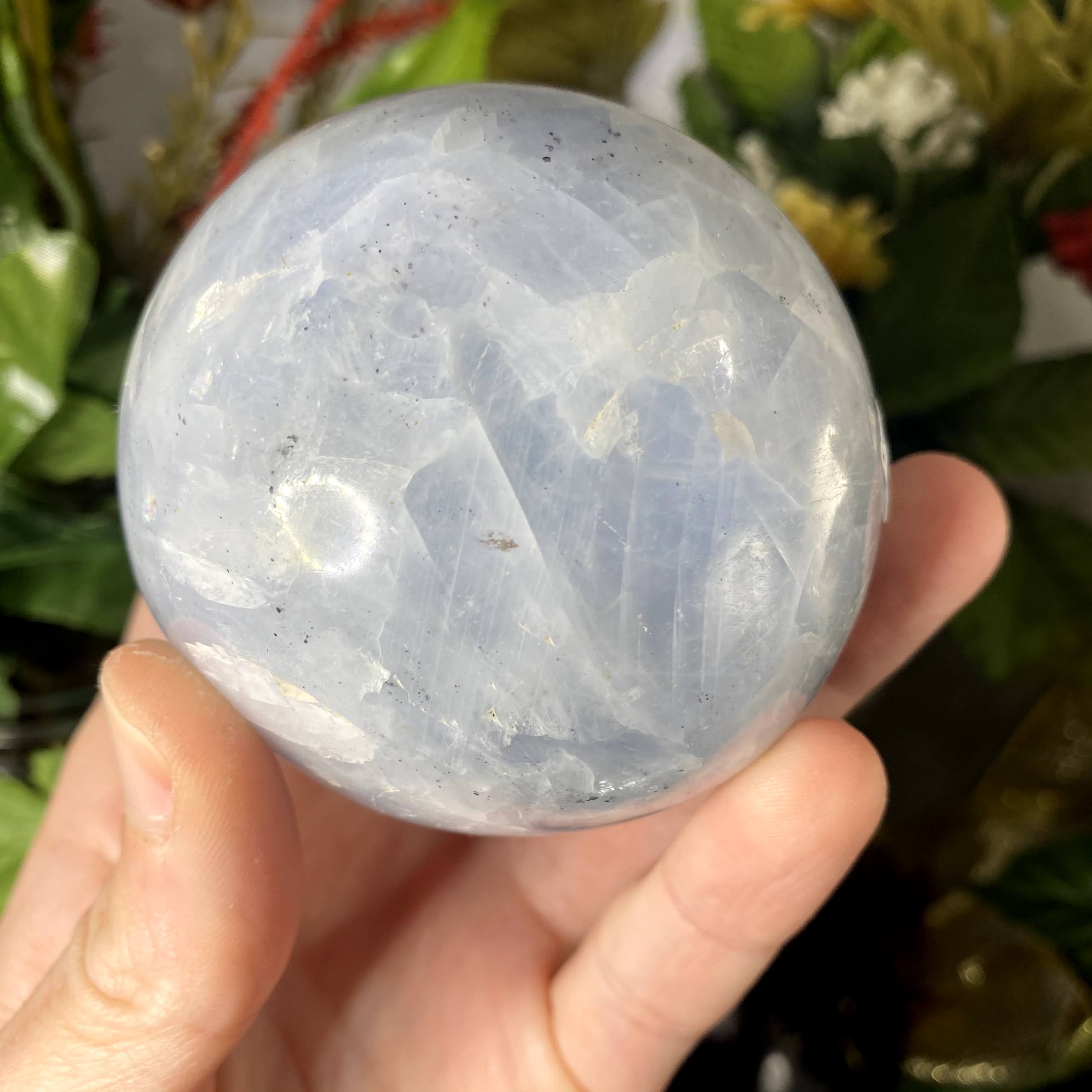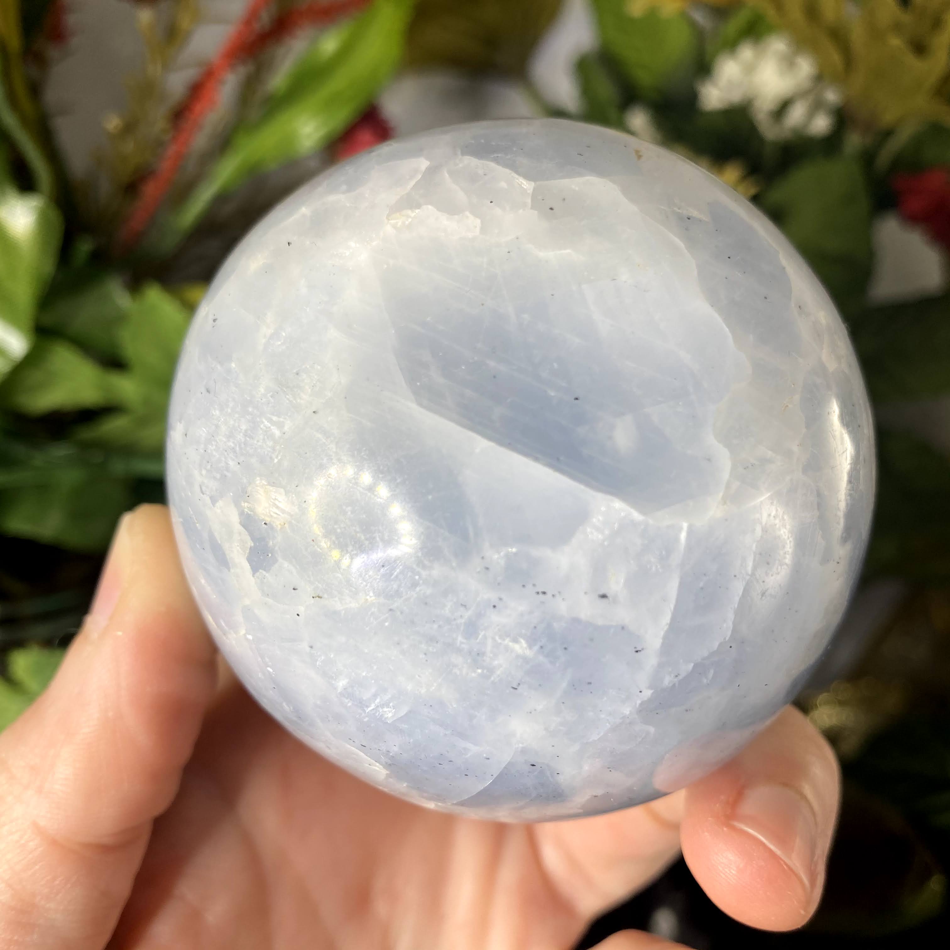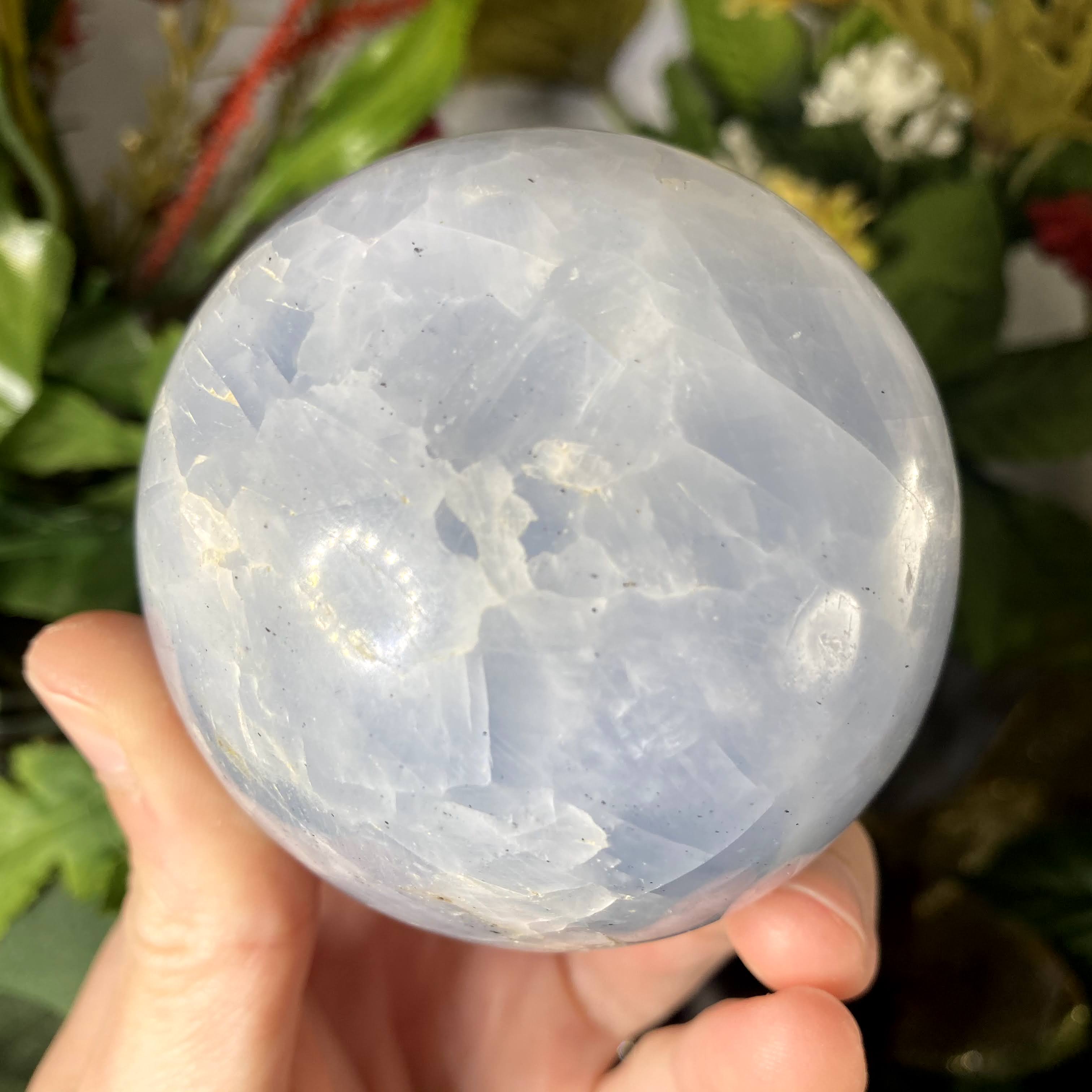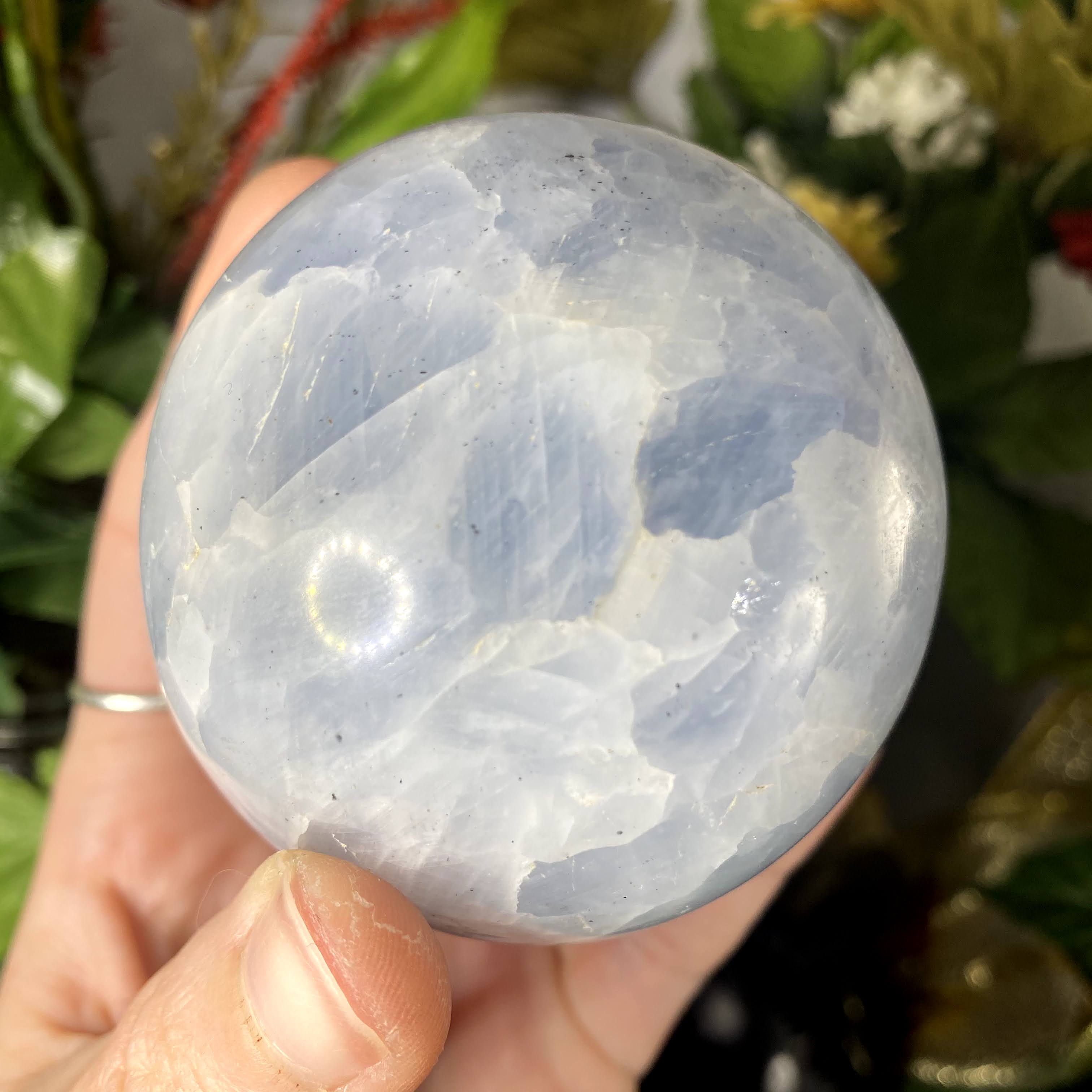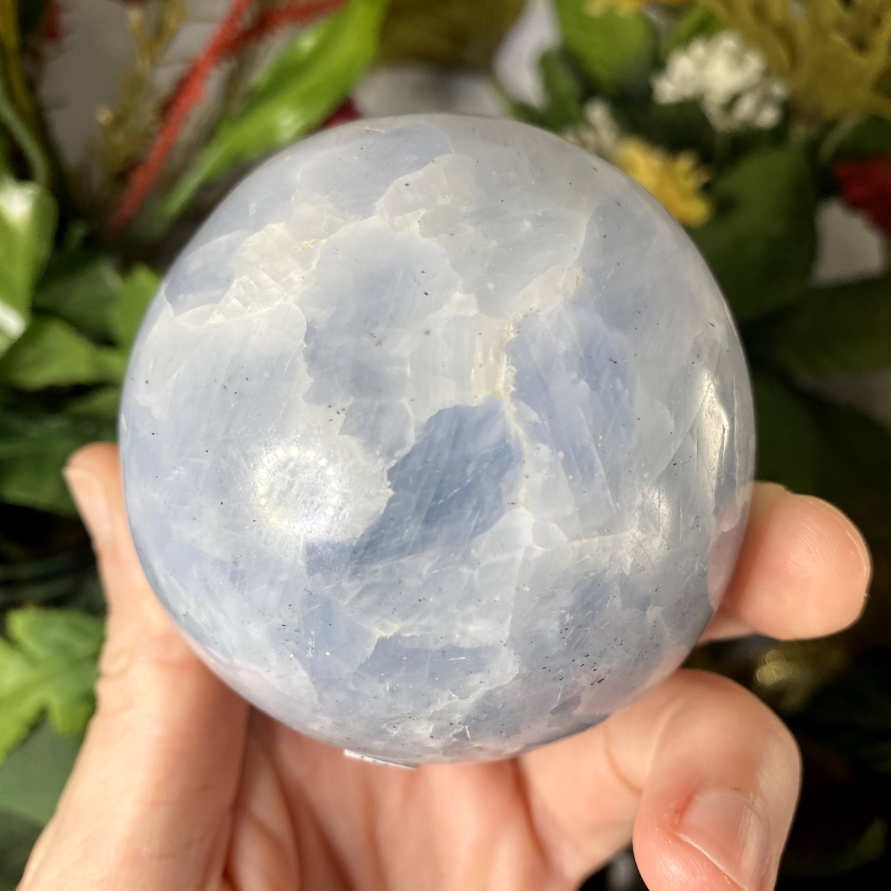 Beautiful soothing vibes on this Blue Calcite Sphere, 70mm, see video for more details and a better look at this beauty! It may not be the most PERFECT sphere shape but oh so much to love.