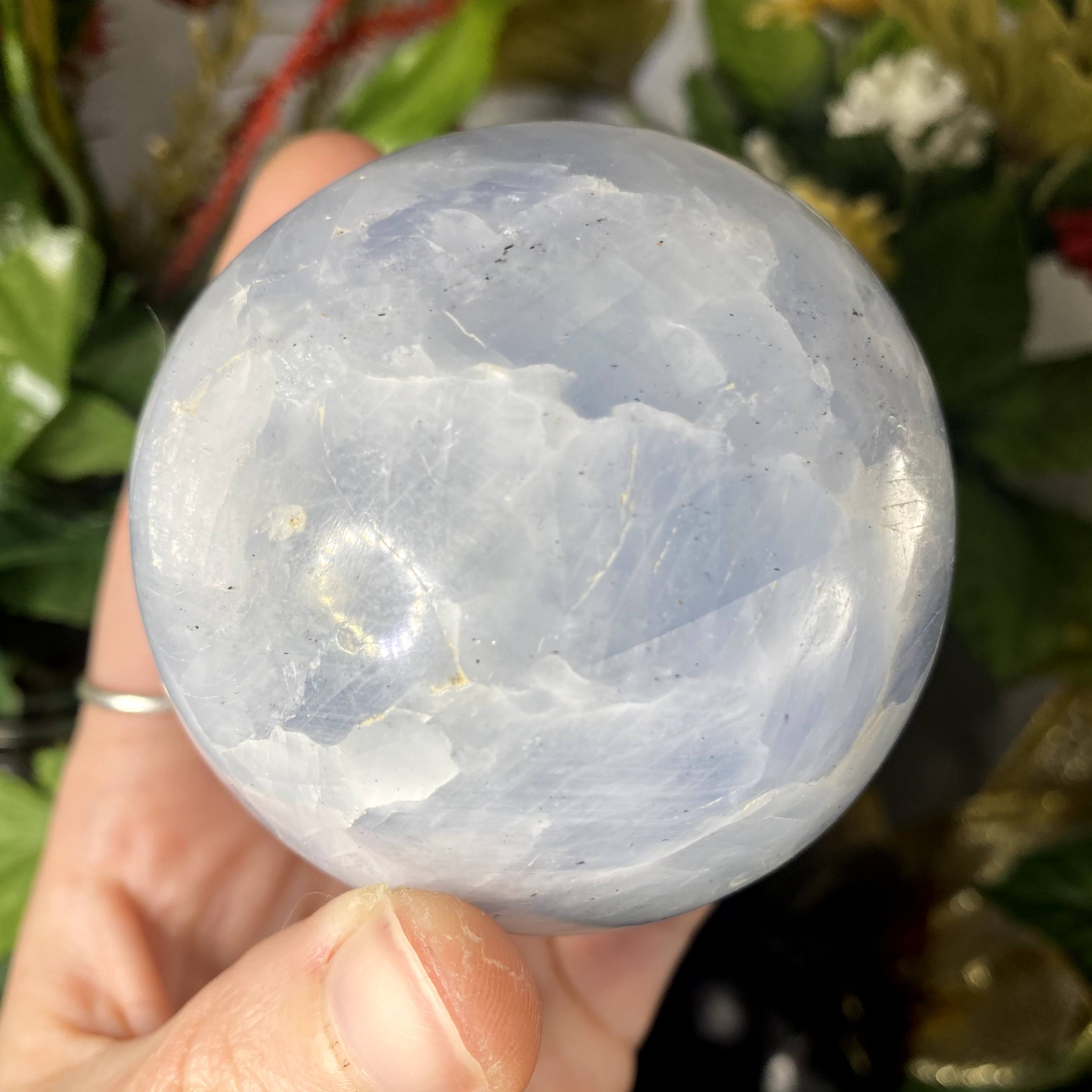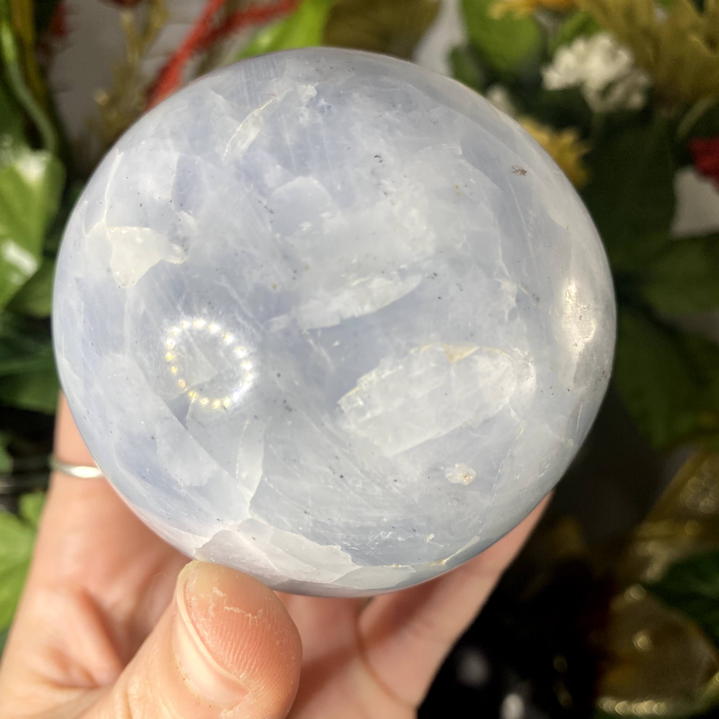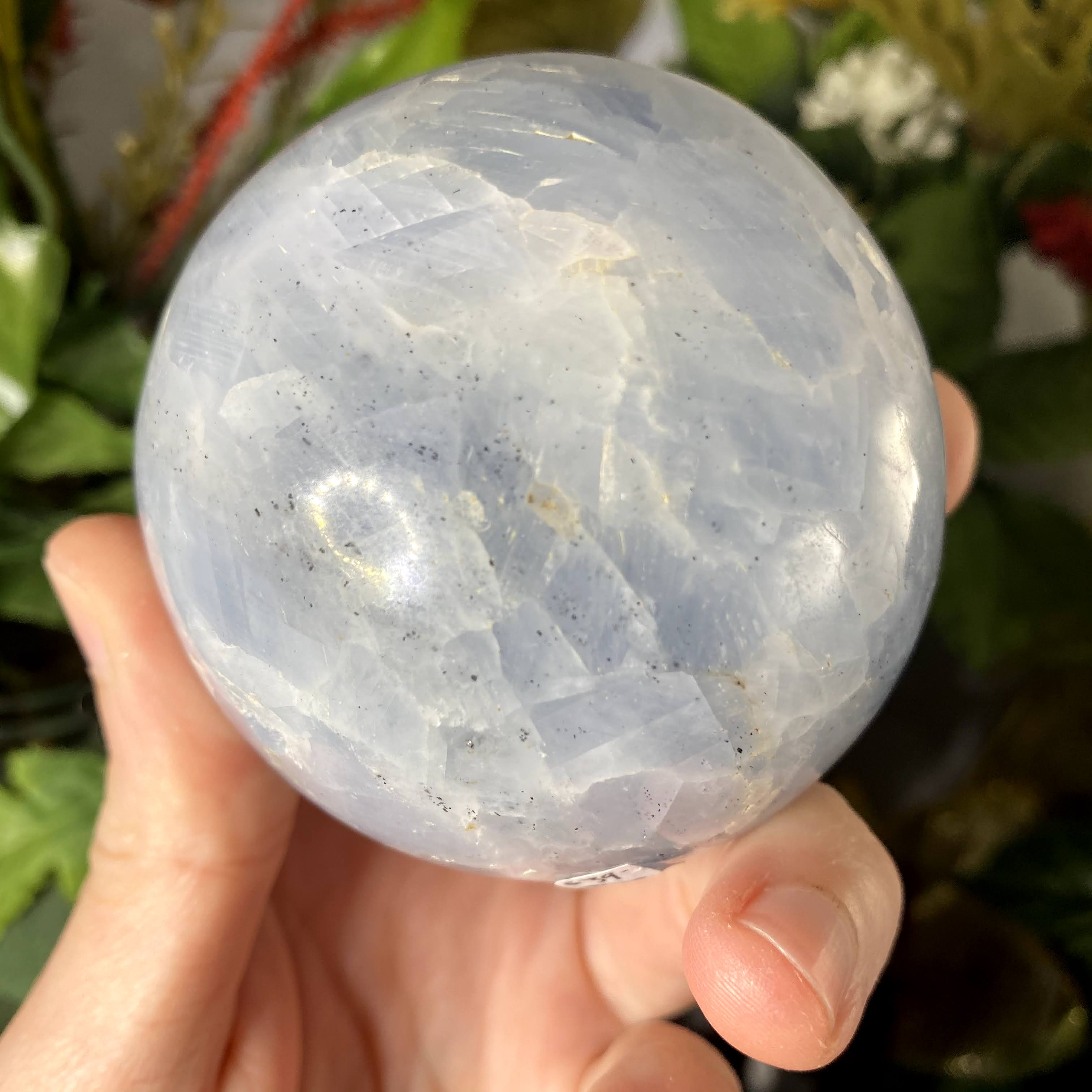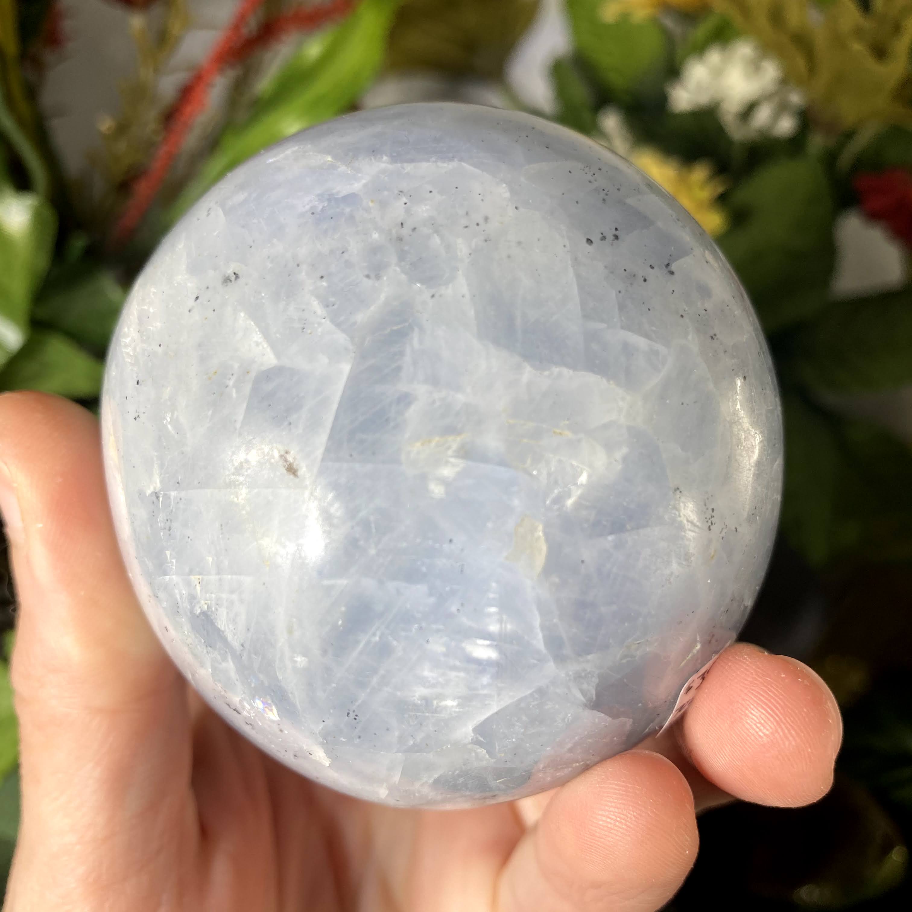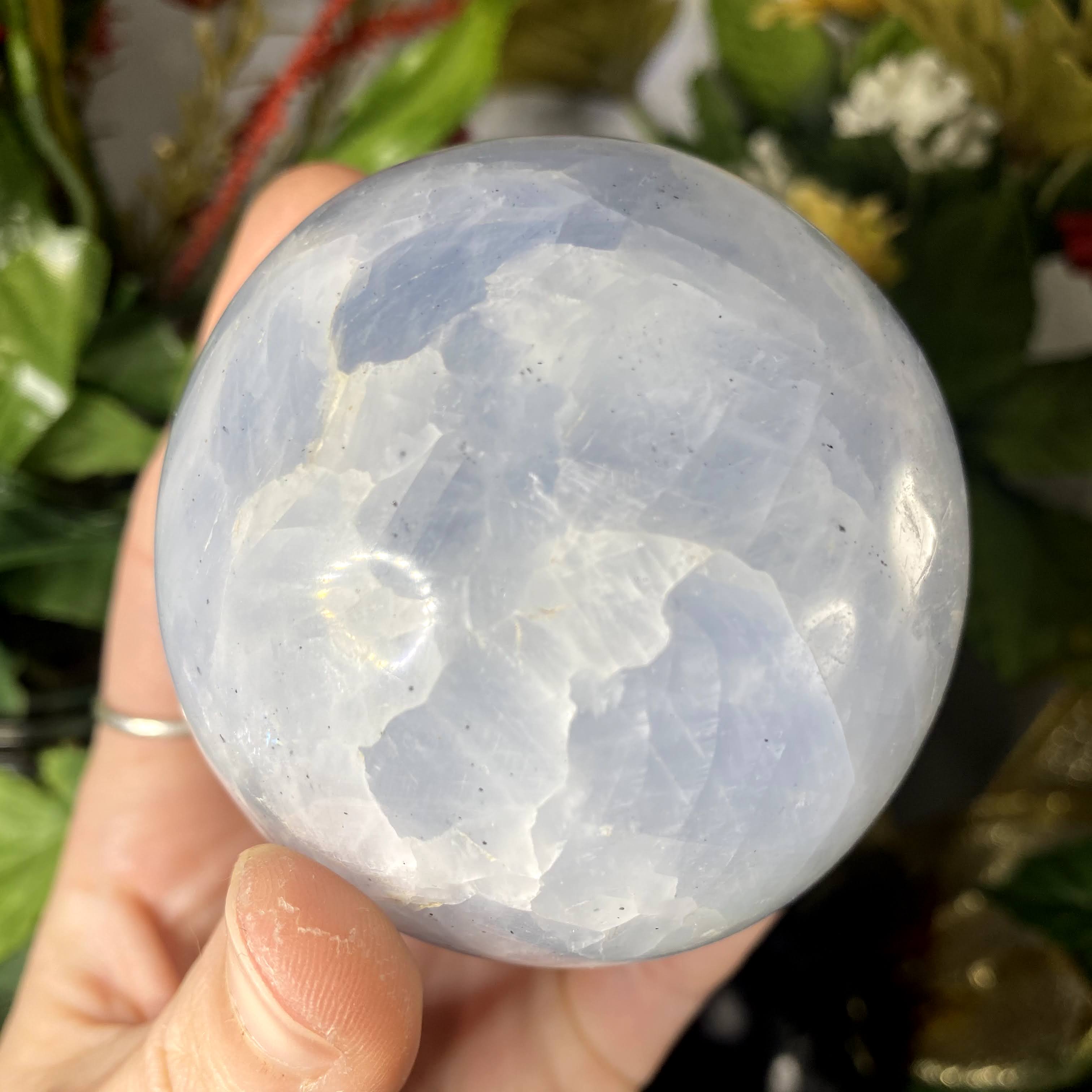 Beautiful soothing vibes on this Blue Calcite Sphere, 70mm, see video for more details and a better look at this beauty! It may not be the most PERFECT sphere shape but oh so much to love.