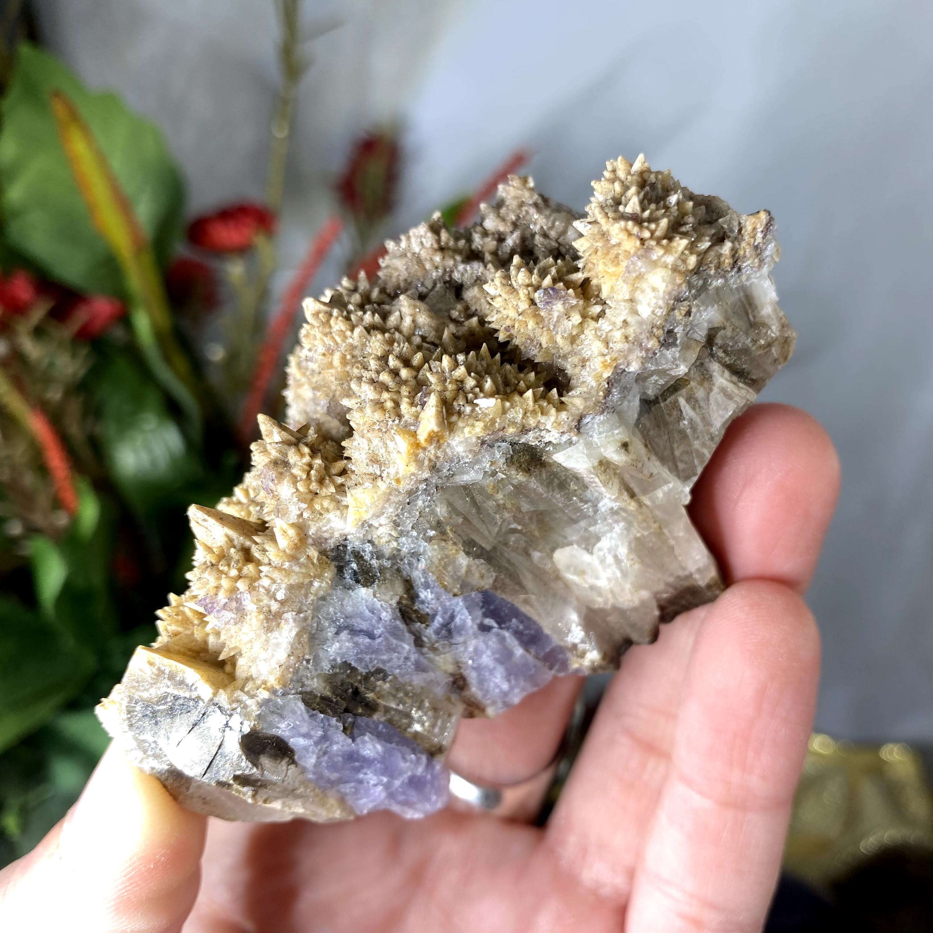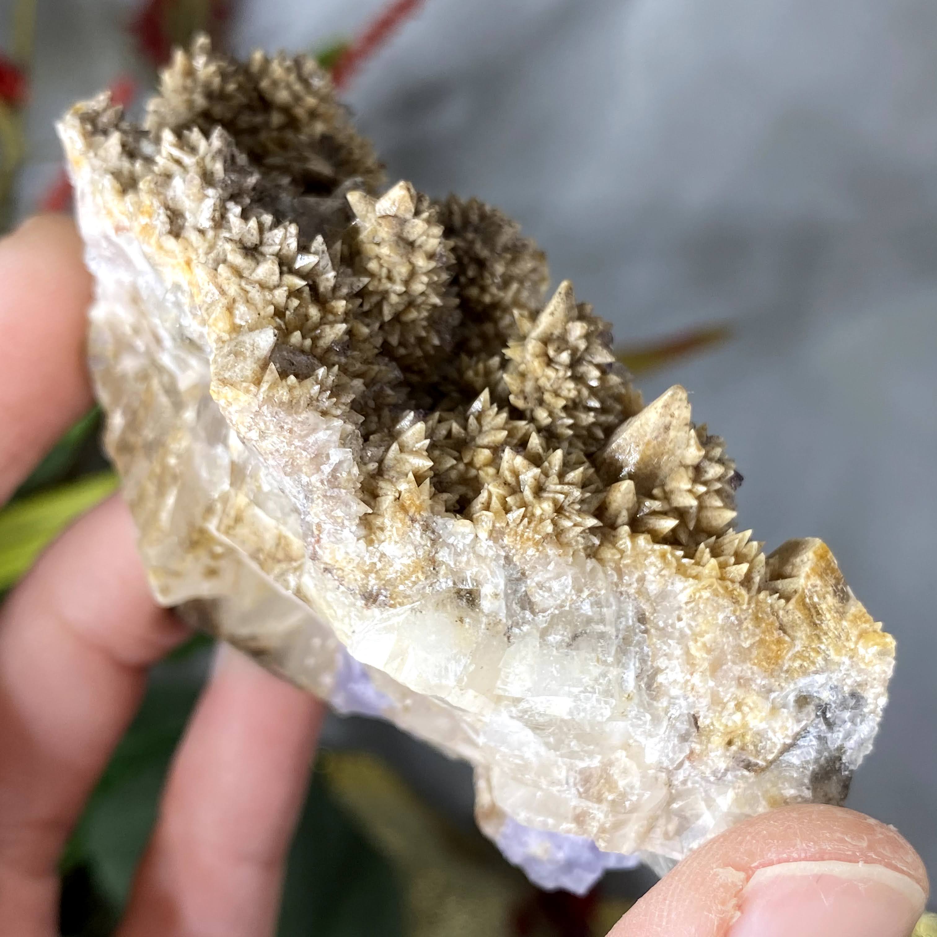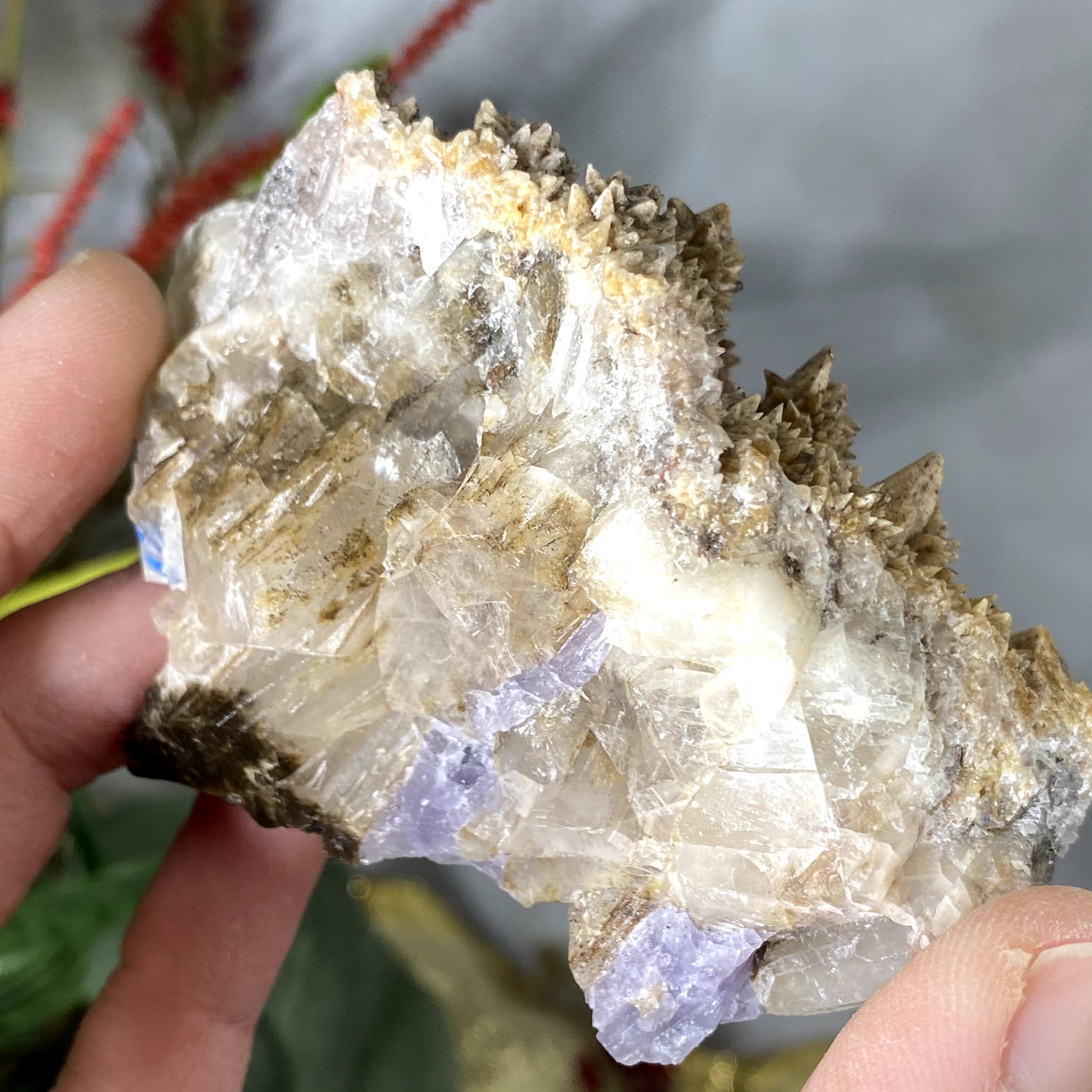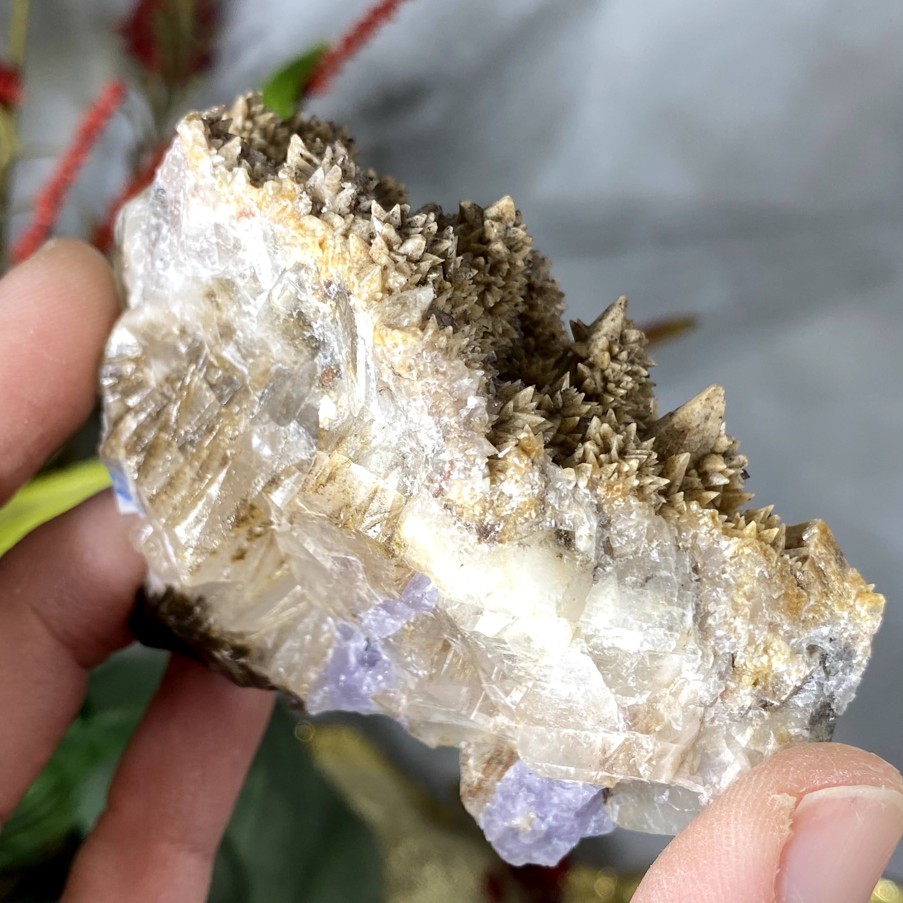 WOW!!! I LOVE THIS!!!! Looks to me like calcite growing on calcite, multiple generations of growth on this beauty. And this color??? The purple fluorite on the sides/bottom, I LOVE IT!!! I highly recommend checking out the video!