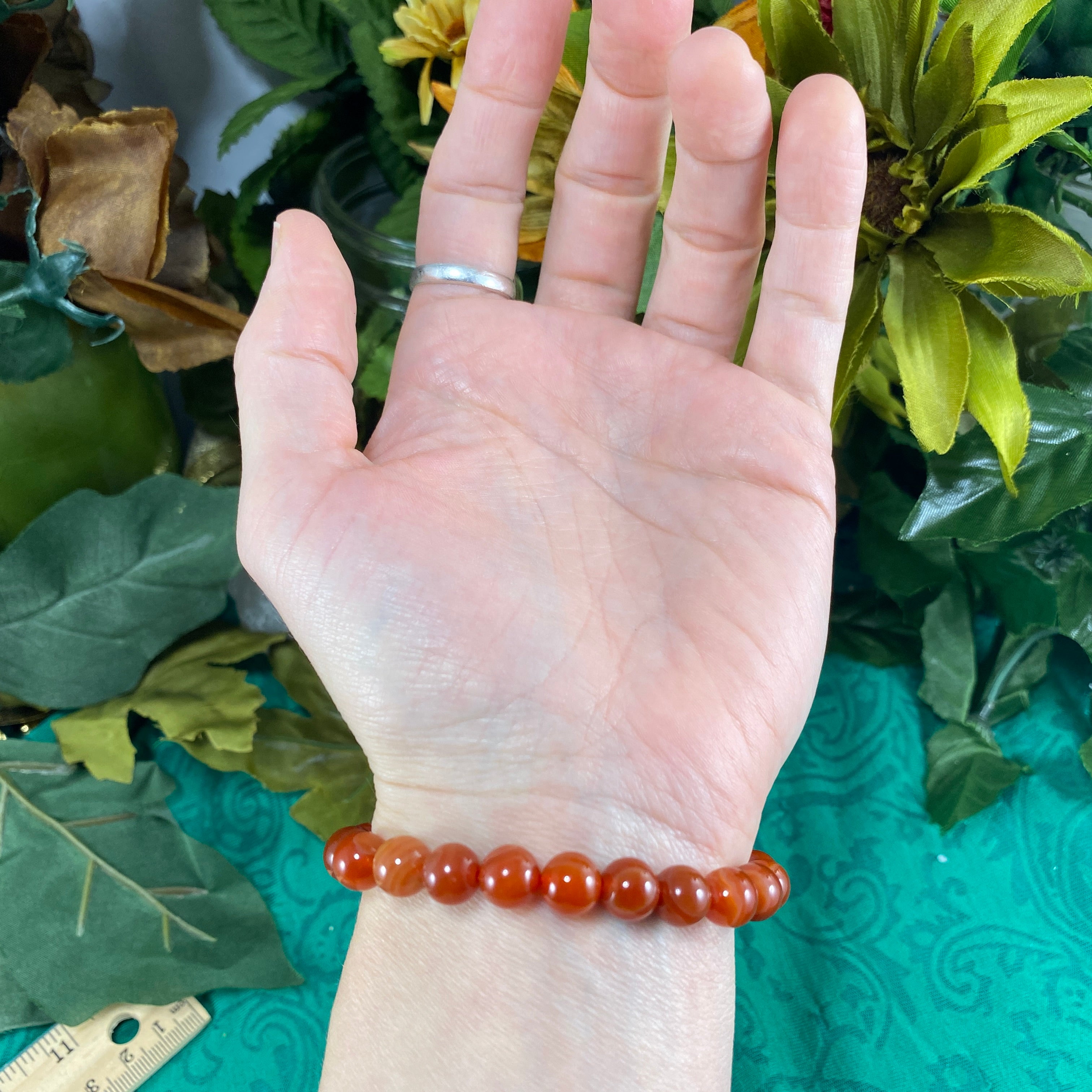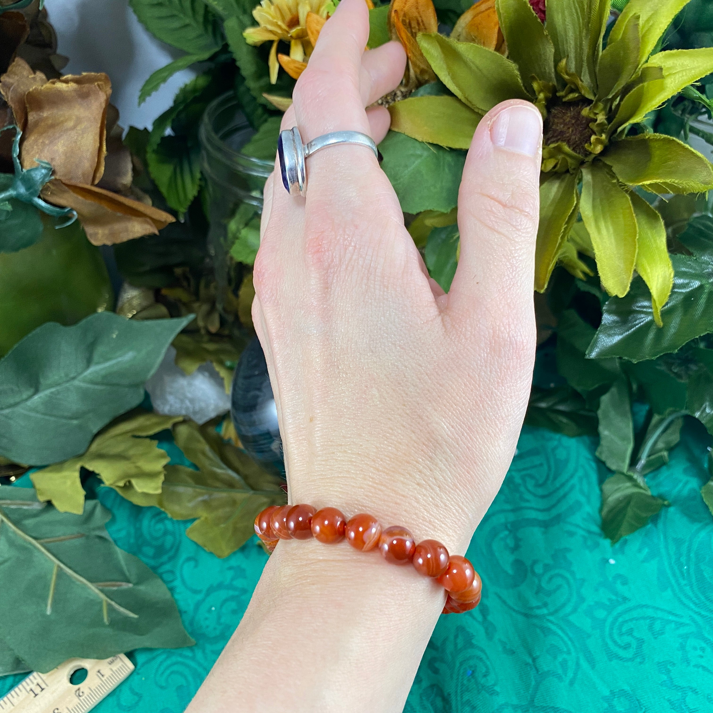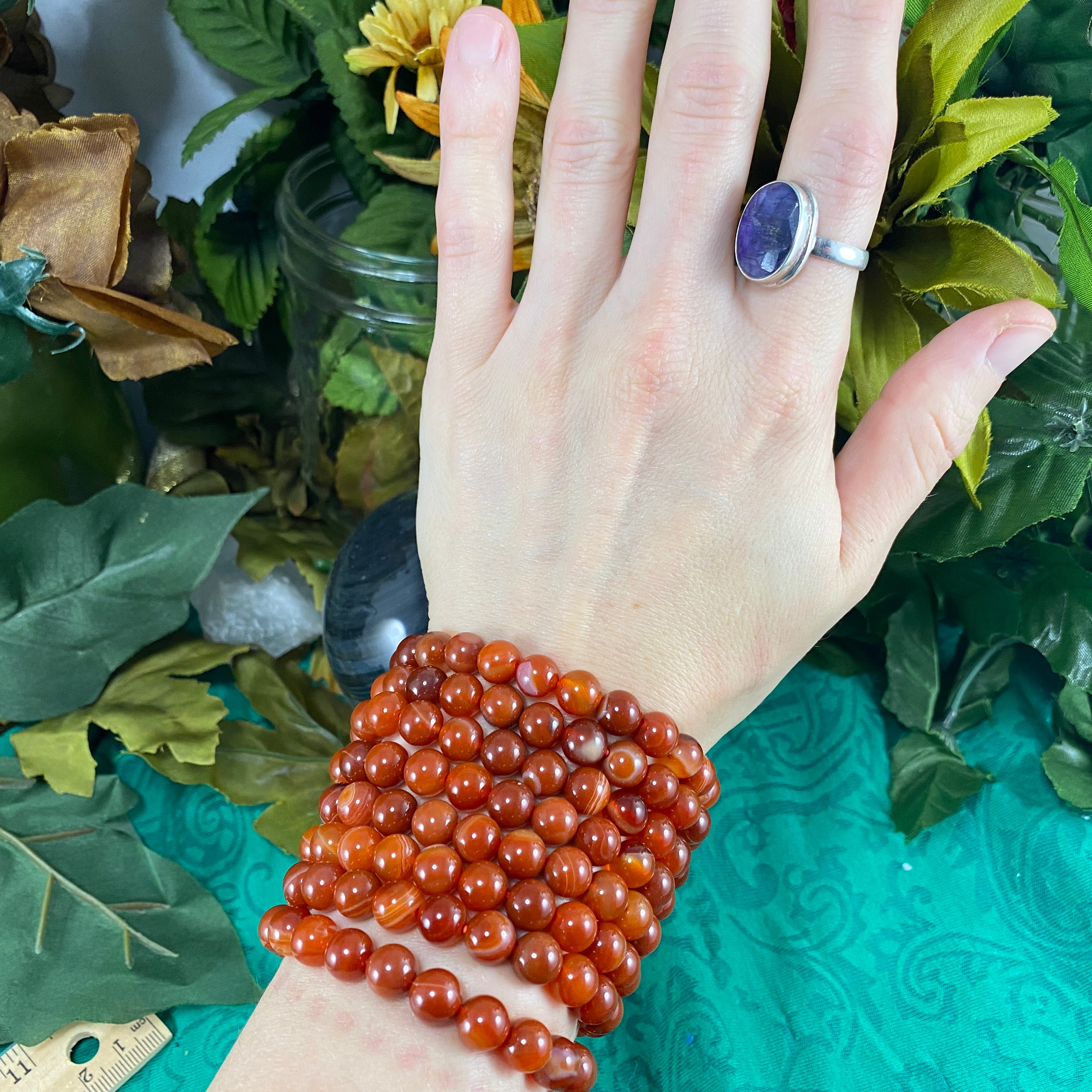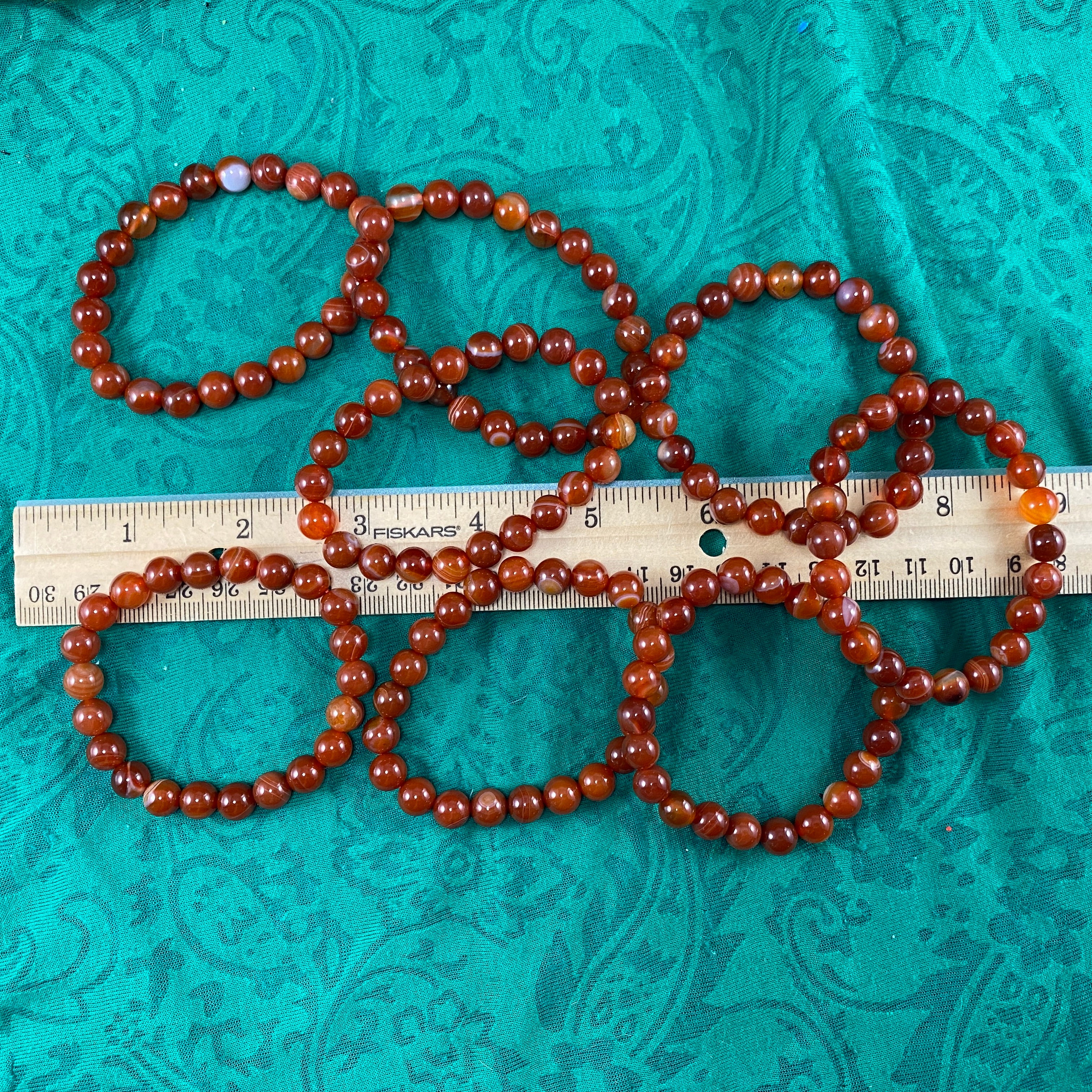 Power up with some Carnelian Bracelets! Price is for ONE single strand bracelet, random pull (I'll ask my intuition to help). Bracelets are stretchy, please see image with ruler for size reference. My wrists are on the smaller side I'd say if you're looking at those photos.