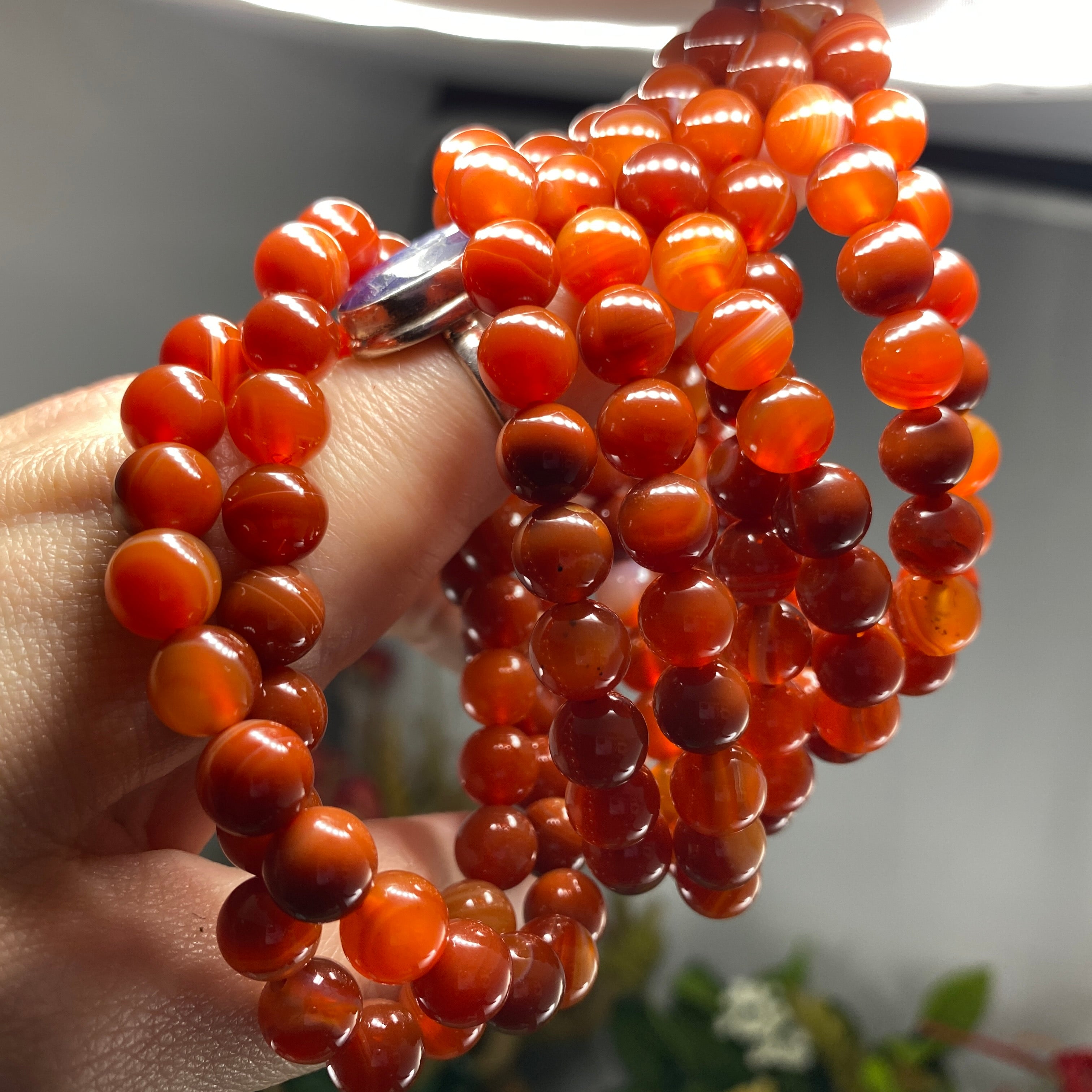 Carnelian - Carnelian Round Bead Bracelets! (Price for one single strand stretchy bracelet) C770
