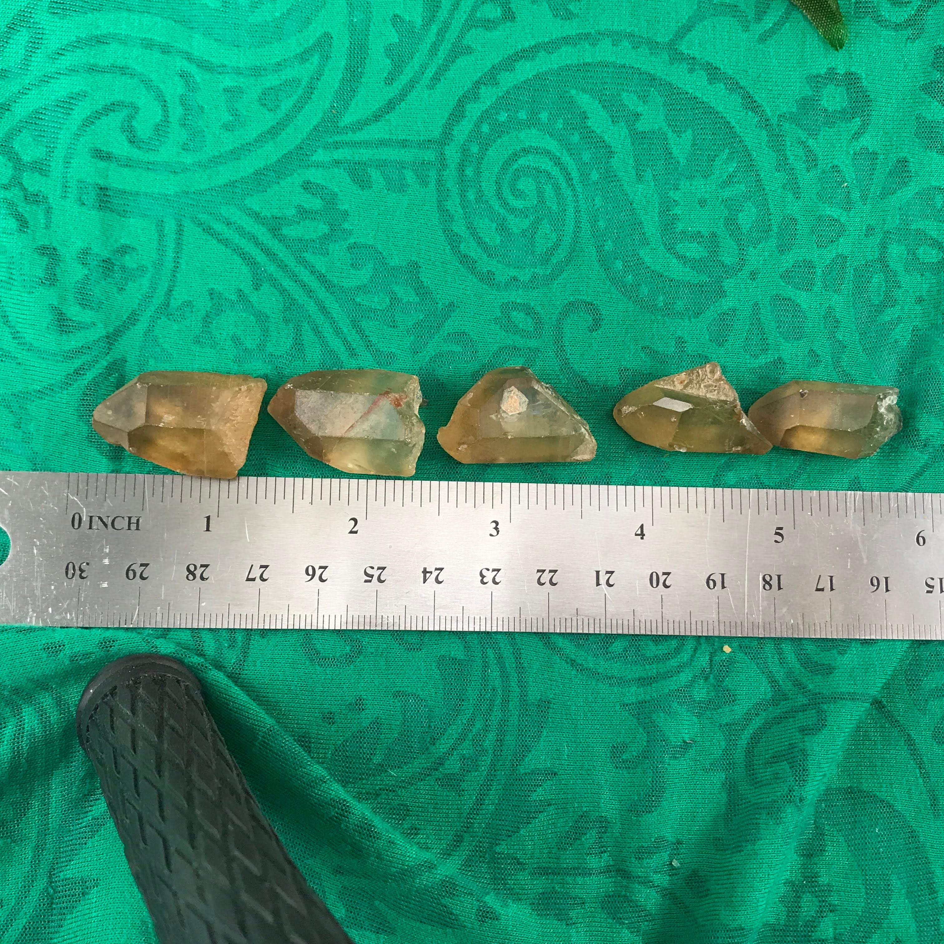 Crystals are photographed in bright direct light conditions to show the details best. Please note that different lighting may change how the crystal appears. Please see last image with ruler for a size reference.