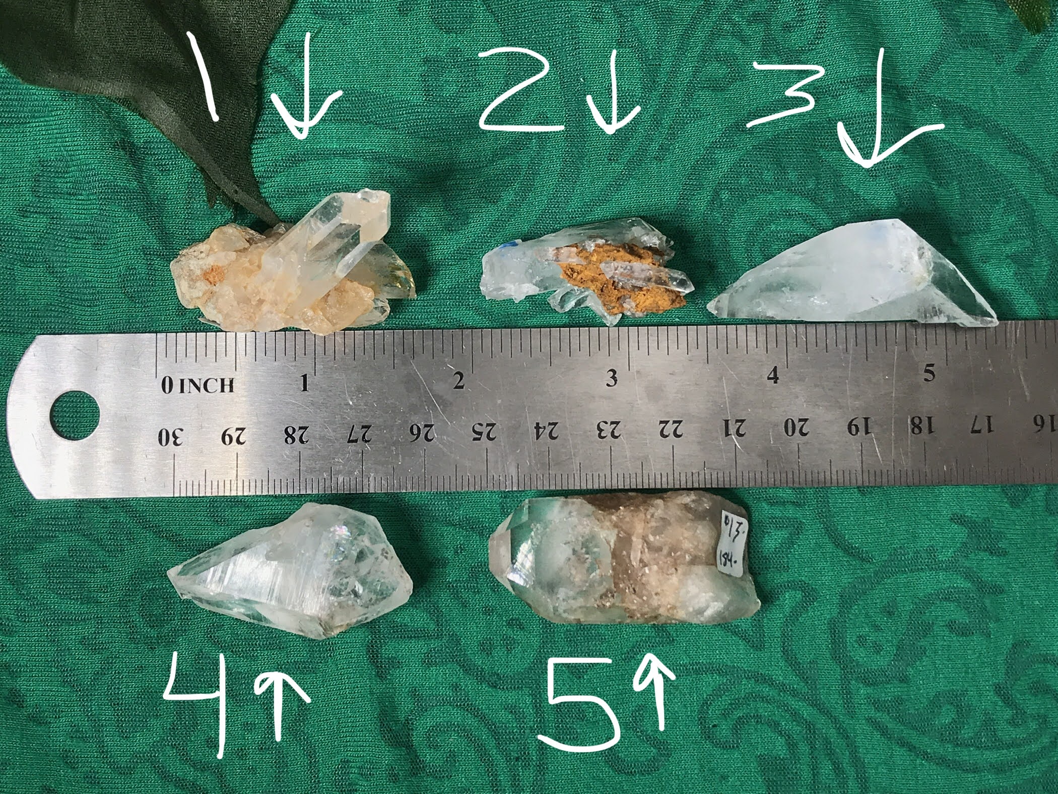 Love the window and aesthetics in #1, the double terminated quartz that almost looks like it's floating in #2, the sweet double terminated (lightning bolt!) crystal with imprints for #3, the sweet rainbow action in the double terminated #4, and the inclusions and mystery of #5!