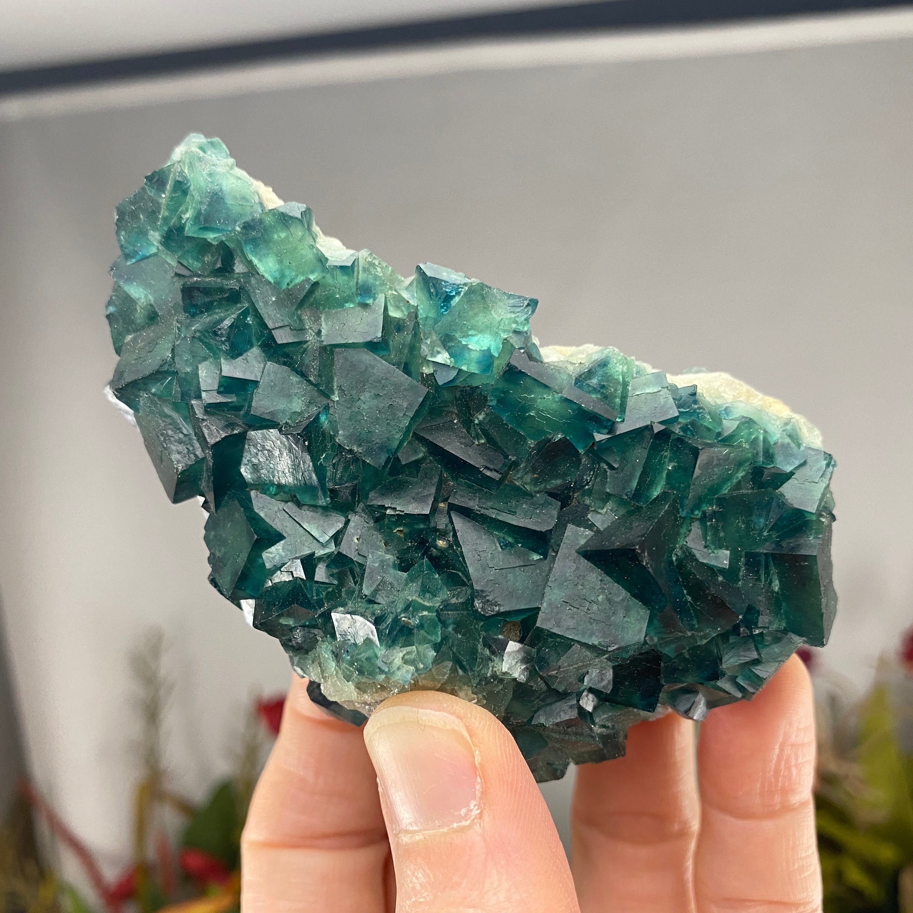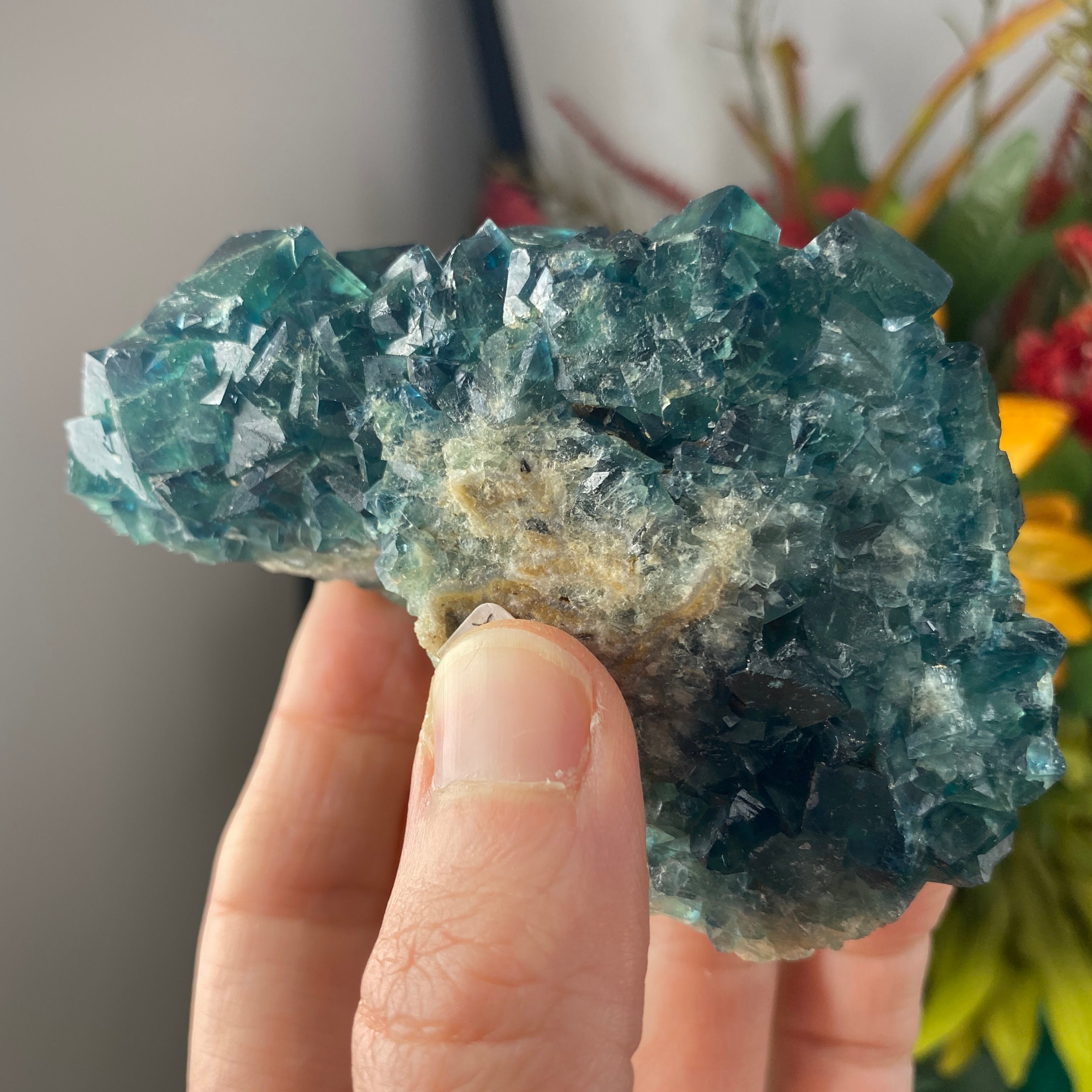 This listing is for the one gorgeous fluorite shown! This lovely green fluorite even has hints of blue when in certain light, like natural sunlight, and I dig it! It also glows blue under UV (long & short wave) light for UV mineral lovers!
