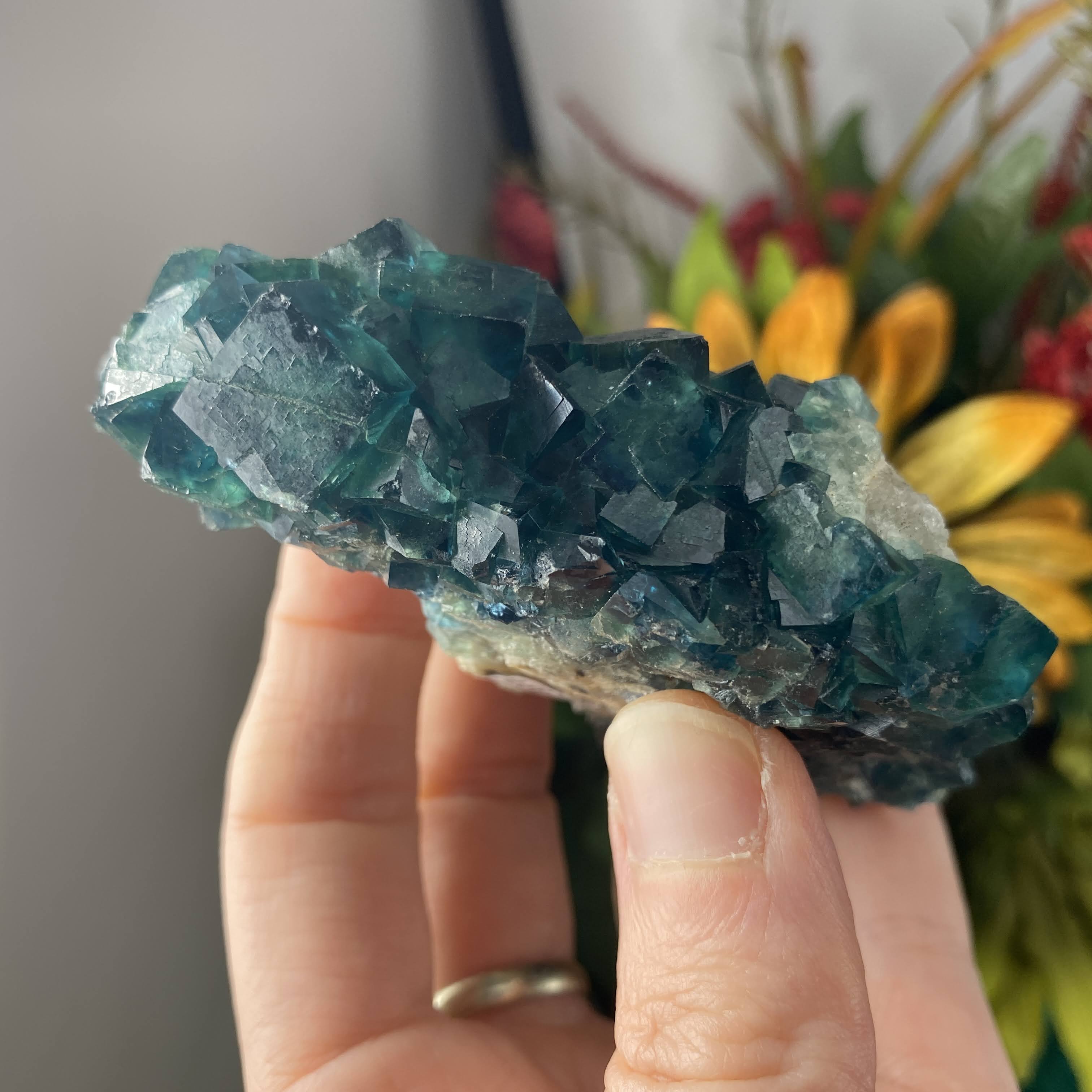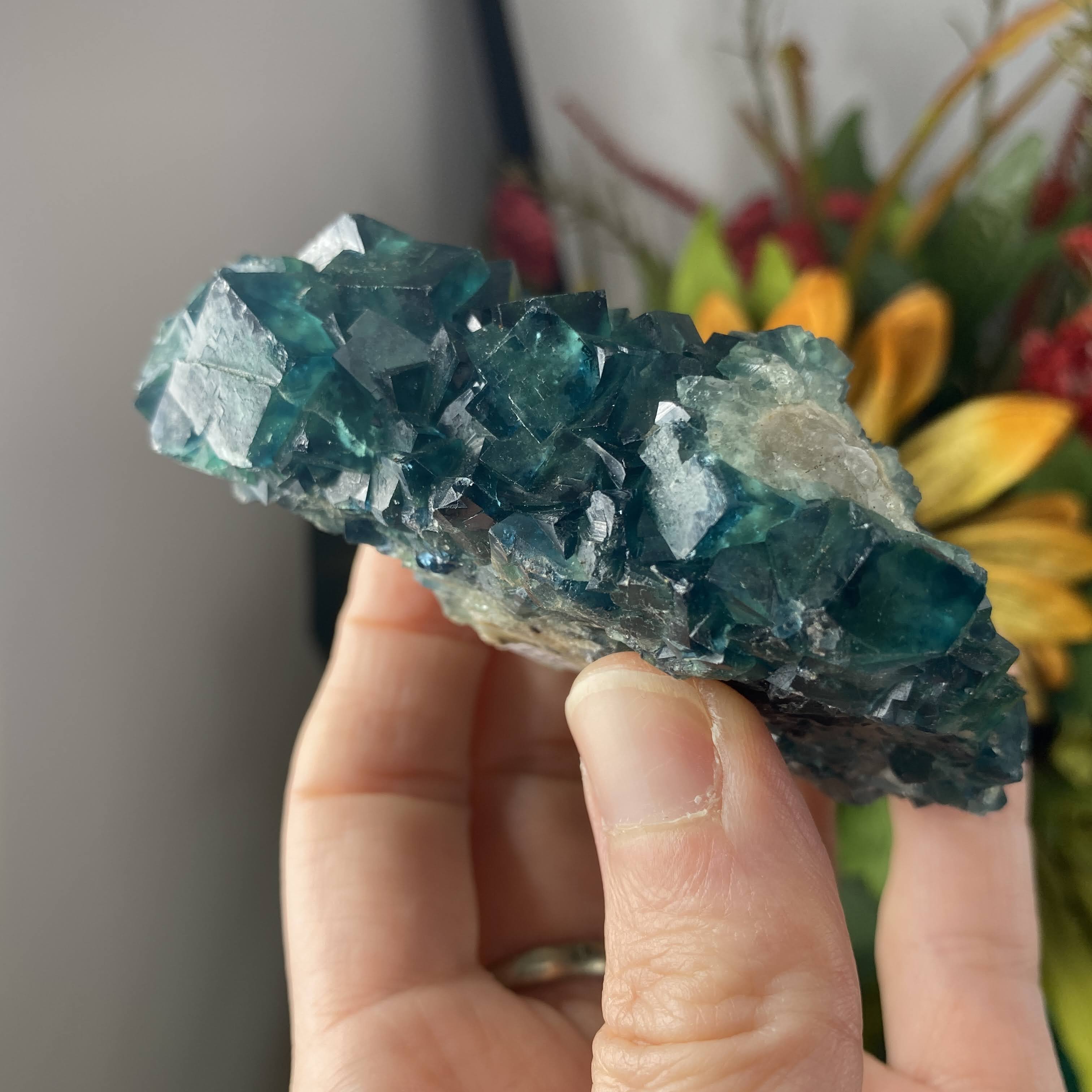 Fluorite is a crystal who’s color will fade over time in direct sunlight, it is advised to keep out of long exposure to direct sunlight to keep the colors vivid as can be. Also good to not keep in water for long periods of time as it is technically water soluble.