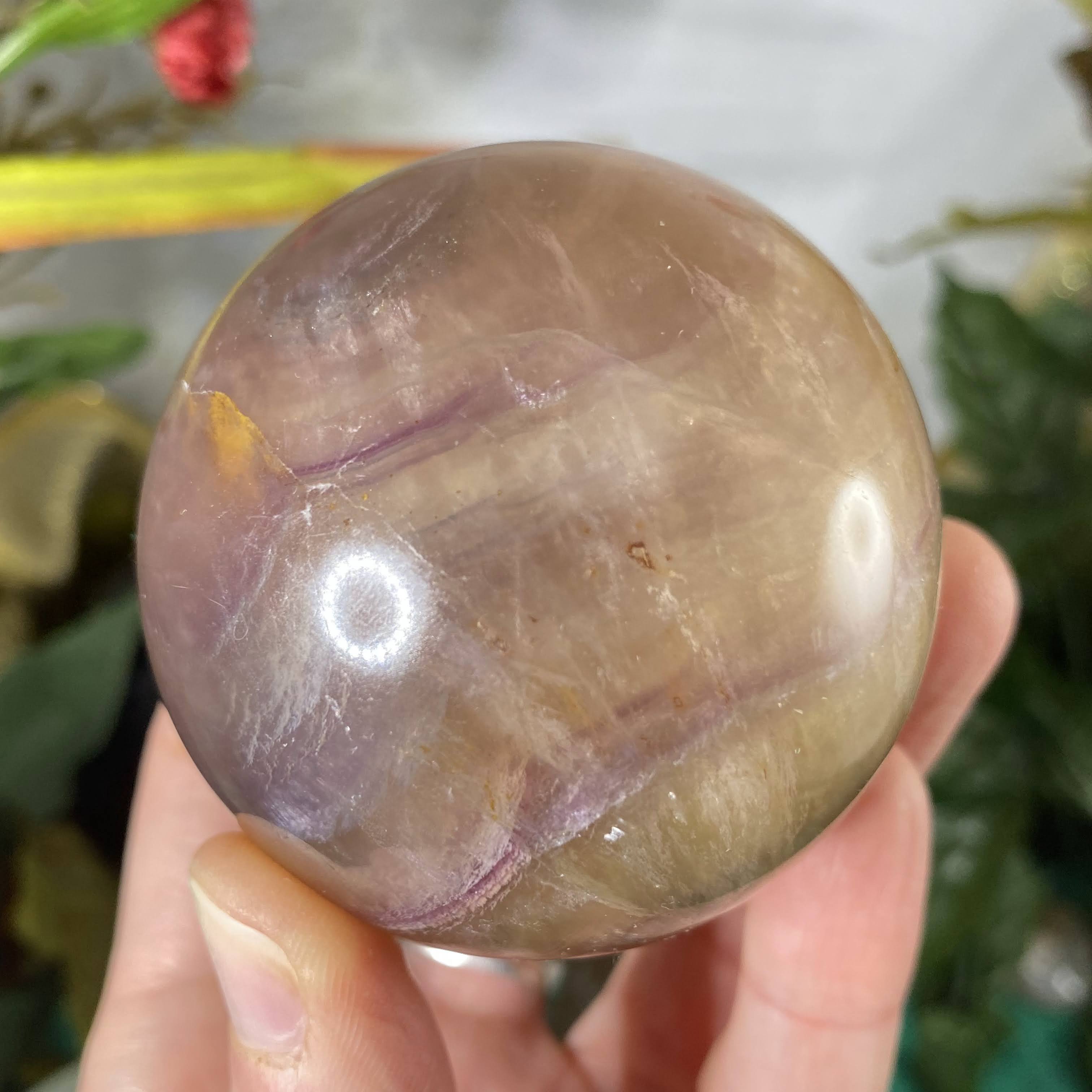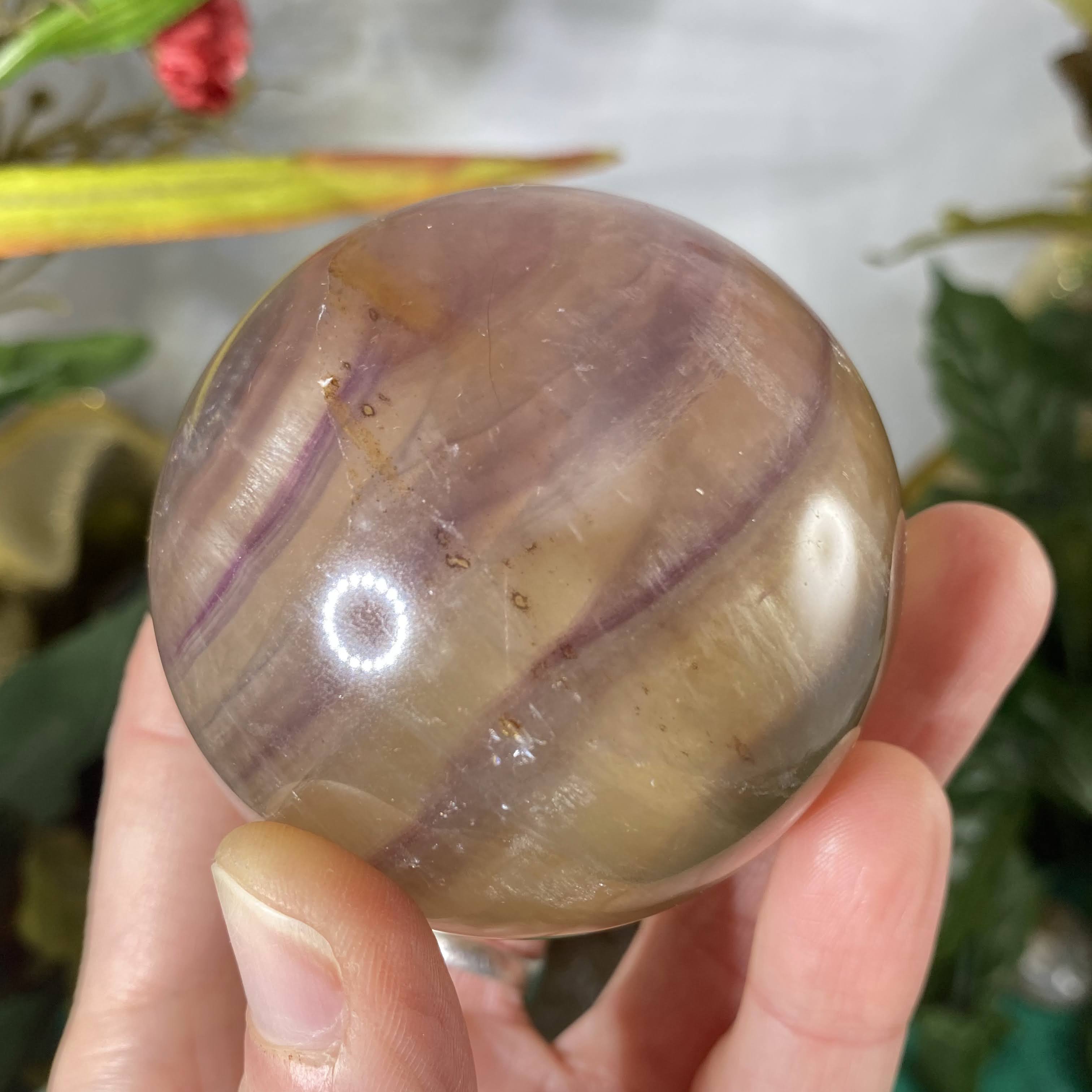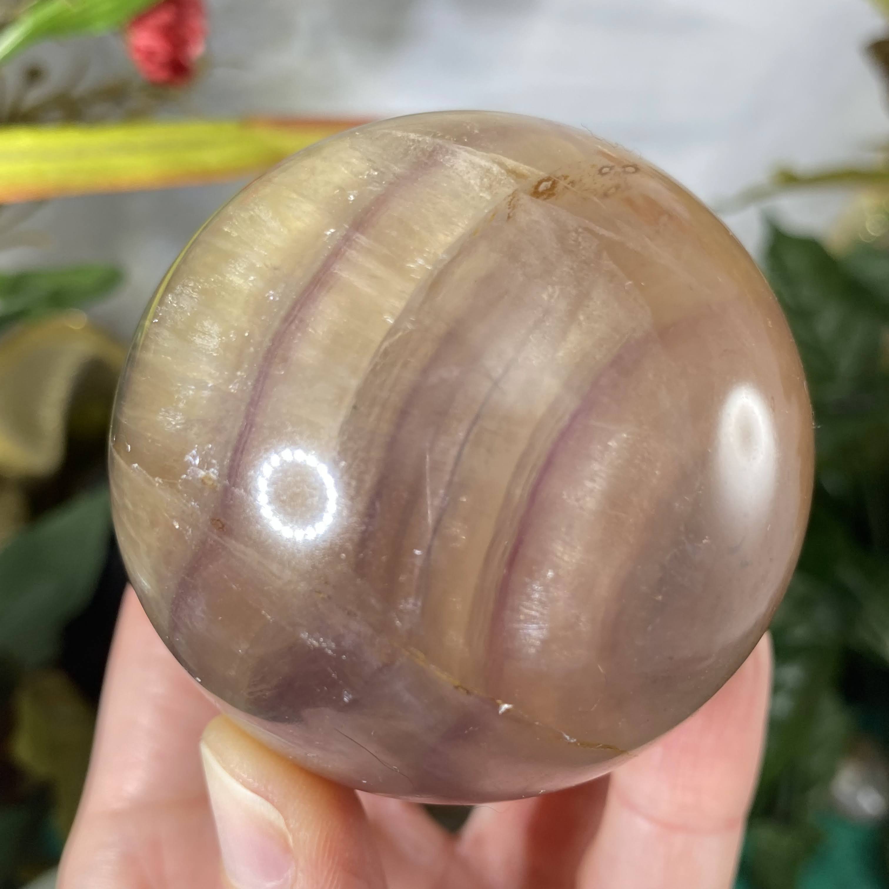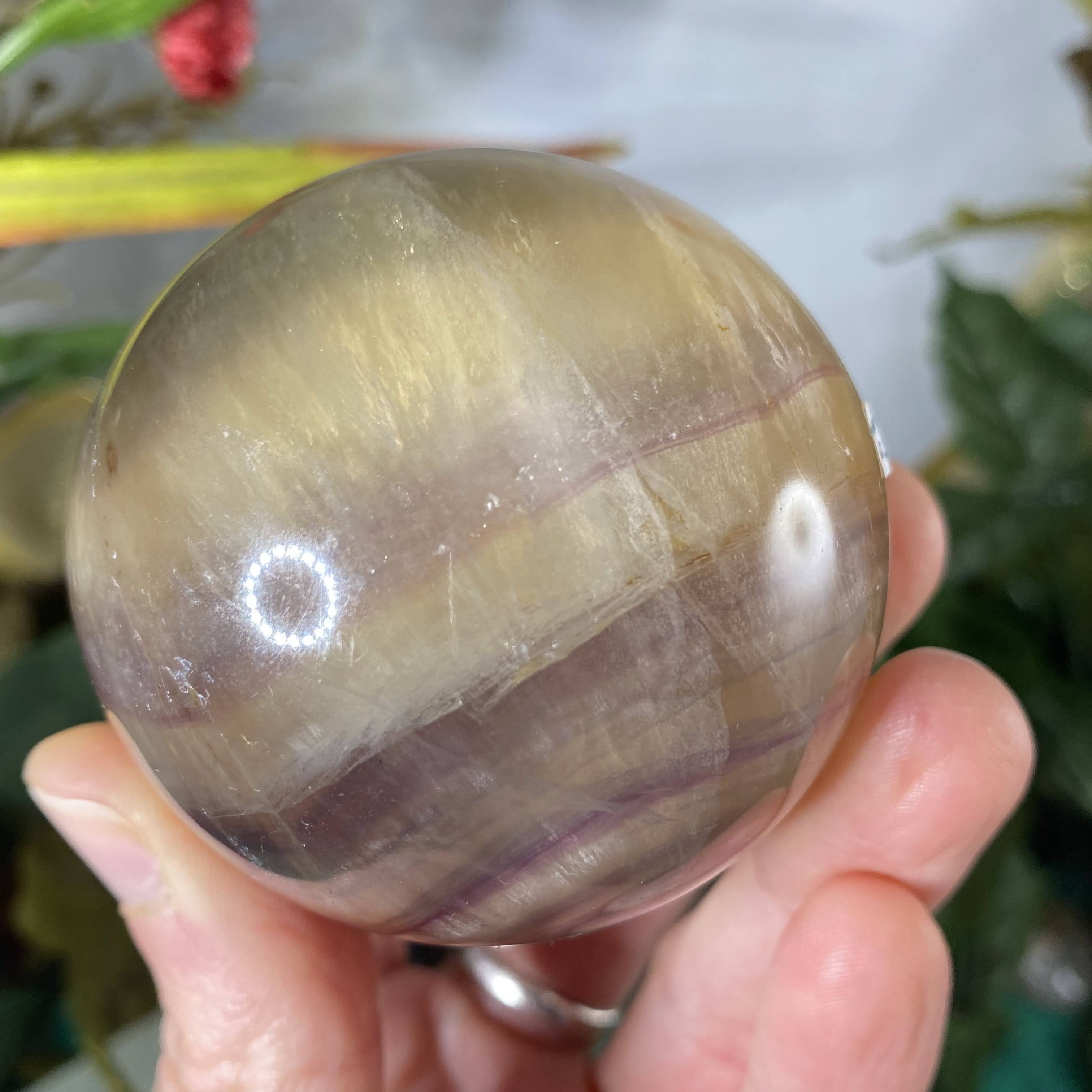 This listing is for the one 60 mm yellow & purple fluorite sphere shown.