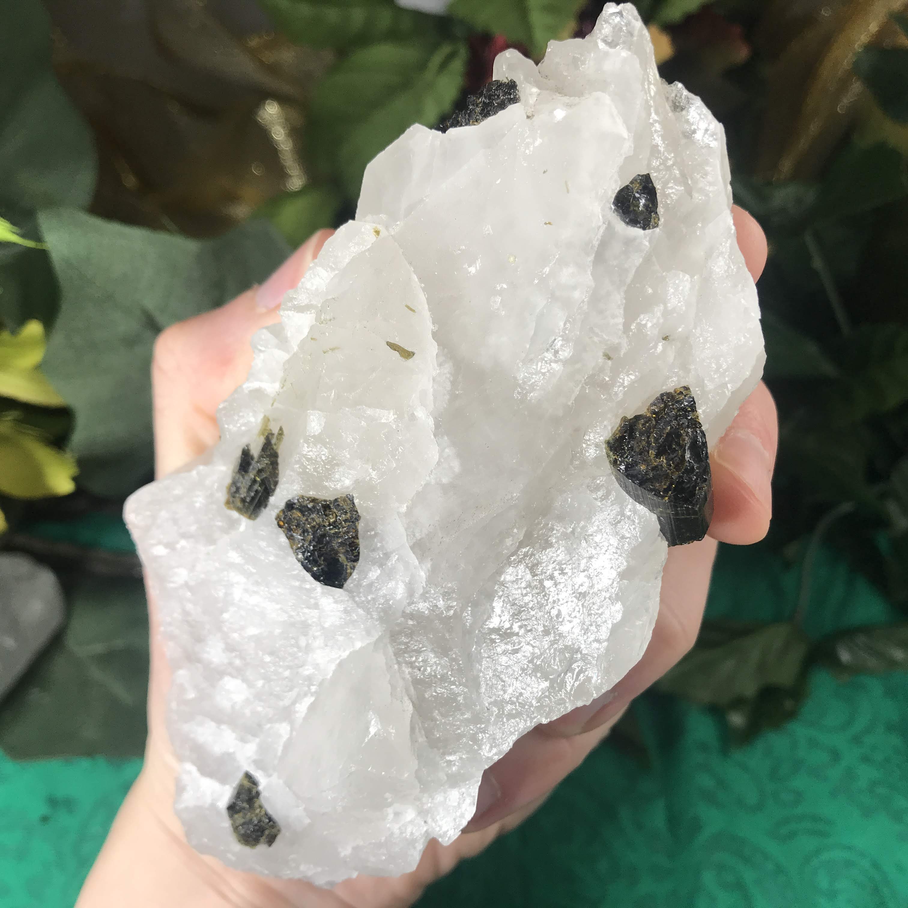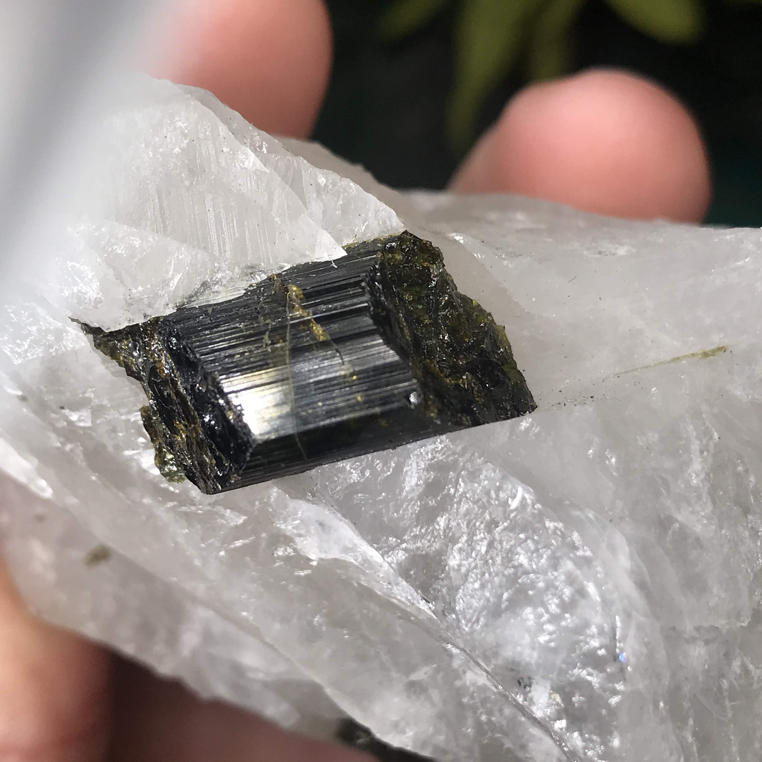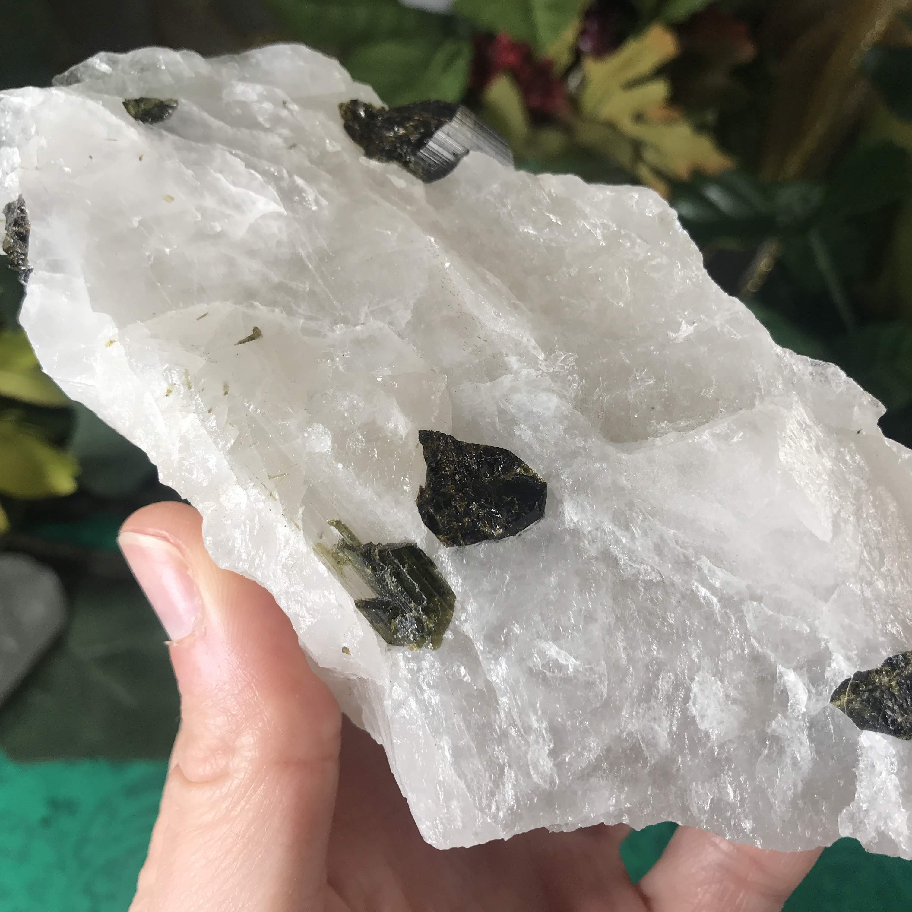 Green Tourmalinated Quartz- Combines the qualities of tourmaline with the qualities of Quartz. The quartz (power, energy director transmuter and amplifier, and all around healing crystal!) will amplify the strong properties of the tourmaline.