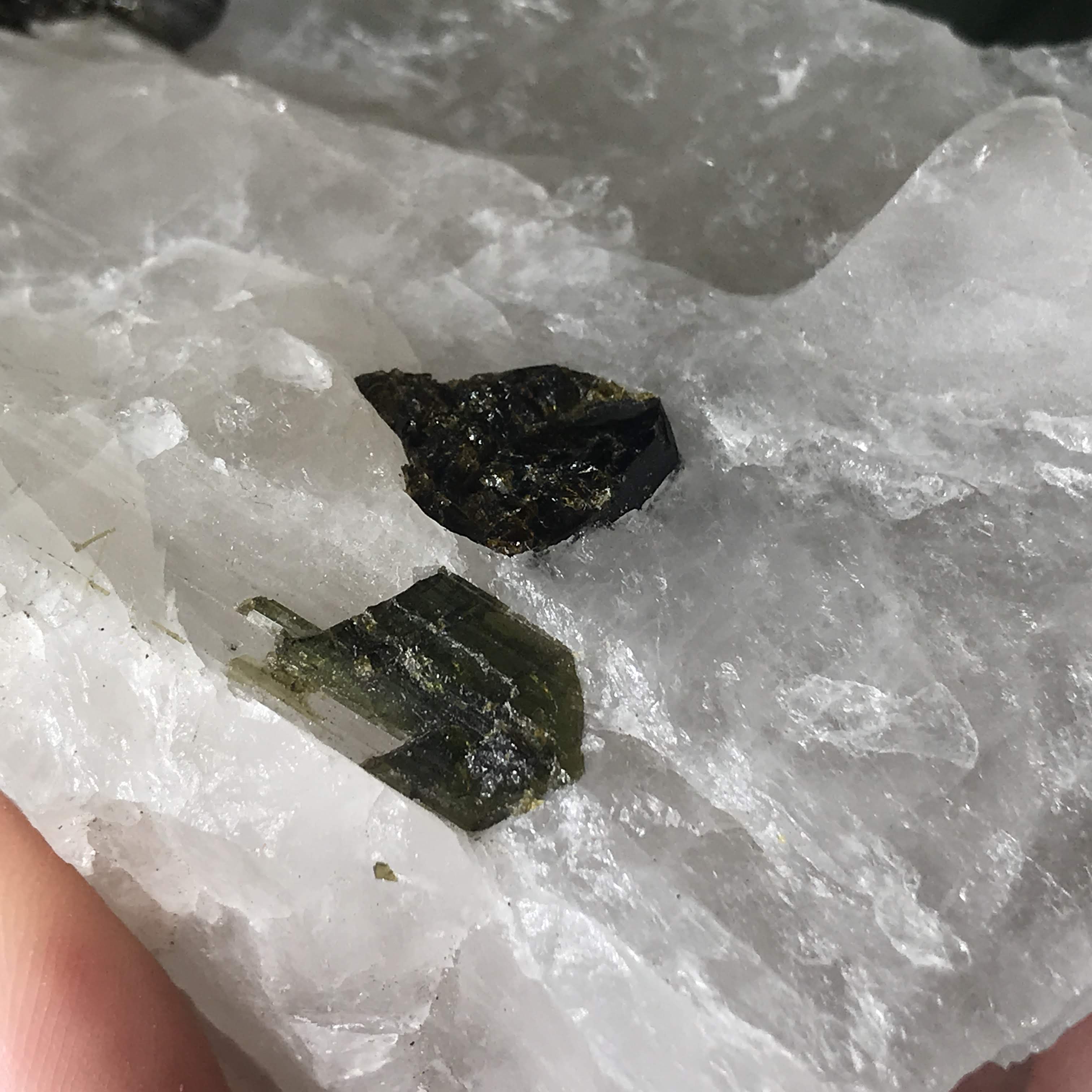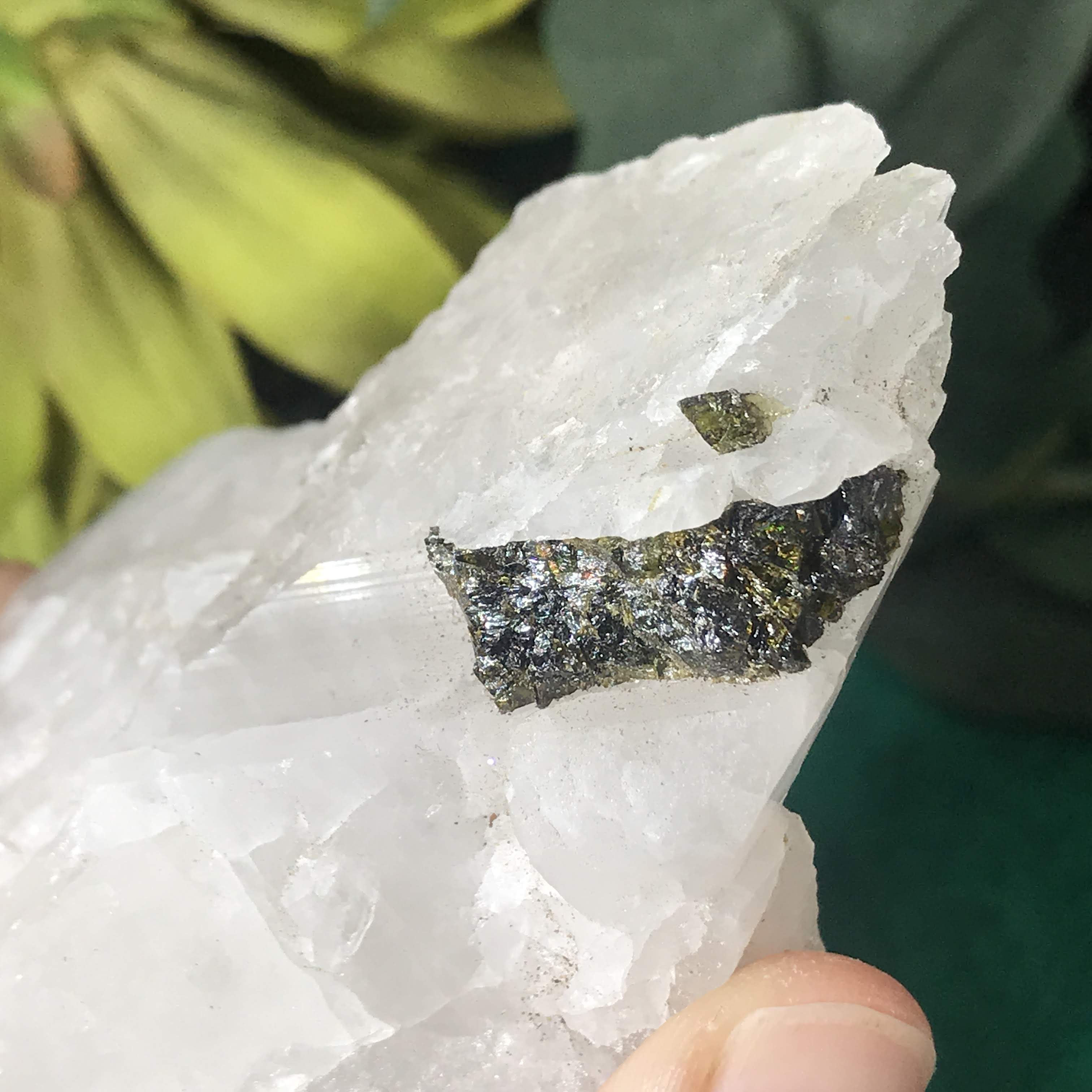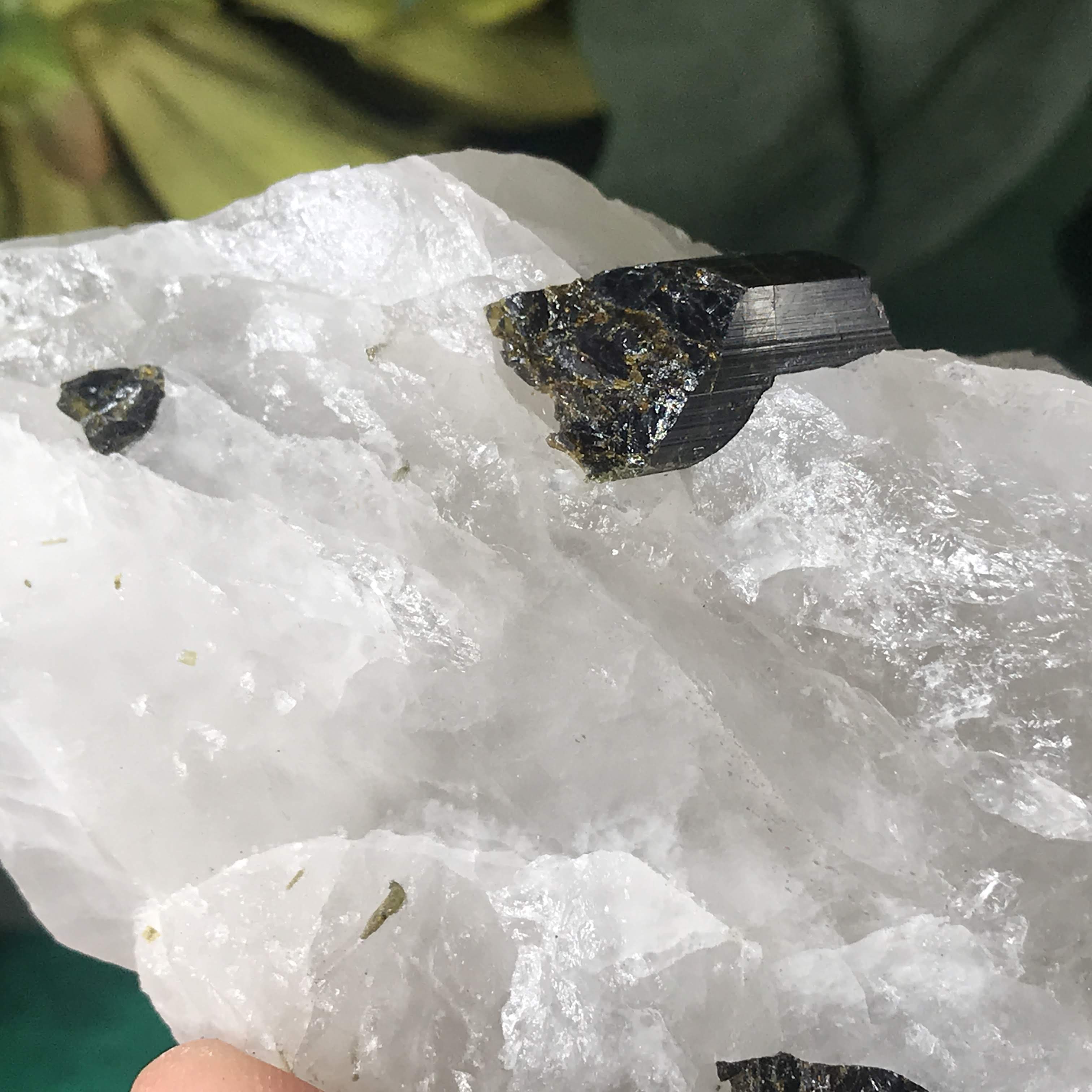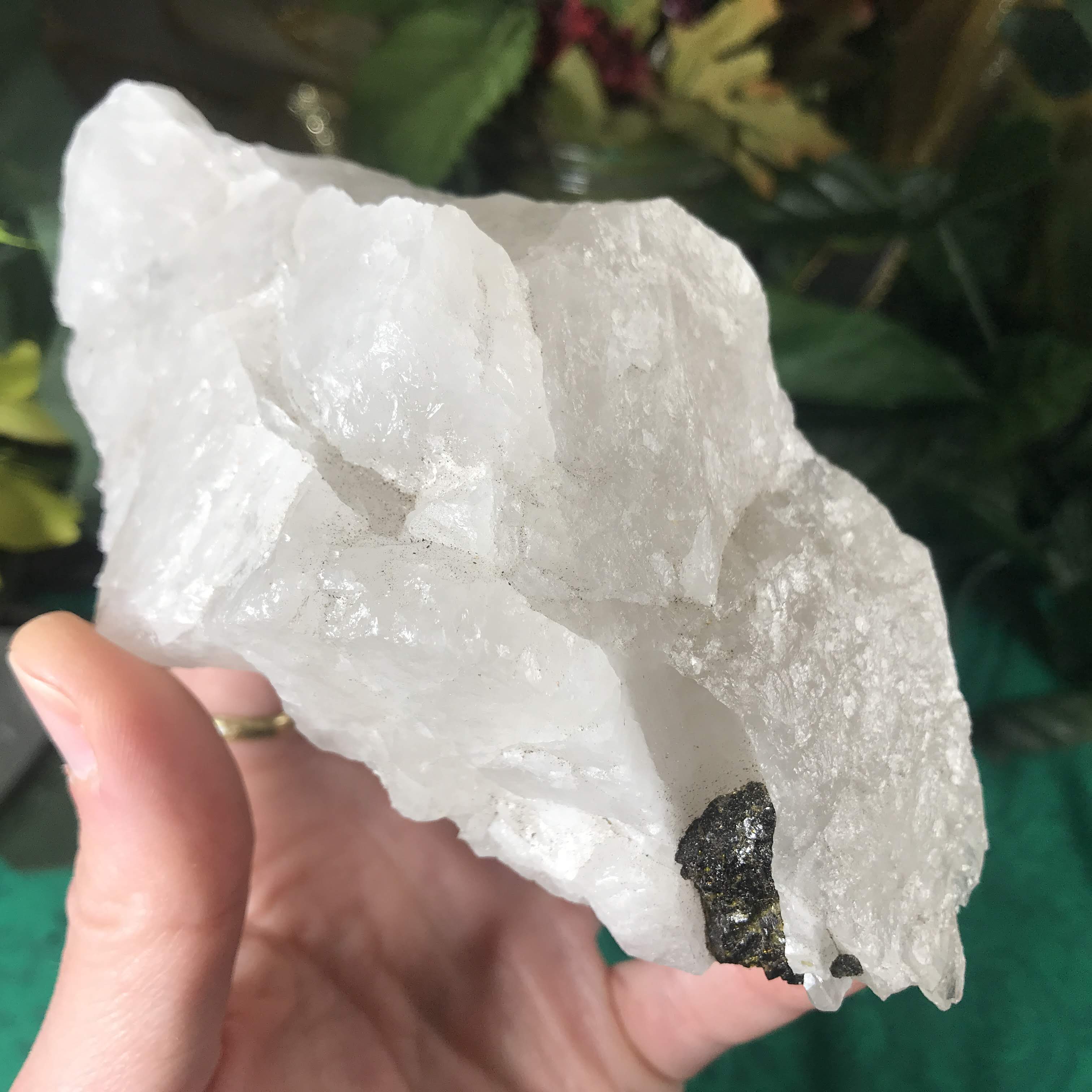 Green Tourmalinated Quartz- Combines the qualities of tourmaline with the qualities of Quartz. The quartz (power, energy director transmuter and amplifier, and all around healing crystal!) will amplify the strong properties of the tourmaline.