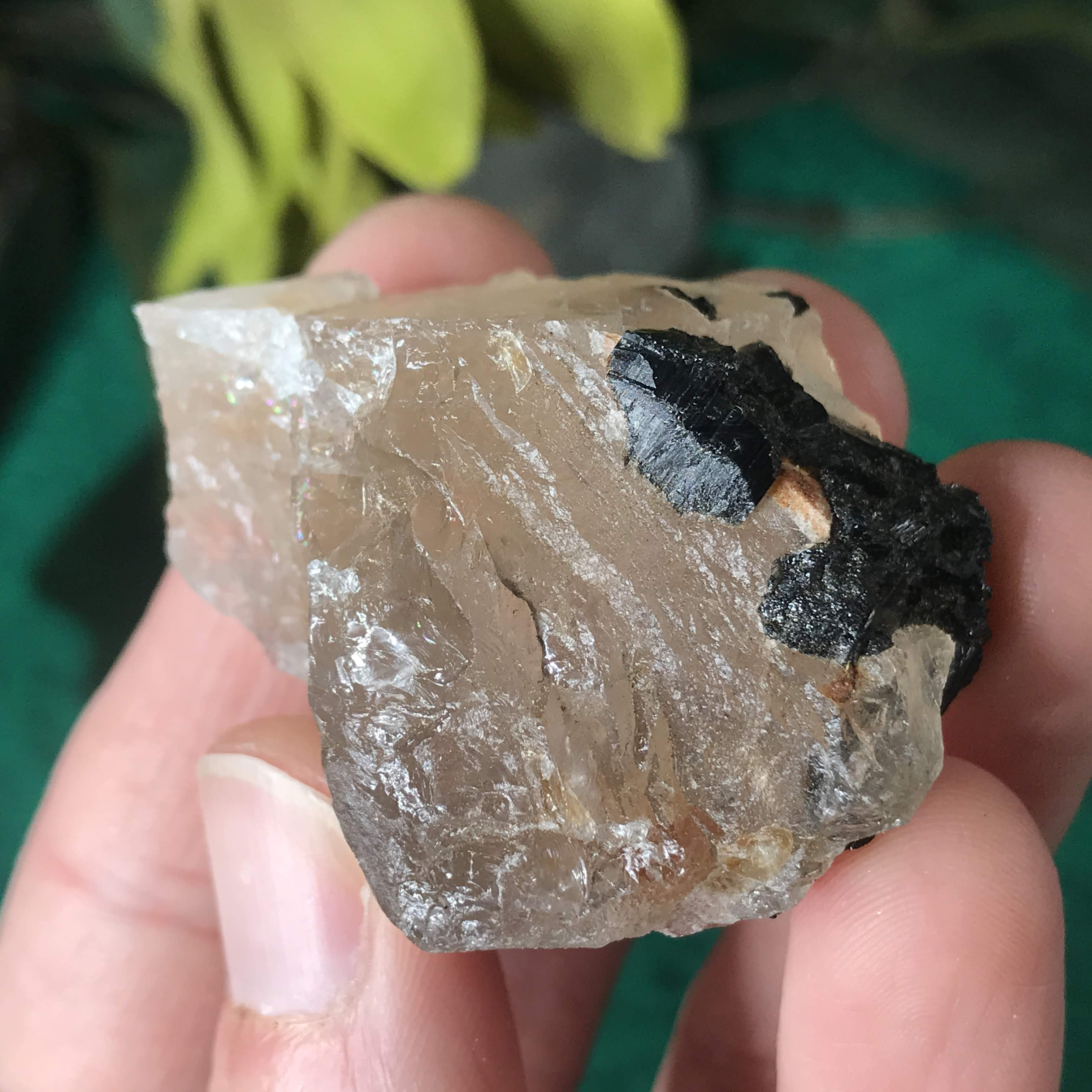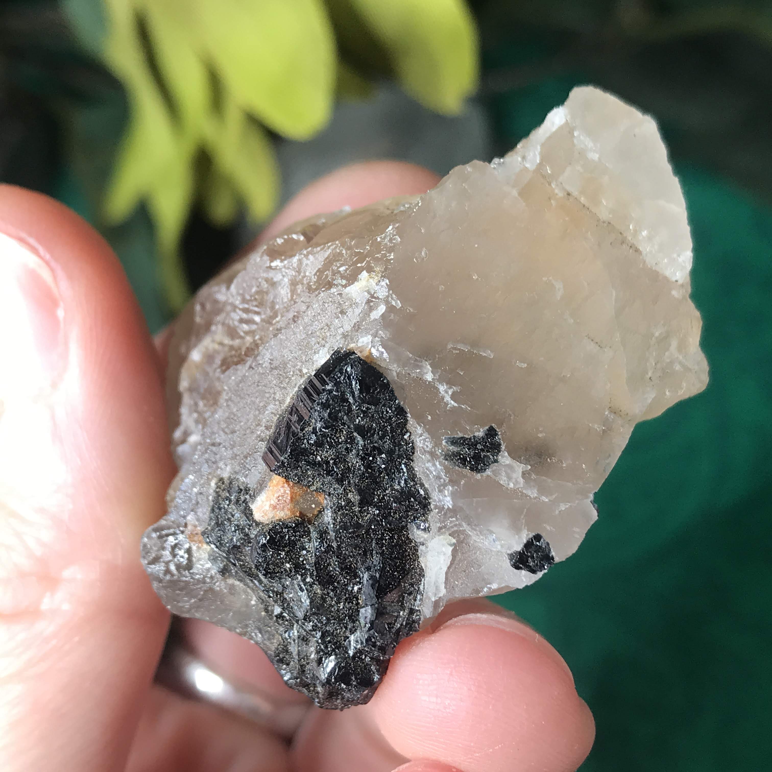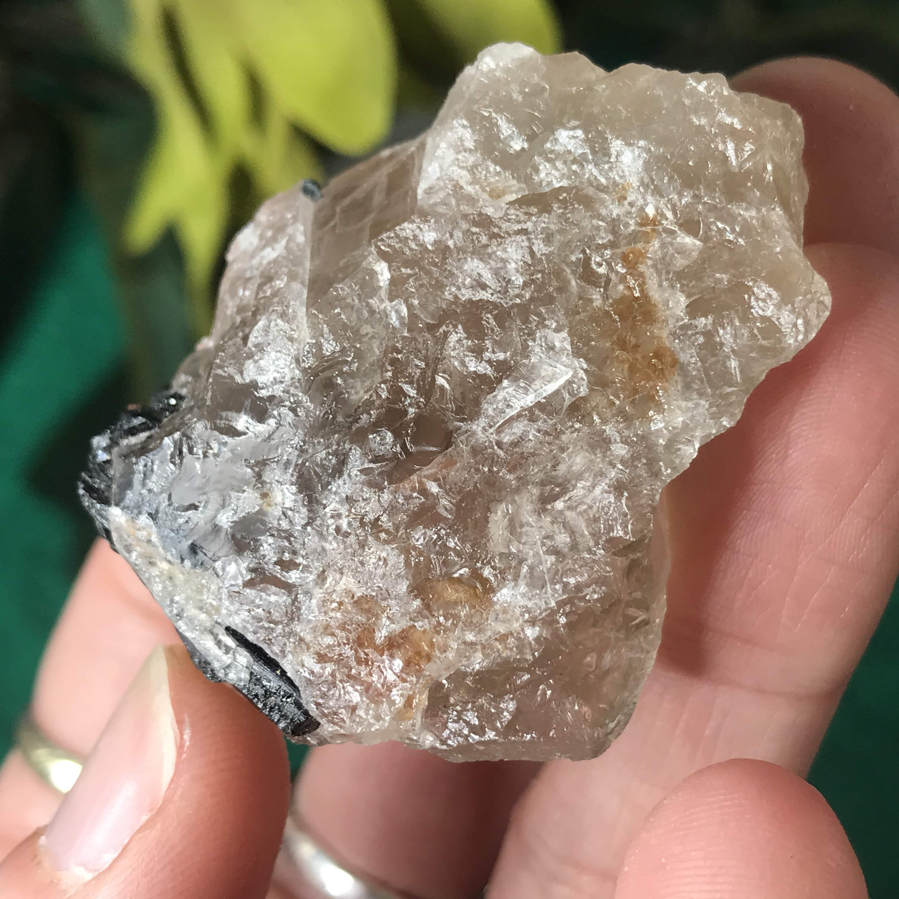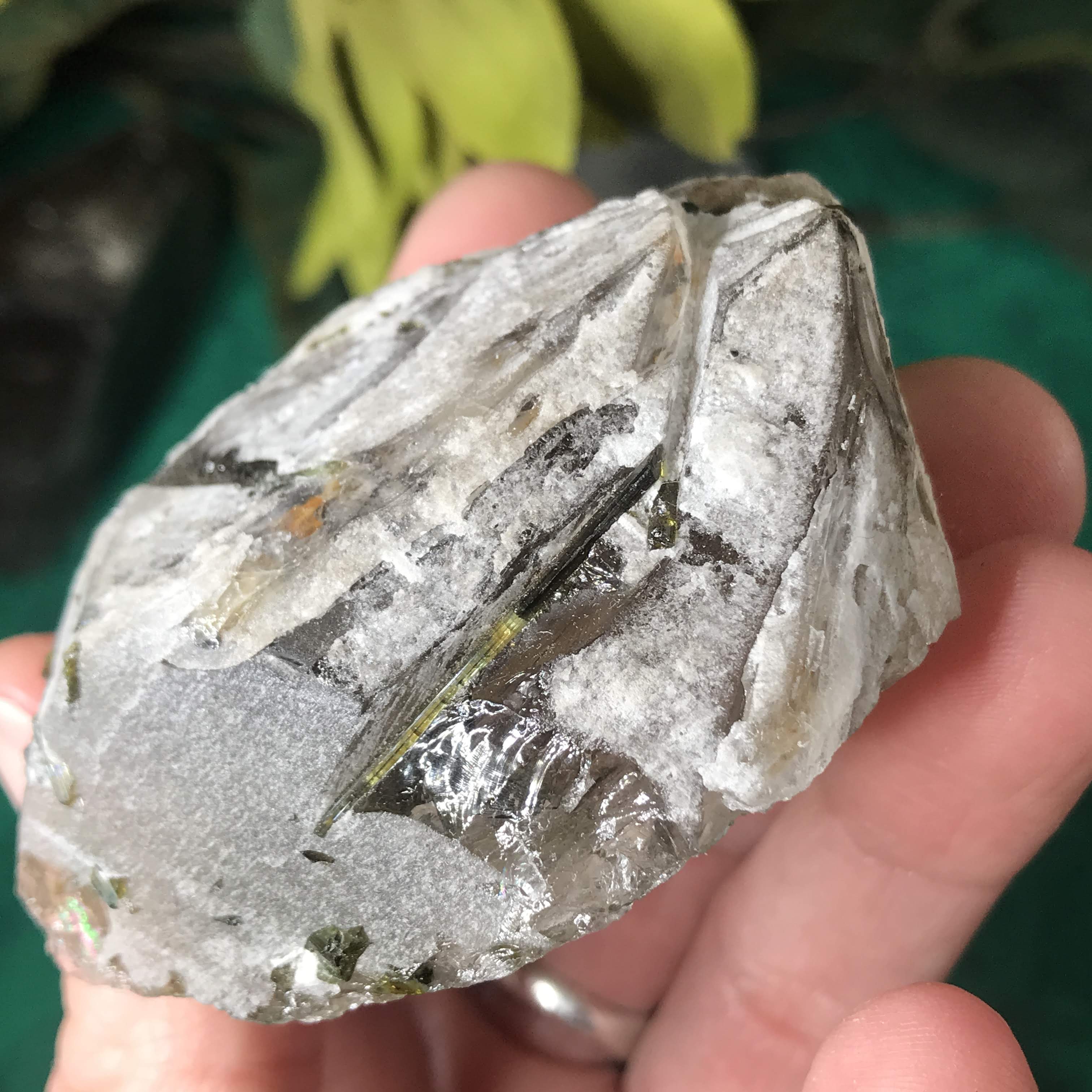 Green Tourmalinated Quartz- Combines the qualities of tourmaline with the qualities of quartz. The quartz (power and wonderful healing crystal!) will amplify the strong properties of the tourmaline. With it being smokey quartz it will also help with grounding, shielding, detoxing negative & dense energies, and helping with an uplift.