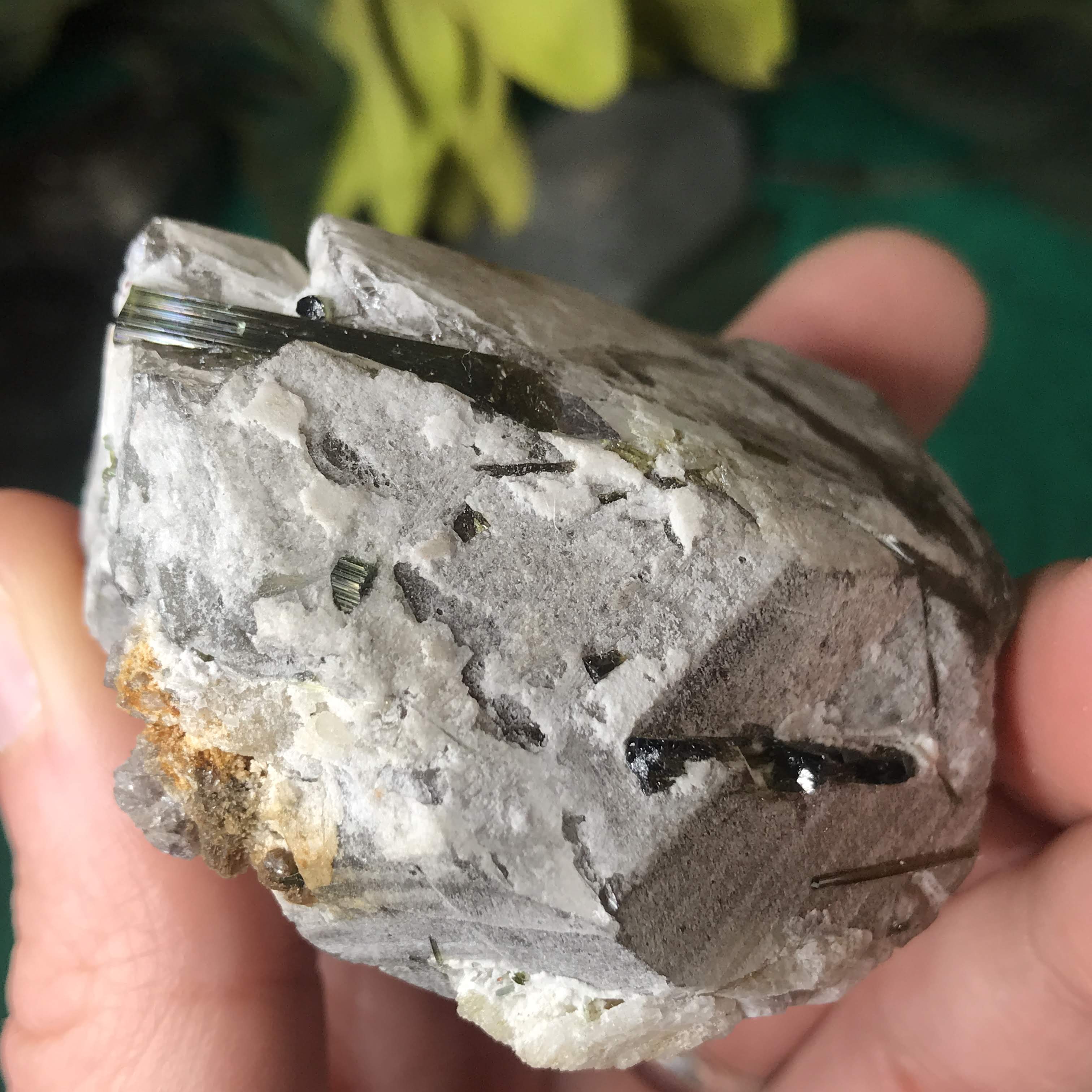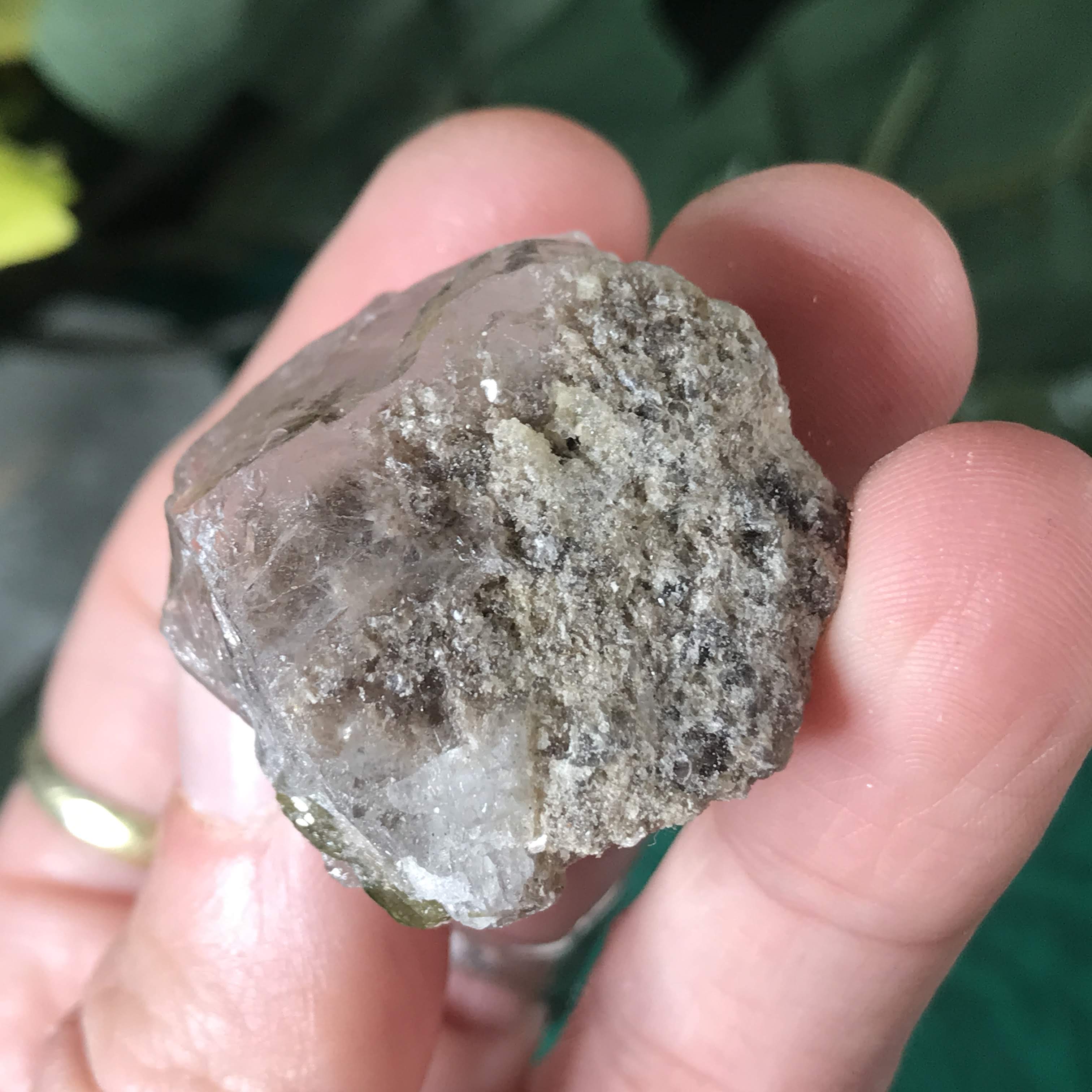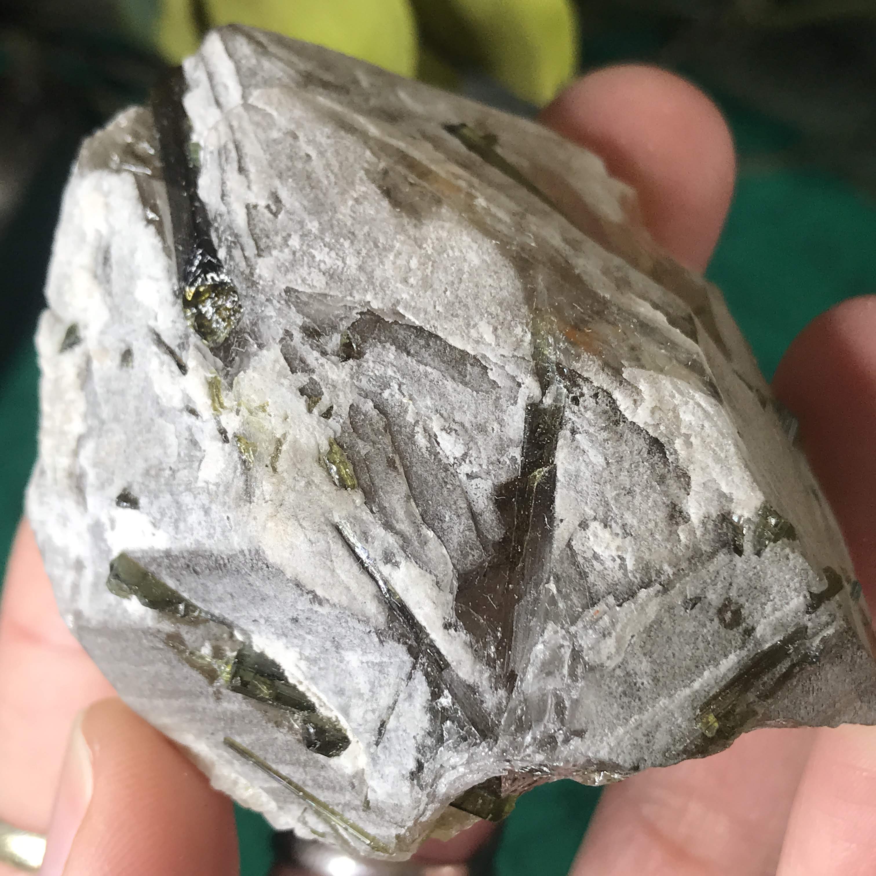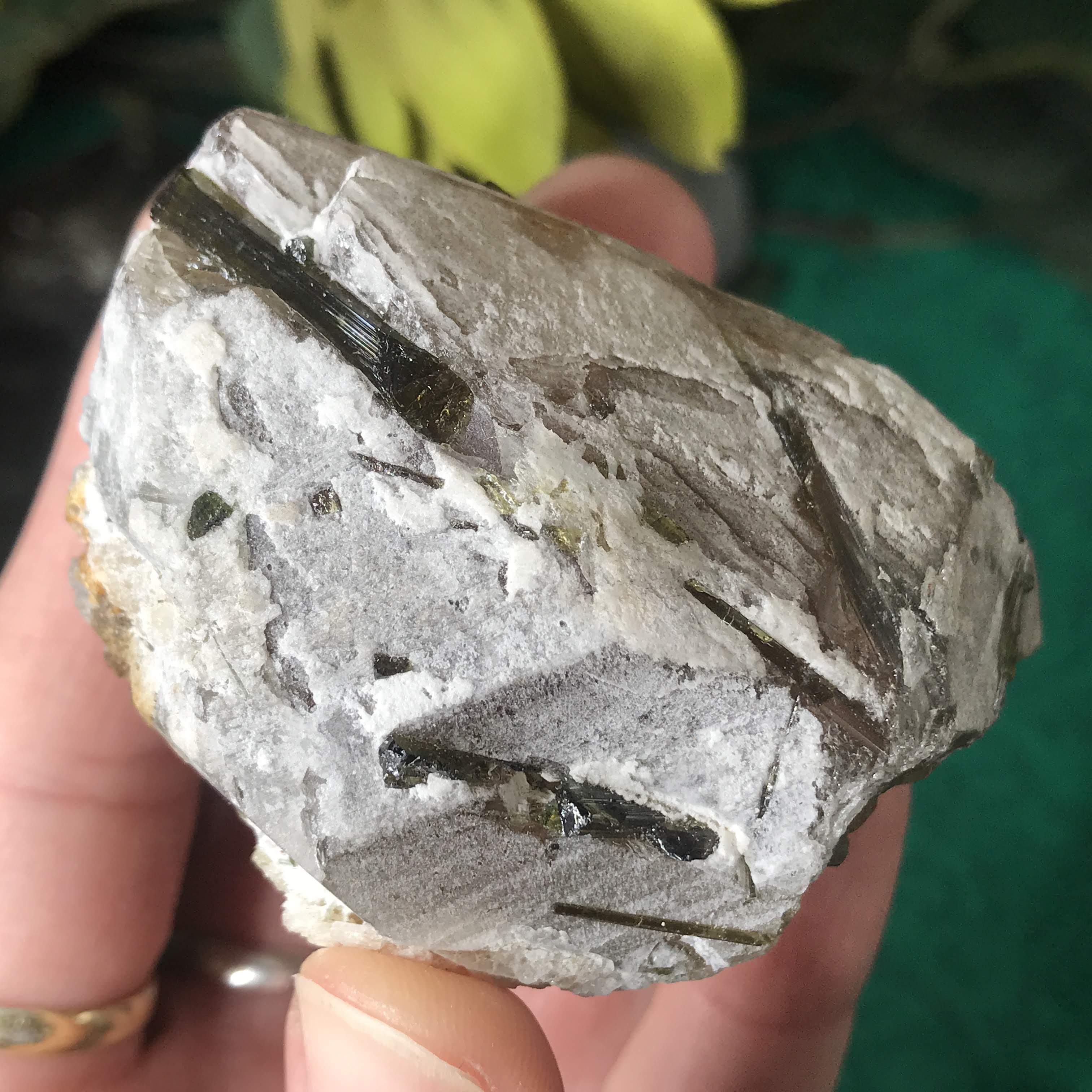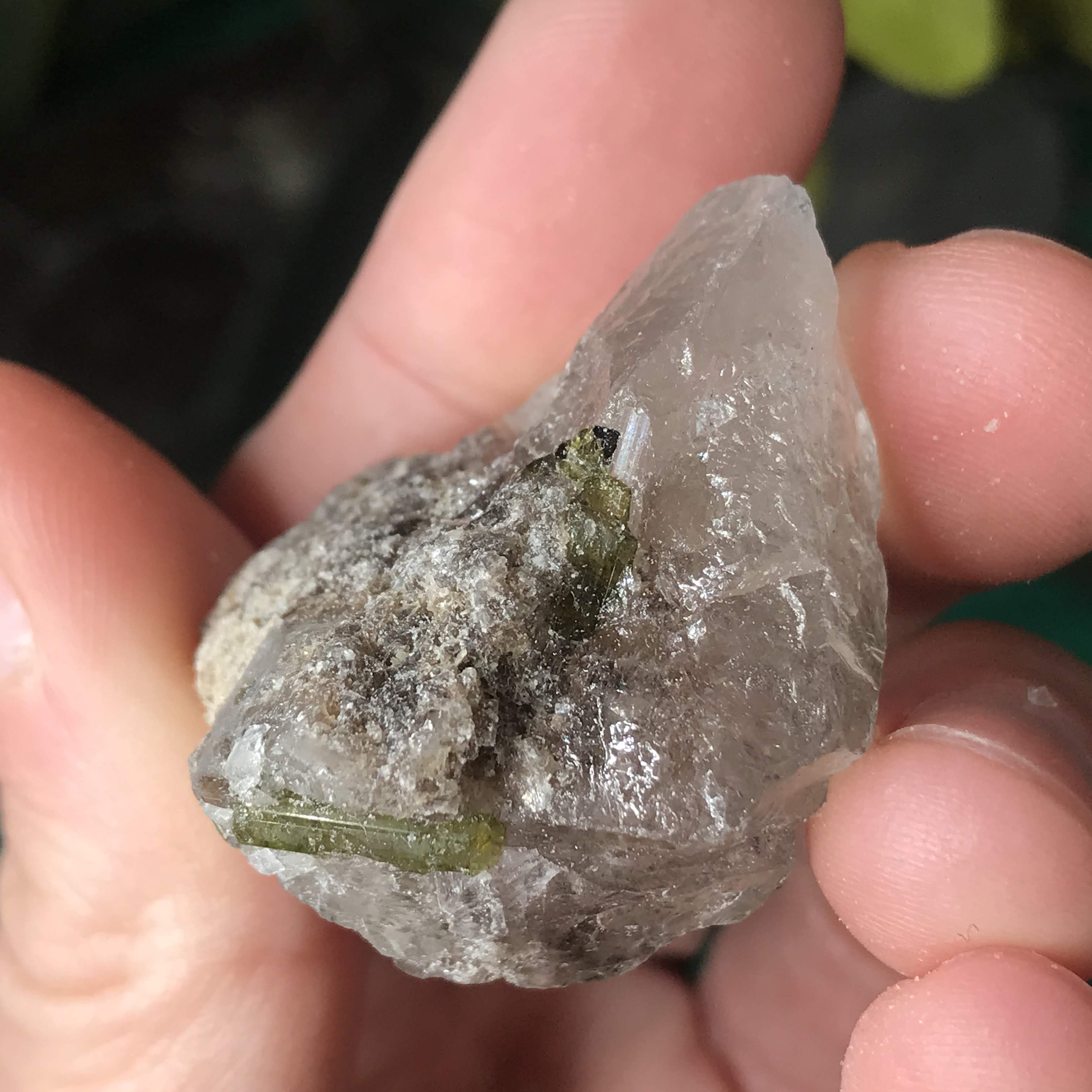 Green Tourmalinated Quartz- Combines the qualities of tourmaline with the qualities of quartz. The quartz (power and wonderful healing crystal!) will amplify the strong properties of the tourmaline. With it being smokey quartz it will also help with grounding, shielding, detoxing negative & dense energies, and helping with an uplift.