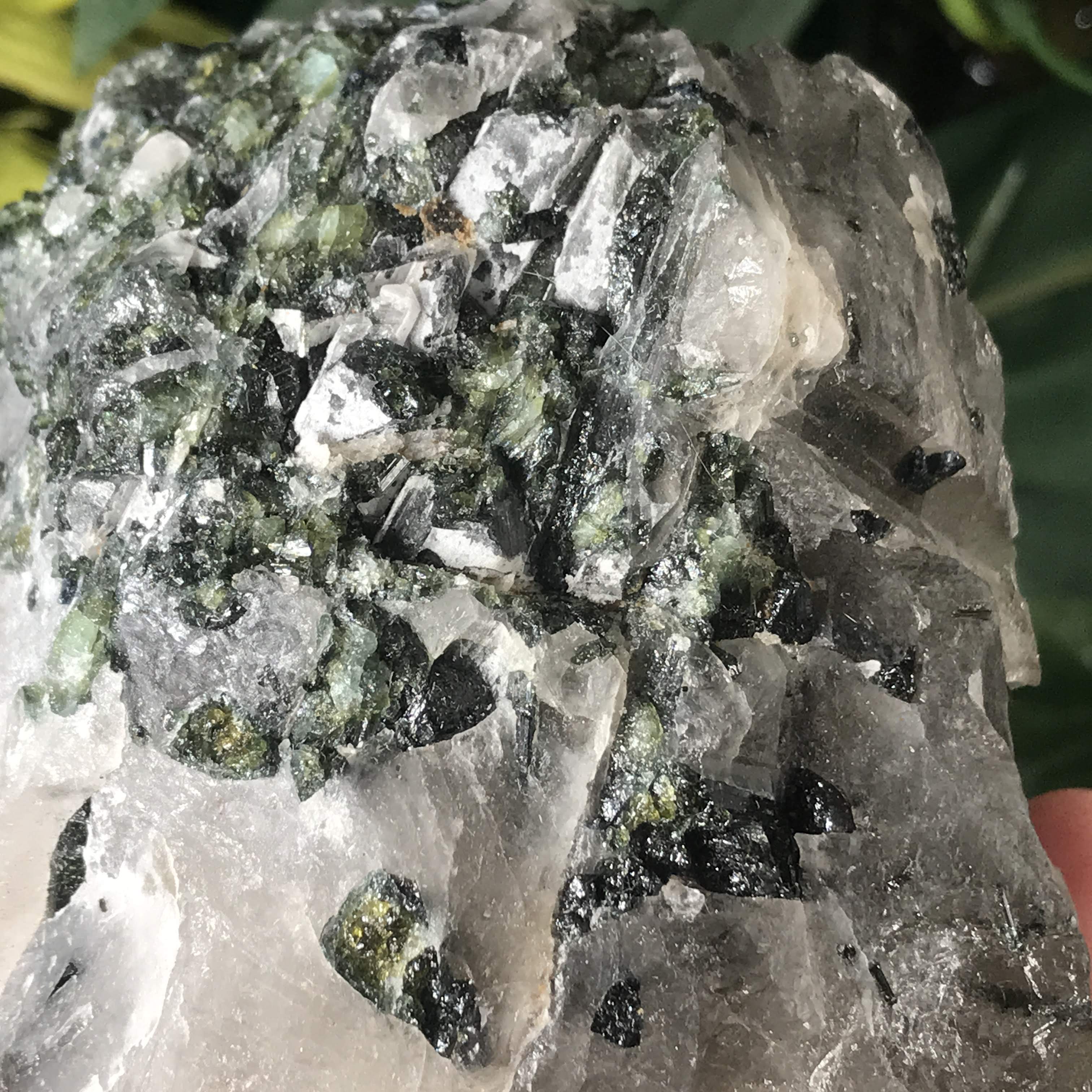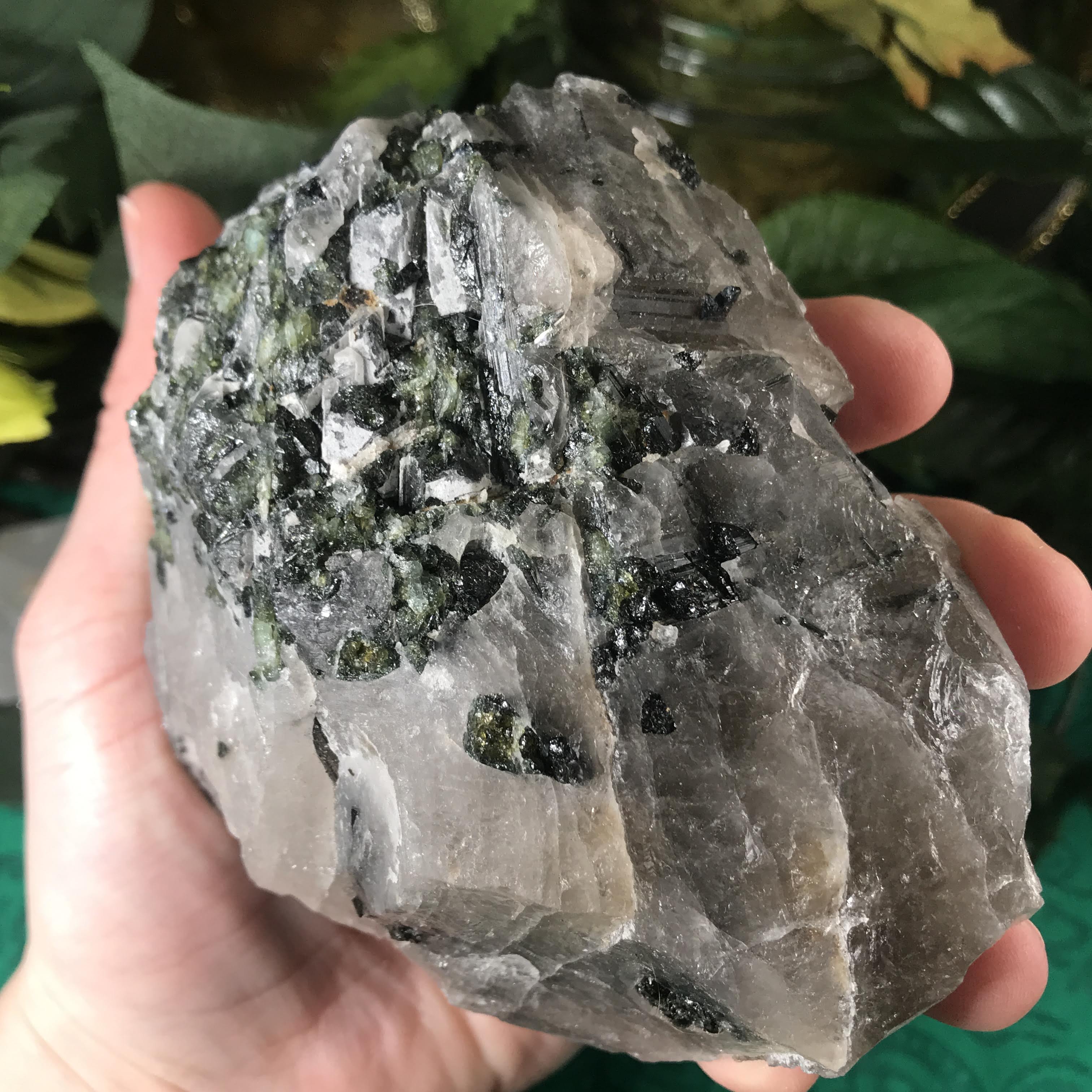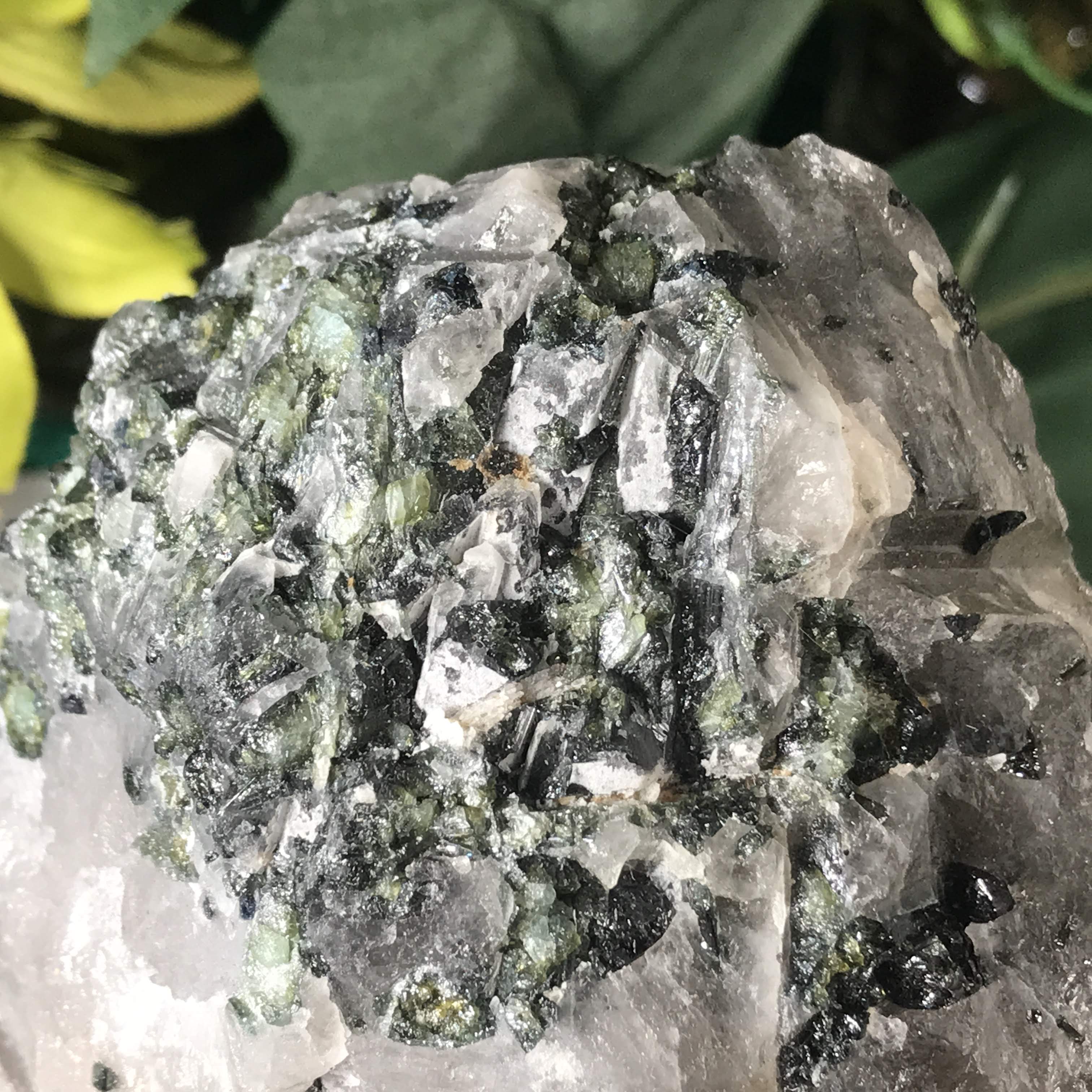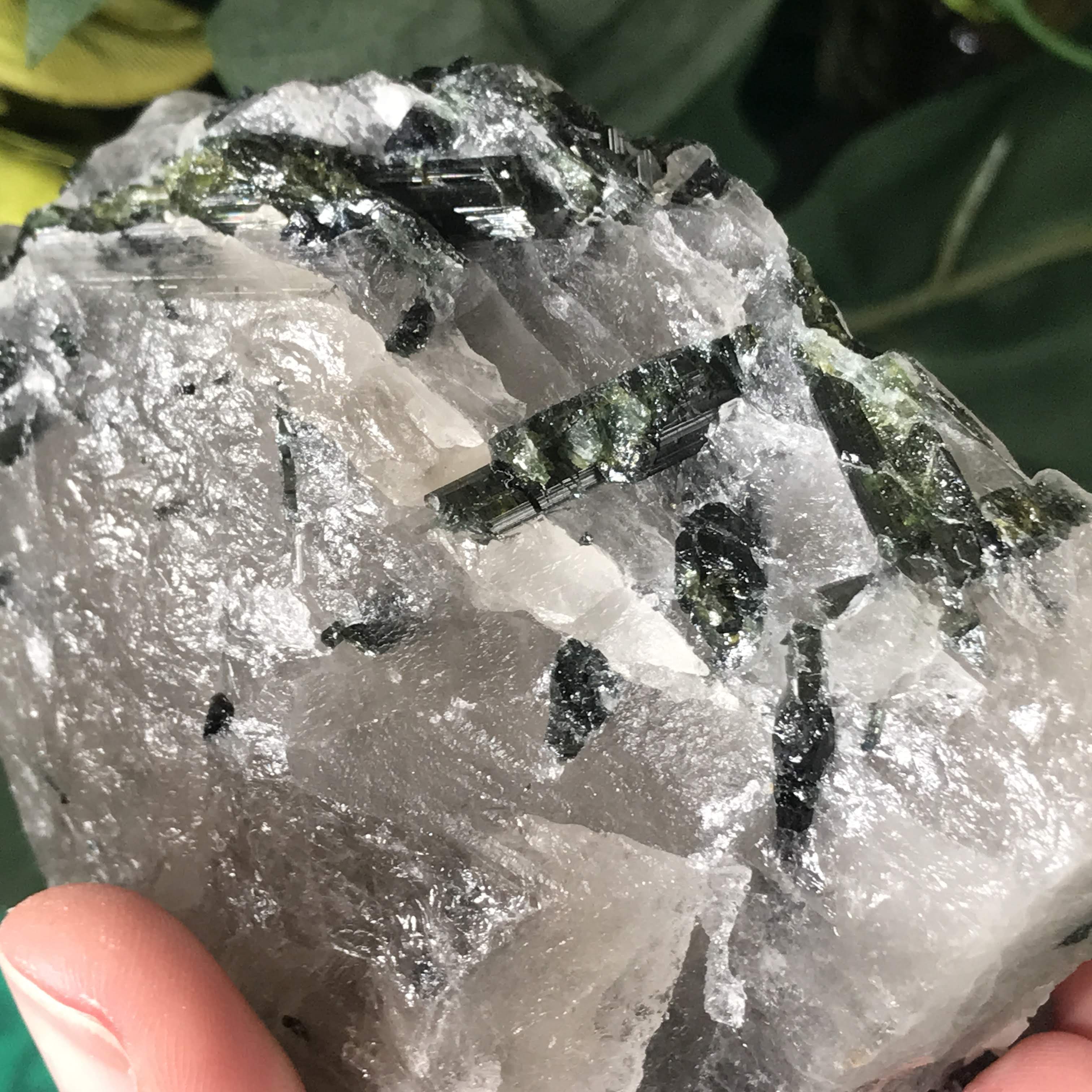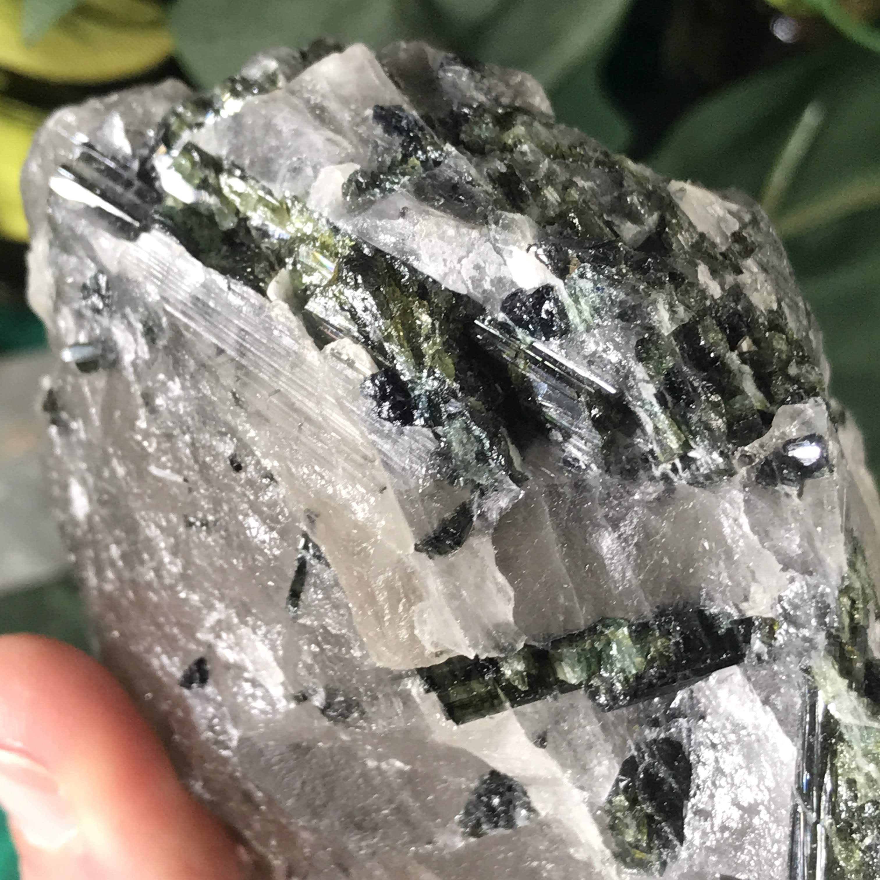Green Tourmalinated Quartz- Combines the qualities of tourmaline with the qualities of quartz. The quartz (power and wonderful healing crystal!) will amplify the strong properties of the tourmaline. With it being smokey quartz it will also help with grounding, shielding, detoxing negative & dense energies, and helping with an uplift.