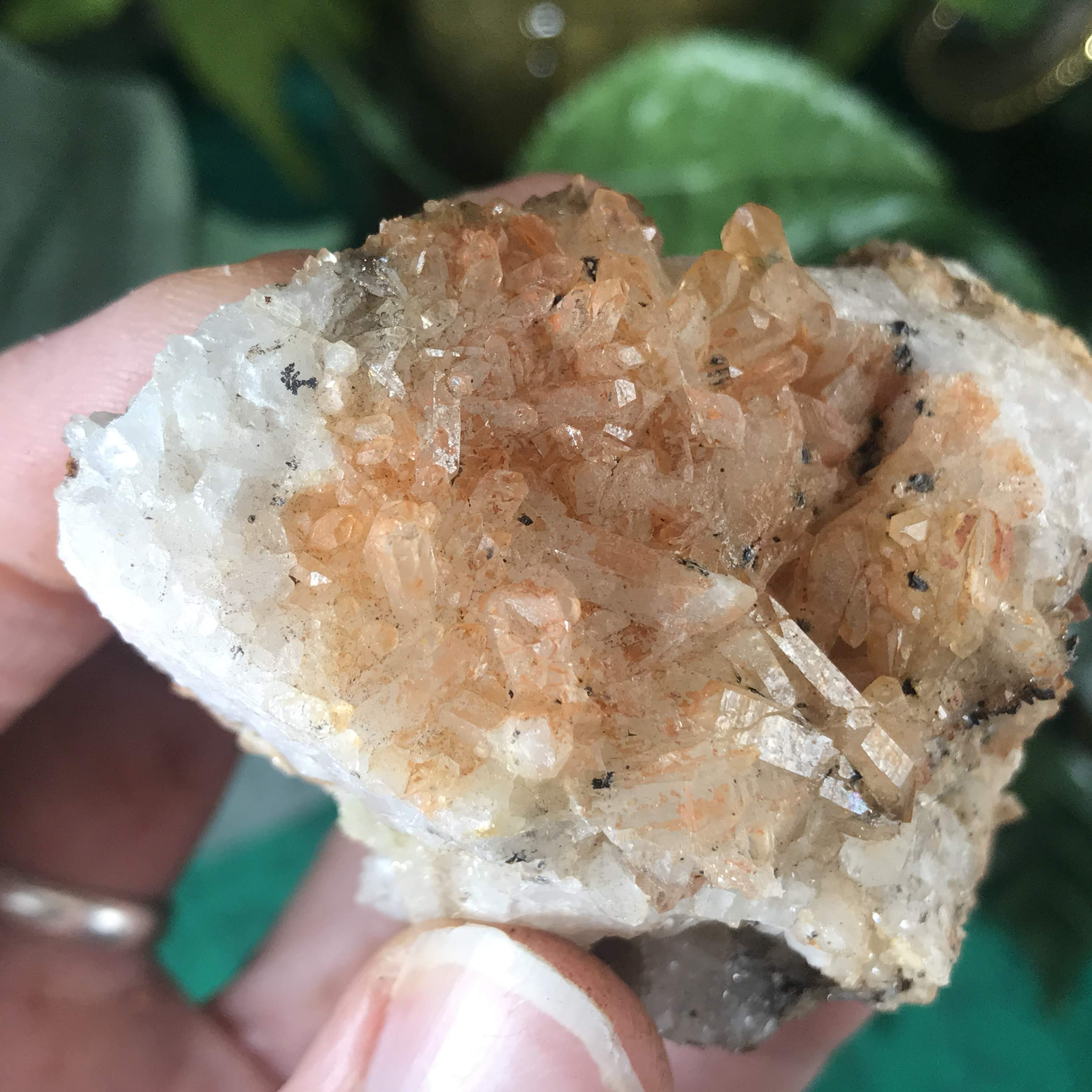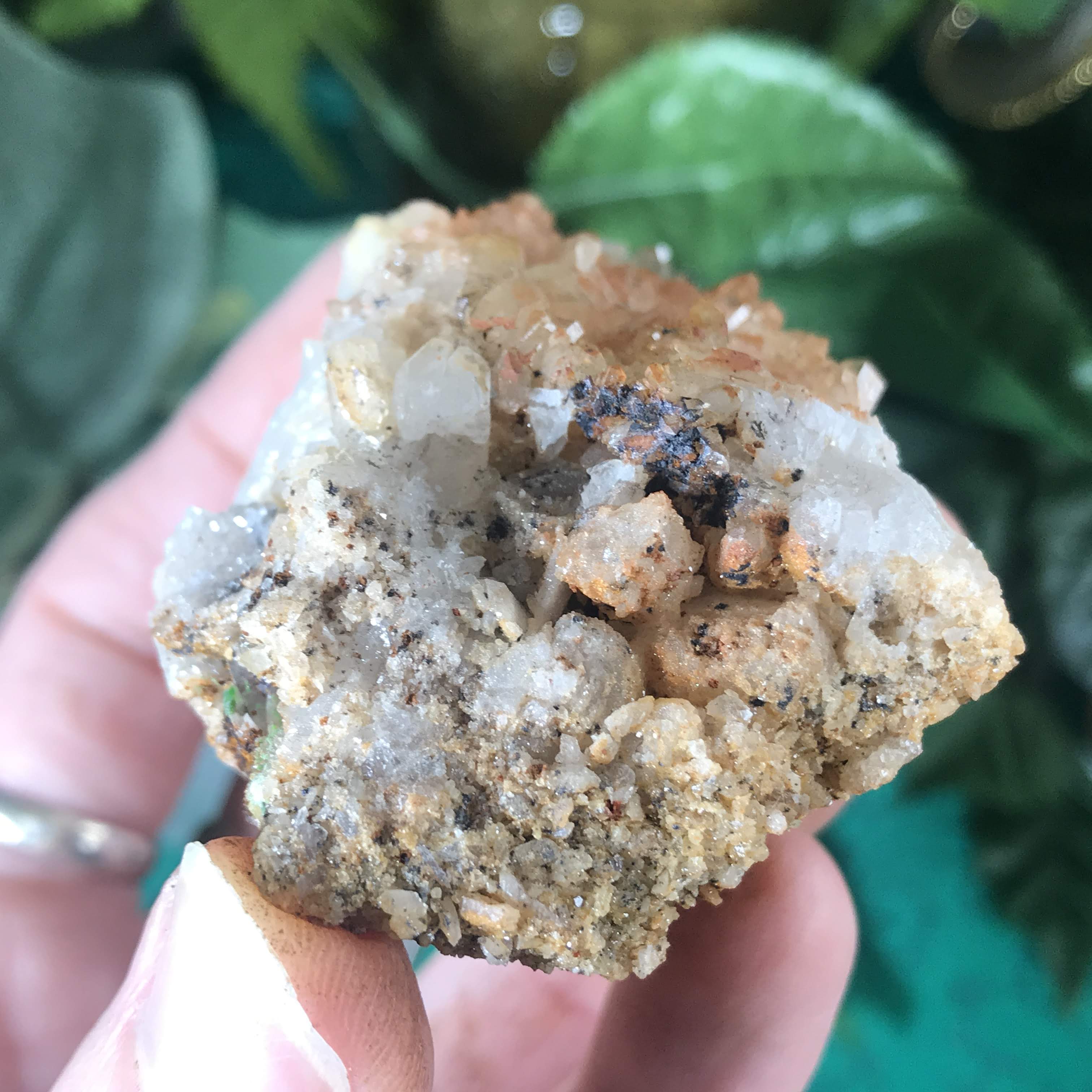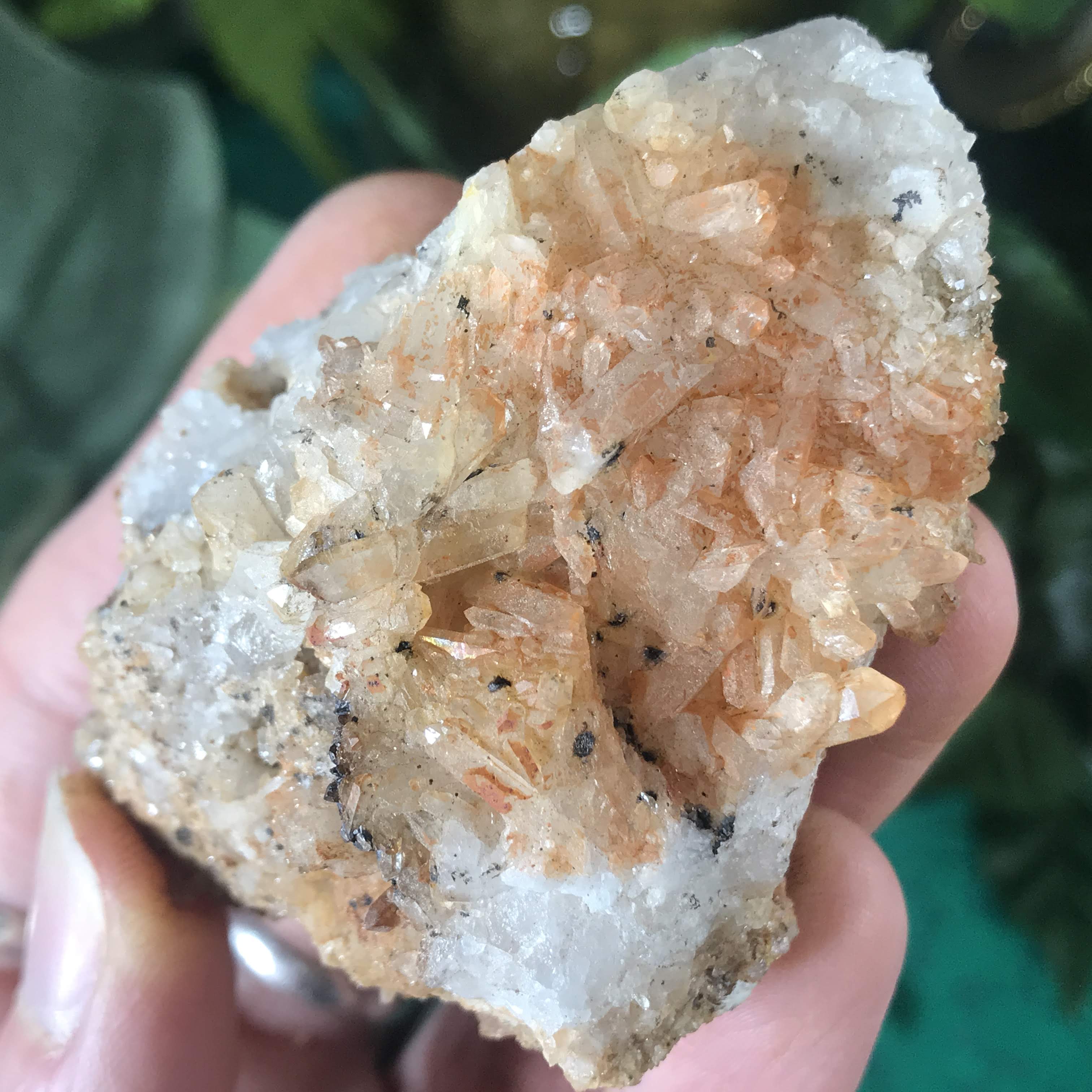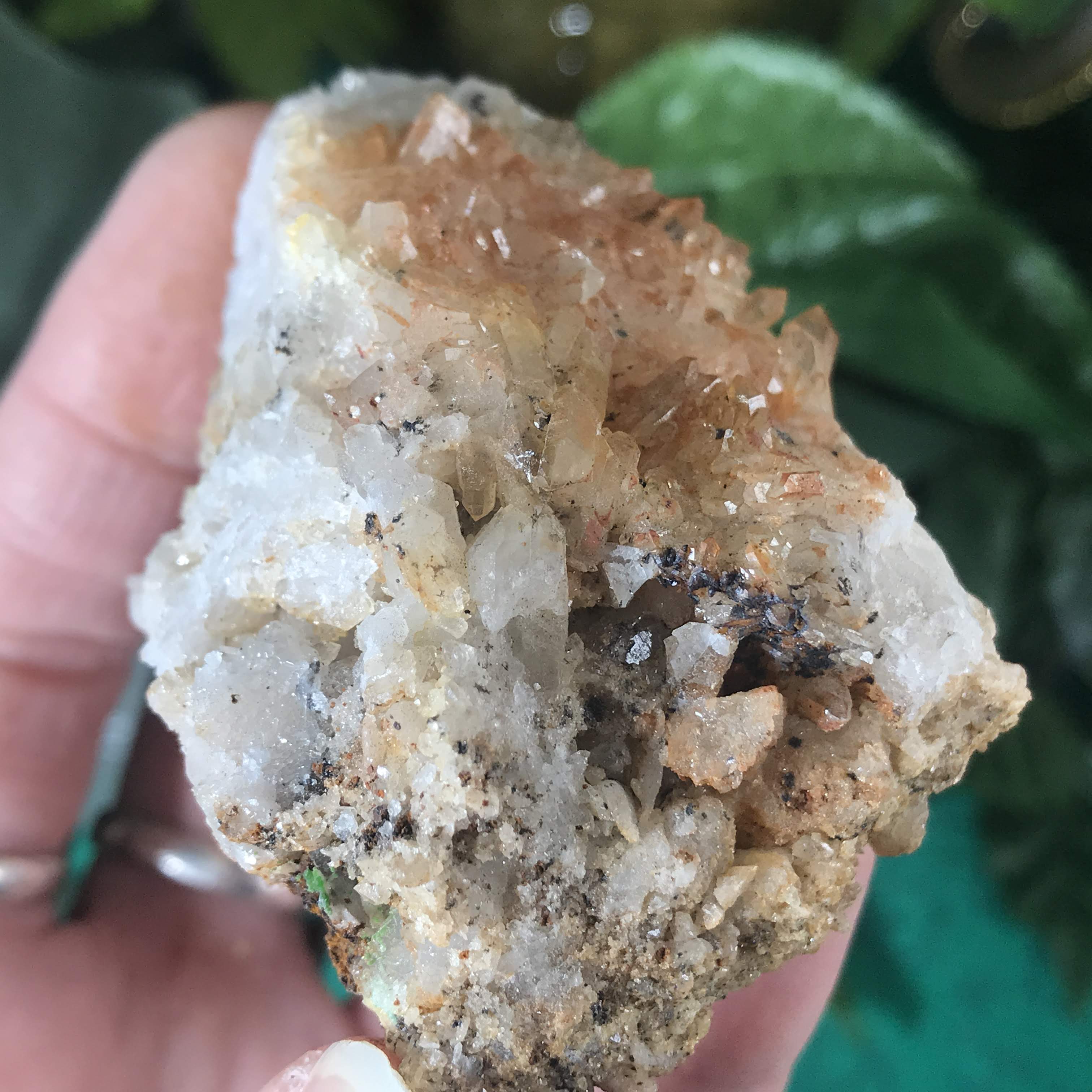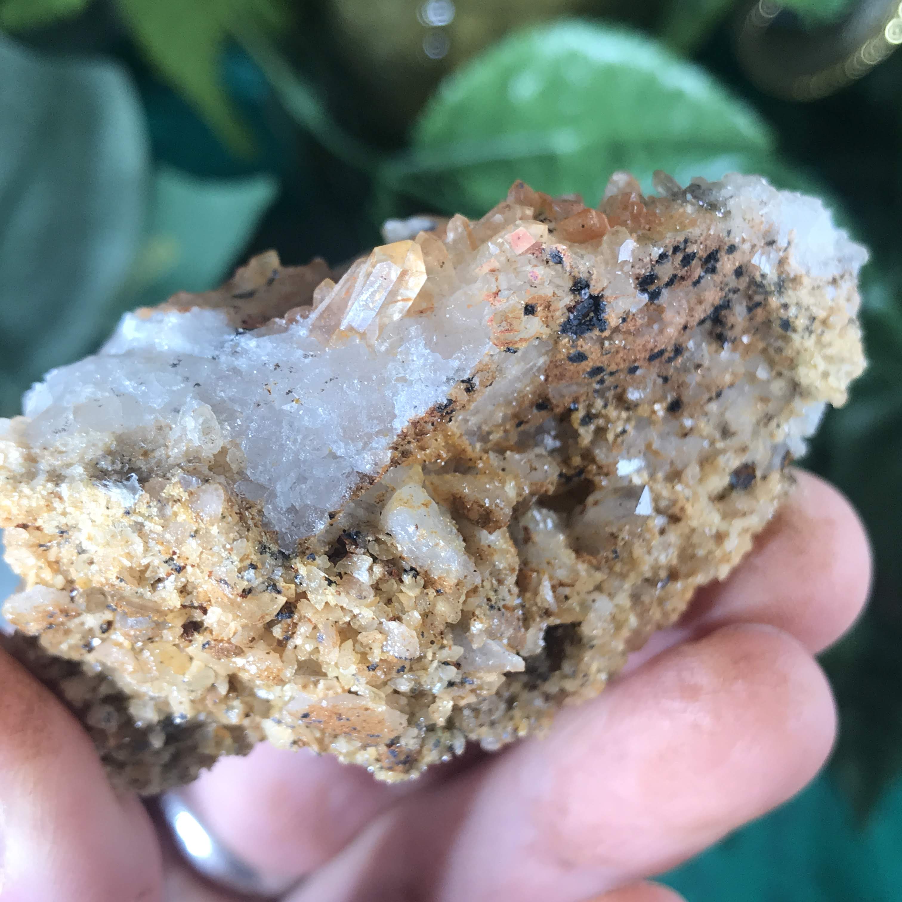 Hematite / Hematoid Quartz is quartz that is included with iron (hematite) and/or limonite which can give a red, silver, black, or gold color. The red varieties are usually referred to as fire quartz, or harlequin quartz (usually when the red appears as dots or strands within the stone). The gold colored variety is what most know as golden healer quartz.  When other minerals are present with quartz, their energies are amplified as quartz amplifies energy. So, not only will you have the standard quartz properties for the crystal, but the amplified energies of hematite. It’s a great crystal for stability, grounding, cleansing, protection, which in turn brings in peace, harmony, & clarity. With the power crystal of quartz working with it, it surely is a wonderful crystal to have around or in your healing tool box. Powering up but staying grounded is a super combination. Hematoid quartz is helpful with grounding emotions too when they are overstimulated, like anxiety. I feel like it would gently but firmly say, “Let it go, take a deep breath, it’s all good. You’re safe, I got you. There’s goodness here, just allow yourself to feel it. Awesome! Now, let’s do this!”. It’s also a good encourager of when to take a rest vs. knowing when to get to it. It’s a root chakra crystal that will help ground your energy deep into mother earth to help you release energy that no longer serves you and keep you more clear when working with higher vibrational frequencies. It’s great for balancing the mind, body and spirit for a harmonious flow. An aid to help you focus when you are over stimulated or distracted, or when you need a lot of that brain energy for highly intelligent work and pursuits.