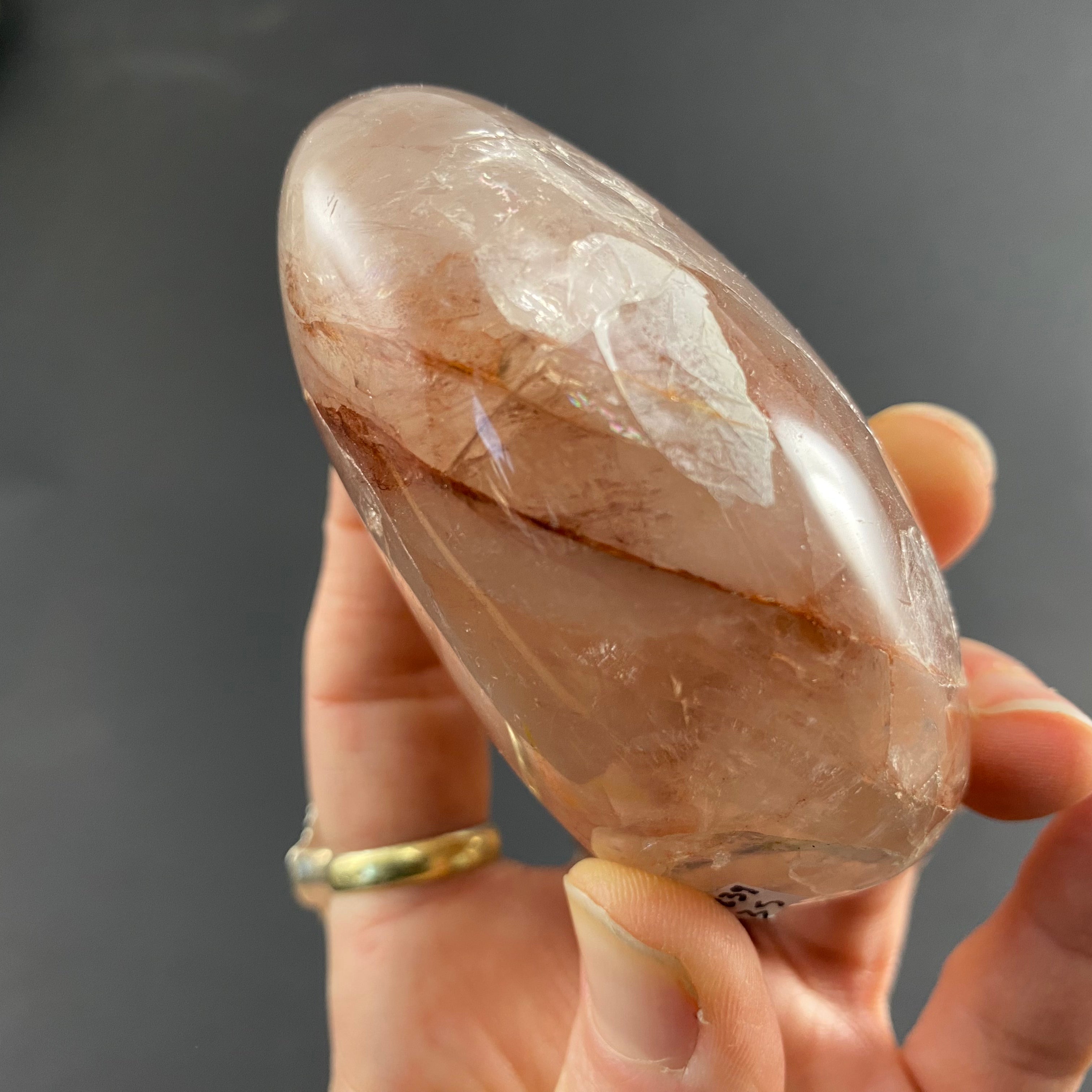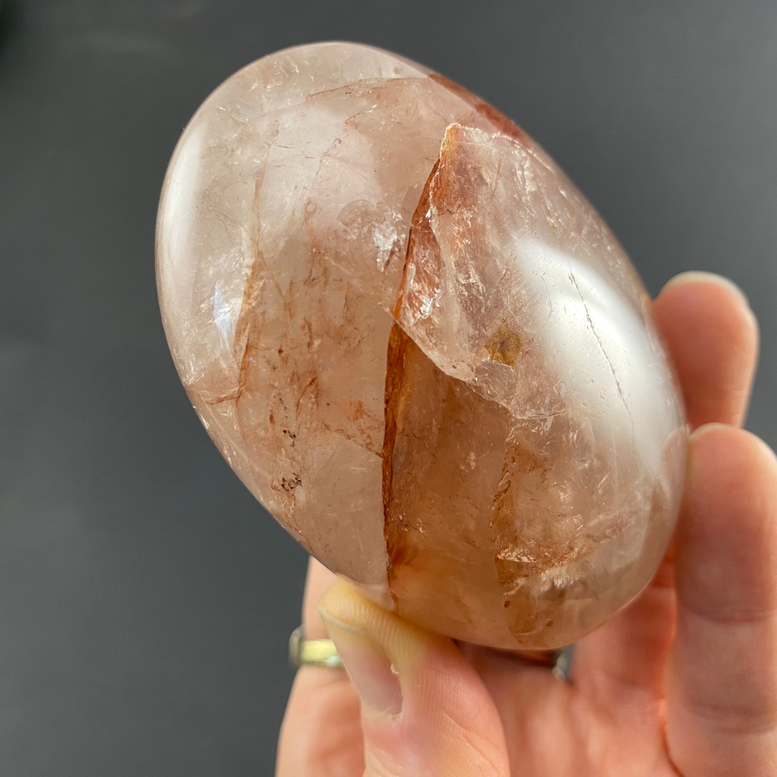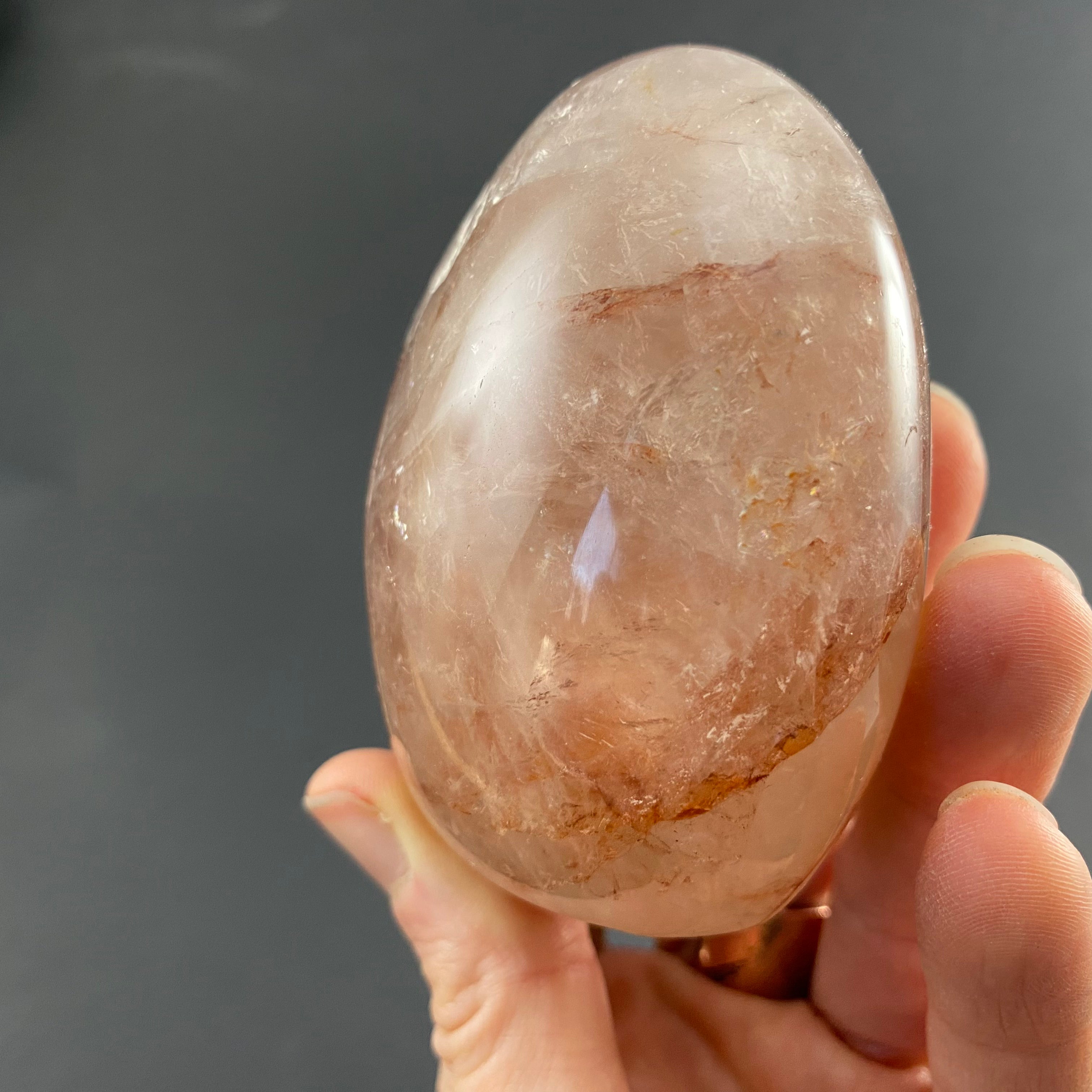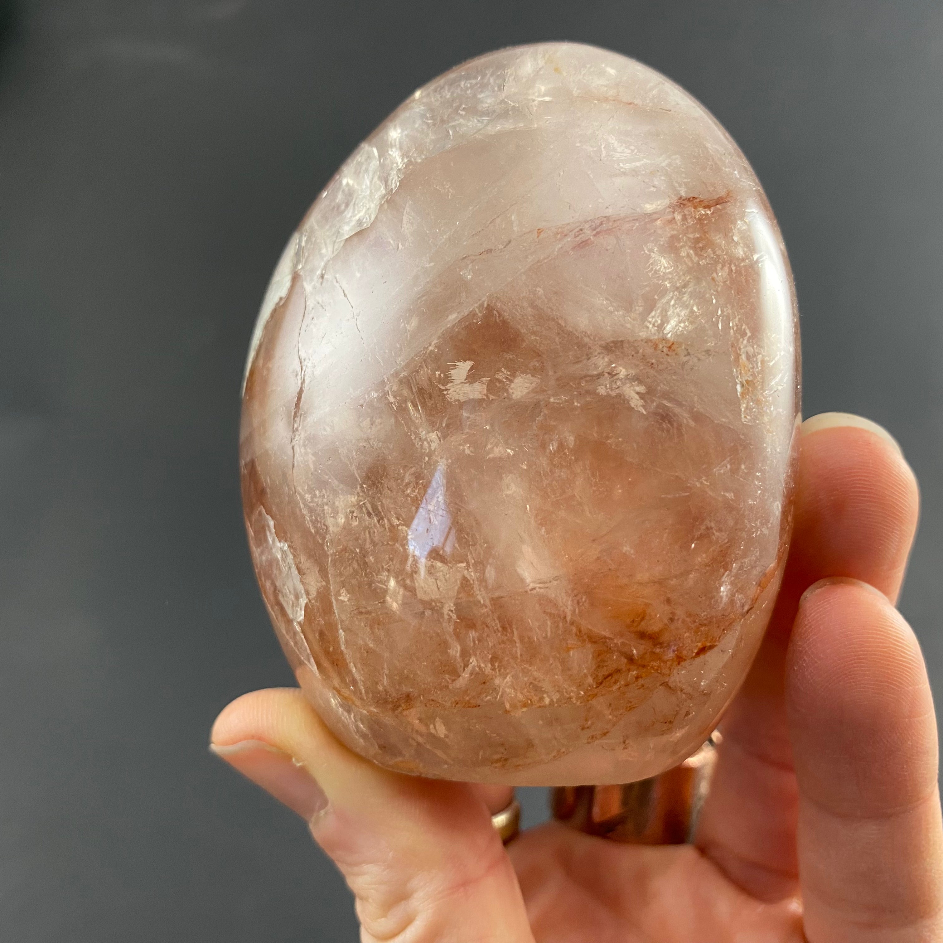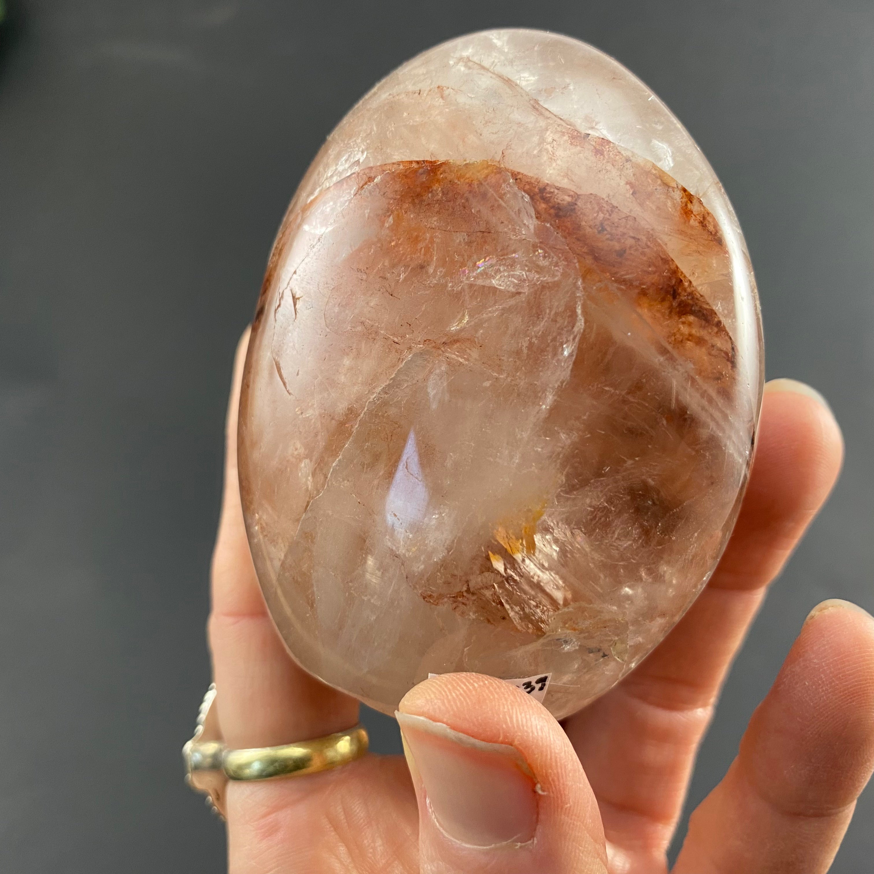 Hematite / Hematoid Quartz is quartz that is included with iron (hematite) and/or limonite which can give a red, silver, black, or gold color. The red varieties are usually referred to as fire quartz, or harlequin quartz (usually when the red appears as dots or strands within the stone). The gold colored variety is what most know as golden healer quartz.  When other minerals are present with quartz, their energies are amplified as quartz amplifies energy. So, not only will you have the standard quartz properties for the crystal, but the amplified energies of hematite. It’s a great crystal for stability, grounding, cleansing, protection, which in turn brings in peace, harmony, & clarity. With the power crystal of quartz working with it, it surely is a wonderful crystal to have around or in your healing tool box. Powering up but staying grounded is a super combination. Hematoid quartz is helpful with grounding emotions too when they are overstimulated, like anxiety. I feel like it would gently but firmly say, “Let it go, take a deep breath, it’s all good. You’re safe, I got you. There’s goodness here, just allow yourself to feel it. Awesome! Now, let’s do this!”. It’s also a good encourager of when to take a rest vs. knowing when to get to it. It’s a root chakra crystal that will help ground your energy deep into mother earth to help you release energy that no longer serves you and keep you more clear when working with higher vibrational frequencies. It’s great for balancing the mind, body and spirit for a harmonious flow. An aid to help you focus when you are over stimulated or distracted, or when you need a lot of that brain energy for highly intelligent work and pursuits.