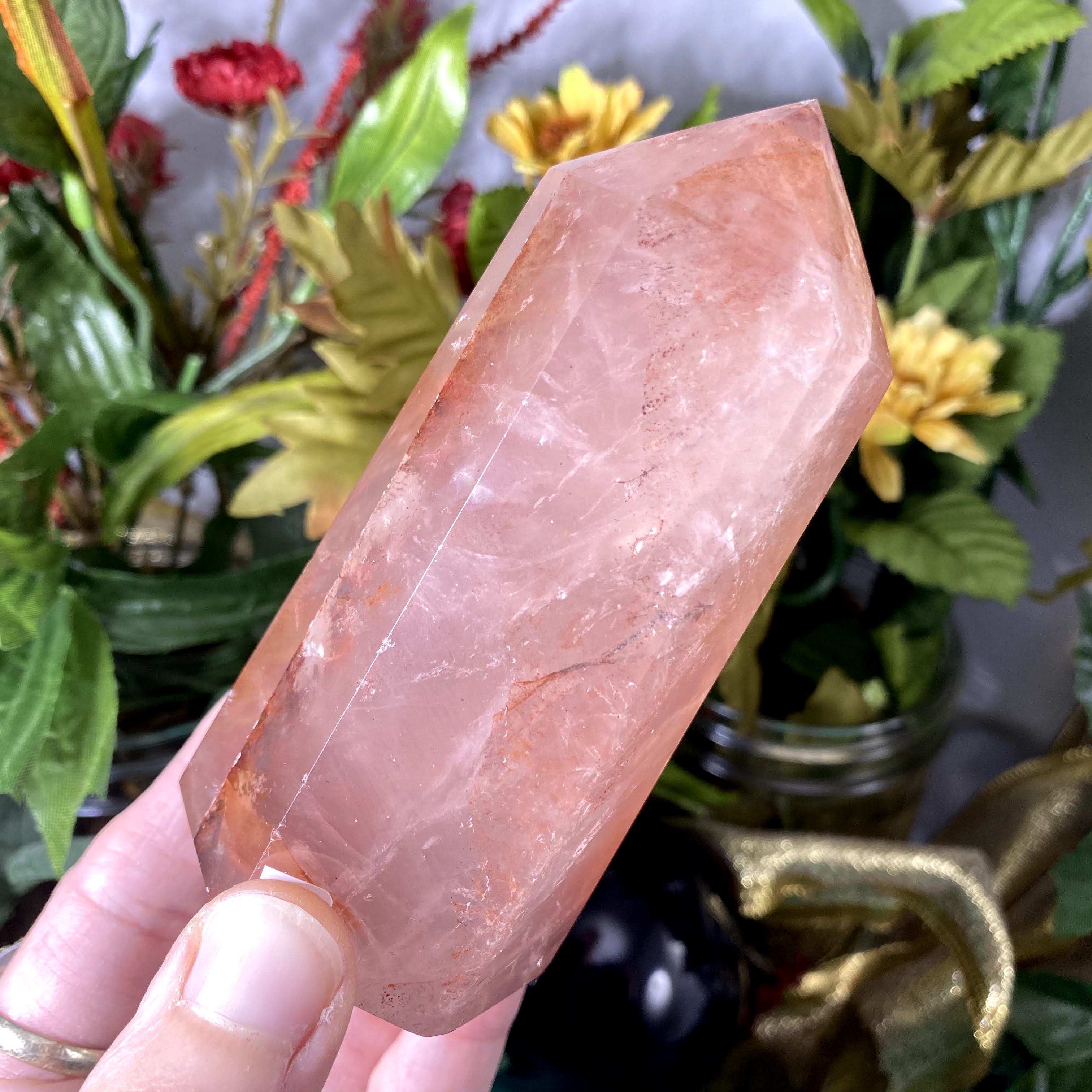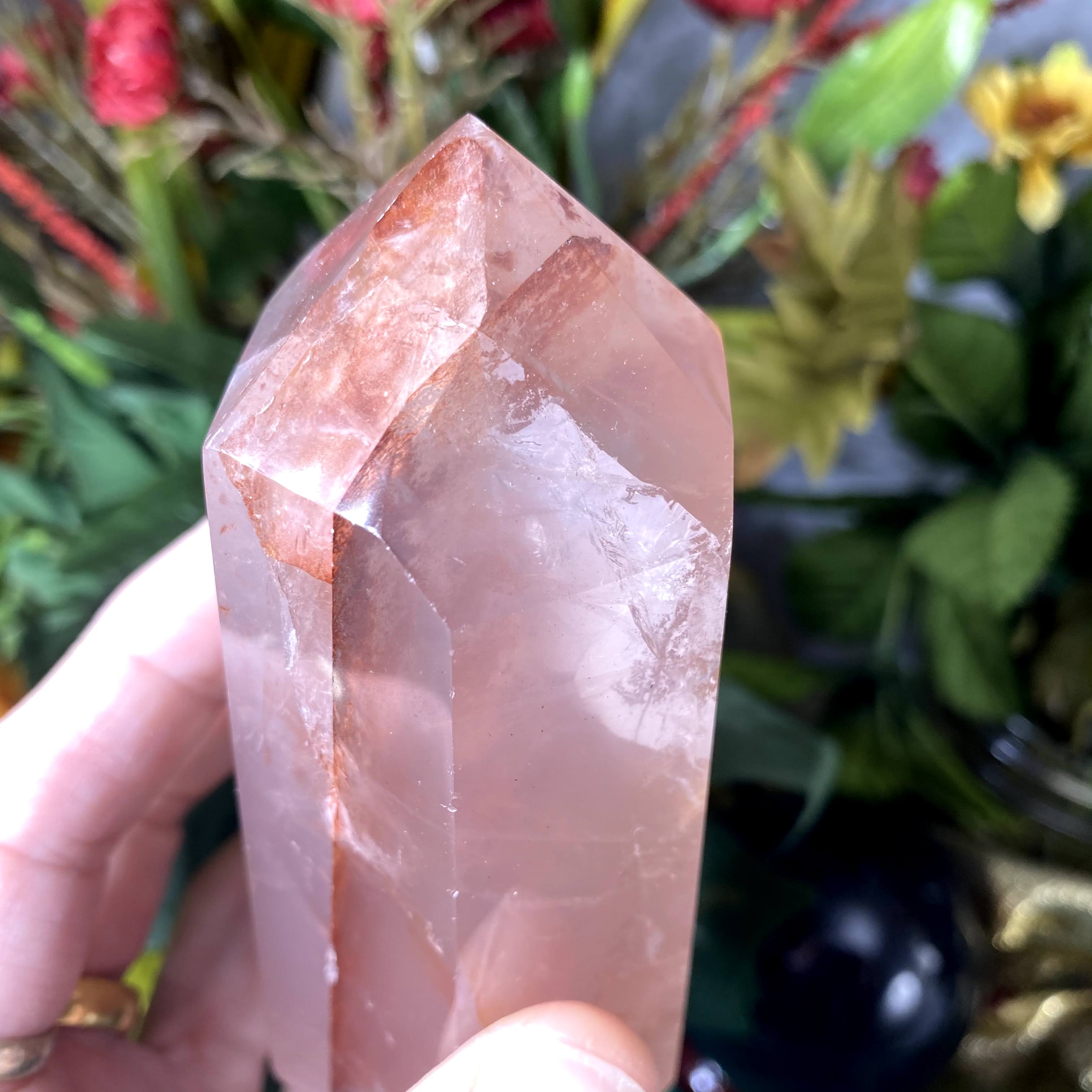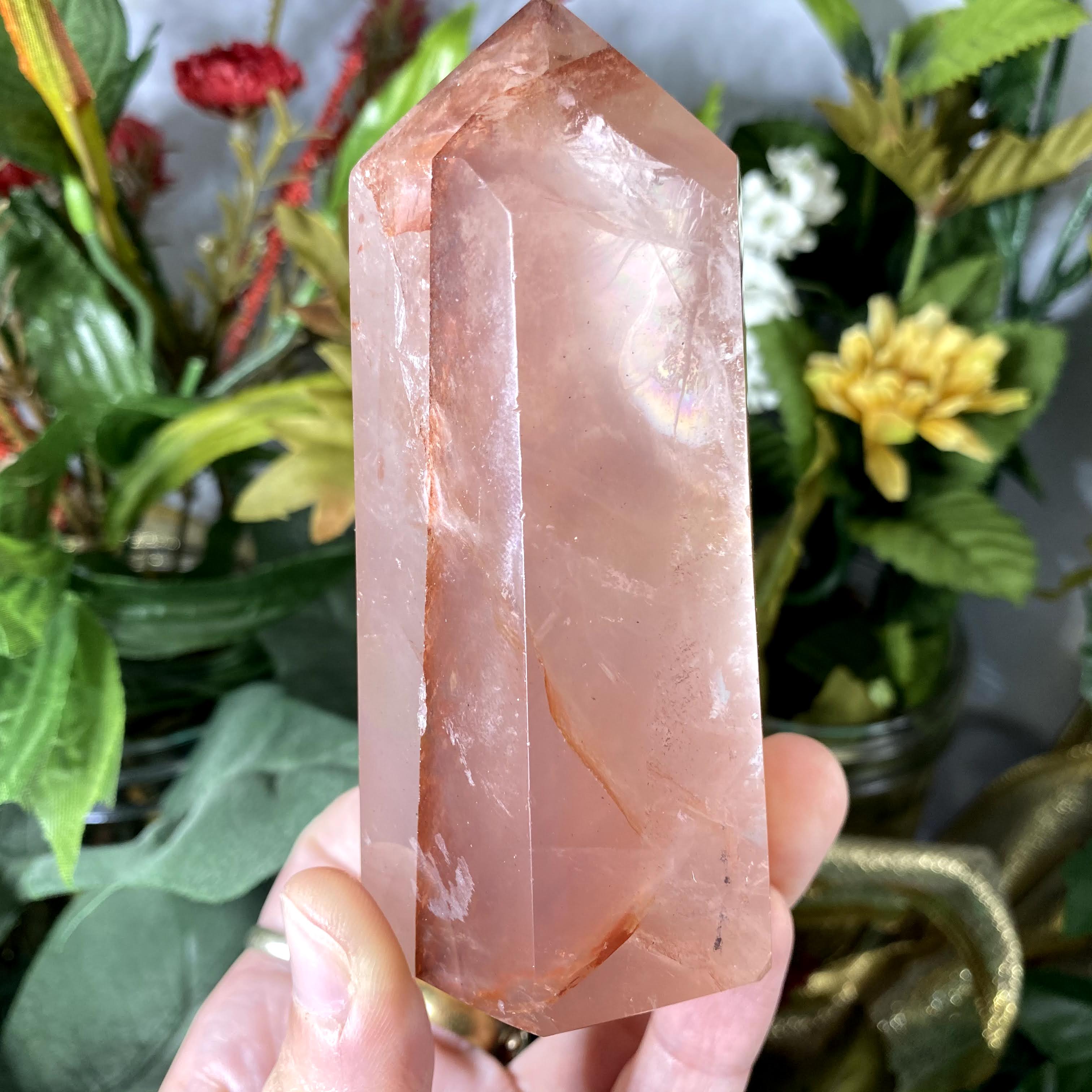 Hematoid Quartz- Red Fire Quartz (Harlequin) Gorgeous Tower / Obelisk / Point with Spectacular Rainbows! (B595)