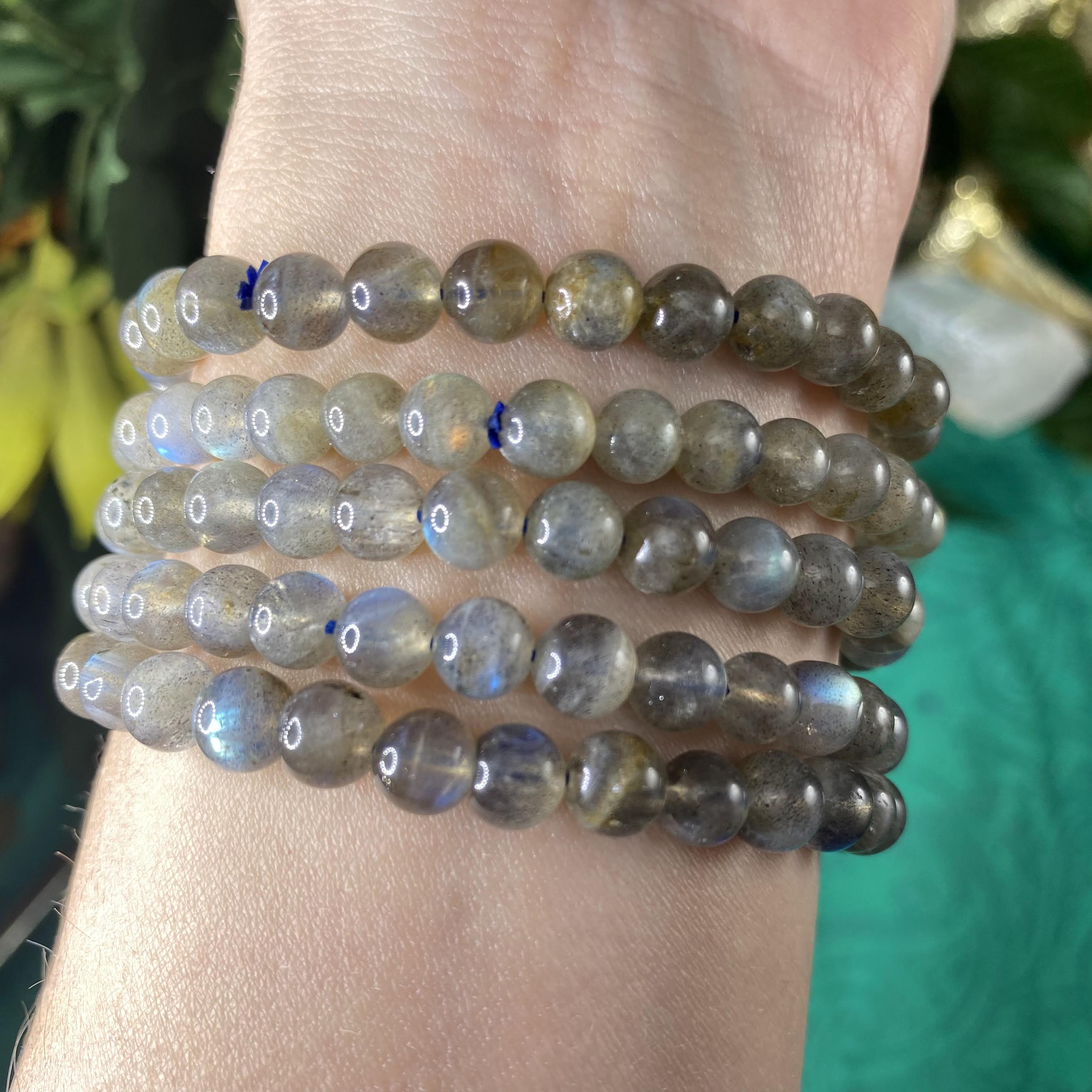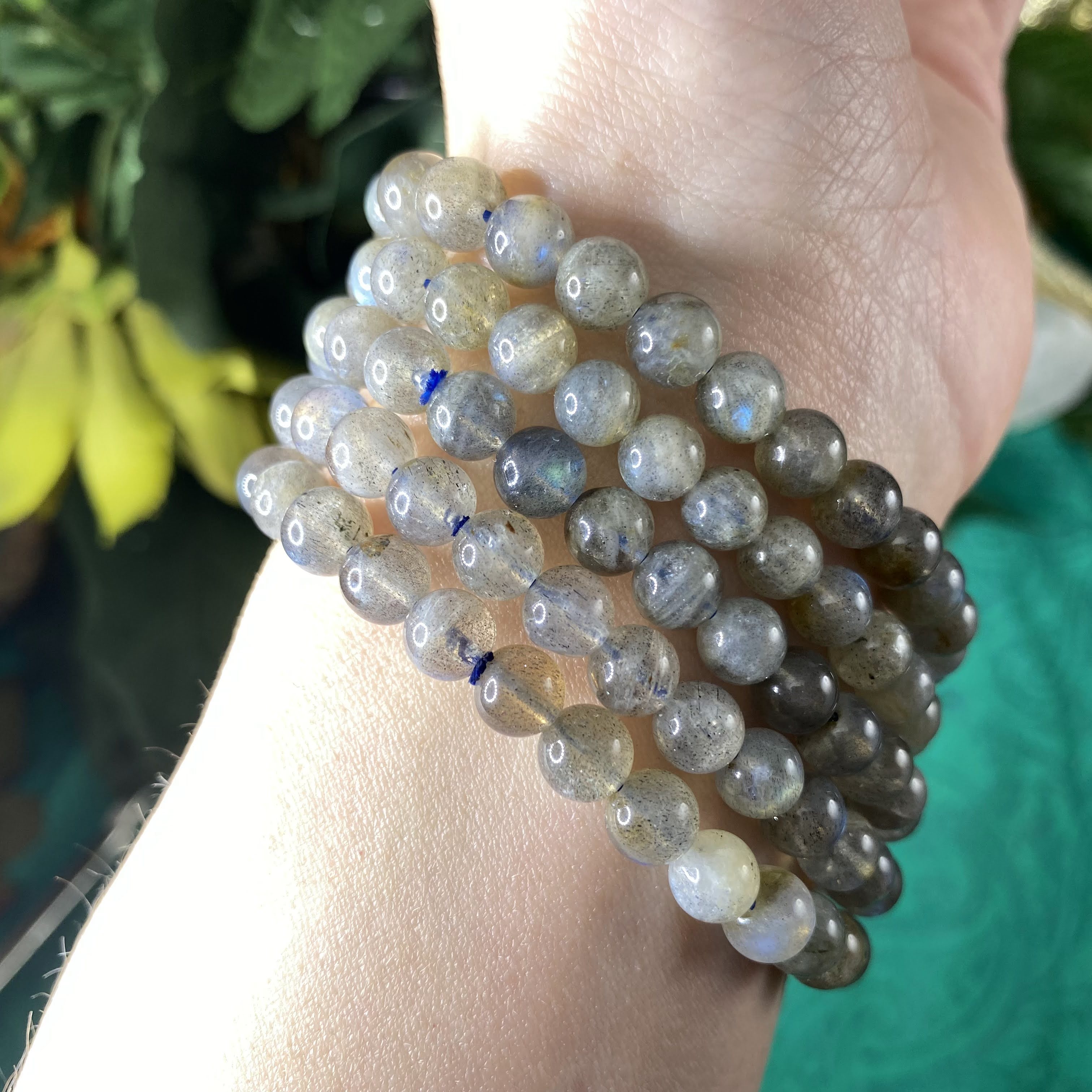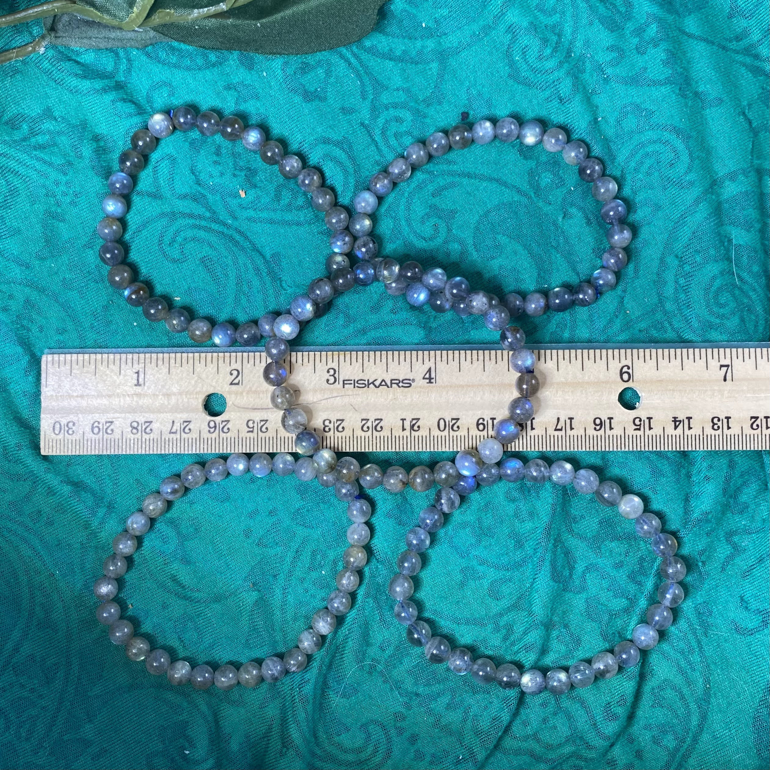 Lovely Single strand flashy labradorite bracelets available! Price is for one single stretchy band bracelet (I am modeling multiple at once to show them all off!). Carry the cosmic energy of labradorite with you wherever you go with these pretty bracelets. :D