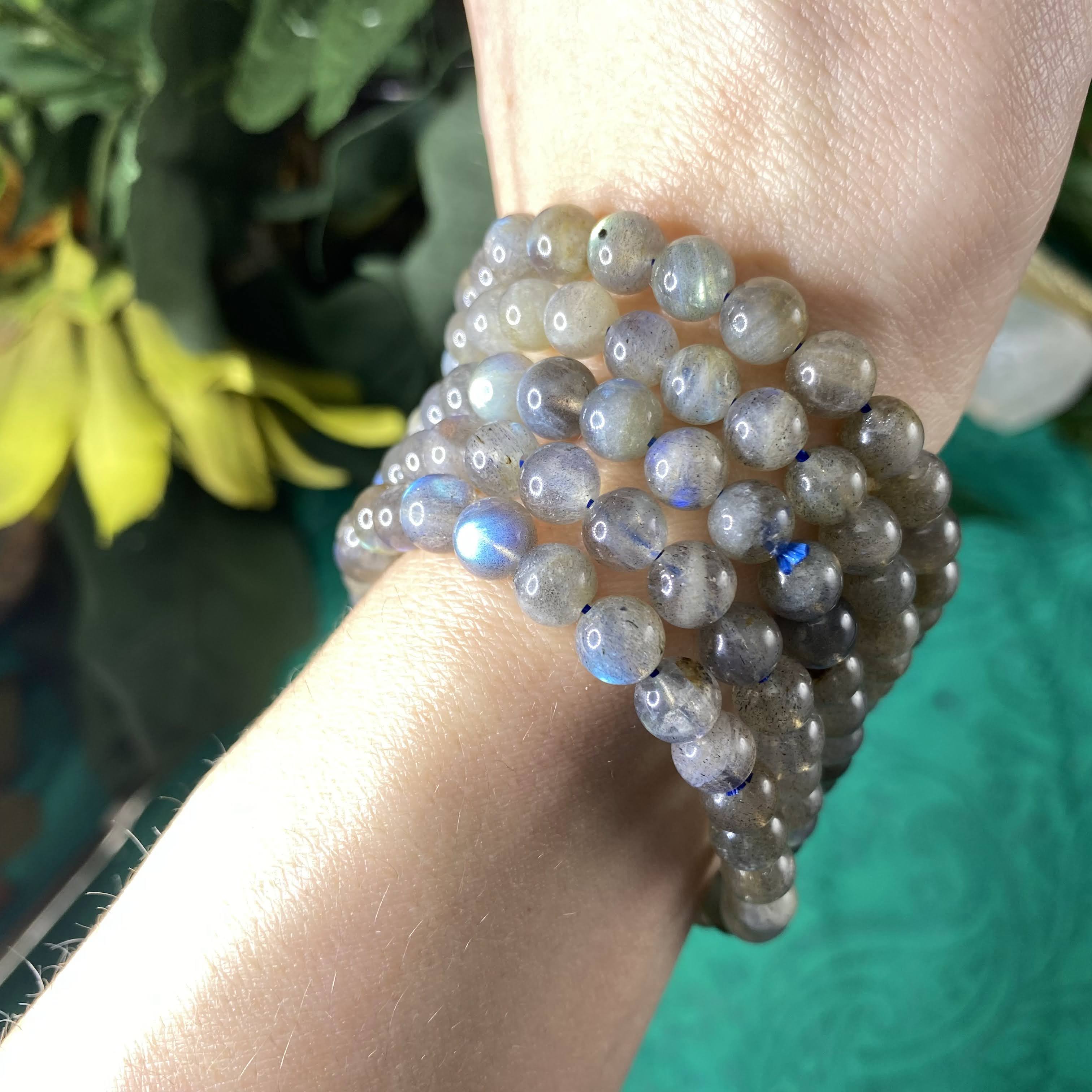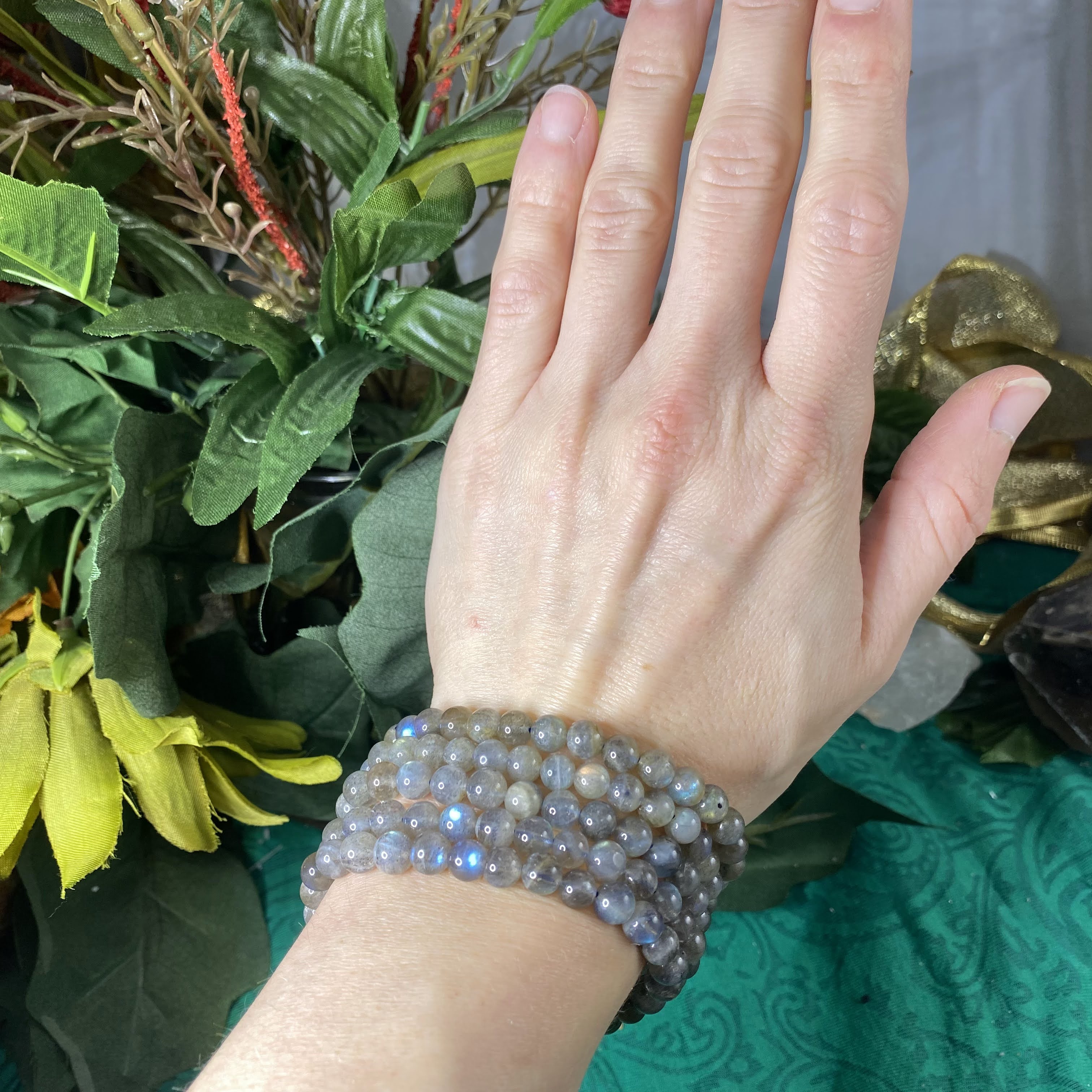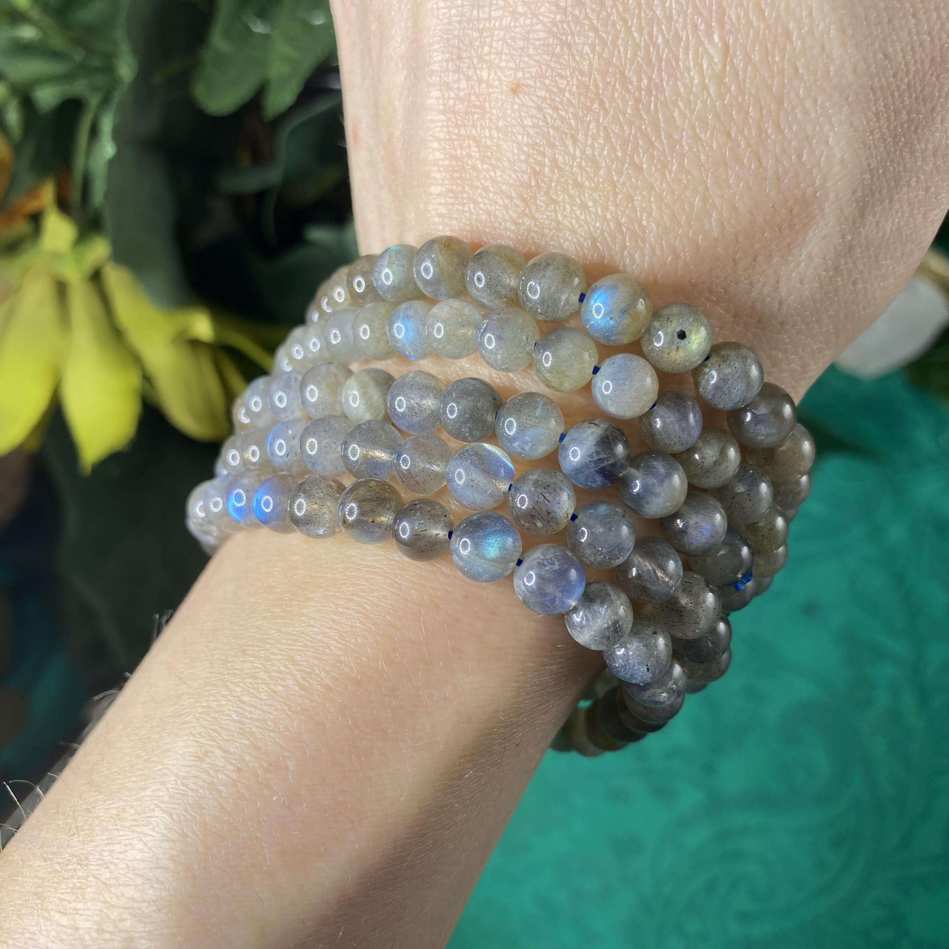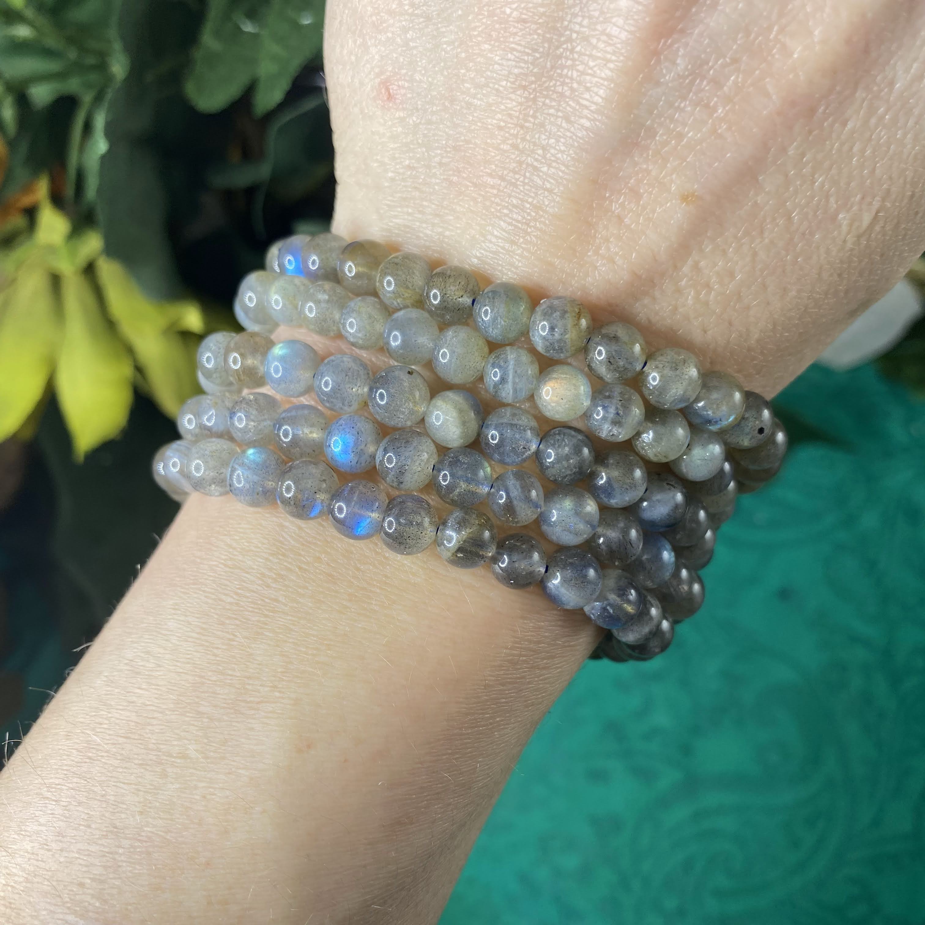 Lovely Single strand flashy labradorite bracelets available! Price is for one single stretchy band bracelet (I am modeling multiple at once to show them all off!). Carry the cosmic energy of labradorite with you wherever you go with these pretty bracelets. :D