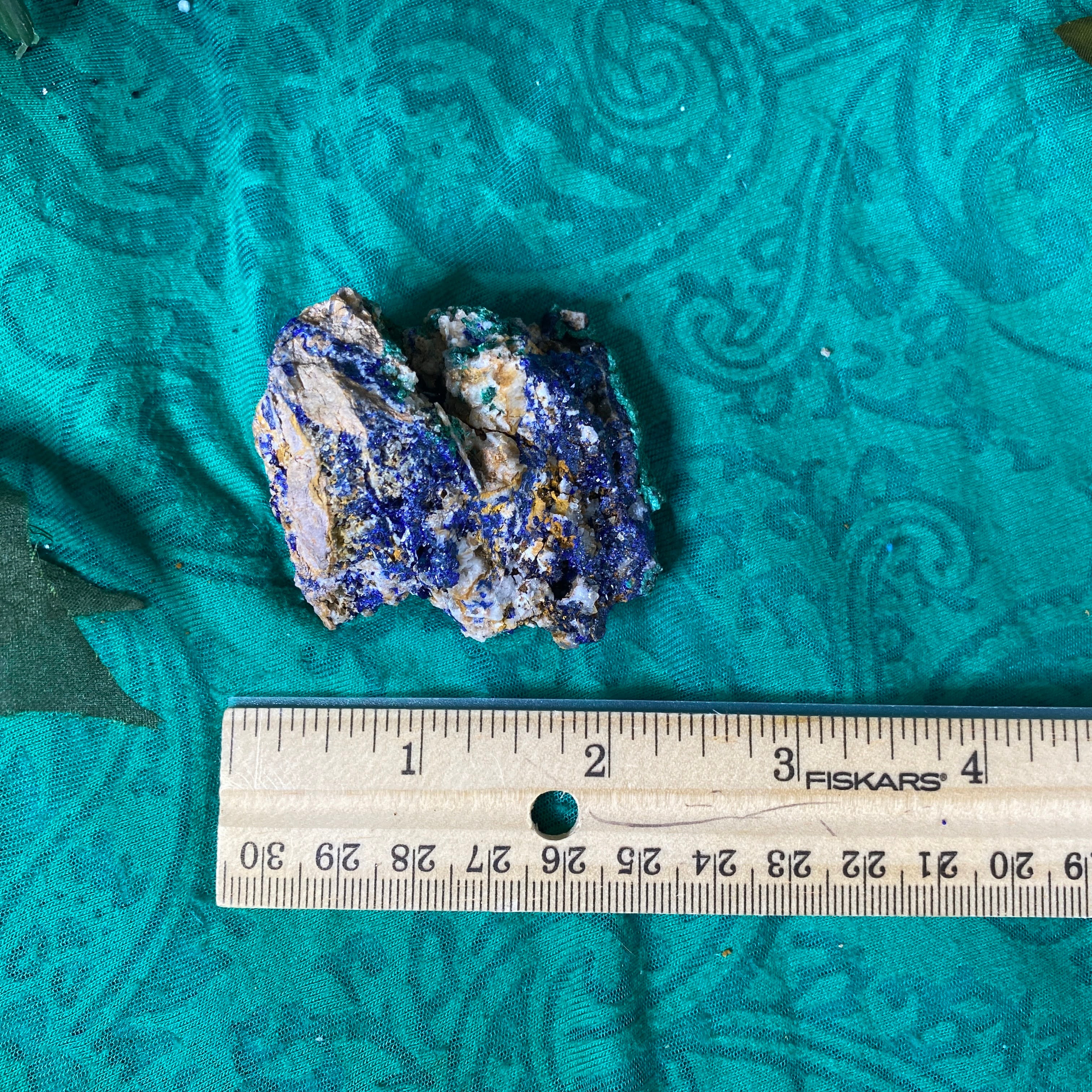 Azurite & Malachite are on the list of toxic minerals/crystals. Please handle with caution, especially raw mineral specimens/unpolished pieces. As far as I understand it, as long as you wash your hands after handling and do not get it wet (do not cleanse specimens by water or use for submerged elixirs!), inhale it’s dust, try and take a bite out of it or make a sandwich out of it, you should be good. As always I highly recommend researching toxic minerals, and to educate yourself on which minerals may be on the list and in your collection. Unfortunately I do not have a list together to share yet. Mineral specimens in this category may be suggested best for display or an altar.