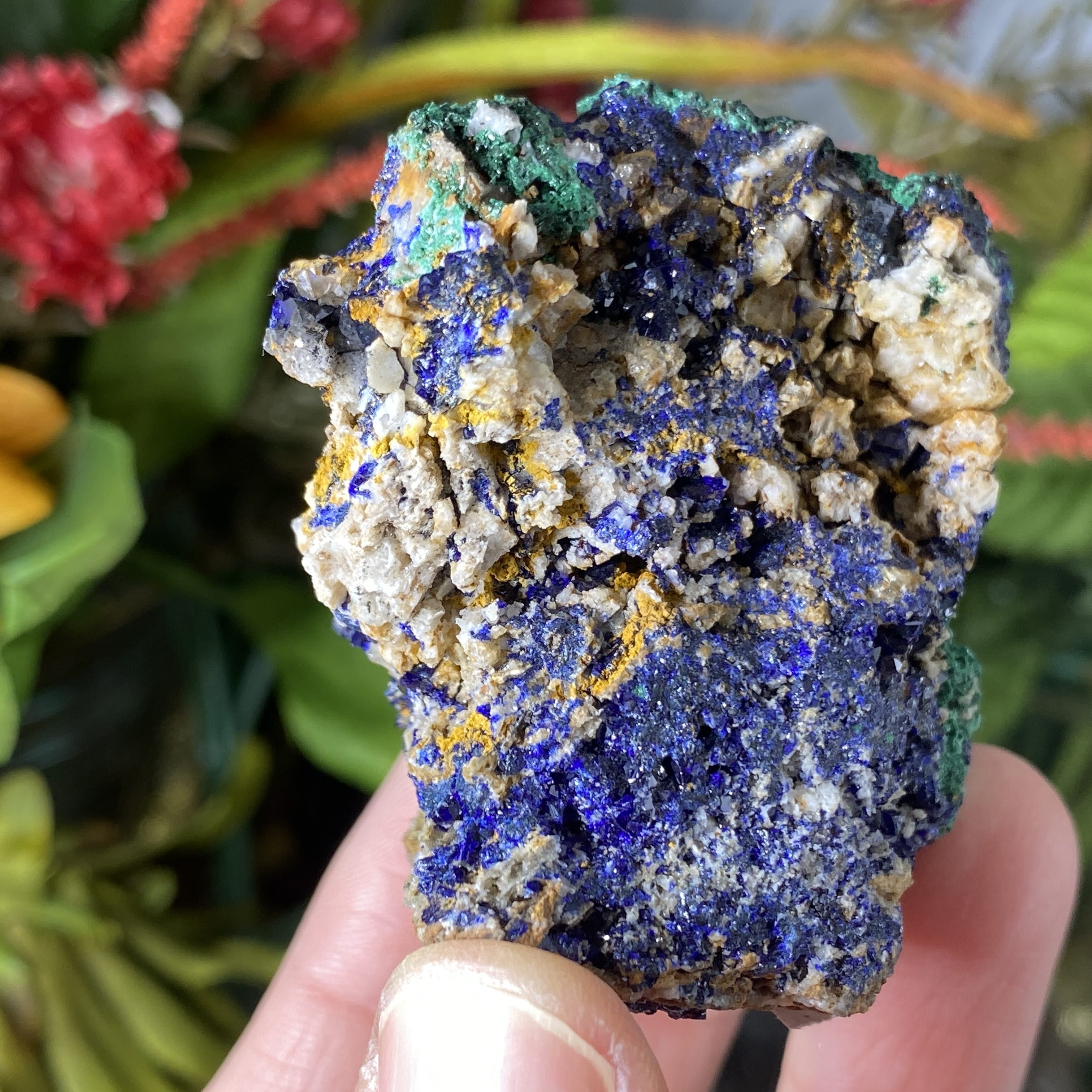 This listing is for the one specimen shown! These azurite crystals and this little touch of fibrous malchite, I can't even! These crystals are beautiful and sparkle so good!......From Morocco!