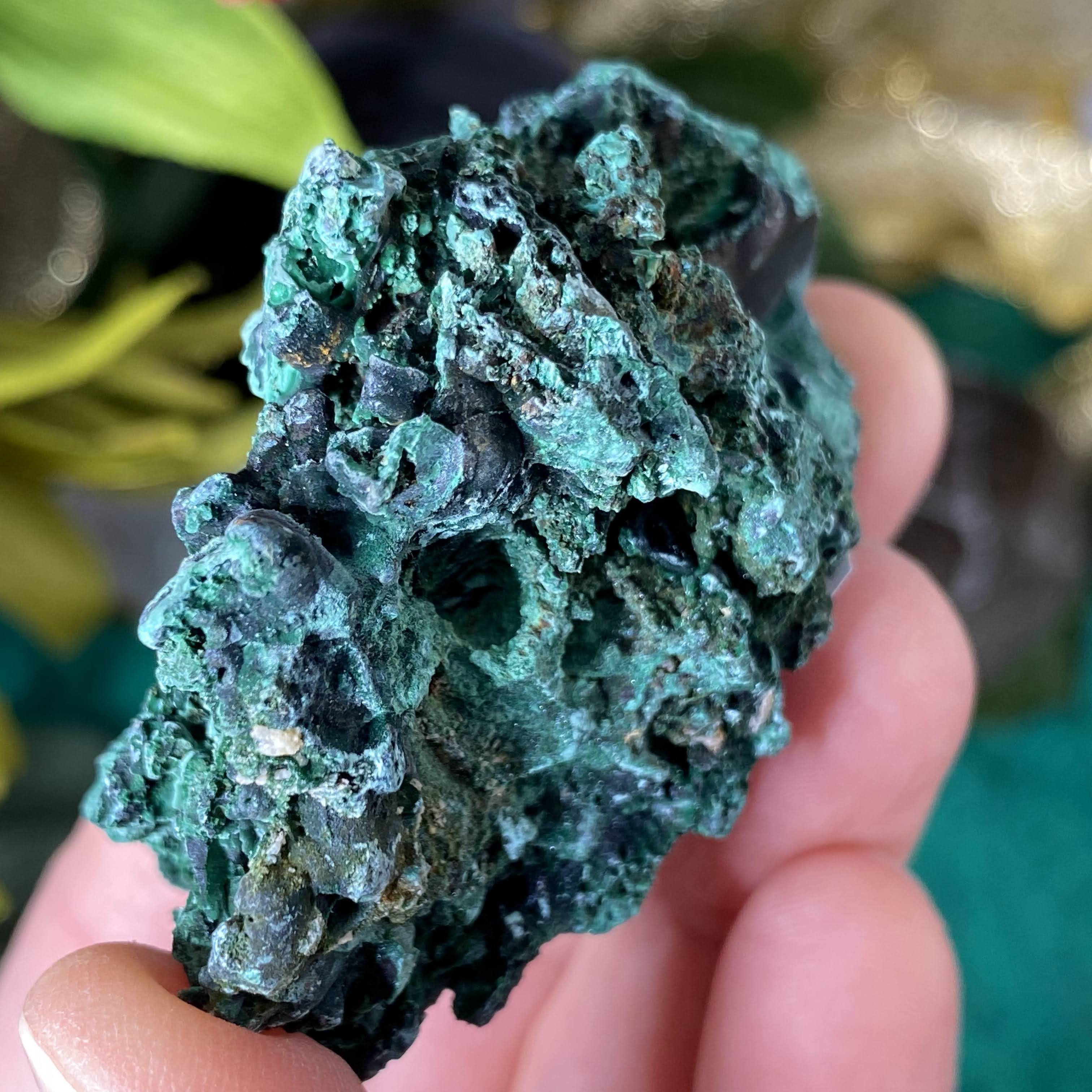 Malachite is on the list of toxic minerals/crystals. Please handle with caution, especially raw mineral specimens/unpolished pieces. As far as I understand it, as long as you wash your hands after handling and do not get it wet (do not cleanse specimens by water or use for submerged elixirs!), inhale it’s dust, try and take a bite out of it or make a sandwich out of it, you should be good. As always I highly recommend researching toxic minerals, and to educate yourself on which minerals may be on the list and in your collection. Unfortunately I do not have a list together to share yet. Mineral specimens in this category may be suggested best for display or an altar.