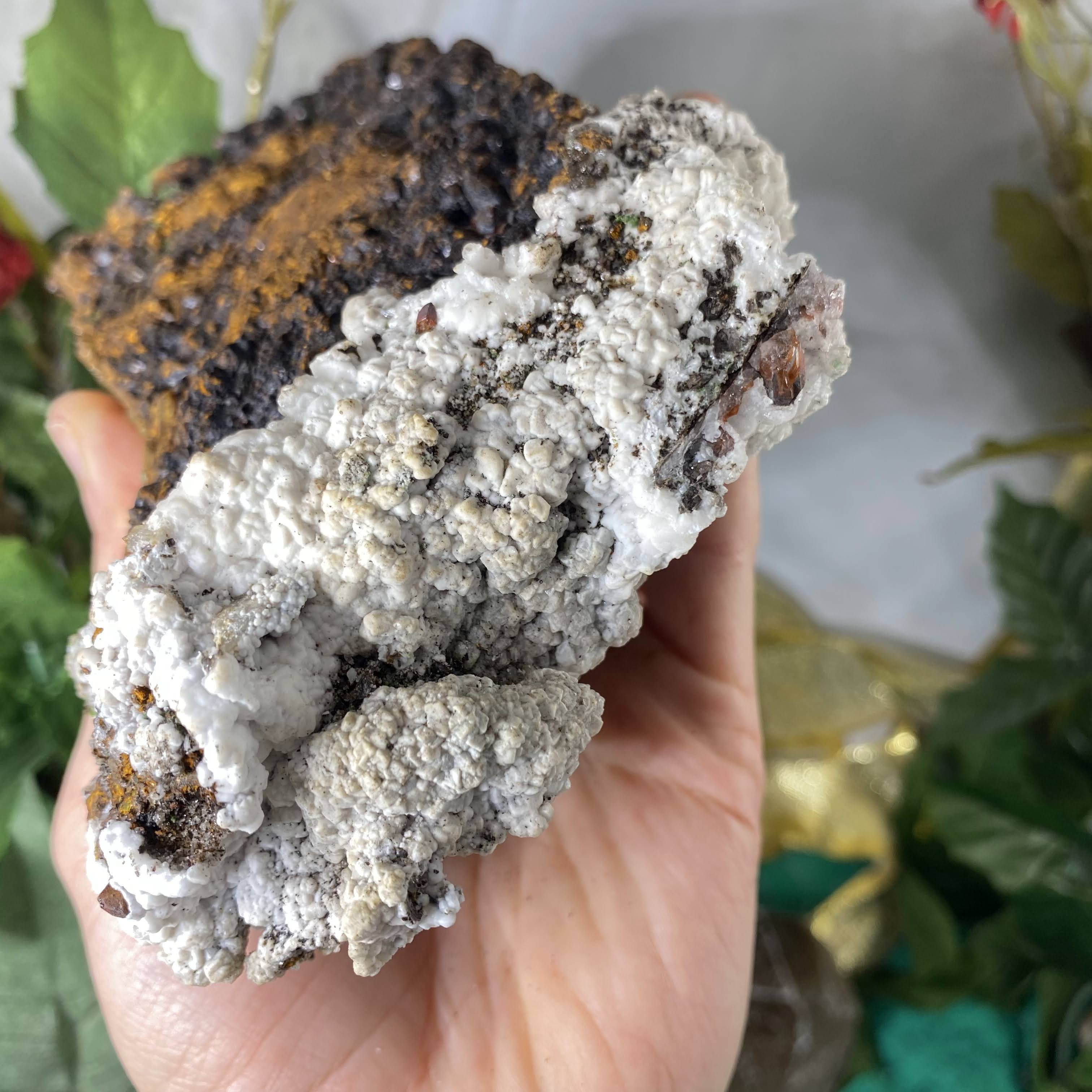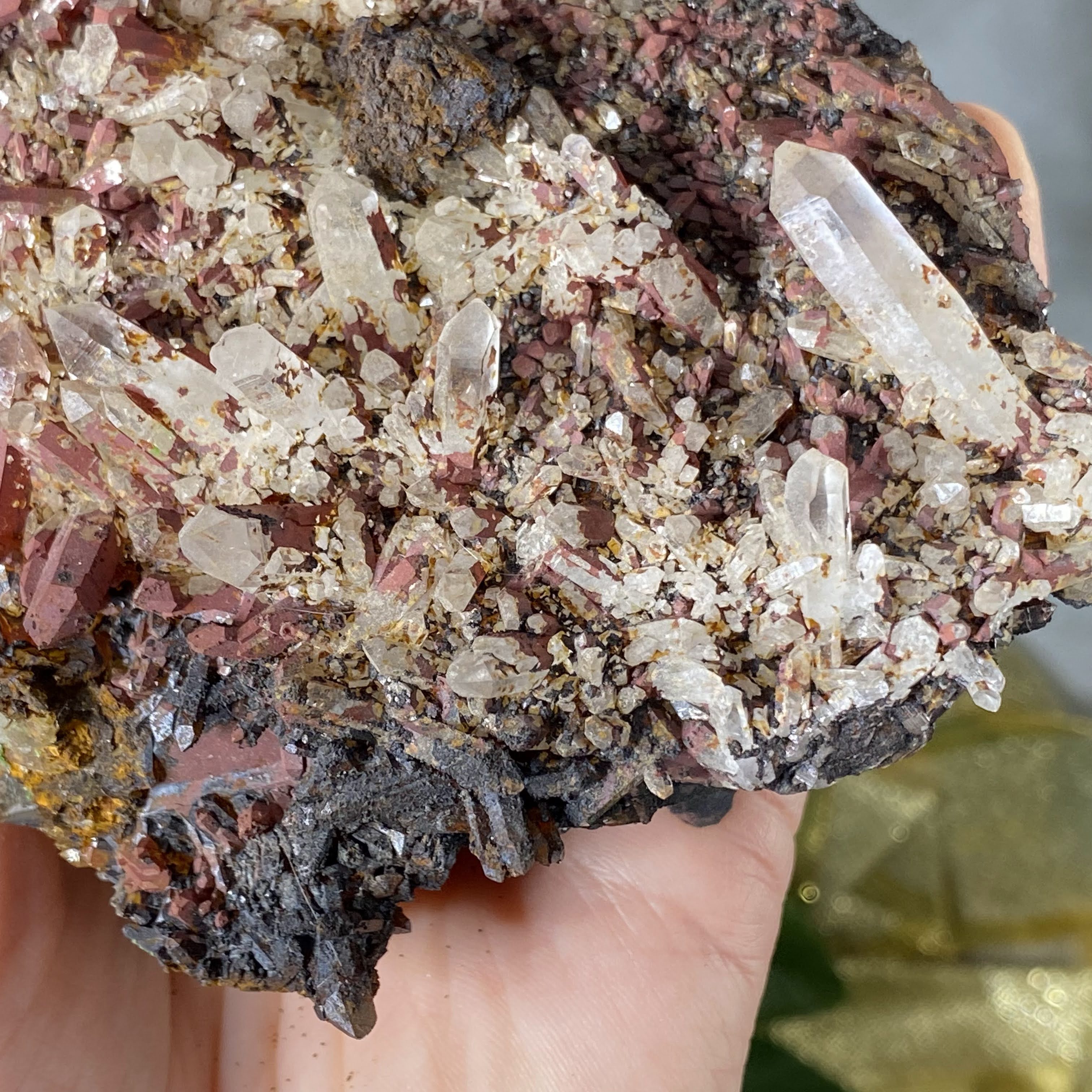 Hematite / Hematoid Quartz is quartz that is included with iron (hematite) and/or limonite which can give a red, silver, black, or gold color. The red varieties are usually referred to as fire quartz, or harlequin quartz (usually when the red appears as dots or strands within the stone). The gold colored variety is what most know as golden healer quartz. When other minerals are present with quartz, their energies are amplified as quartz amplifies energy. So, not only will you have the standard quartz properties for the crystal, but the amplified energies of hematite. It’s a great crystal for stability, grounding, cleansing, protection, which in turn brings in peace, harmony, & clarity. With the power crystal of quartz working with it, it surely is a wonderful crystal to have around or in your healing tool box. Powering up but staying grounded is a super combination. Hematoid quartz is helpful with grounding emotions too when they are overstimulated, like anxiety. I feel like it would gently but firmly say, “Let it go, take a deep breath, it’s all good. You’re safe, I got you. There’s goodness here, just allow yourself to feel it. Awesome! Now, let’s do this!”. It’s also a good encourager of when to take a rest vs. knowing when to get to it. It’s a root chakra crystal that will help ground your energy deep into mother earth to help you release energy that no longer serves you and keep you more clear when working with higher vibrational frequencies. It’s great for balancing the mind, body and spirit for a harmonious flow. An aid to help you focus when you are over stimulated or distracted, or when you need a lot of that brain energy for highly intelligent work and pursuits.