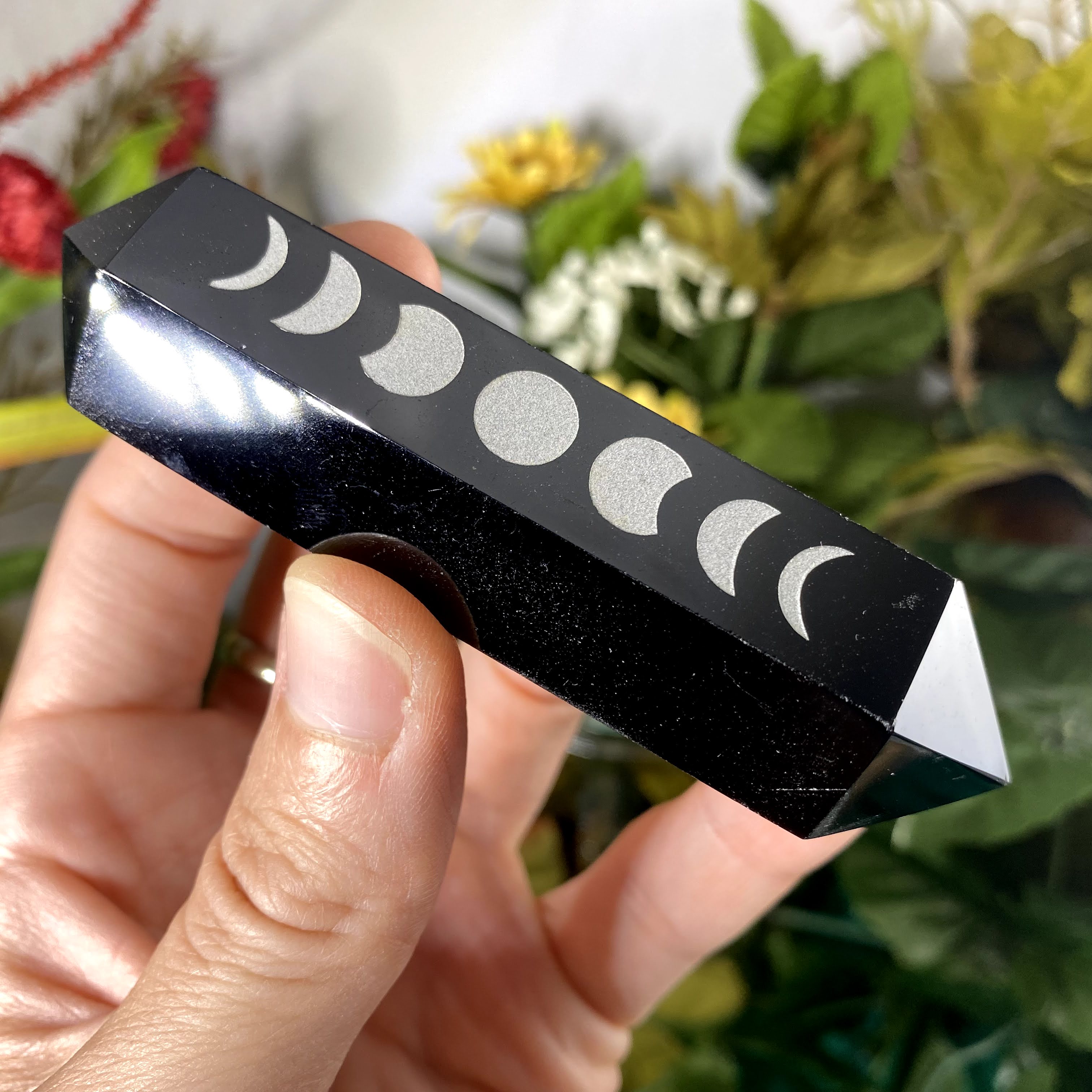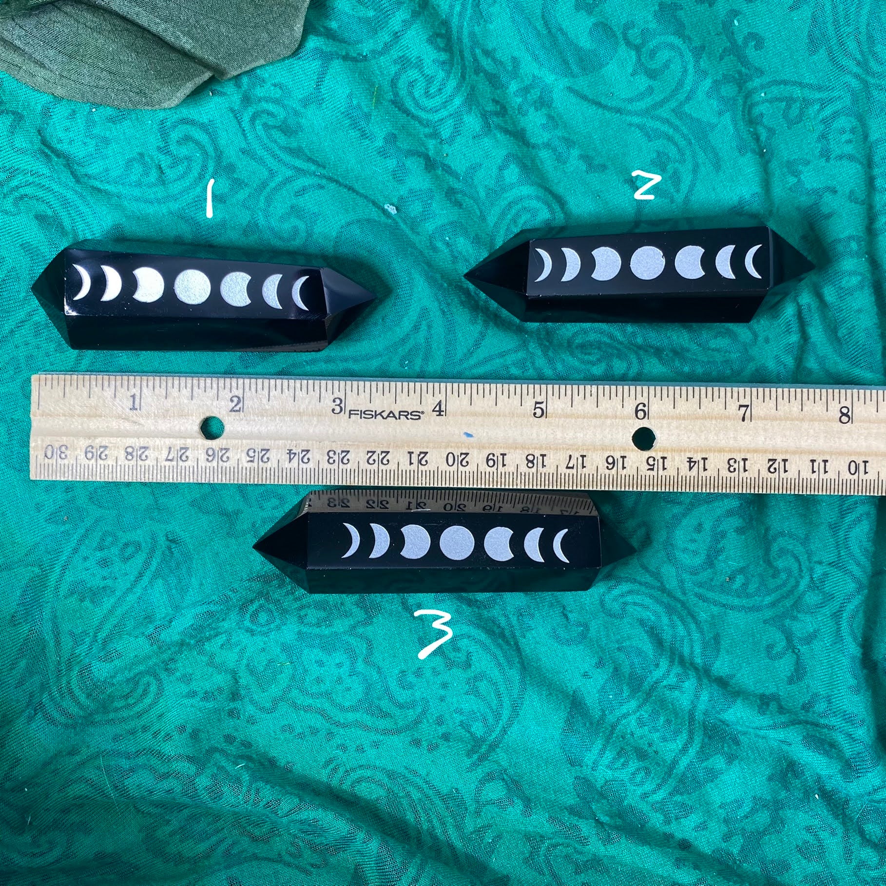 Obsidian- Moon Phase Carved Black Obsidian DT / Double Terminated Points! (B957/B958/B959)
